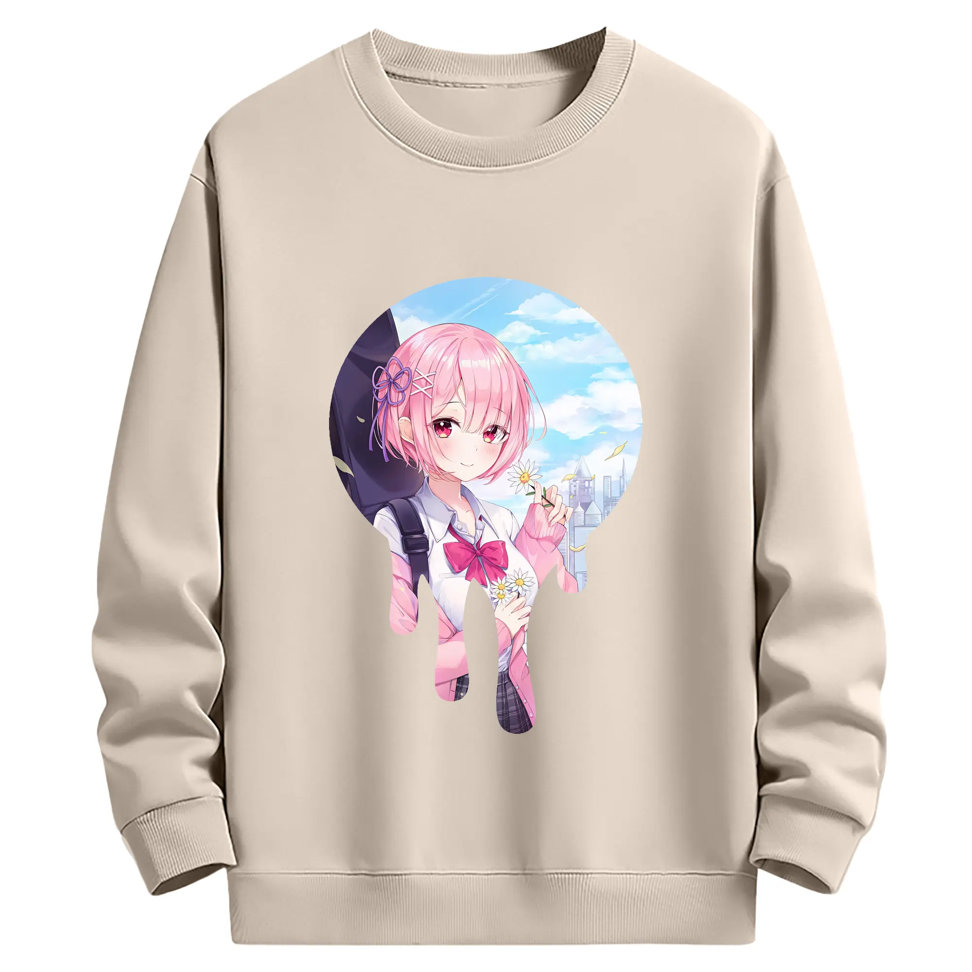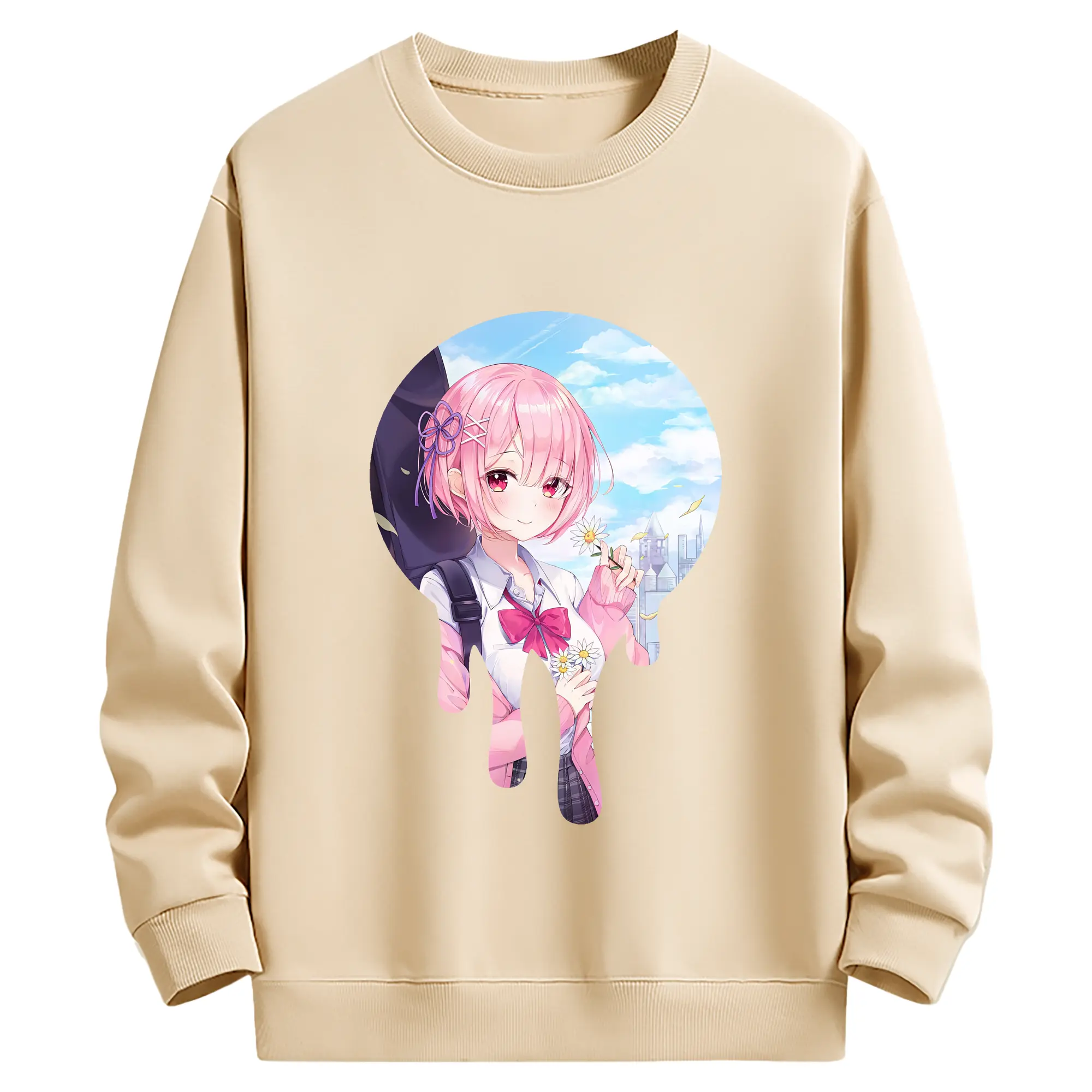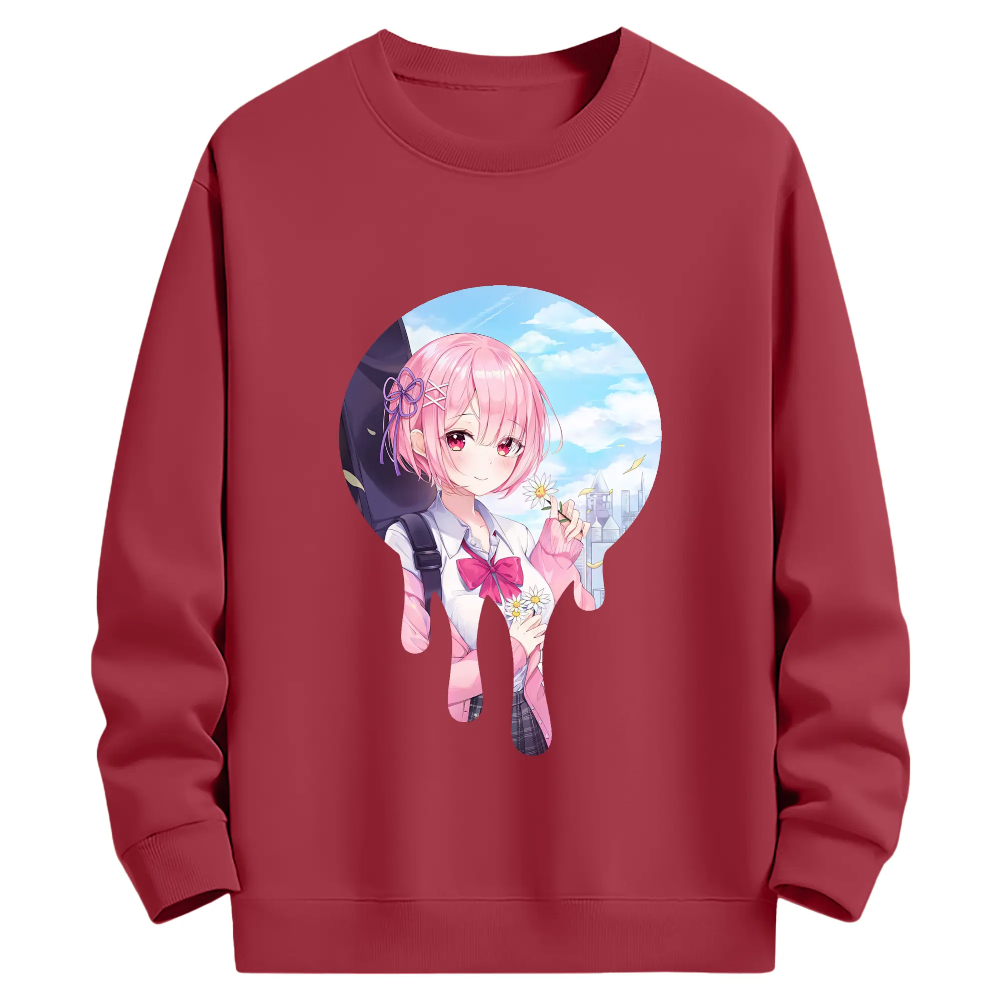 リゼロ グッズ ラム - 薄手 クルーネック スウェット 裏毛260g · ポリエステル 春秋向け カジュアル 男女兼用 · トレーナー デイリー スポーツ 散歩に最適