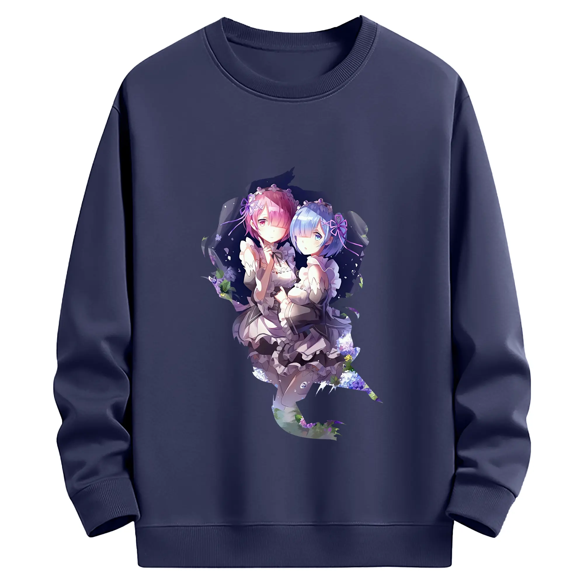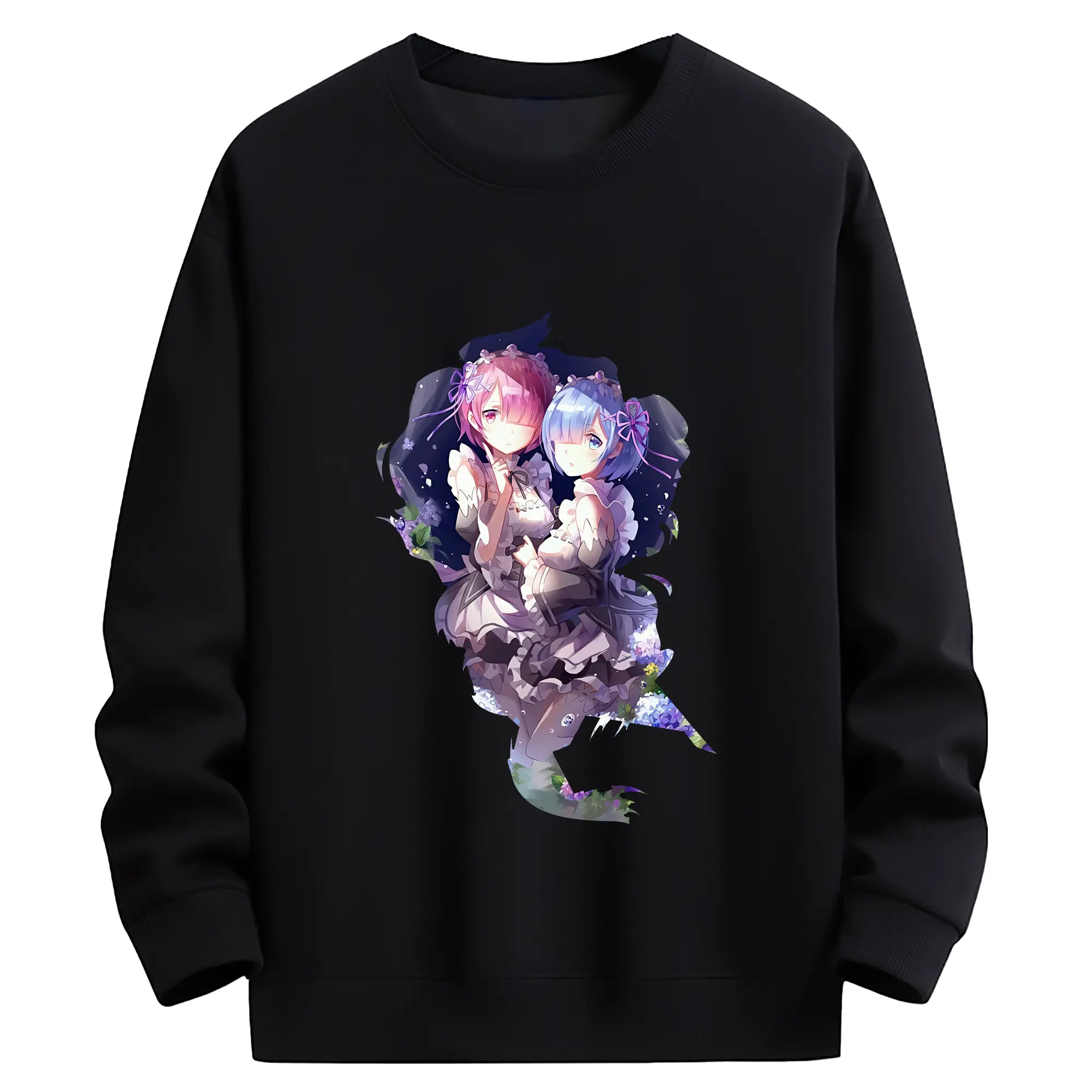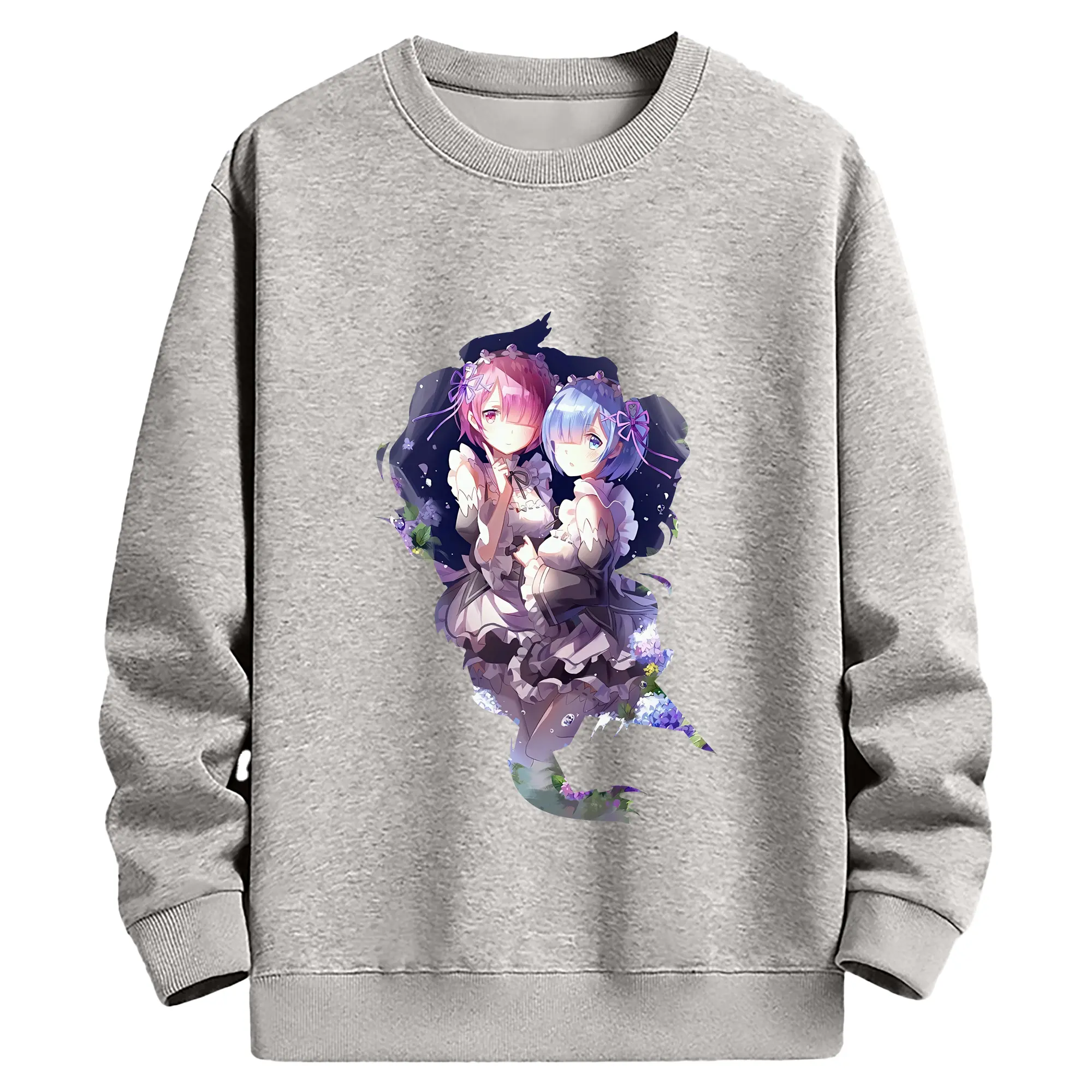 リゼロ グッズ ラム - 薄手 クルーネック スウェット 裏毛260g · ポリエステル 春秋向け カジュアル 男女兼用 · トレーナー デイリー スポーツ 散歩に最適