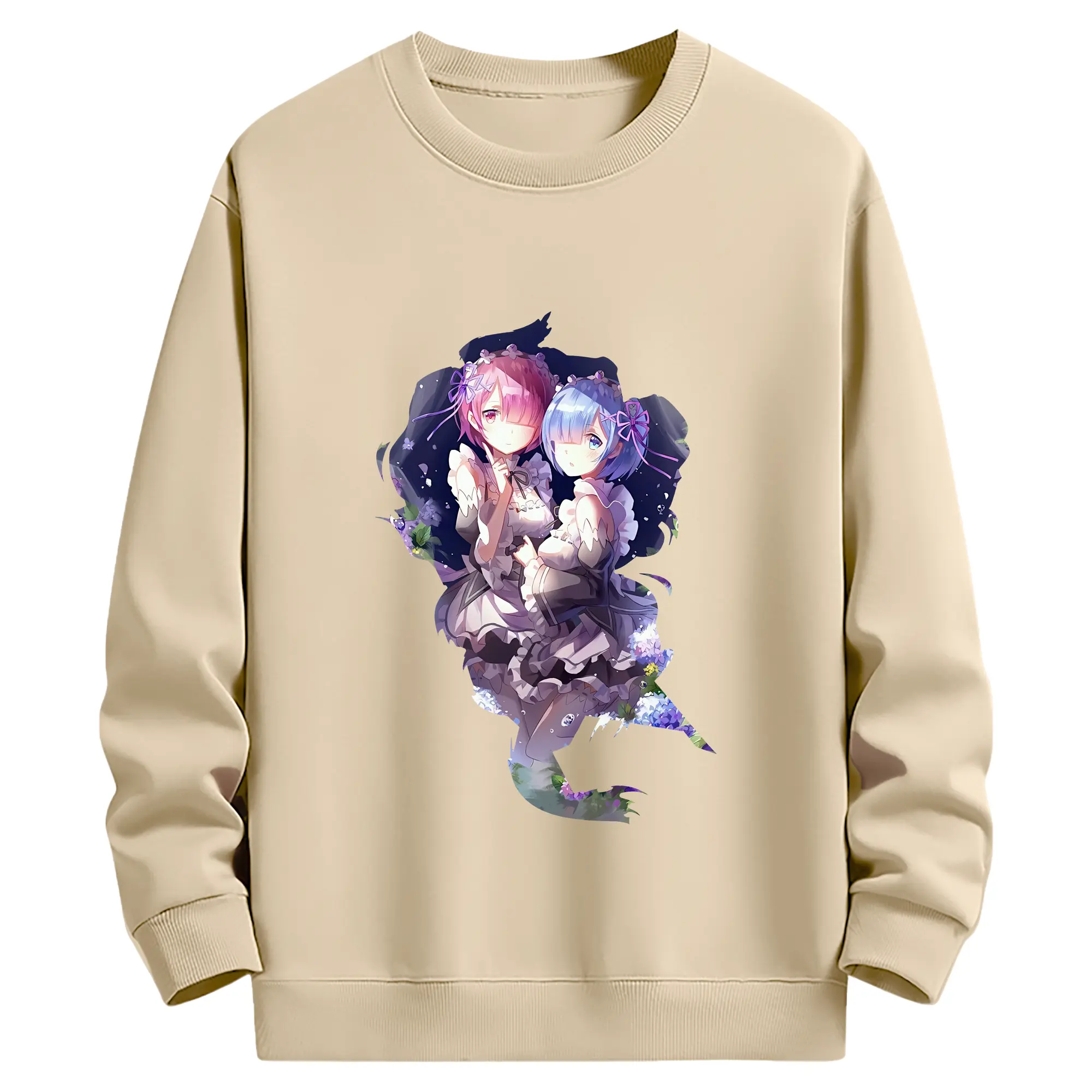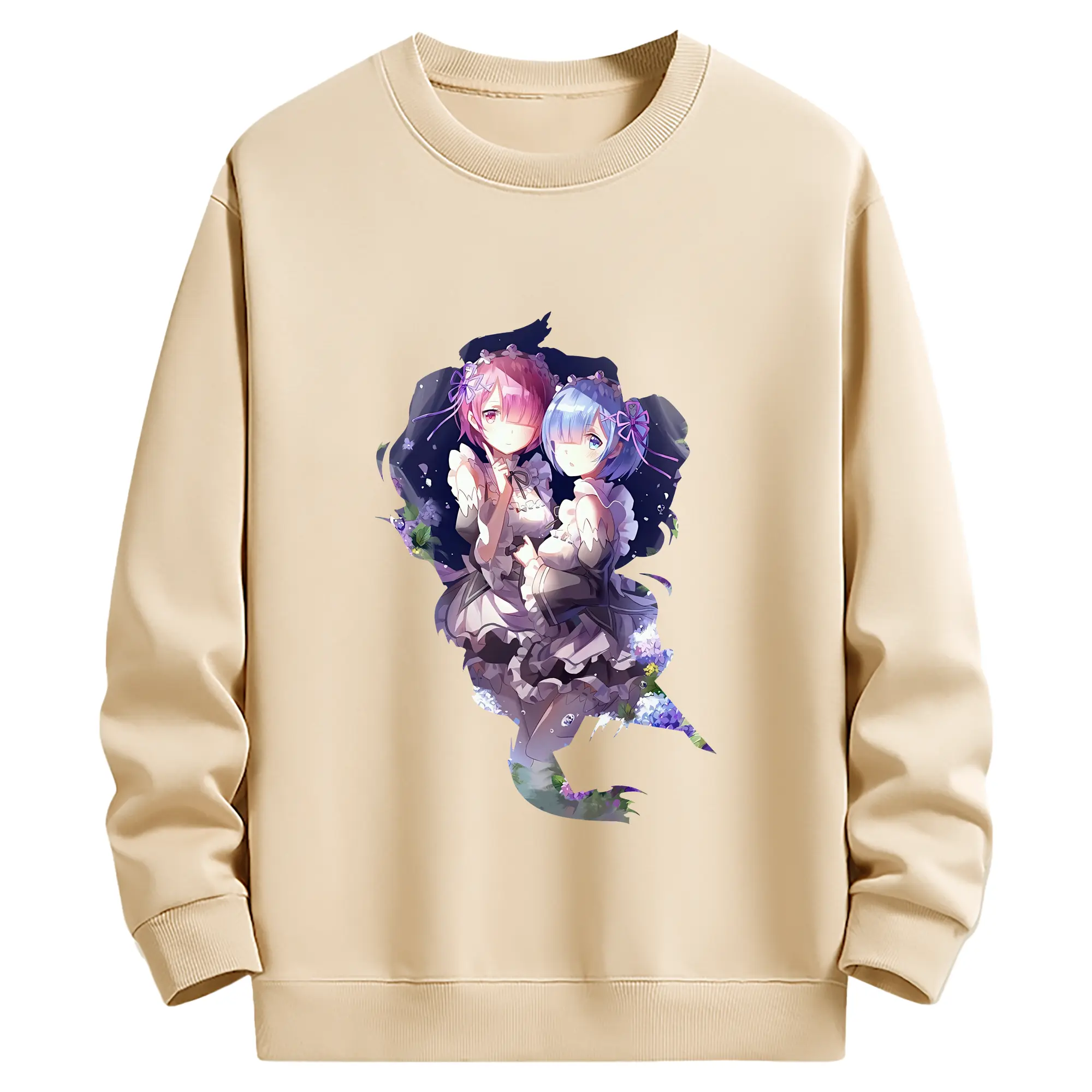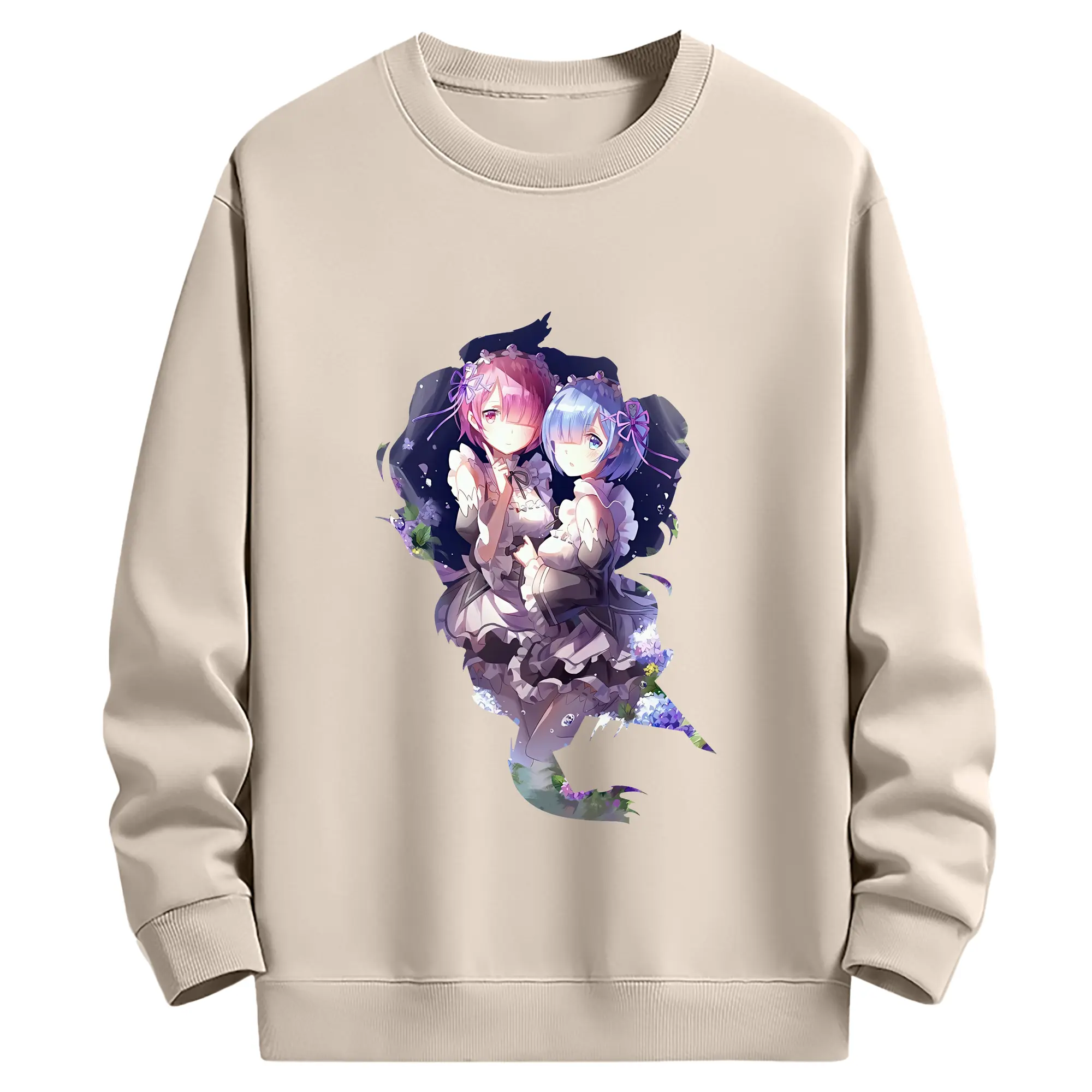 リゼロ グッズ ラム - 薄手 クルーネック スウェット 裏毛260g · ポリエステル 春秋向け カジュアル 男女兼用 · トレーナー デイリー スポーツ 散歩に最適