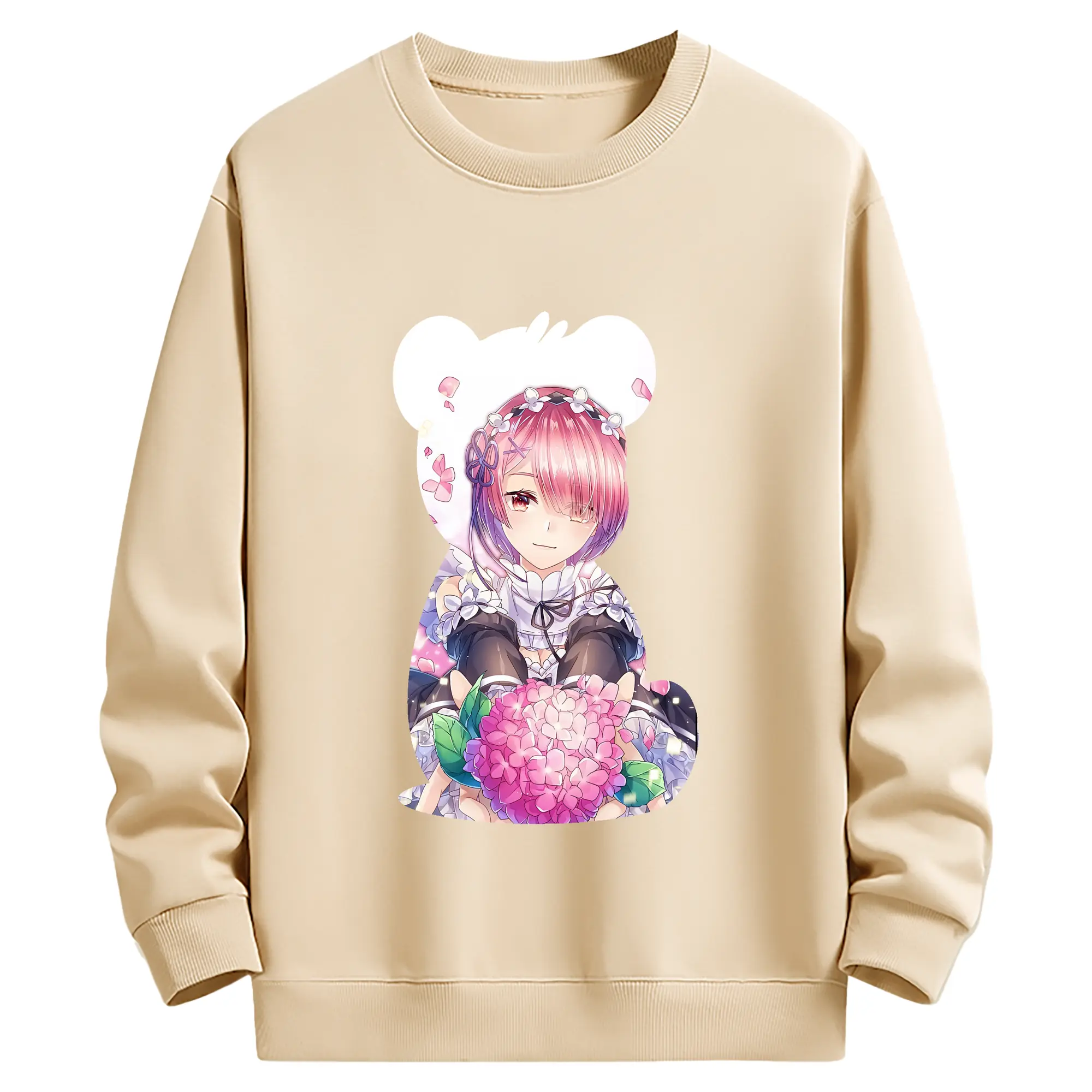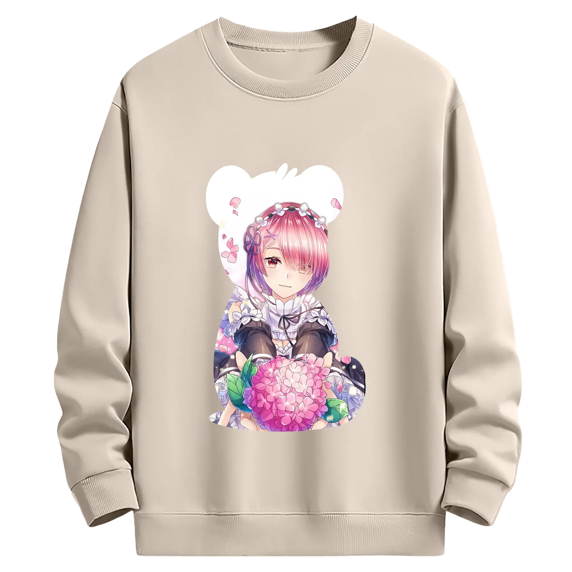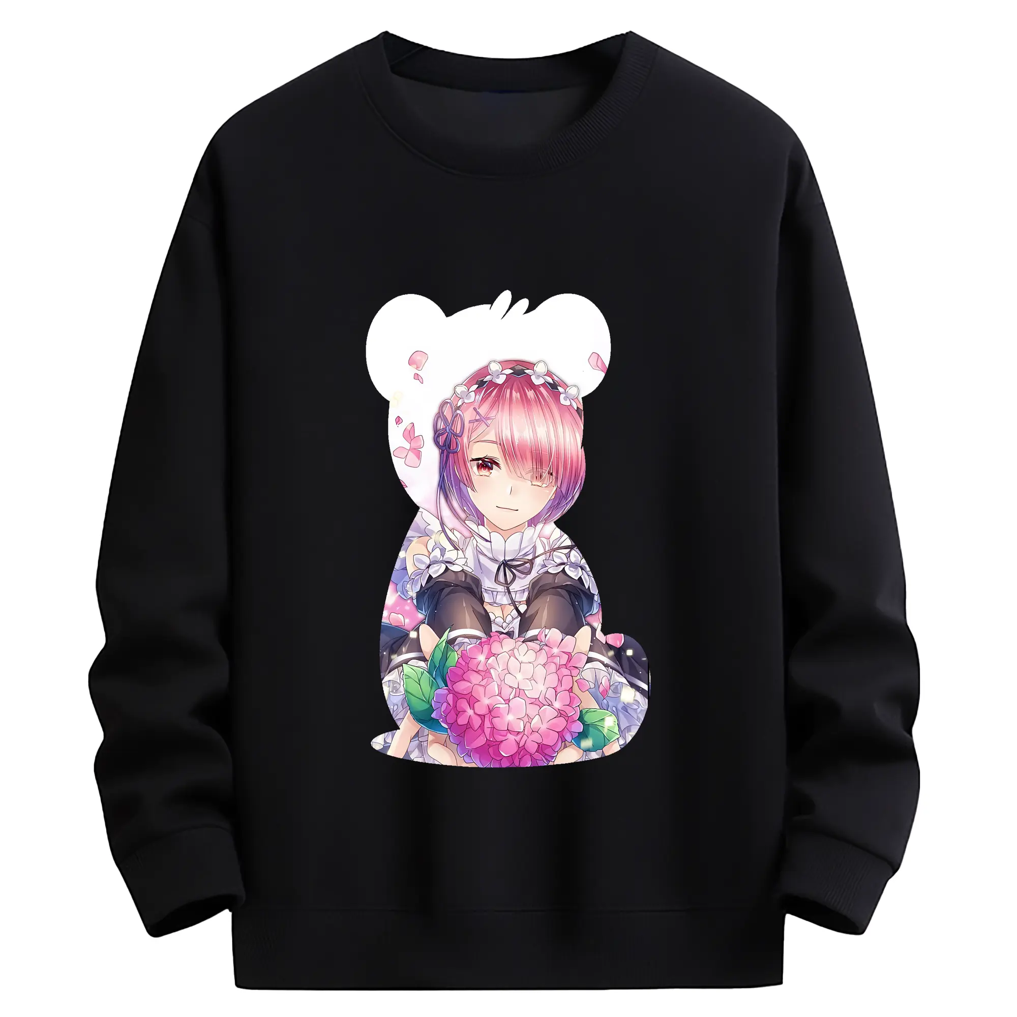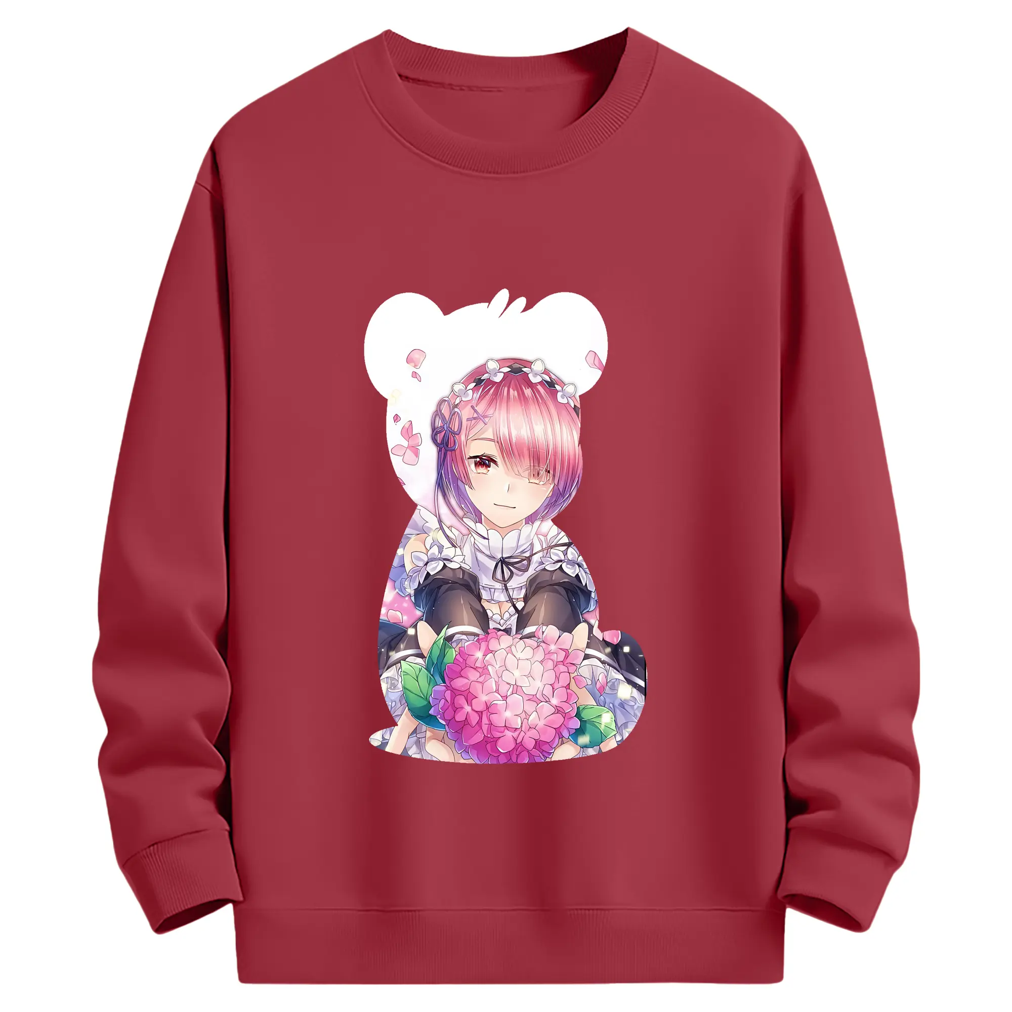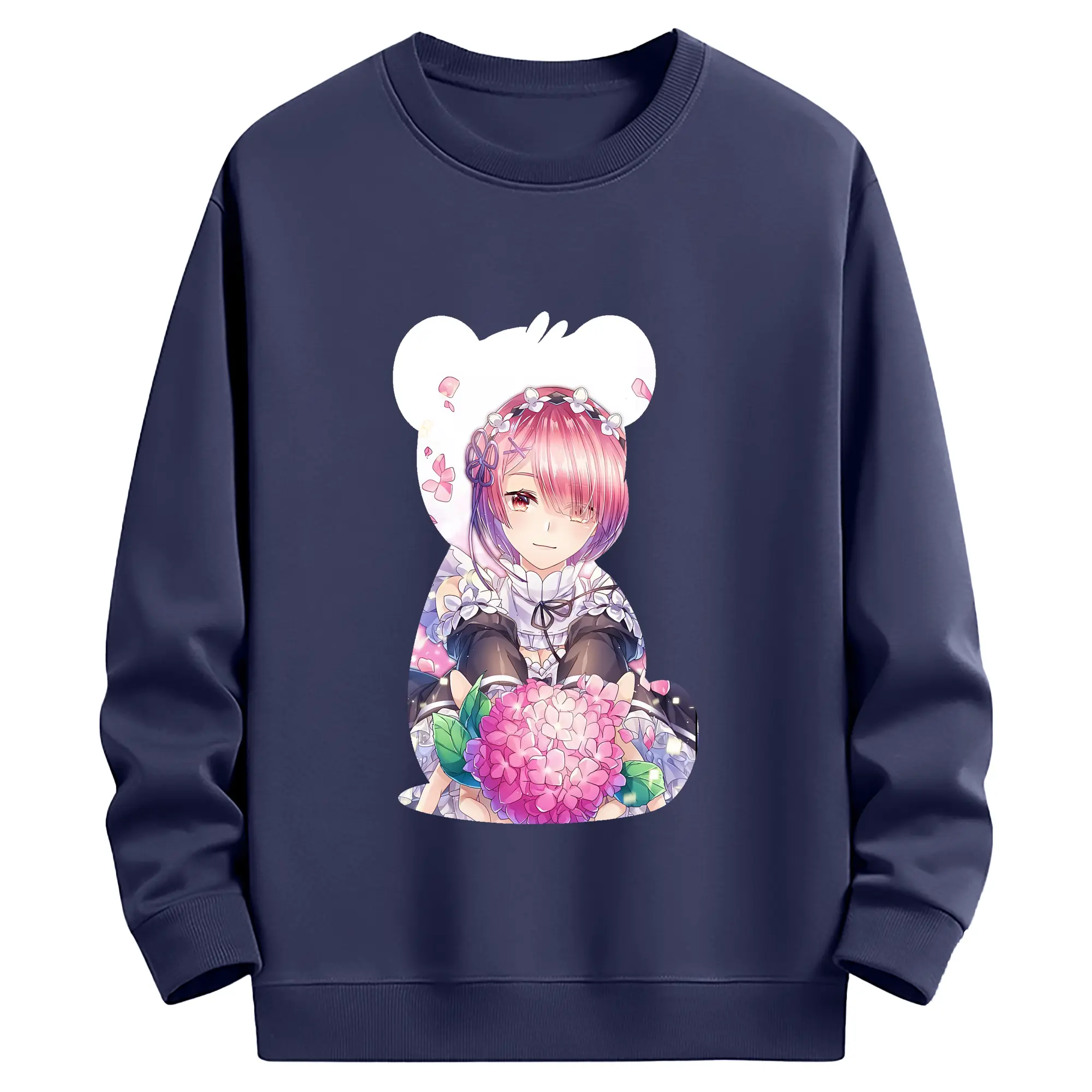 リゼロ グッズ ラム - 薄手 クルーネック スウェット 裏毛260g · ポリエステル 春秋向け カジュアル 男女兼用 · トレーナー デイリー スポーツ 散歩に最適