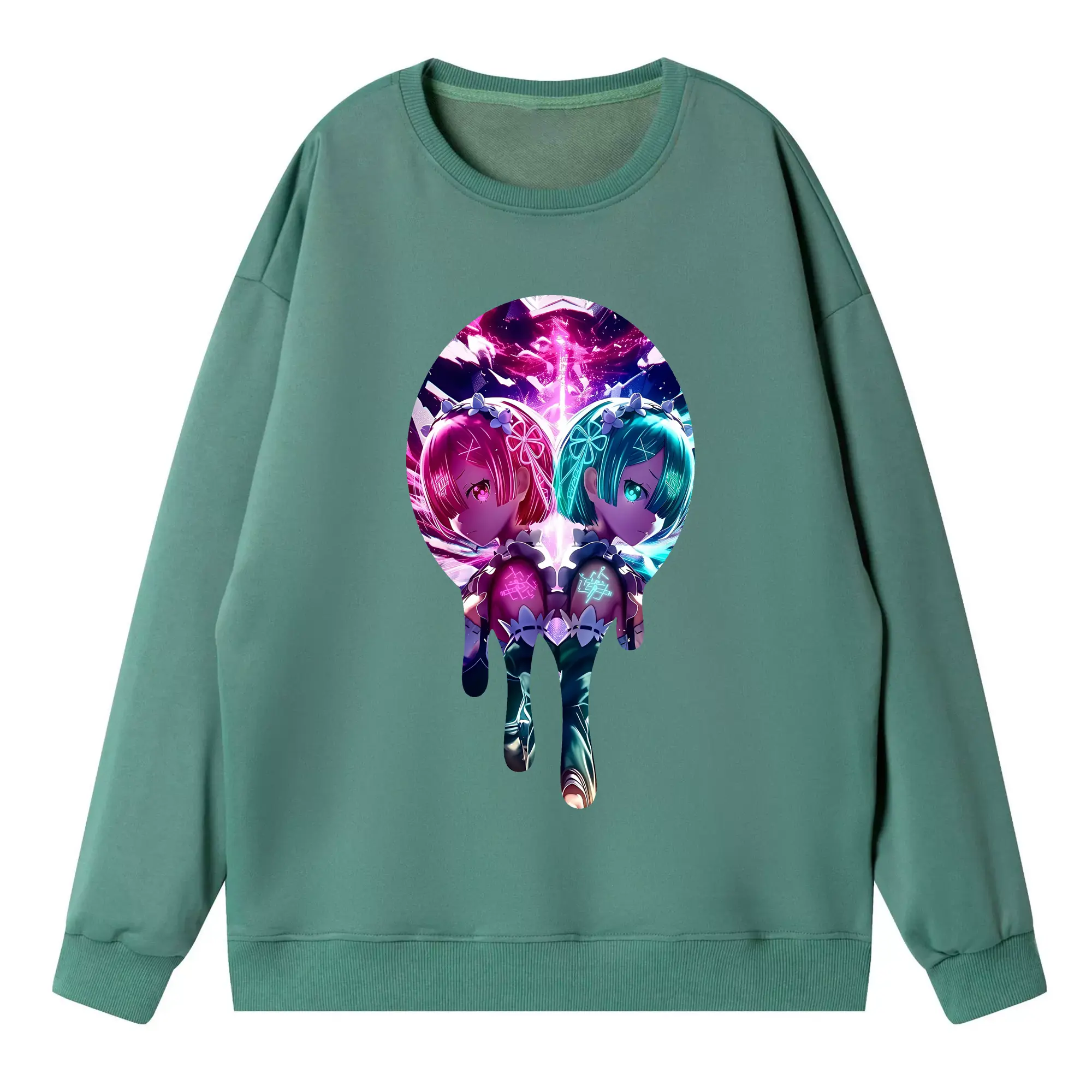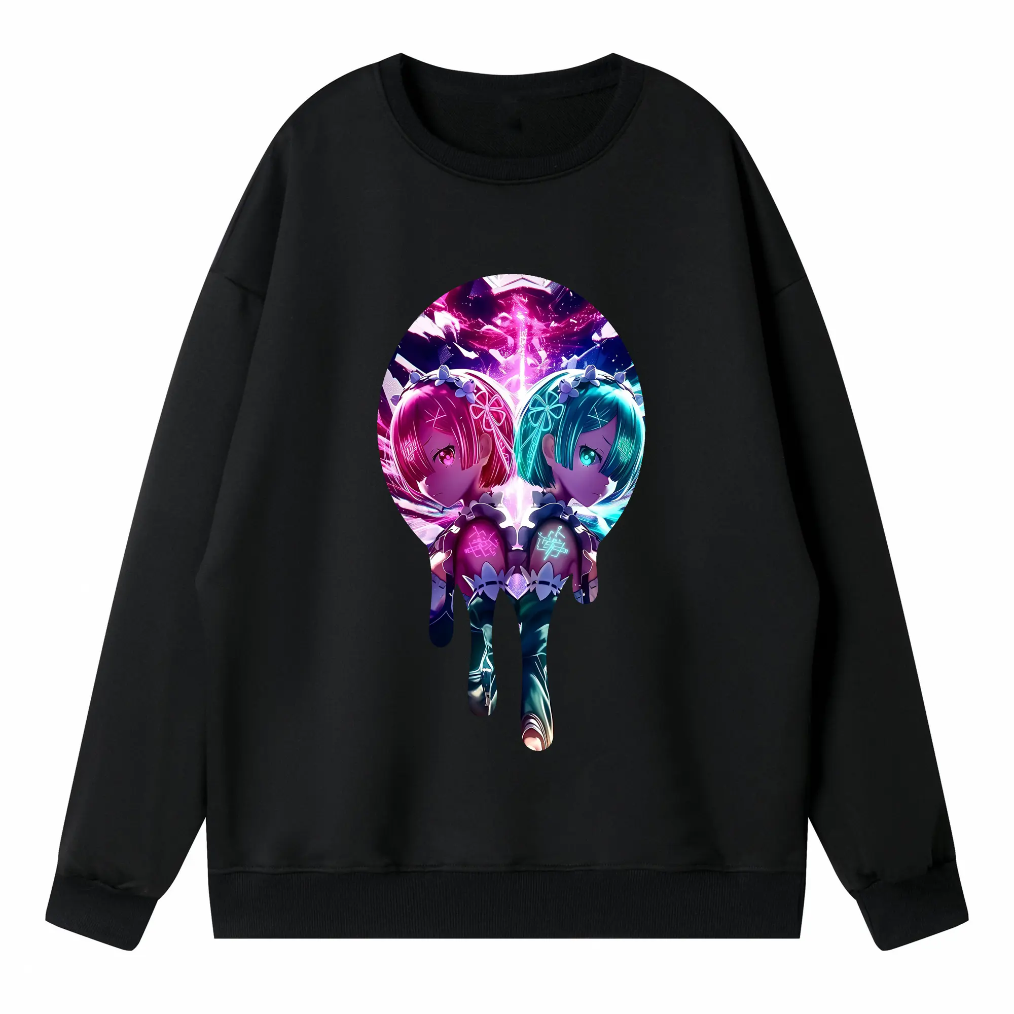 リゼロ グッズ ラム - 高品質 クルーネック スウェット ・ コットン59% ポリエステル41% ・ ユニセックス 長袖 トレーナー ・ カジュアル デイリー スポーツ 散歩用