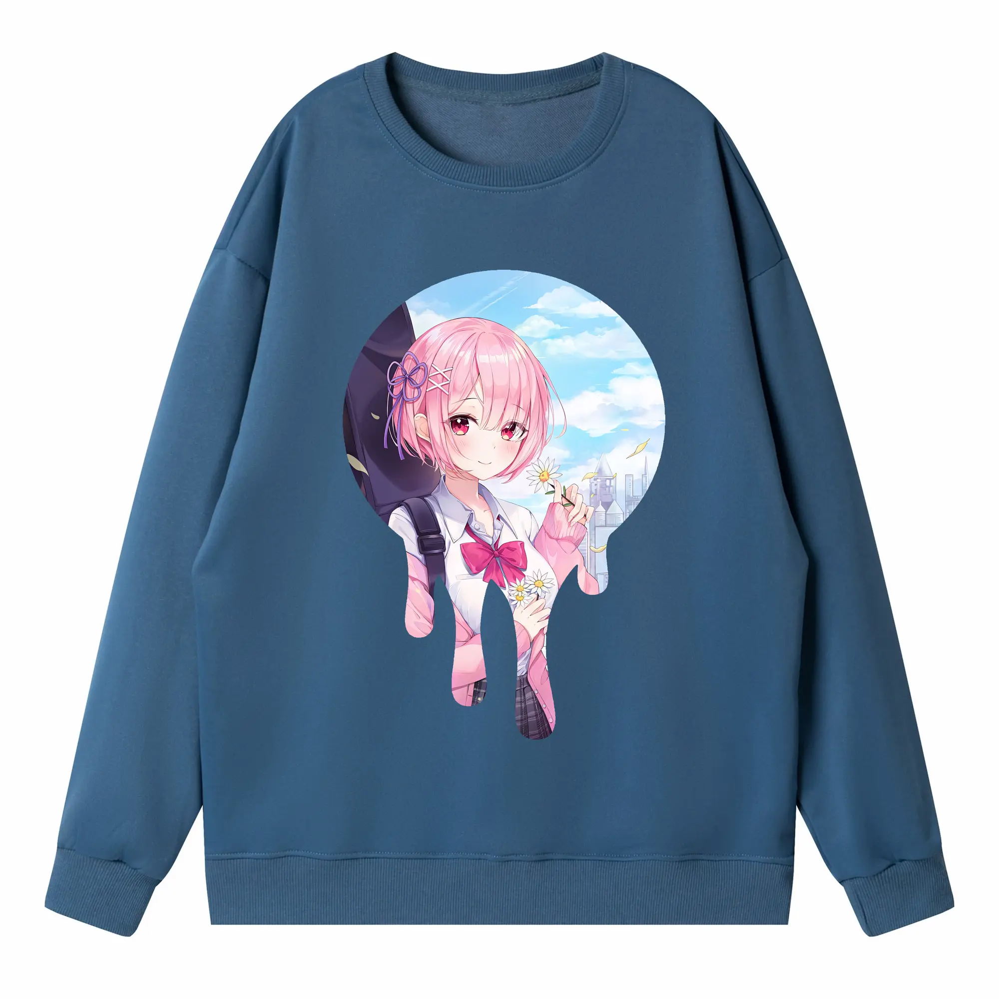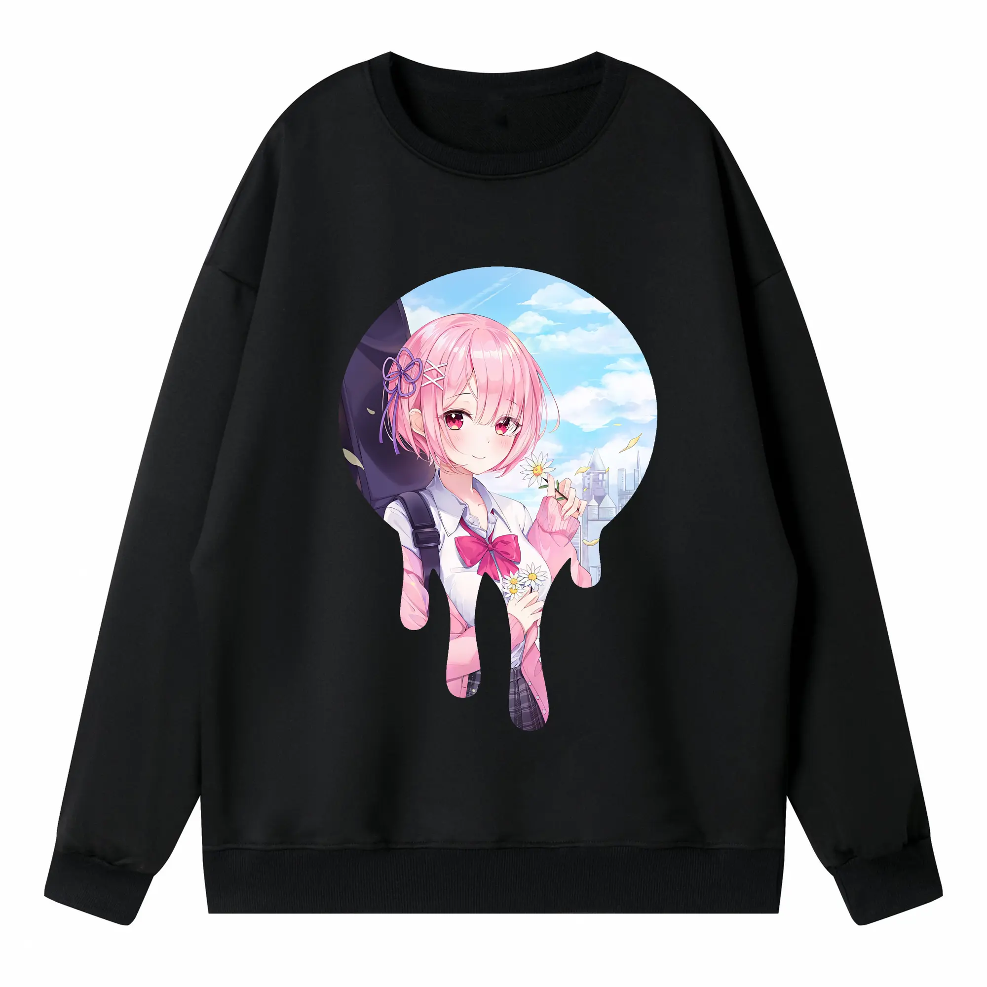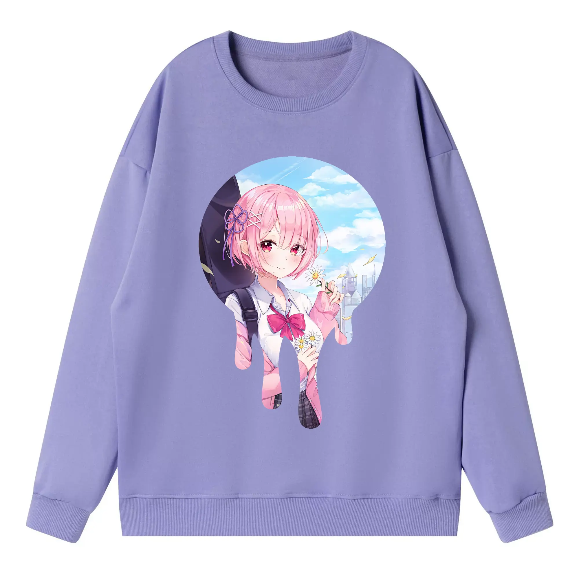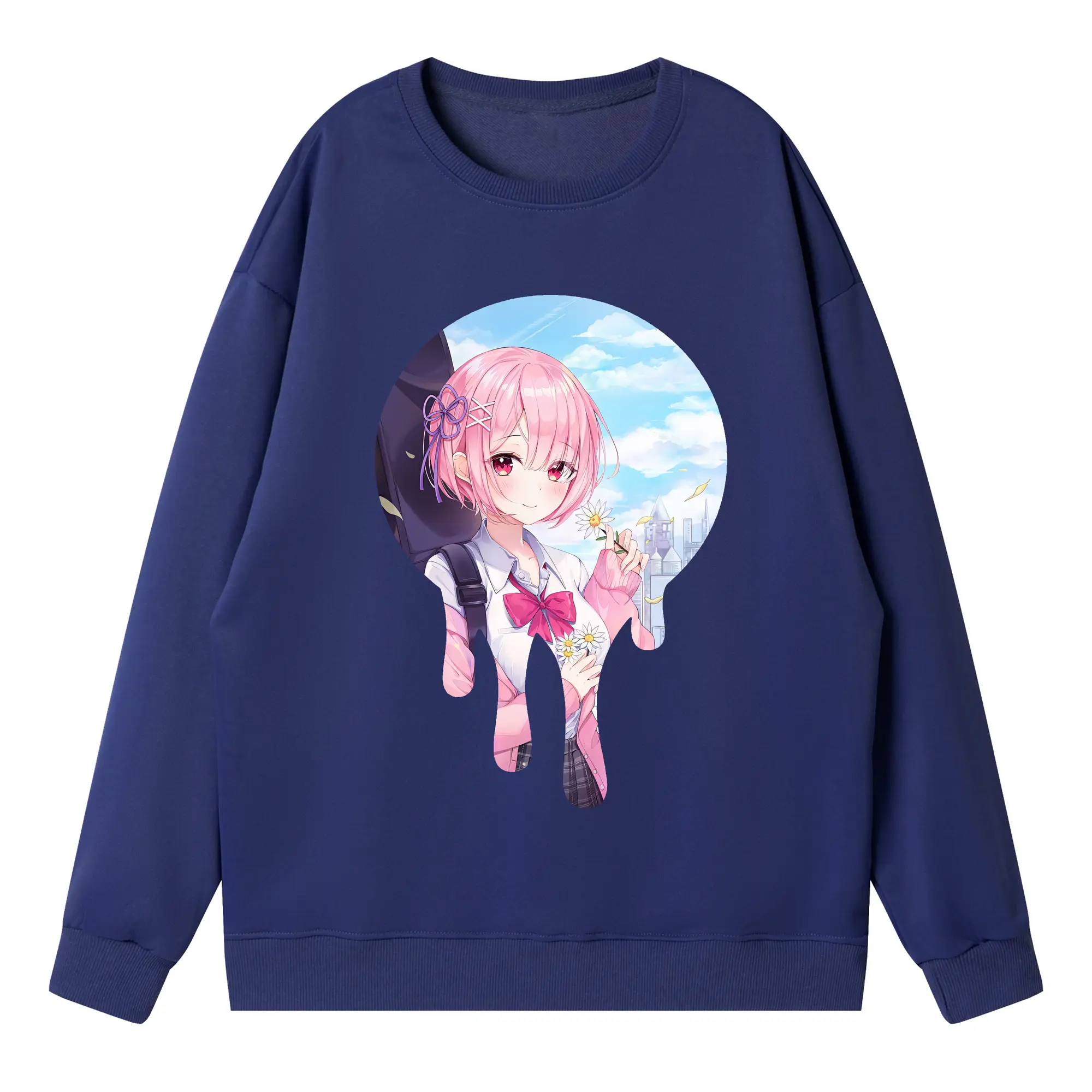 リゼロ グッズ ラム - 高品質 クルーネック スウェット ・ コットン59% ポリエステル41% ・ ユニセックス 長袖 トレーナー ・ カジュアル デイリー スポーツ 散歩用
