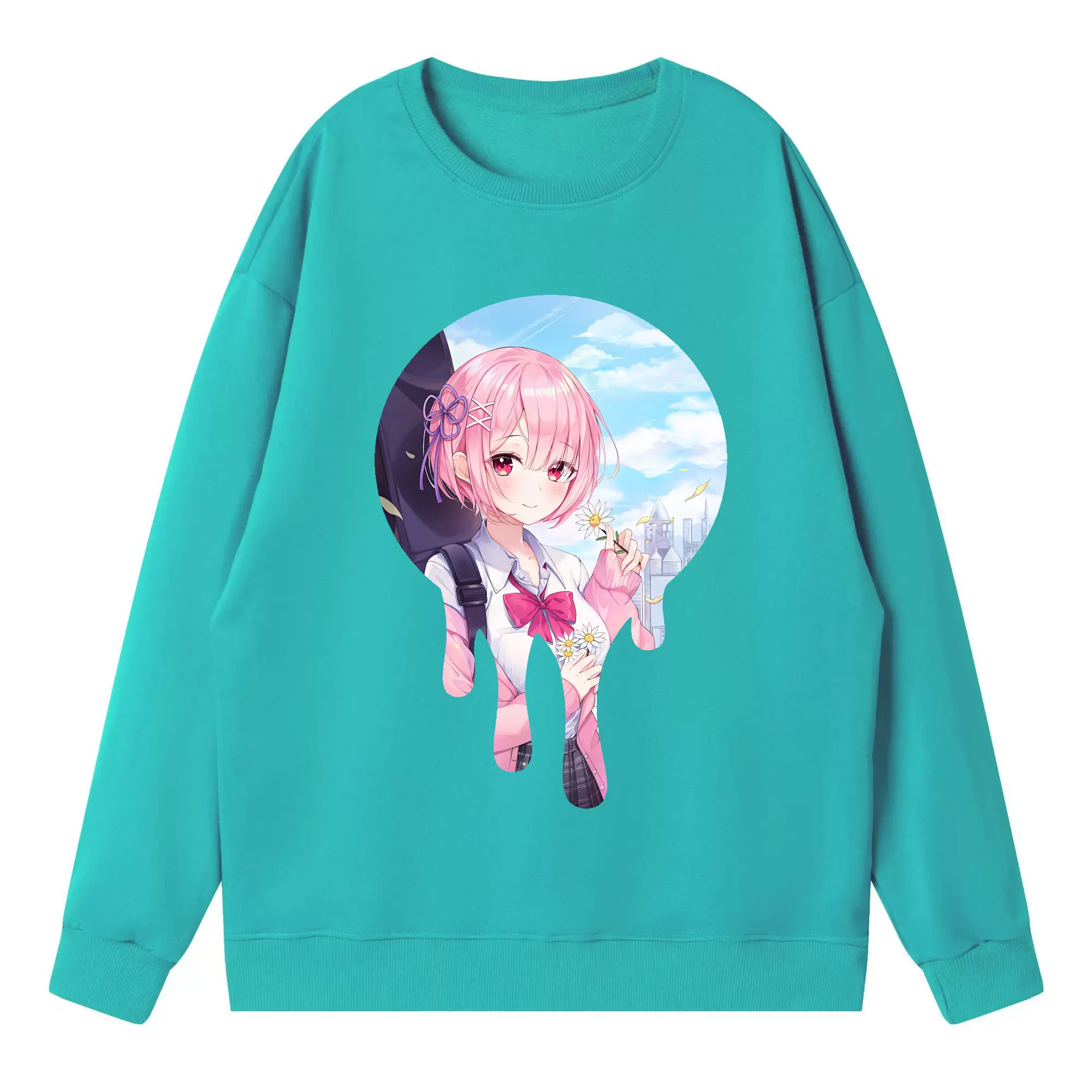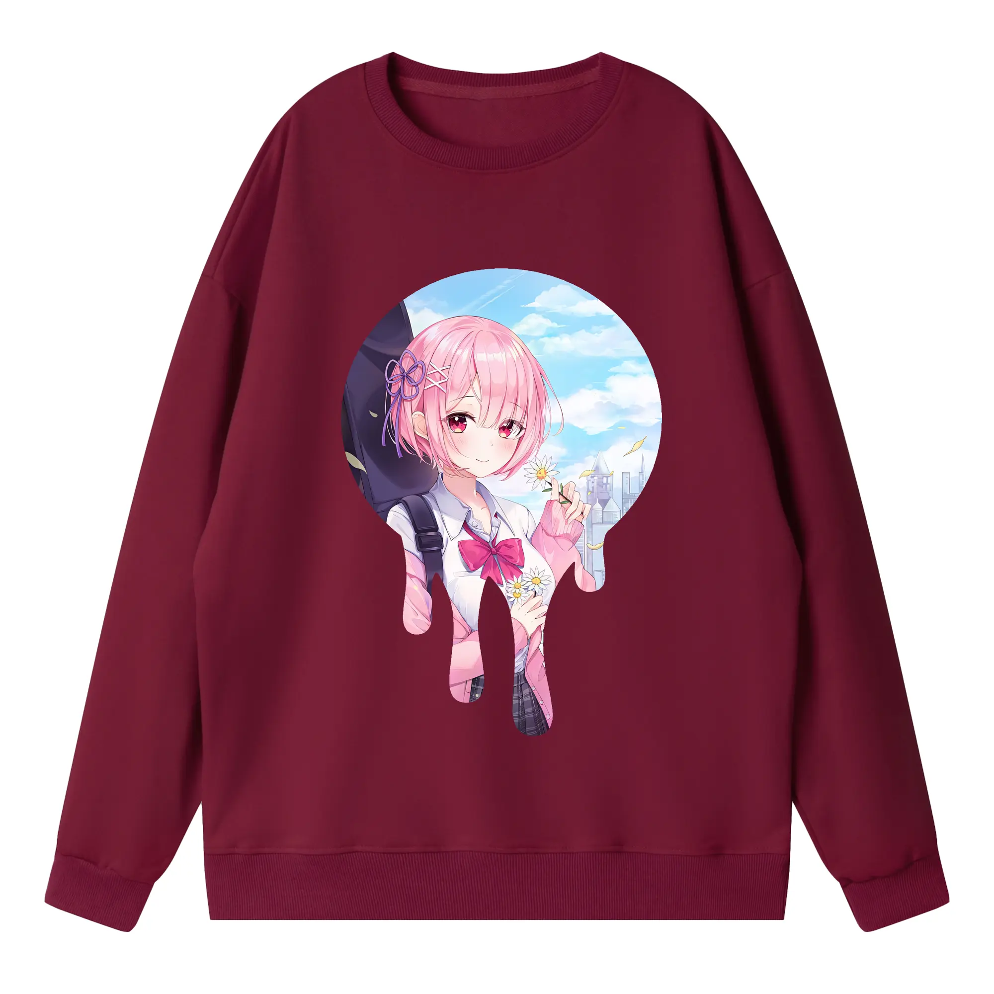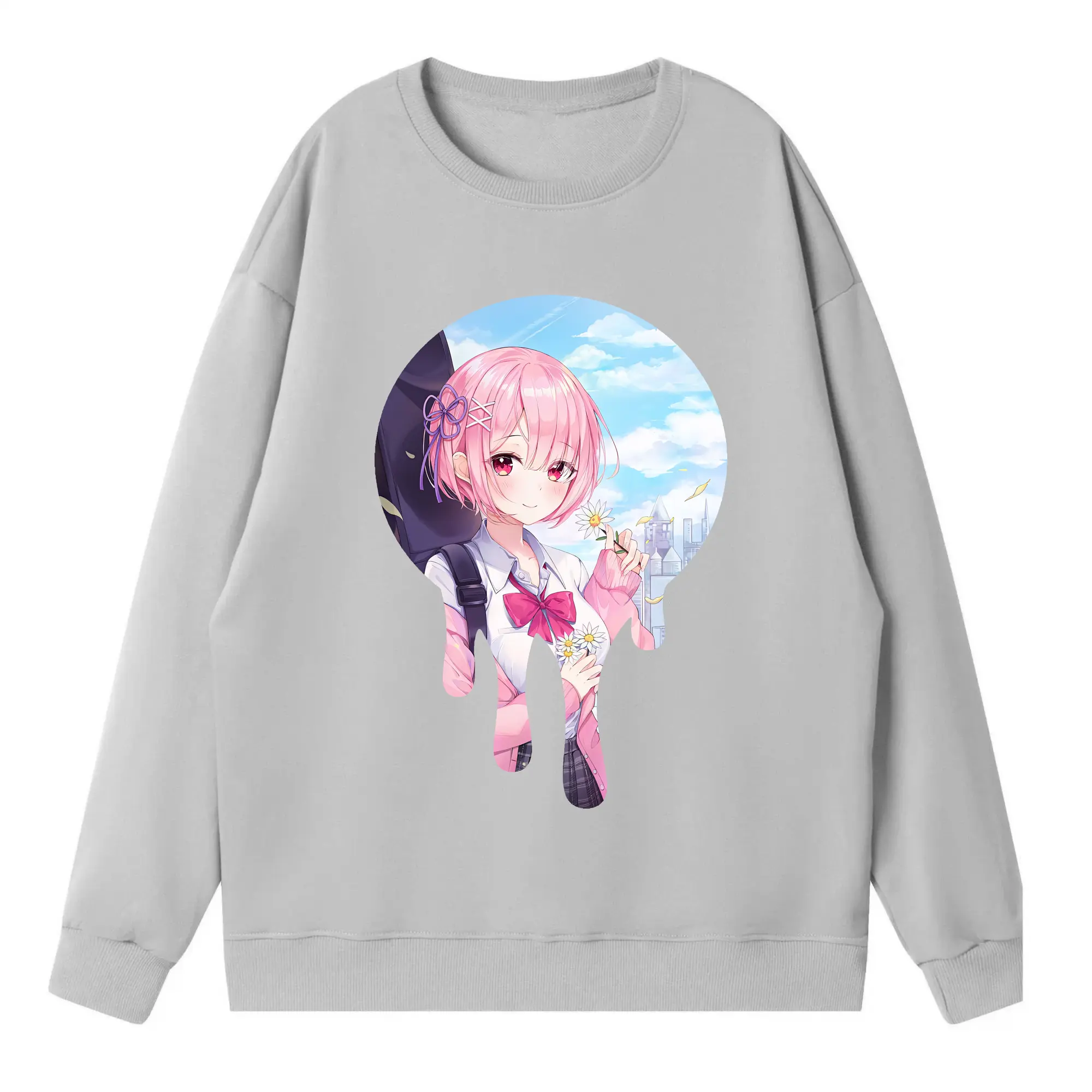 リゼロ グッズ ラム - 高品質 クルーネック スウェット ・ コットン59% ポリエステル41% ・ ユニセックス 長袖 トレーナー ・ カジュアル デイリー スポーツ 散歩用