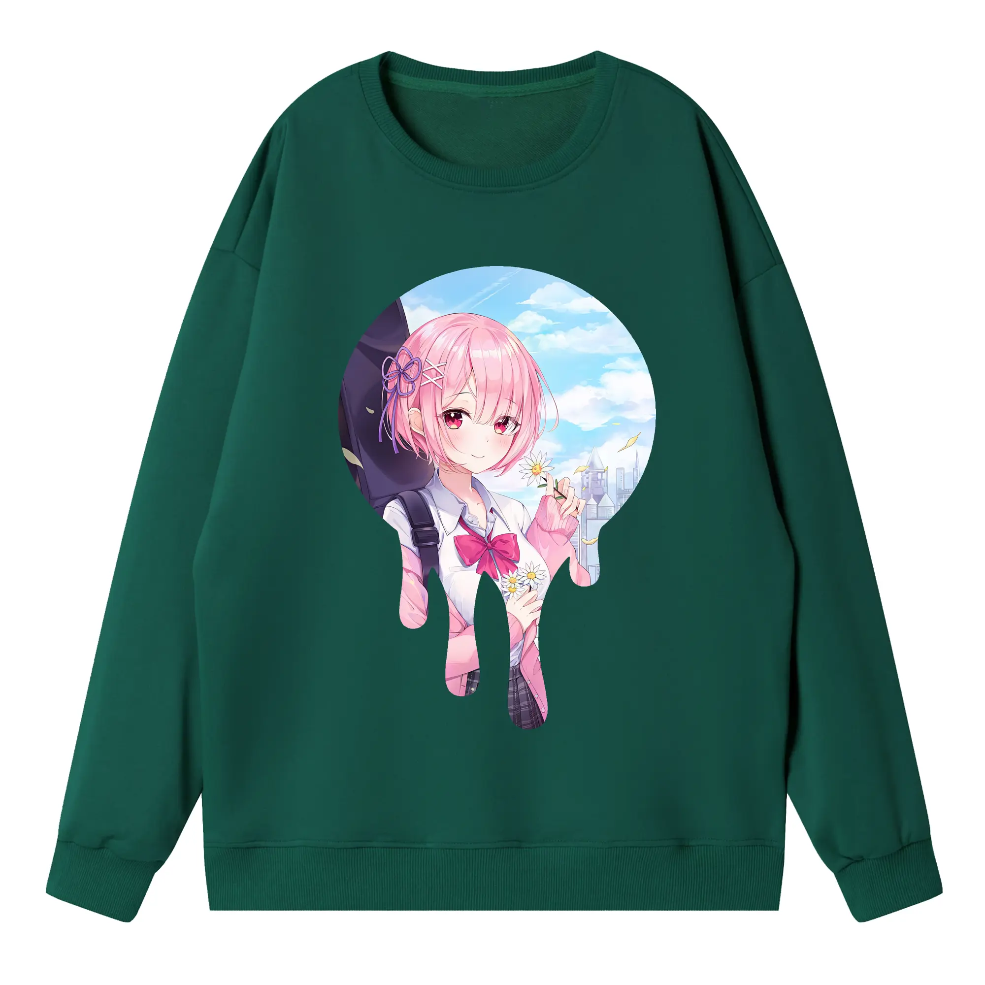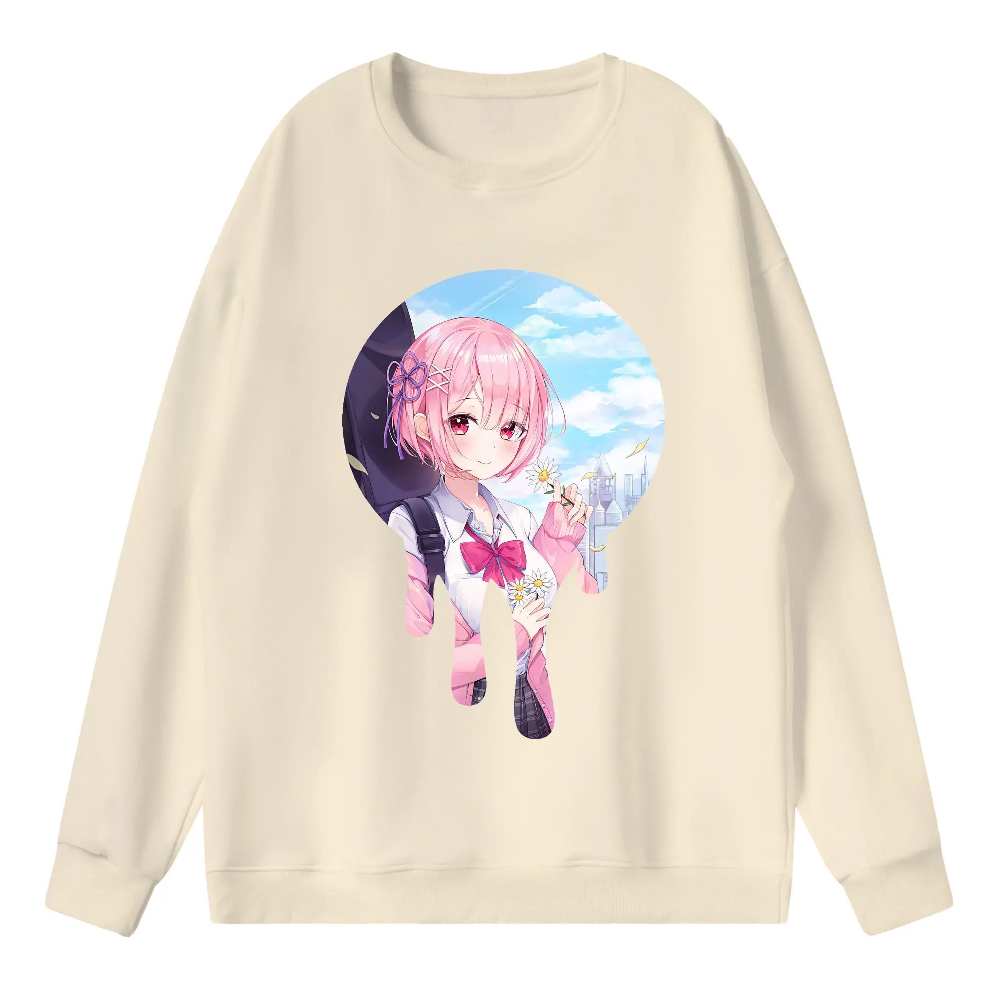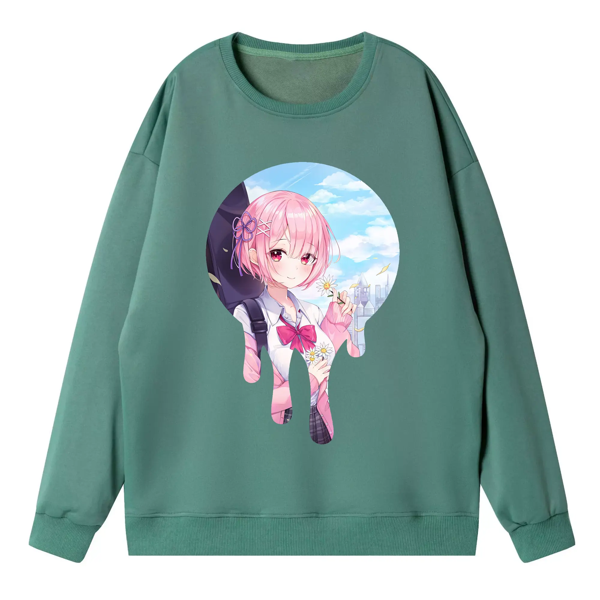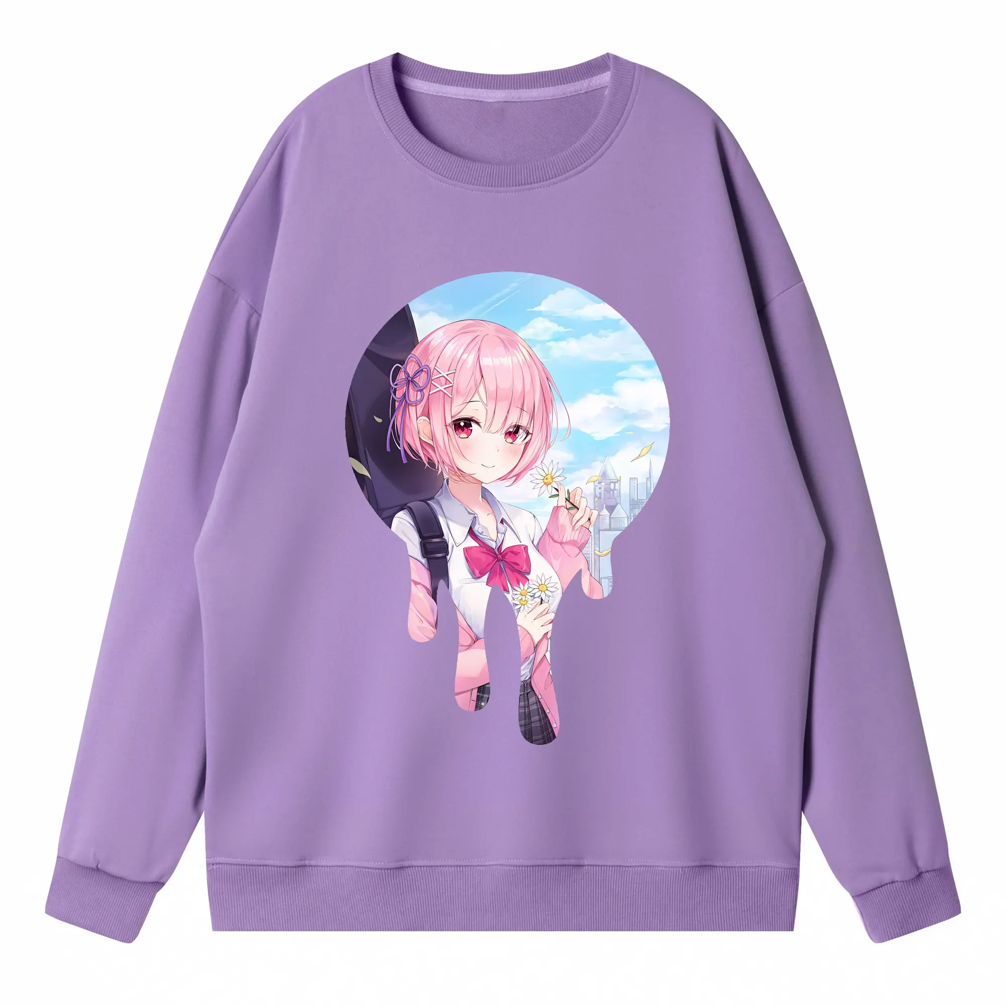 リゼロ グッズ ラム - 高品質 クルーネック スウェット ・ コットン59% ポリエステル41% ・ ユニセックス 長袖 トレーナー ・ カジュアル デイリー スポーツ 散歩用