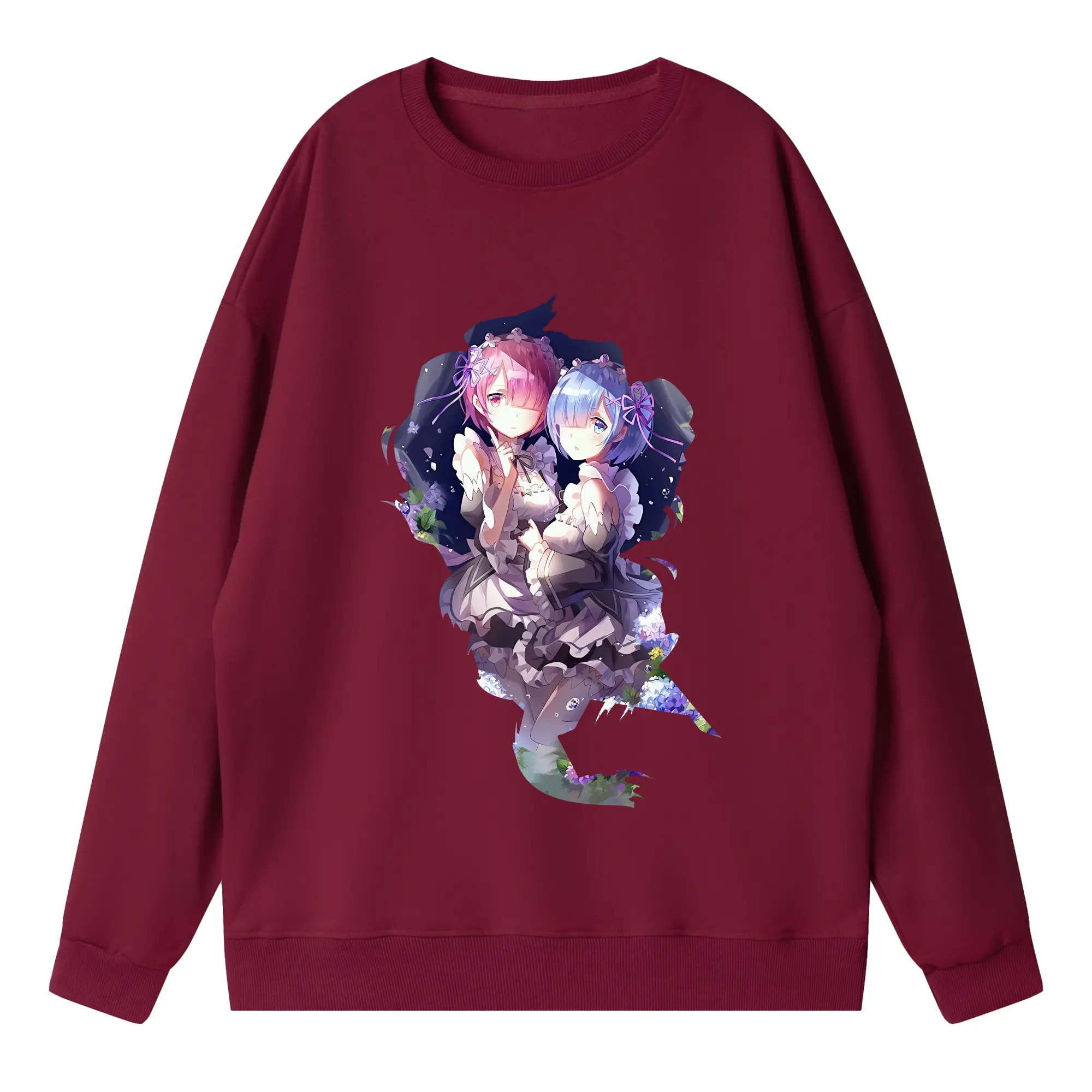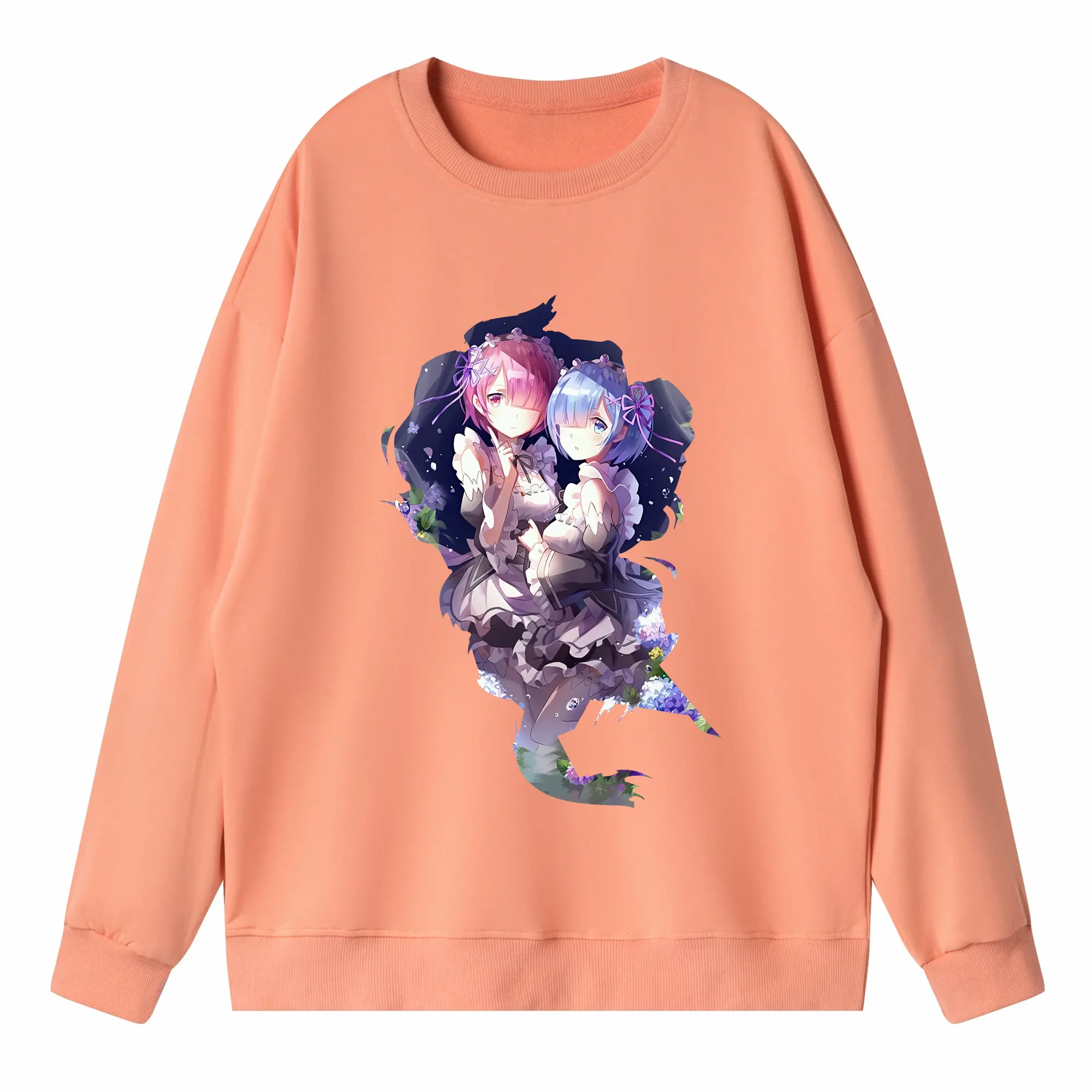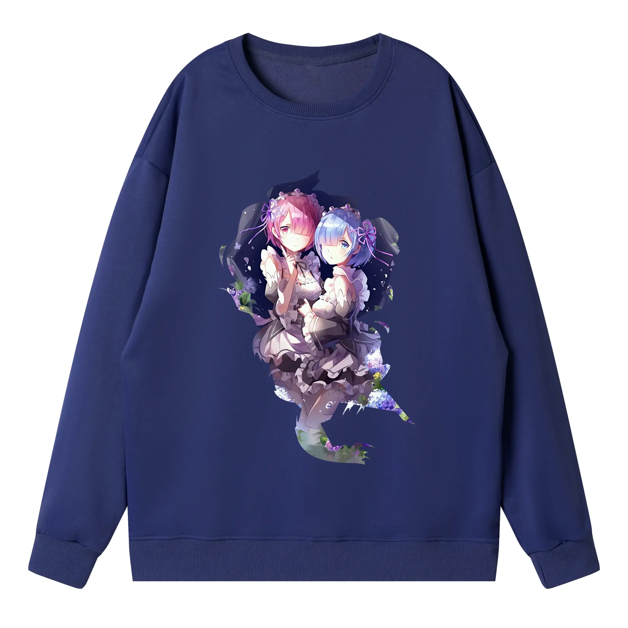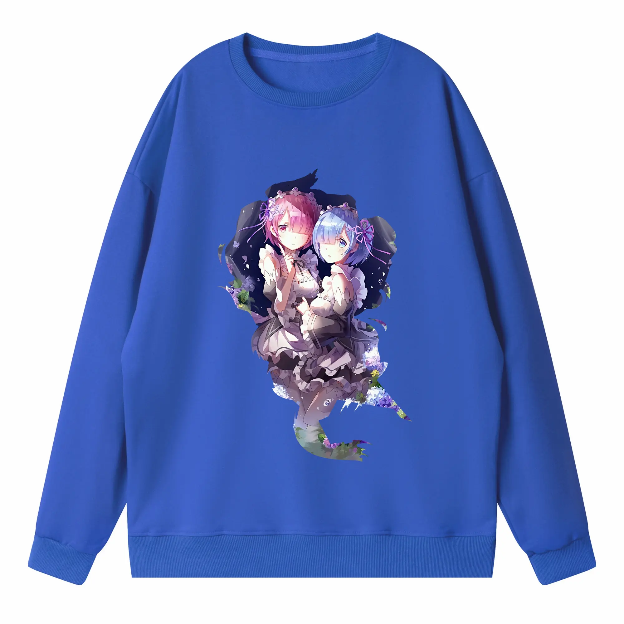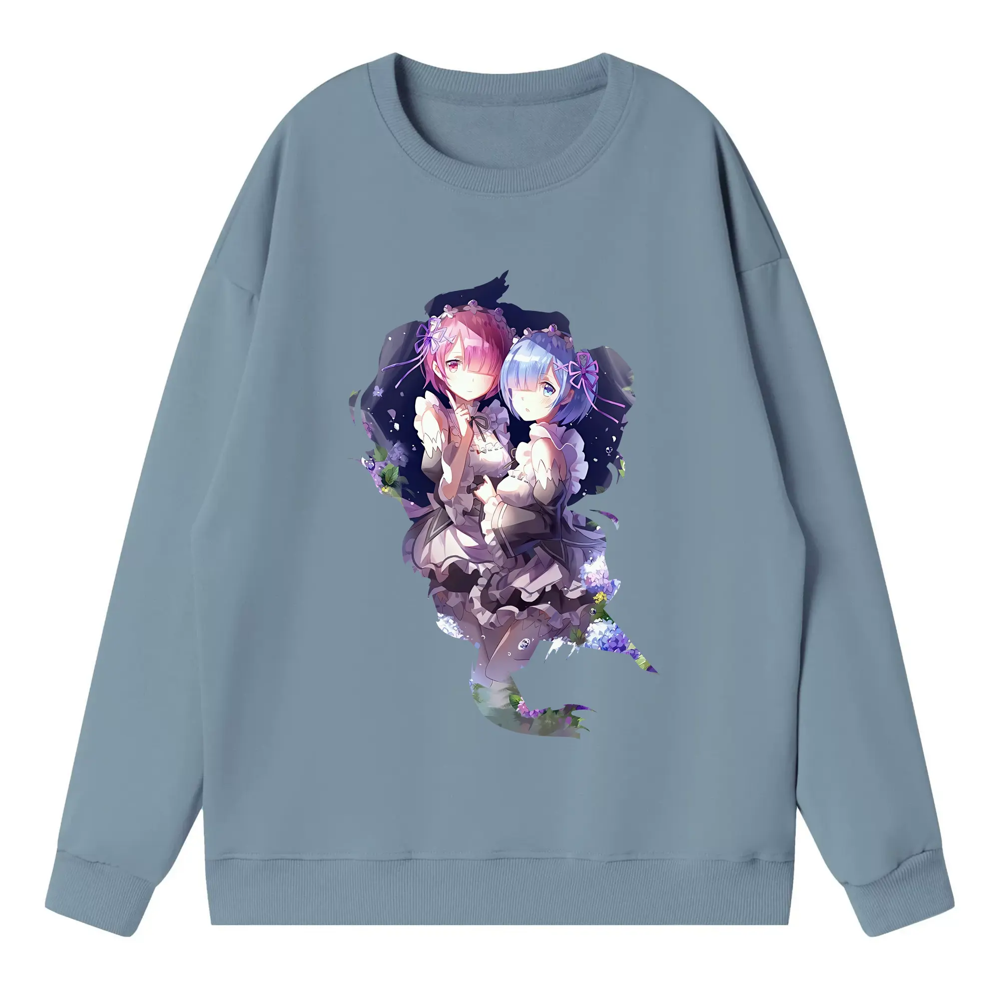 リゼロ グッズ ラム - 高品質 クルーネック スウェット ・ コットン59% ポリエステル41% ・ ユニセックス 長袖 トレーナー ・ カジュアル デイリー スポーツ 散歩用
