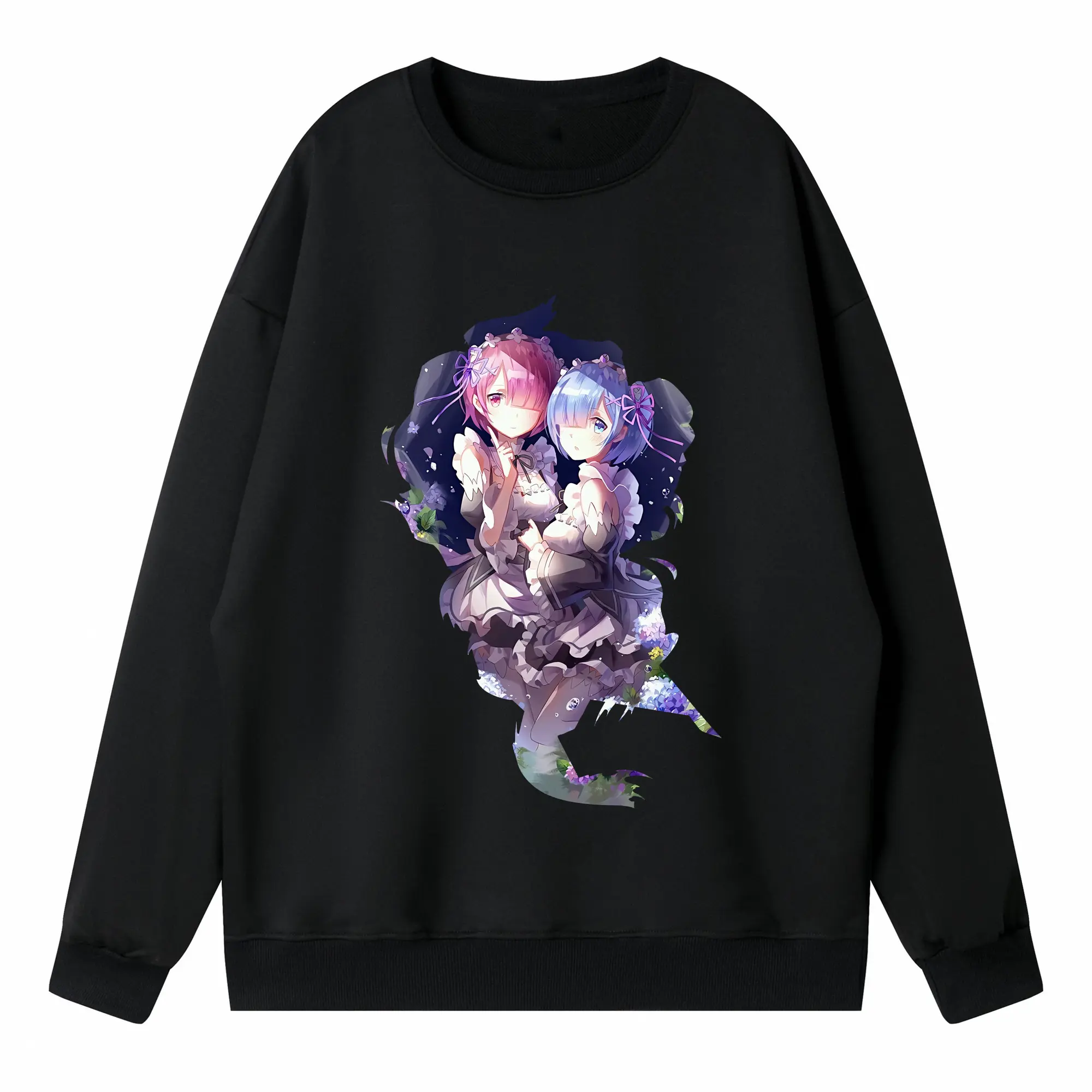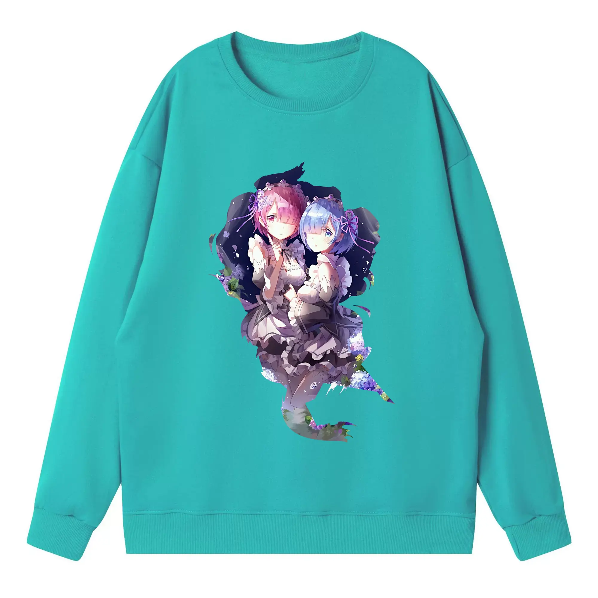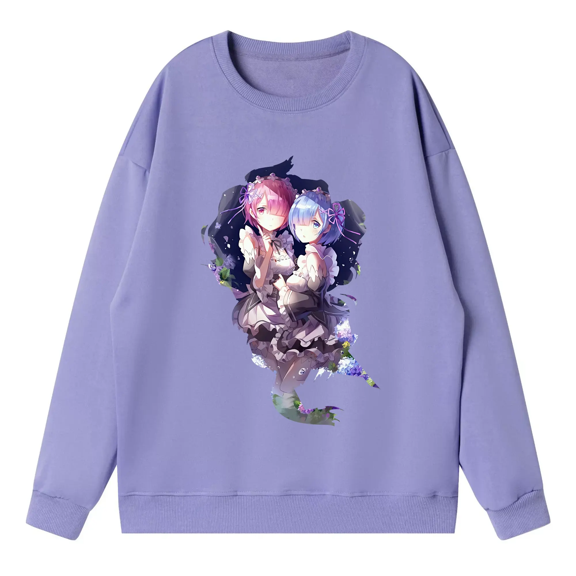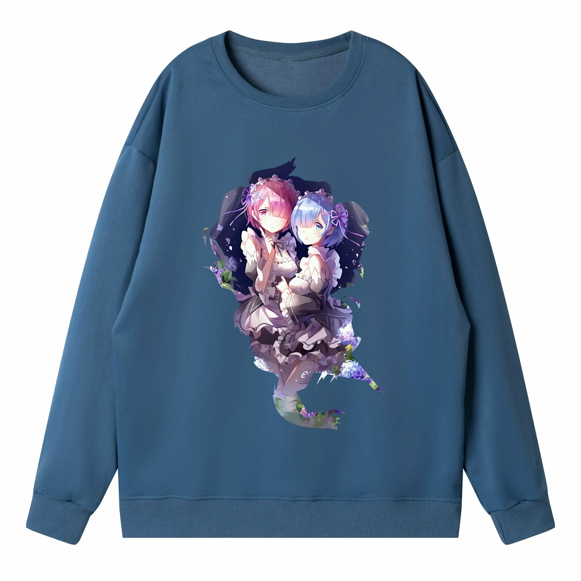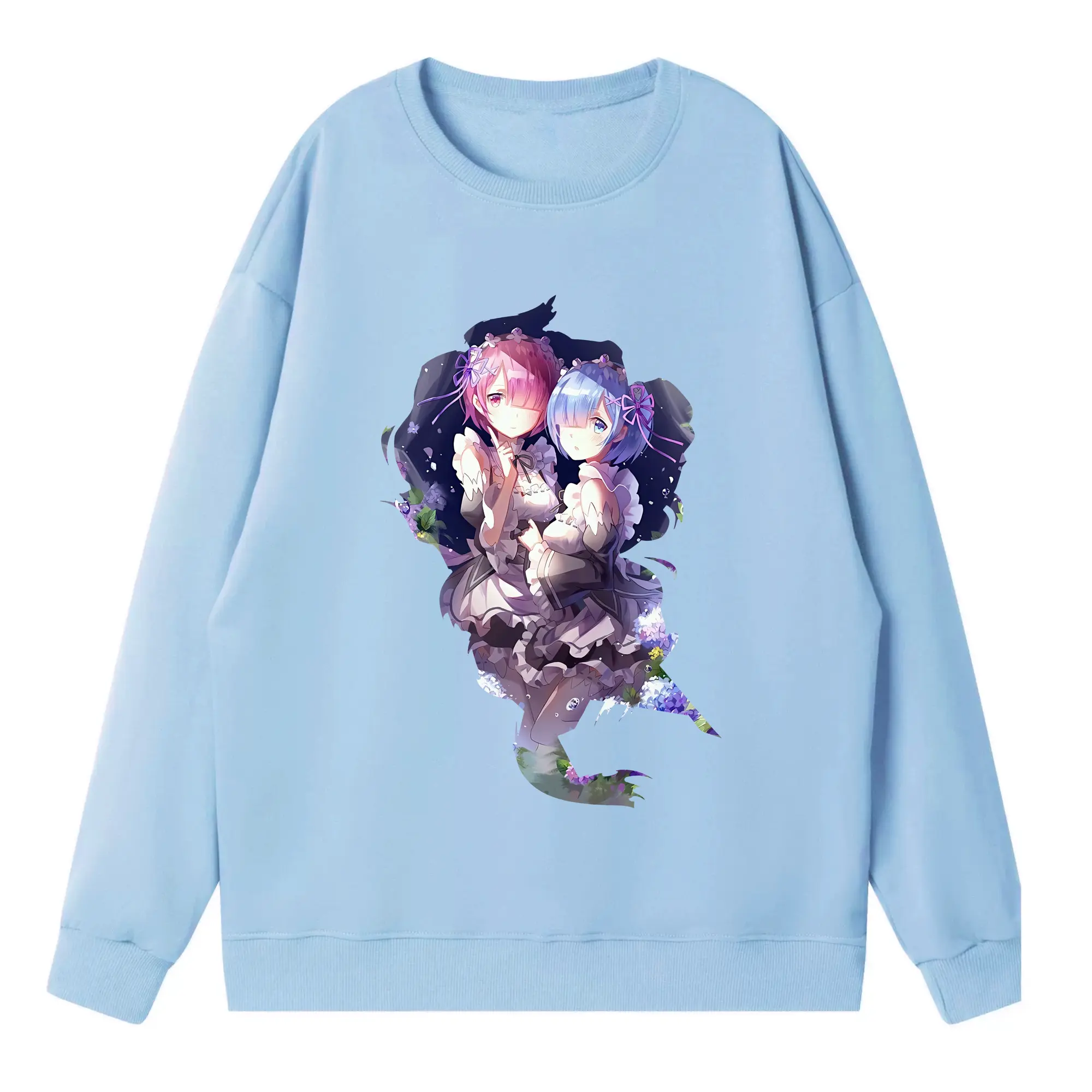 リゼロ グッズ ラム - 高品質 クルーネック スウェット ・ コットン59% ポリエステル41% ・ ユニセックス 長袖 トレーナー ・ カジュアル デイリー スポーツ 散歩用