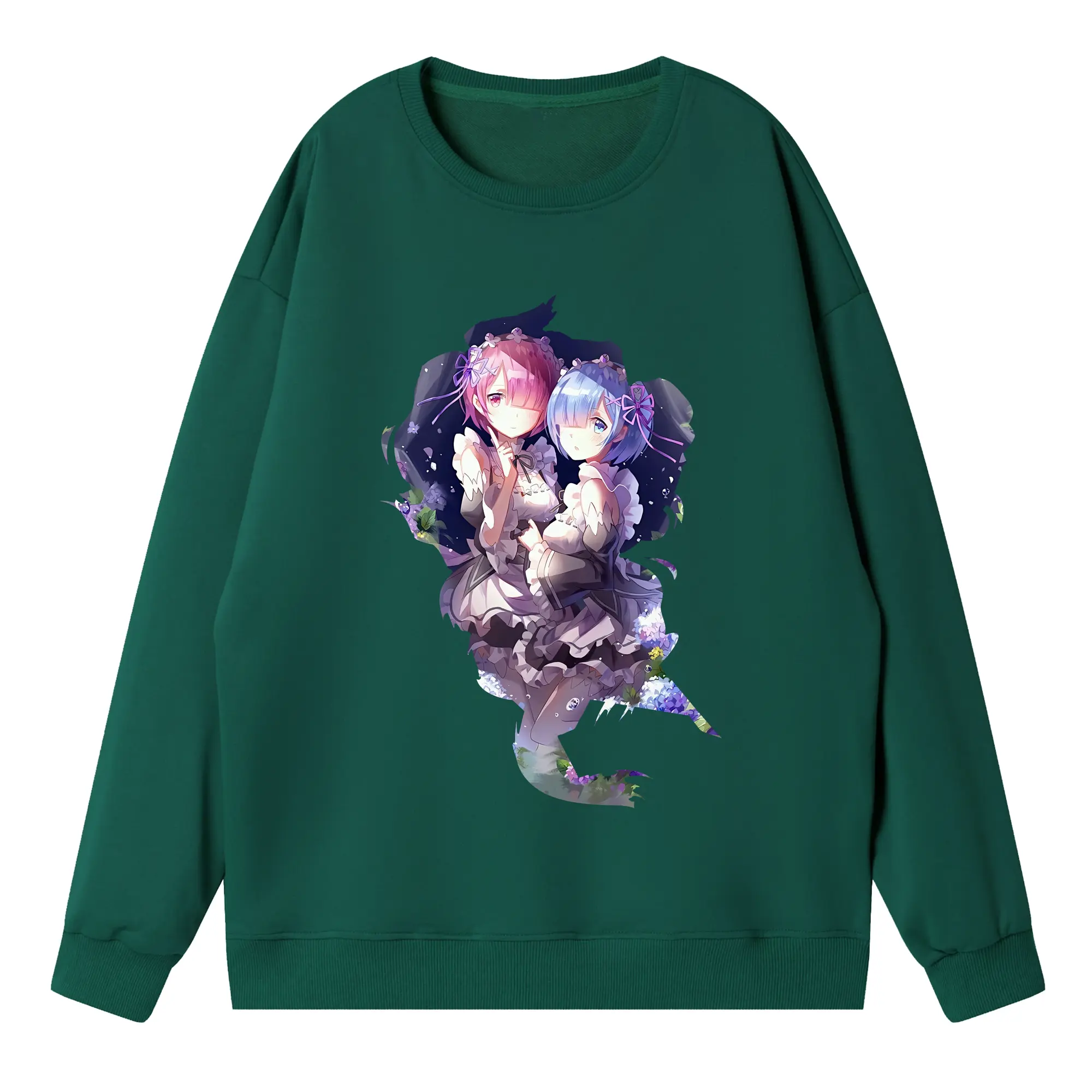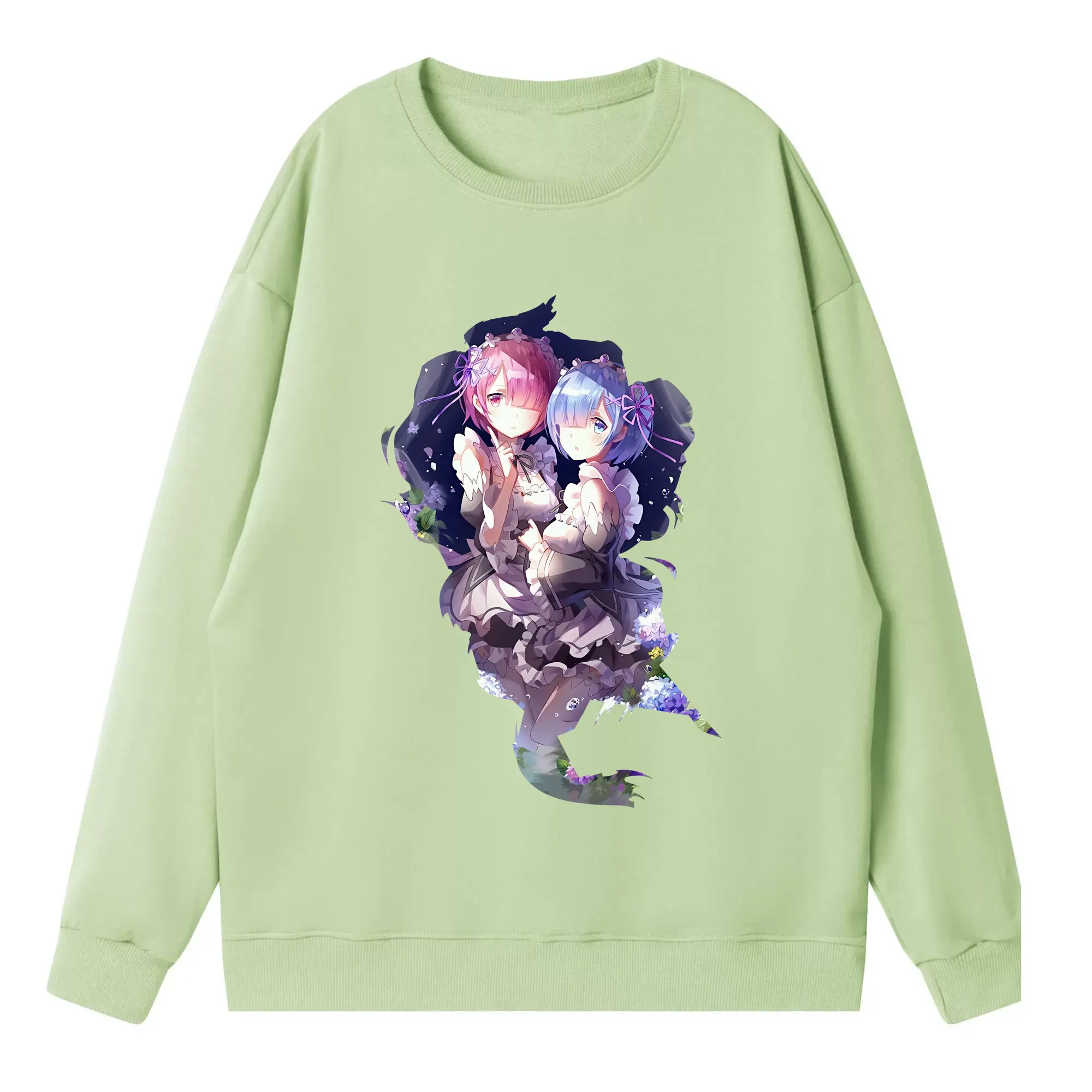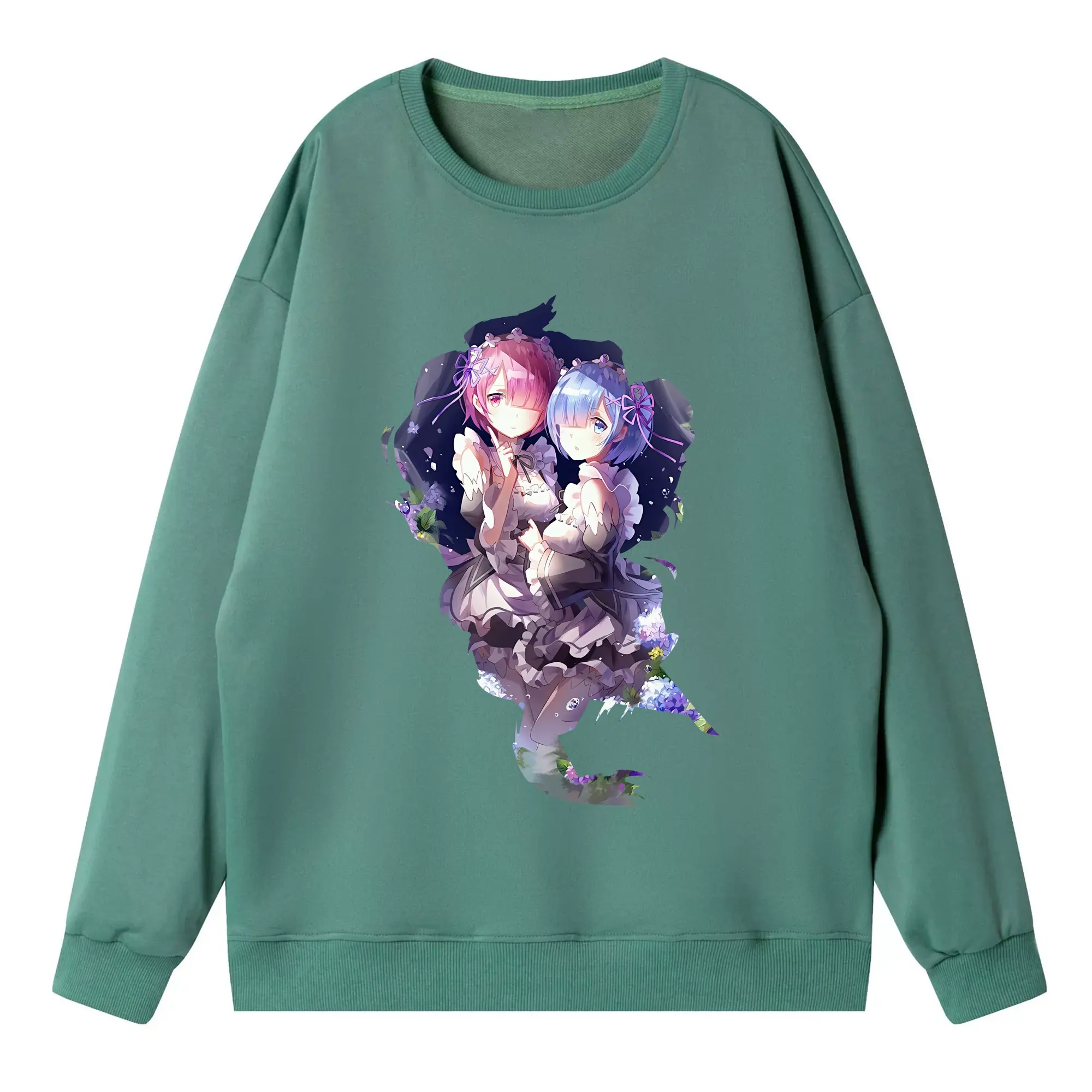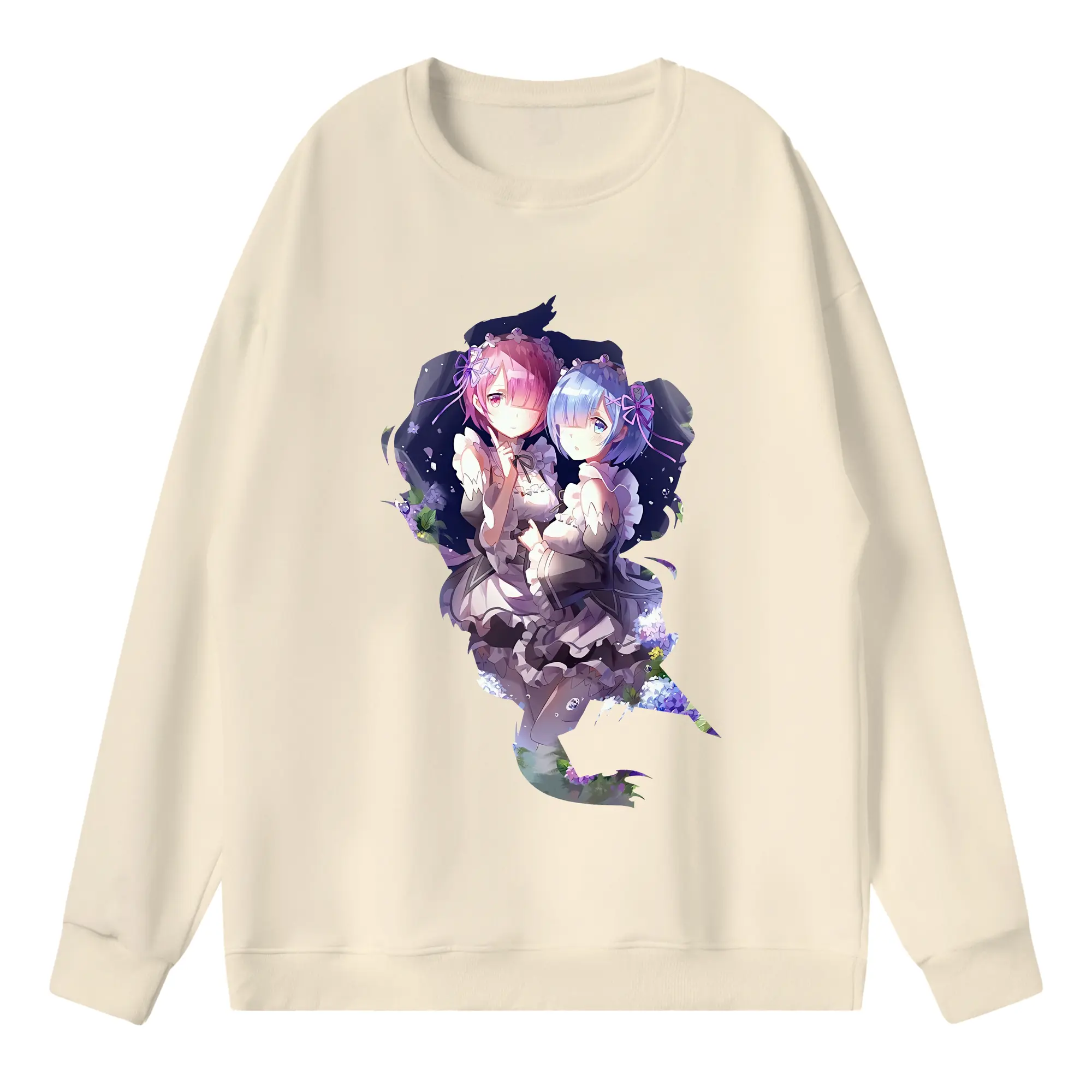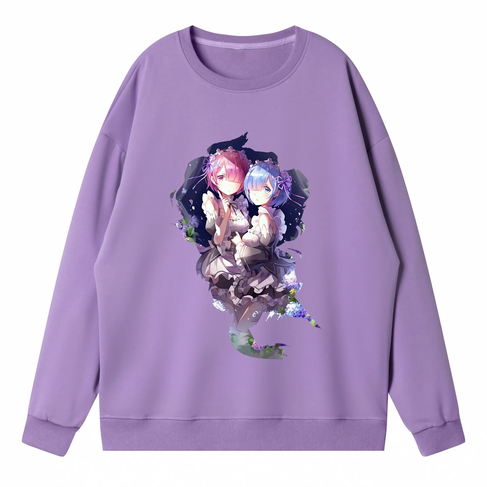 リゼロ グッズ ラム - 高品質 クルーネック スウェット ・ コットン59% ポリエステル41% ・ ユニセックス 長袖 トレーナー ・ カジュアル デイリー スポーツ 散歩用