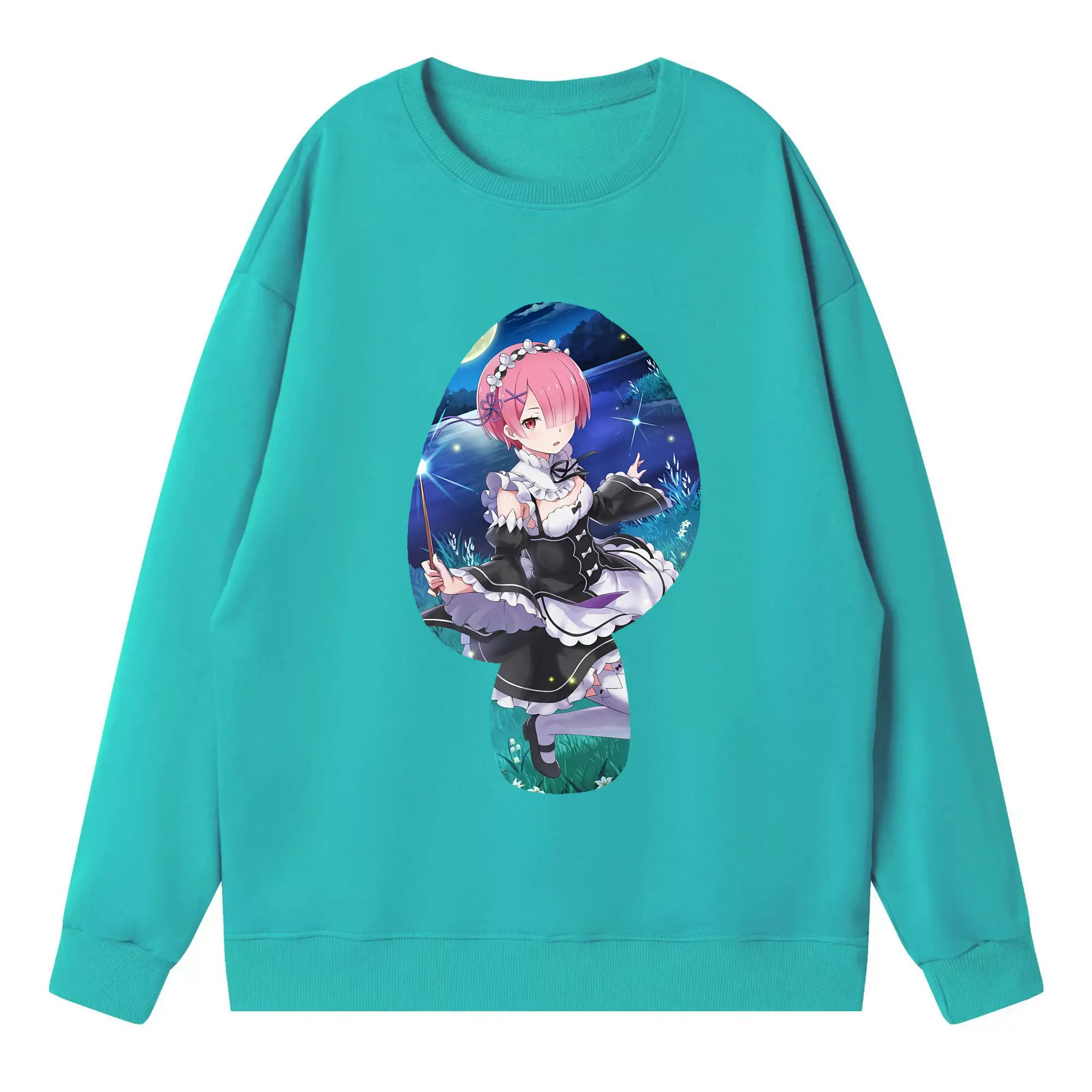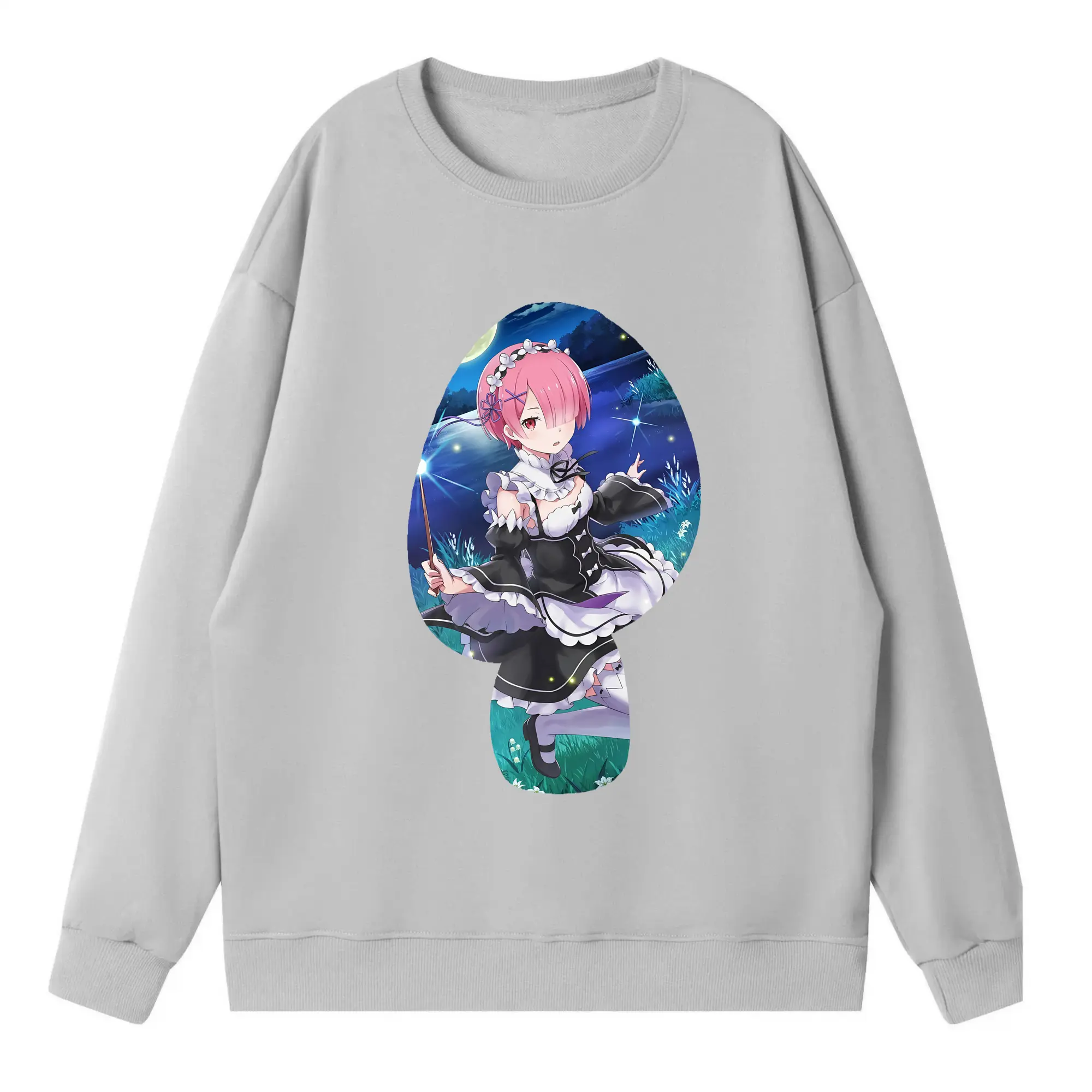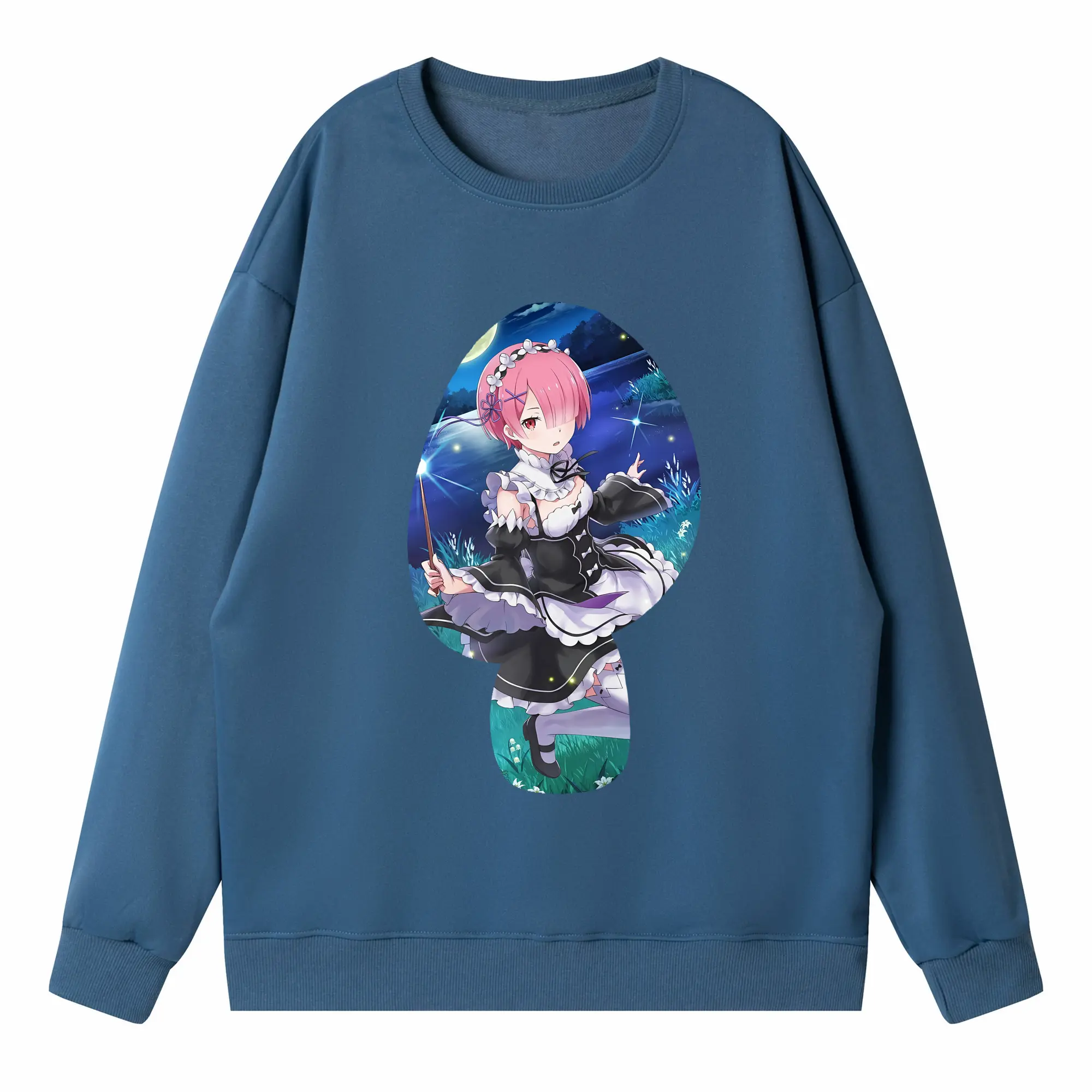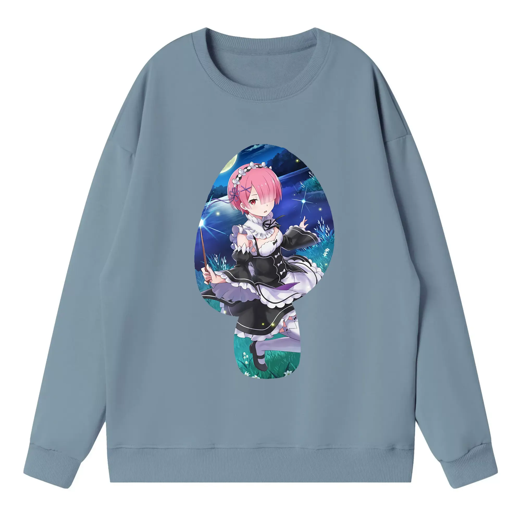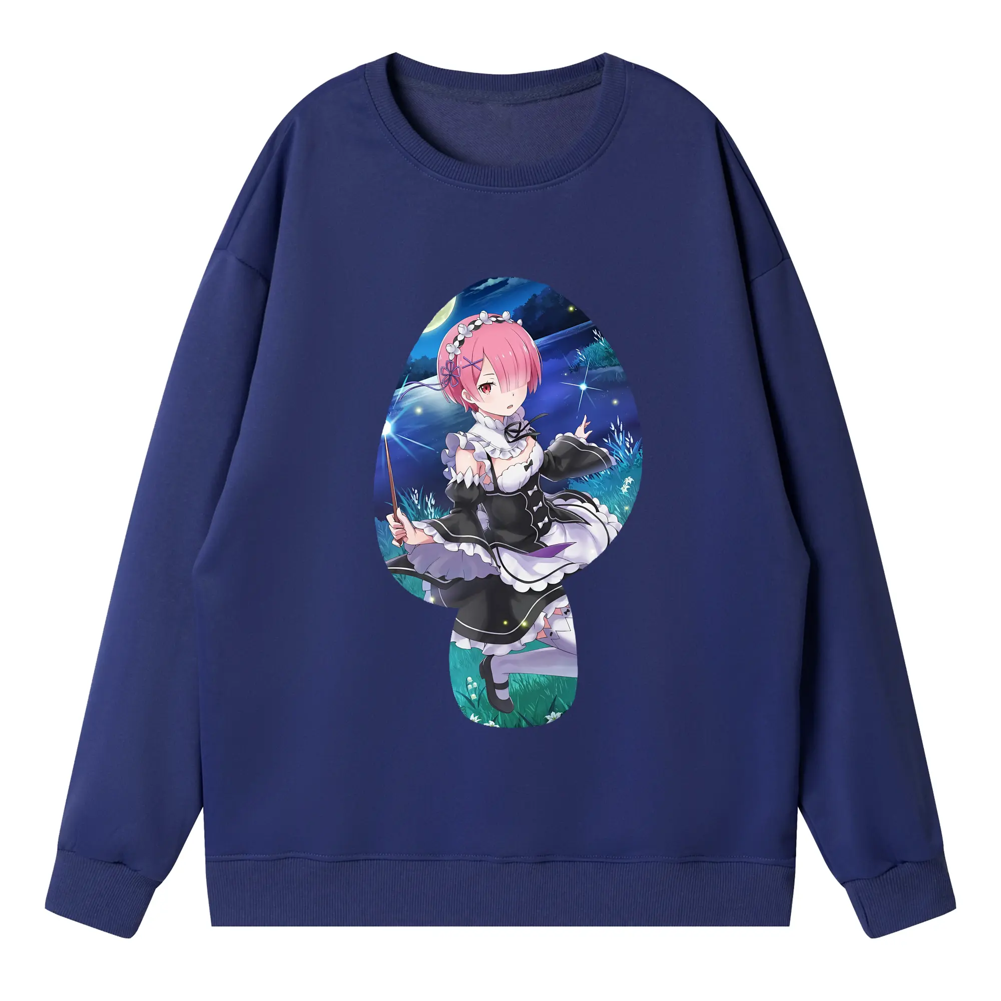 リゼロ グッズ ラム - 高品質 クルーネック スウェット ・ コットン59% ポリエステル41% ・ ユニセックス 長袖 トレーナー ・ カジュアル デイリー スポーツ 散歩用