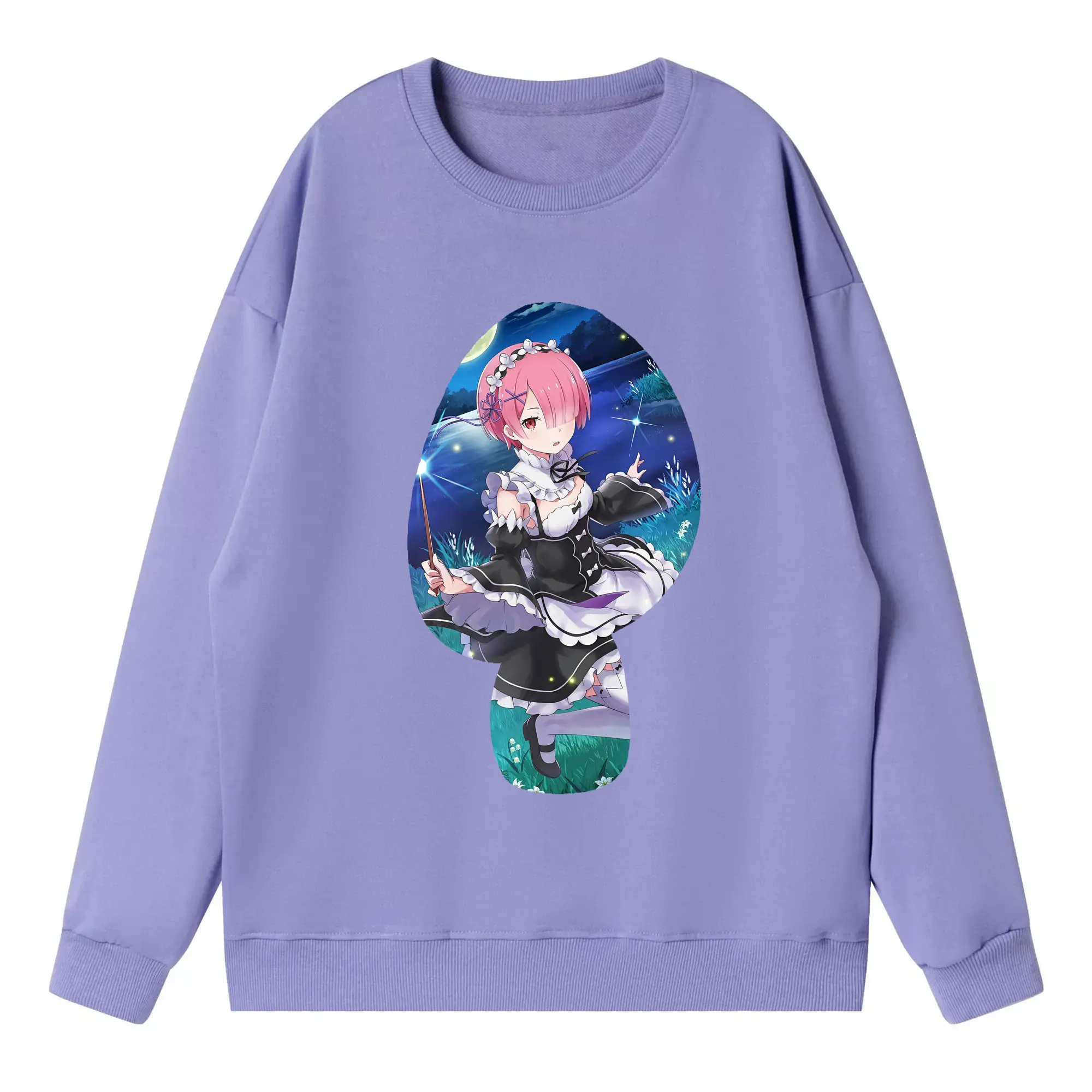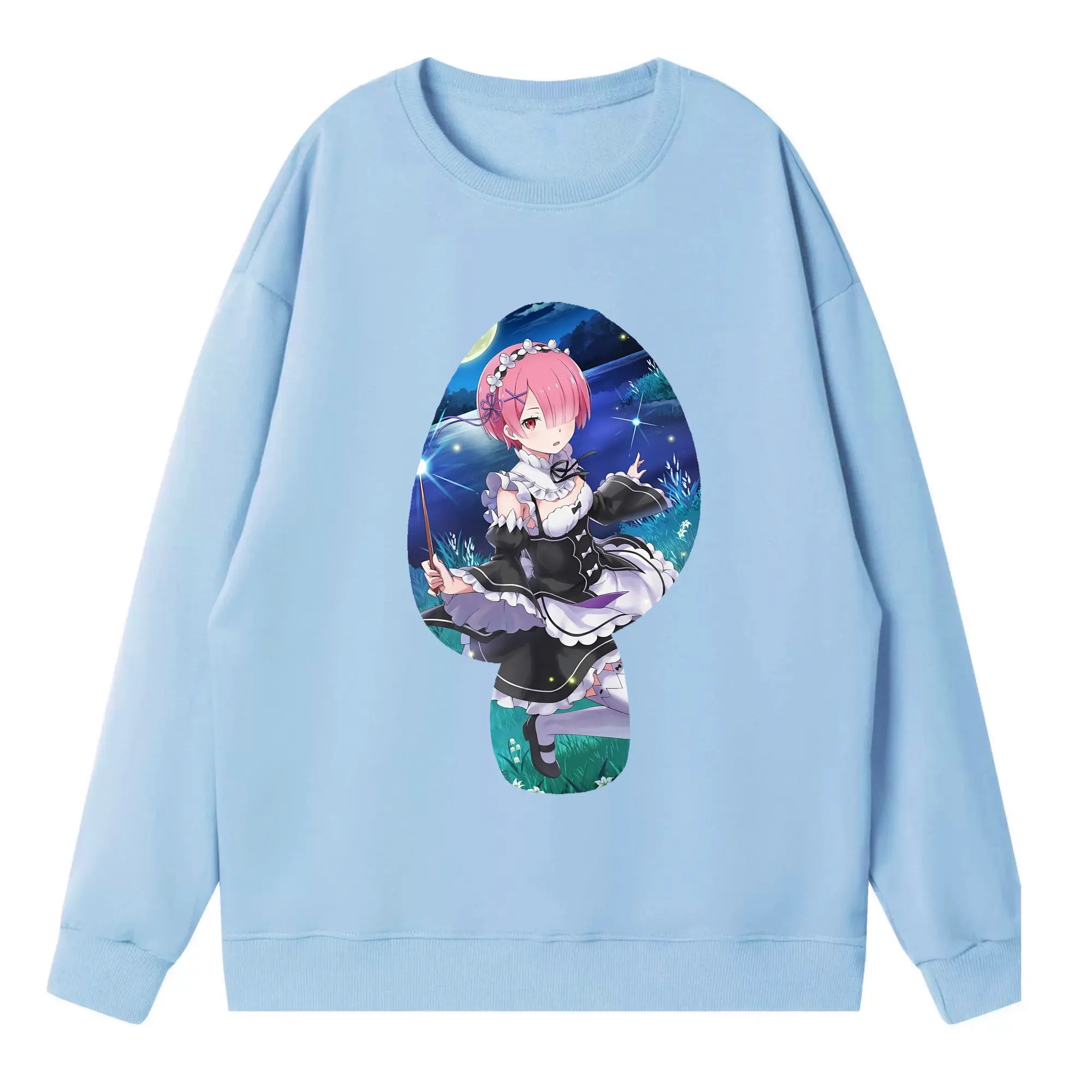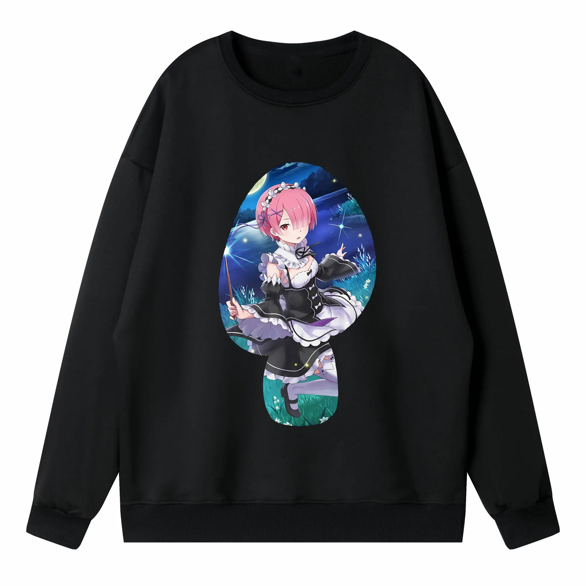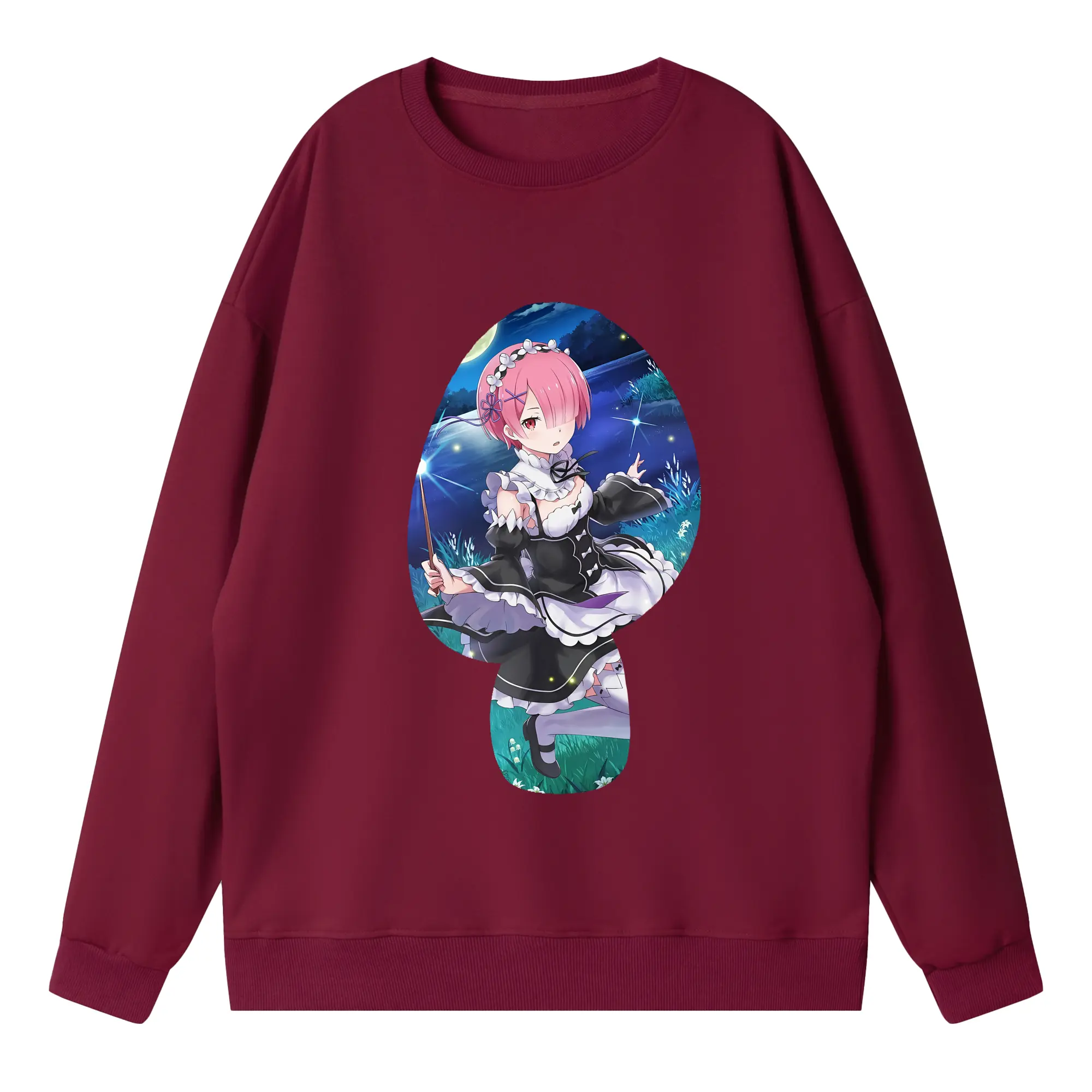 リゼロ グッズ ラム - 高品質 クルーネック スウェット ・ コットン59% ポリエステル41% ・ ユニセックス 長袖 トレーナー ・ カジュアル デイリー スポーツ 散歩用
