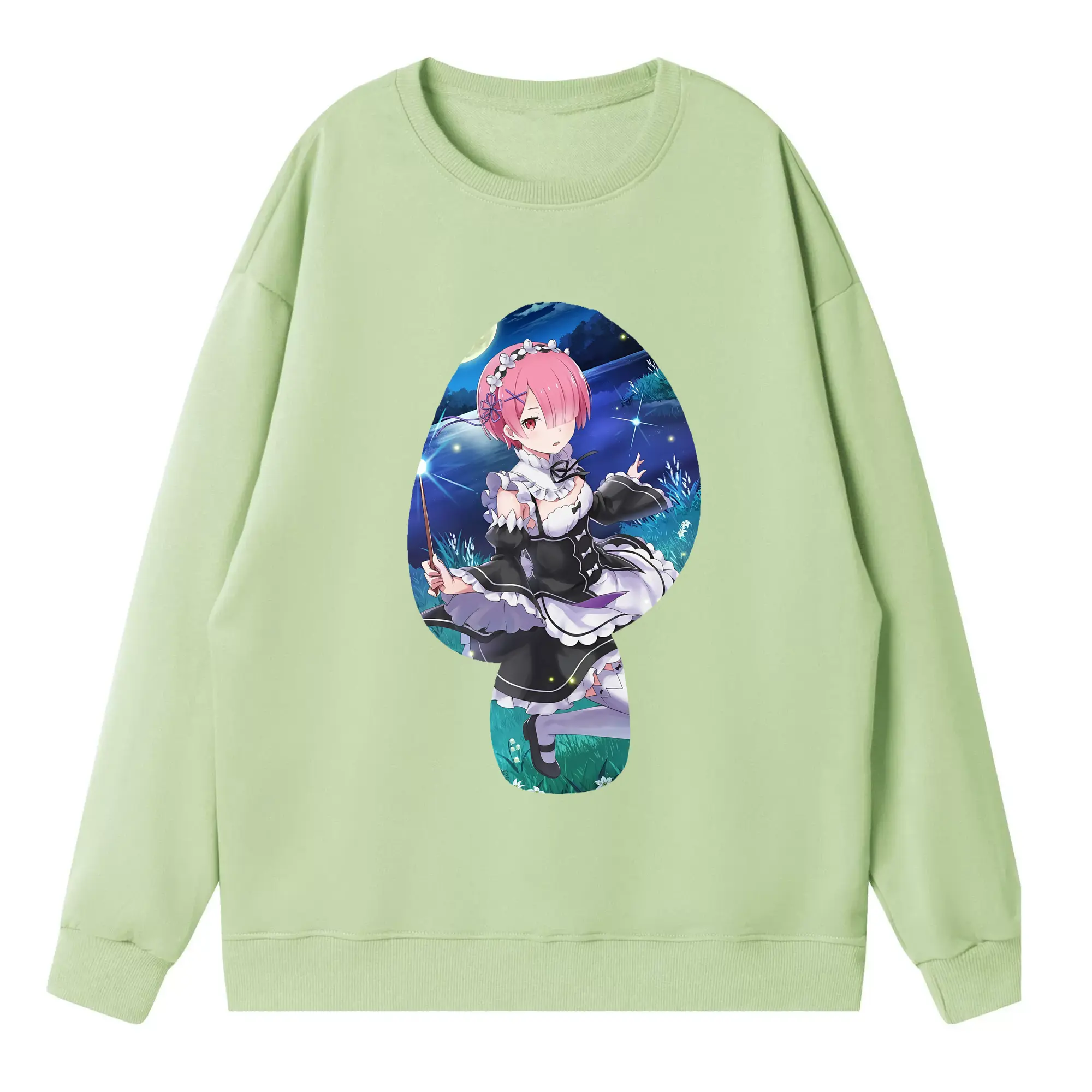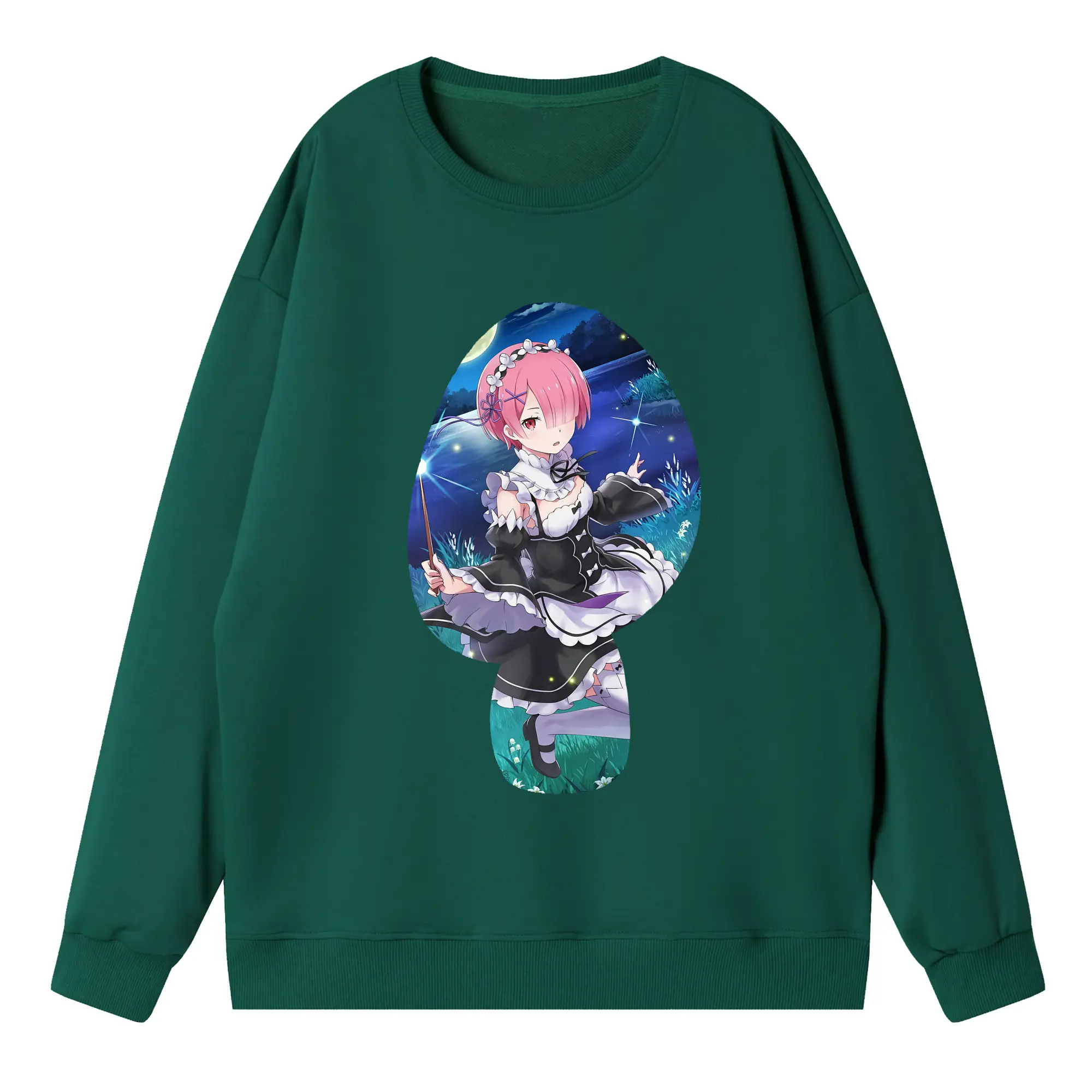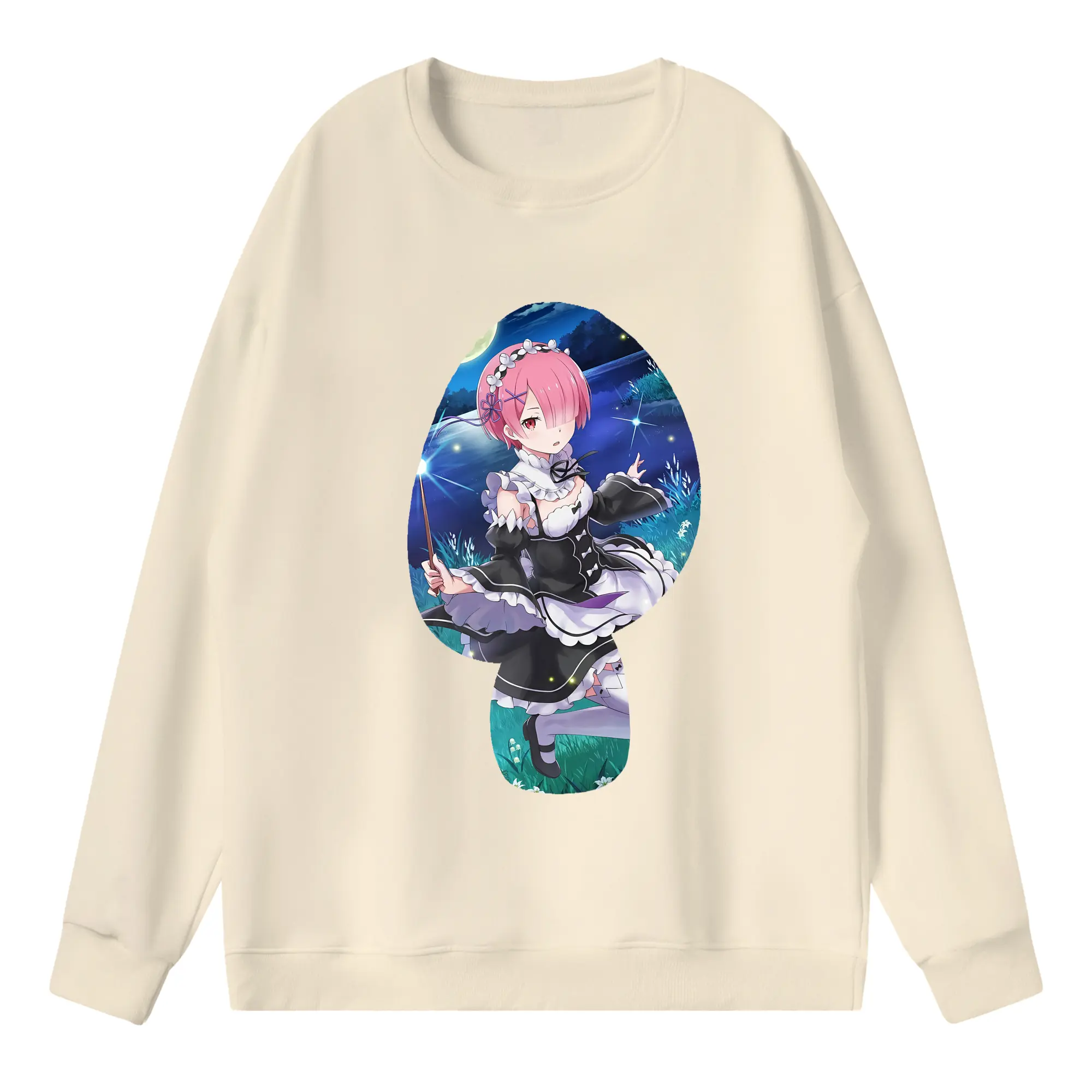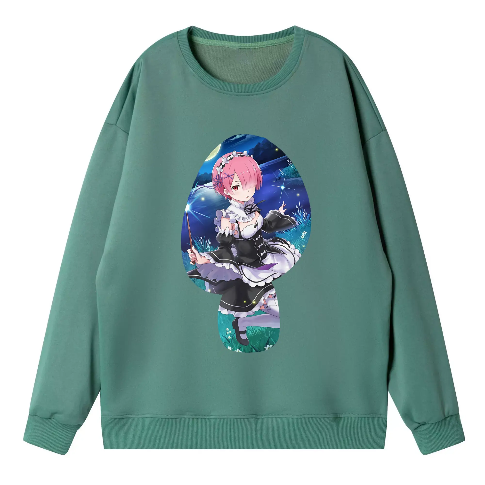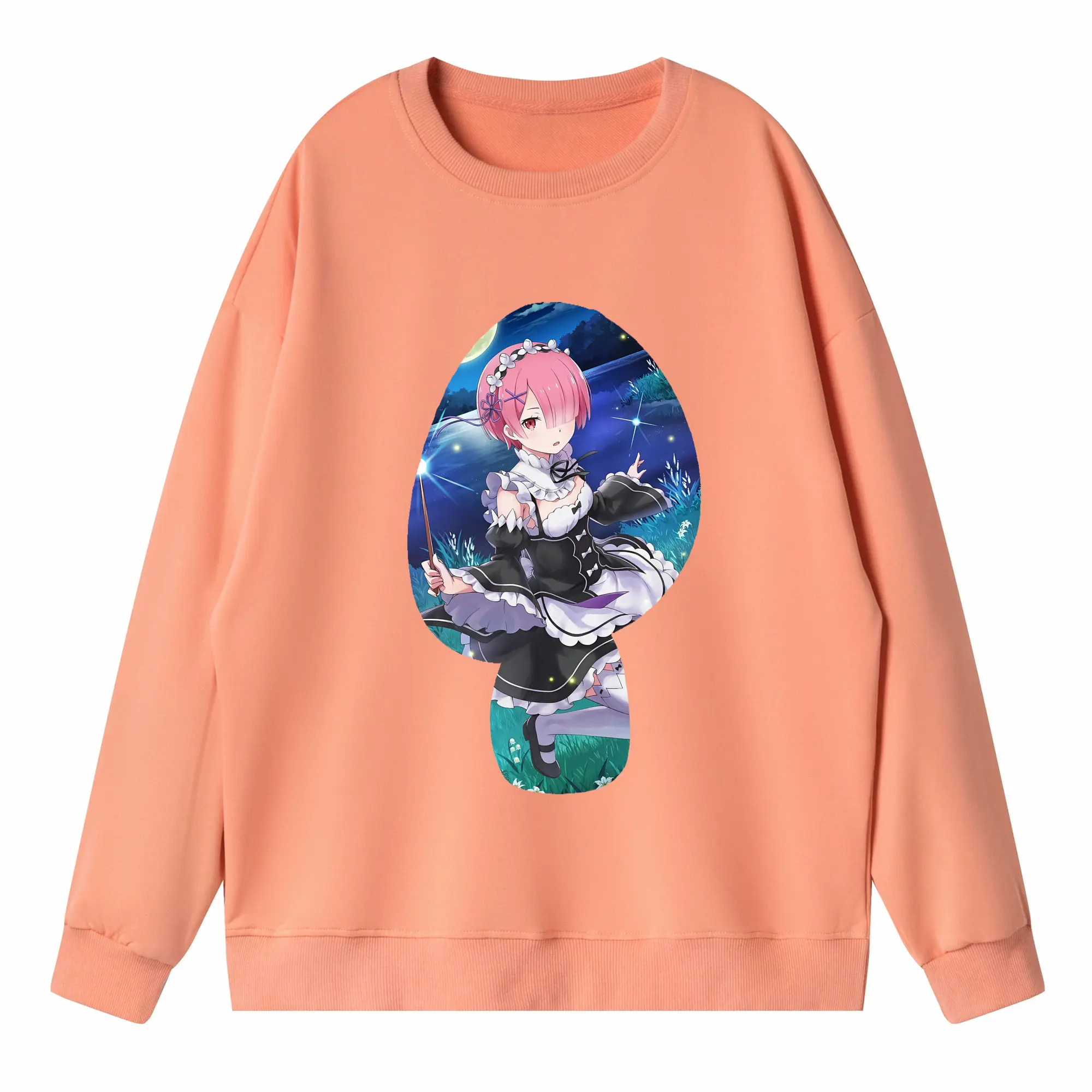 リゼロ グッズ ラム - 高品質 クルーネック スウェット ・ コットン59% ポリエステル41% ・ ユニセックス 長袖 トレーナー ・ カジュアル デイリー スポーツ 散歩用