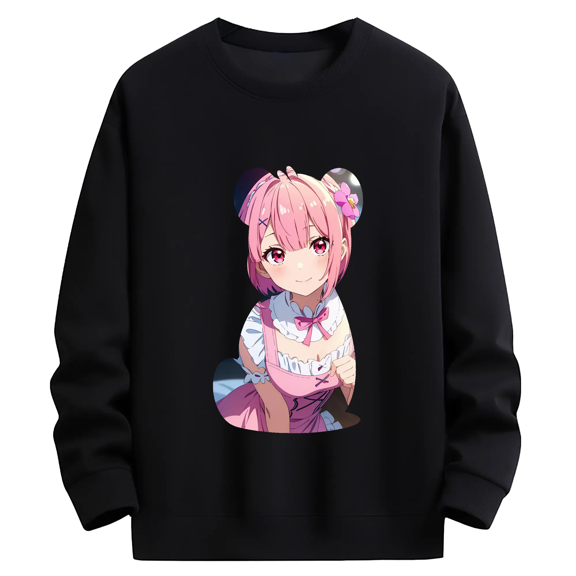 リゼロ グッズ ラム - 薄手 クルーネック スウェット 裏毛260g · ポリエステル 春秋向け カジュアル 男女兼用 · トレーナー デイリー スポーツ 散歩に最適