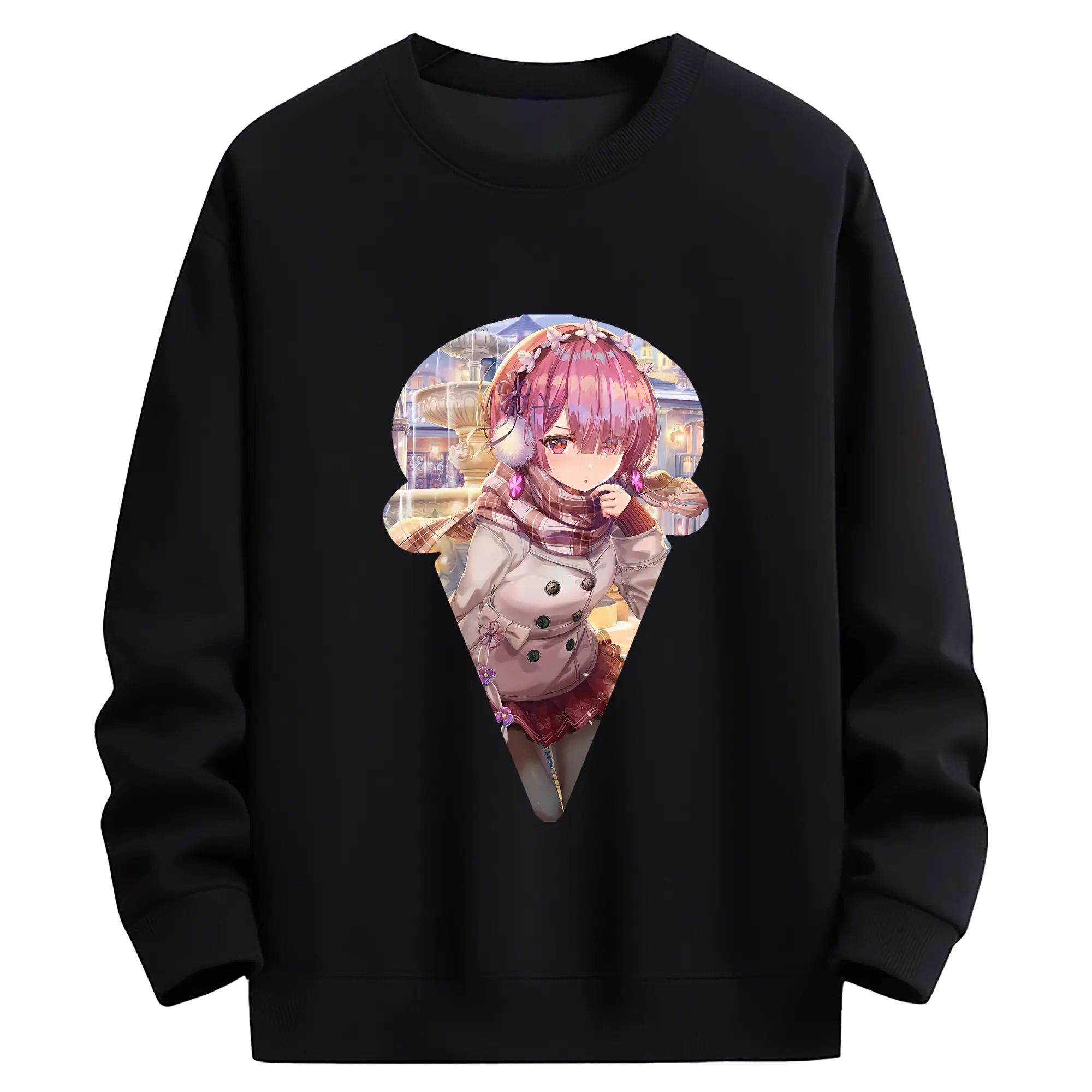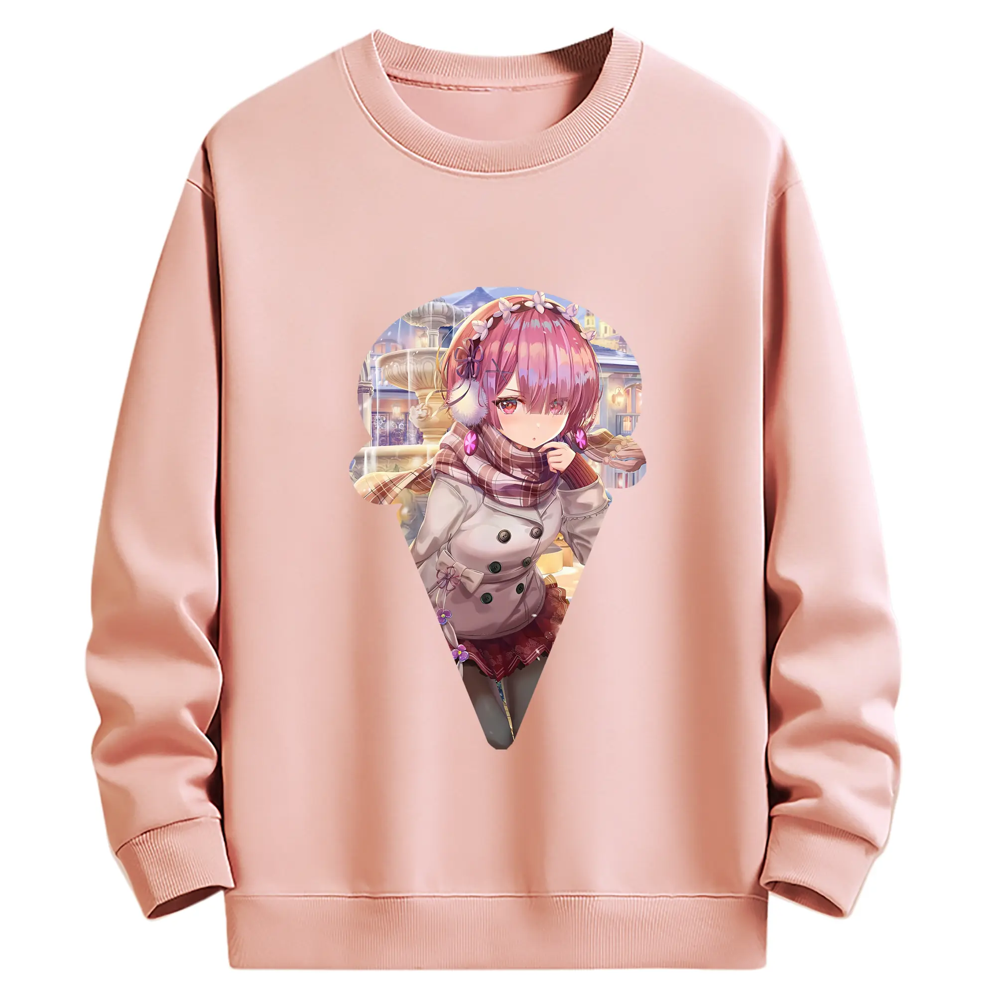 リゼロ グッズ ラム - 薄手 クルーネック スウェット 裏毛260g · ポリエステル 春秋向け カジュアル 男女兼用 · トレーナー デイリー スポーツ 散歩に最適