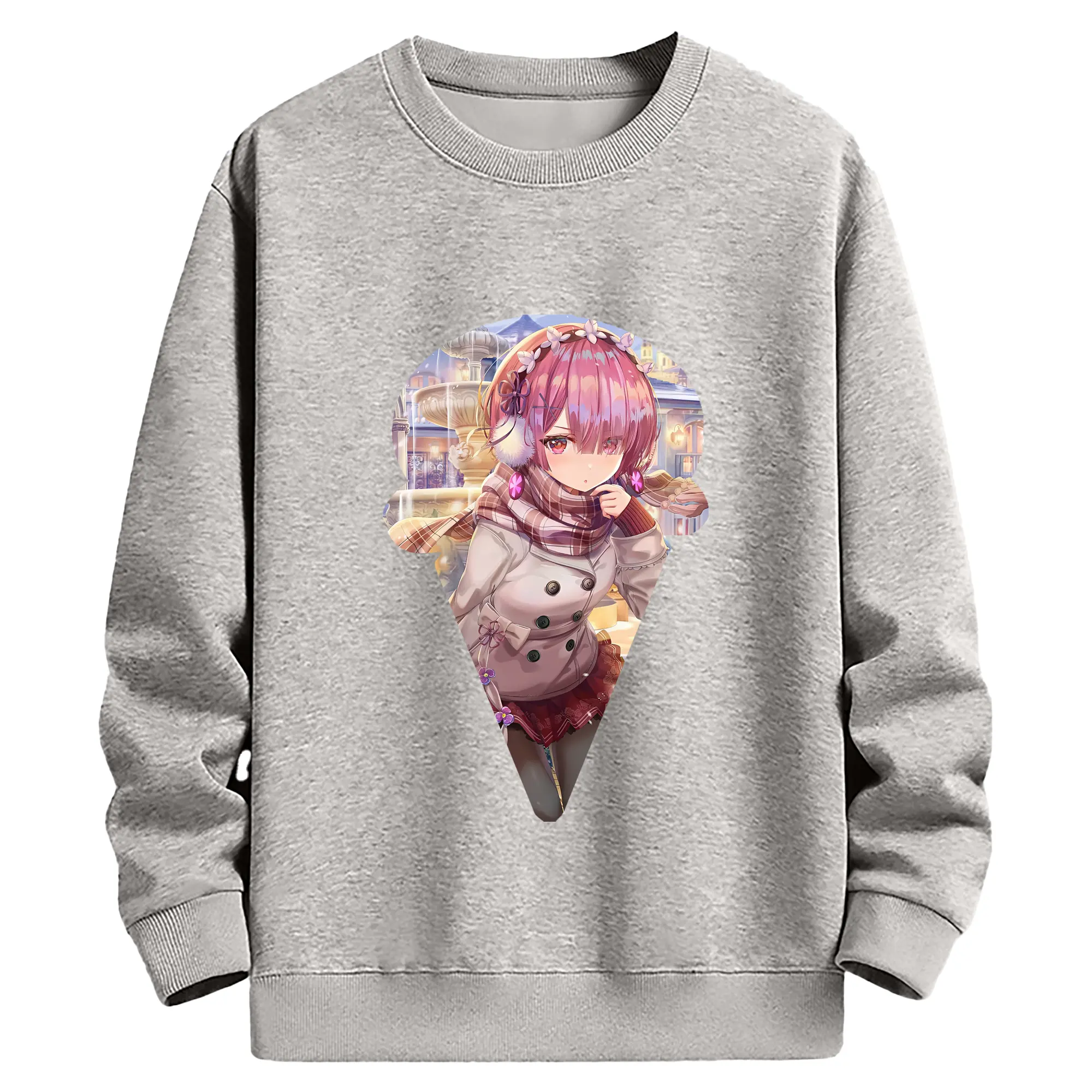 リゼロ グッズ ラム - 高品質 クルーネック スウェット ・ コットン59% ポリエステル41% ・ ユニセックス 長袖 トレーナー ・ カジュアル デイリー スポーツ 散歩用