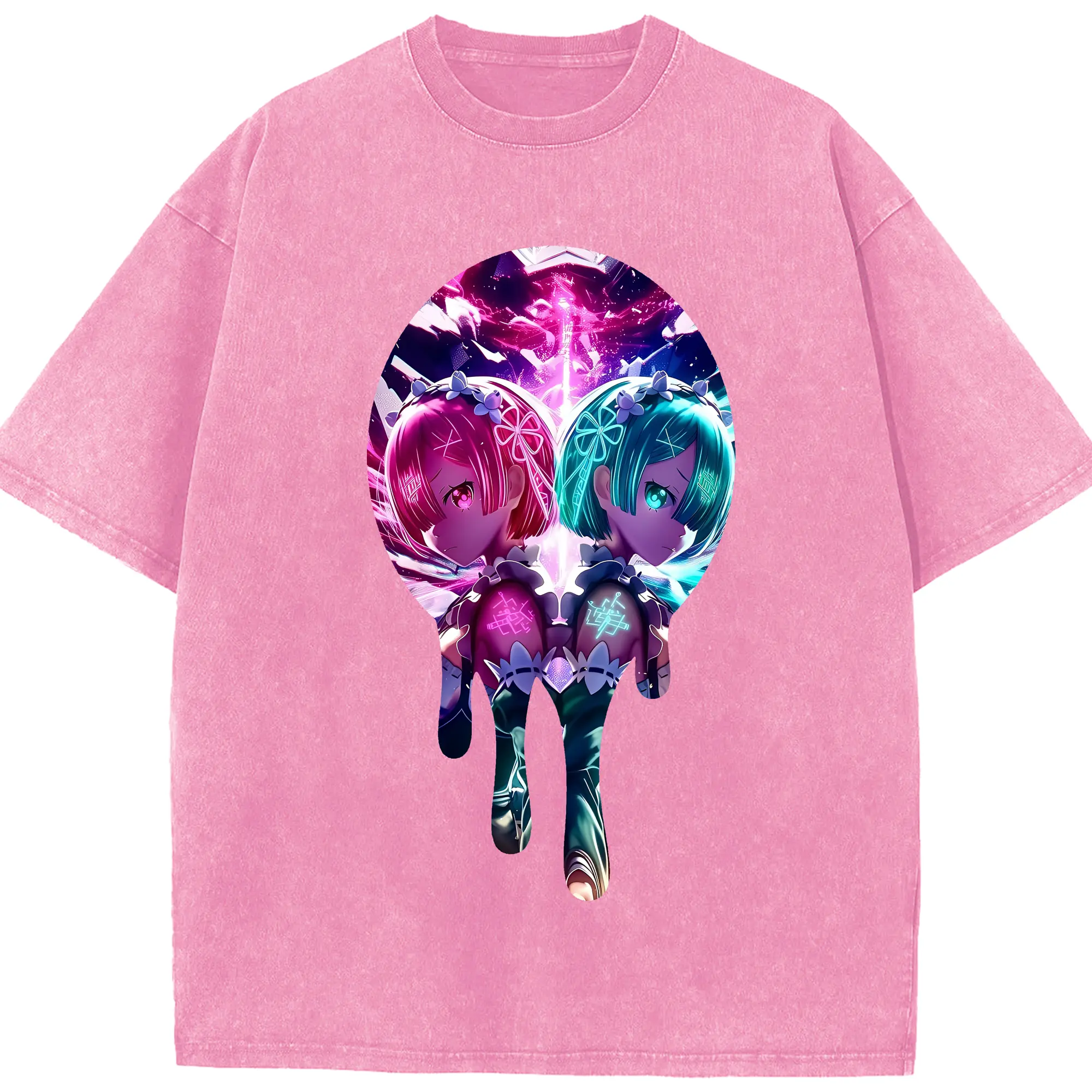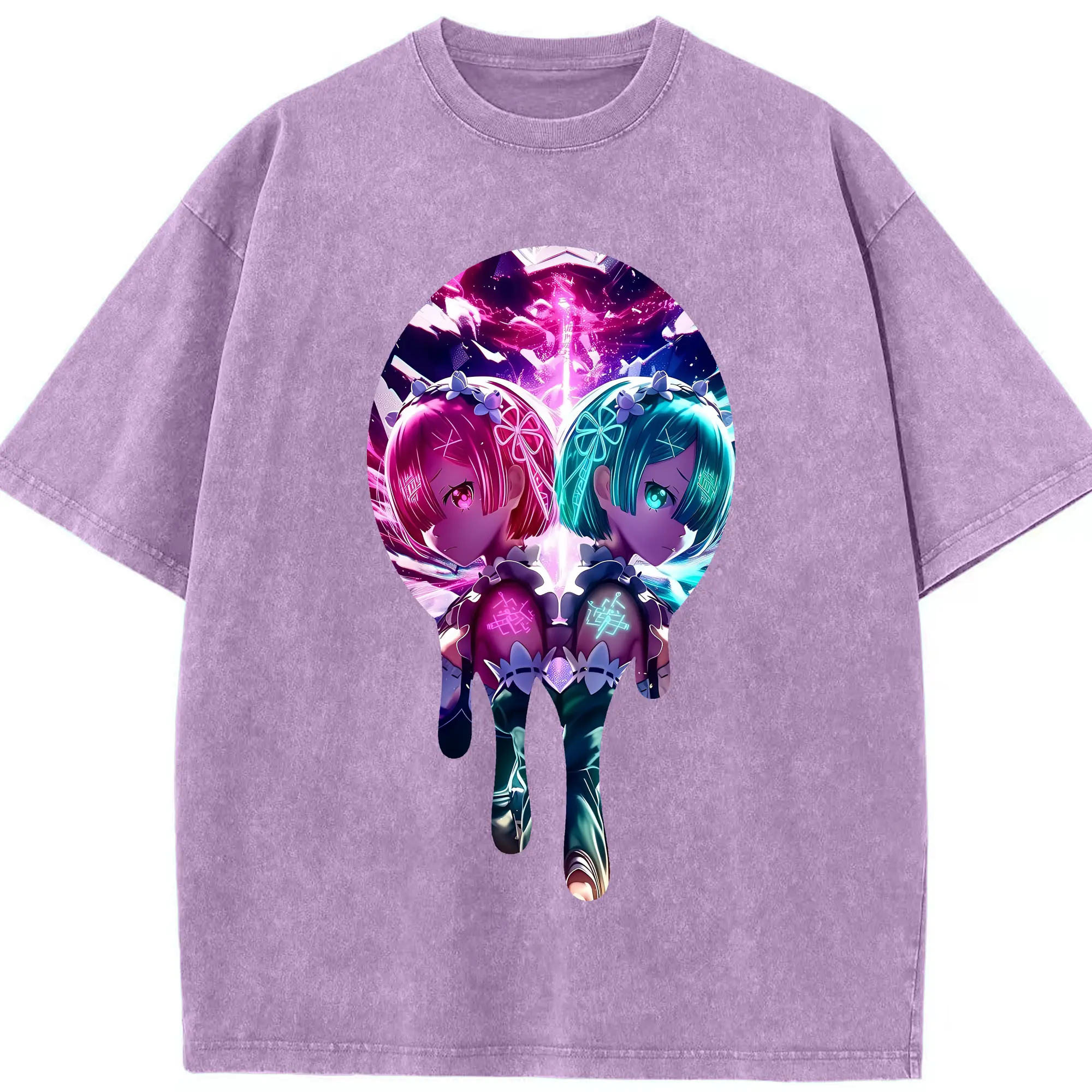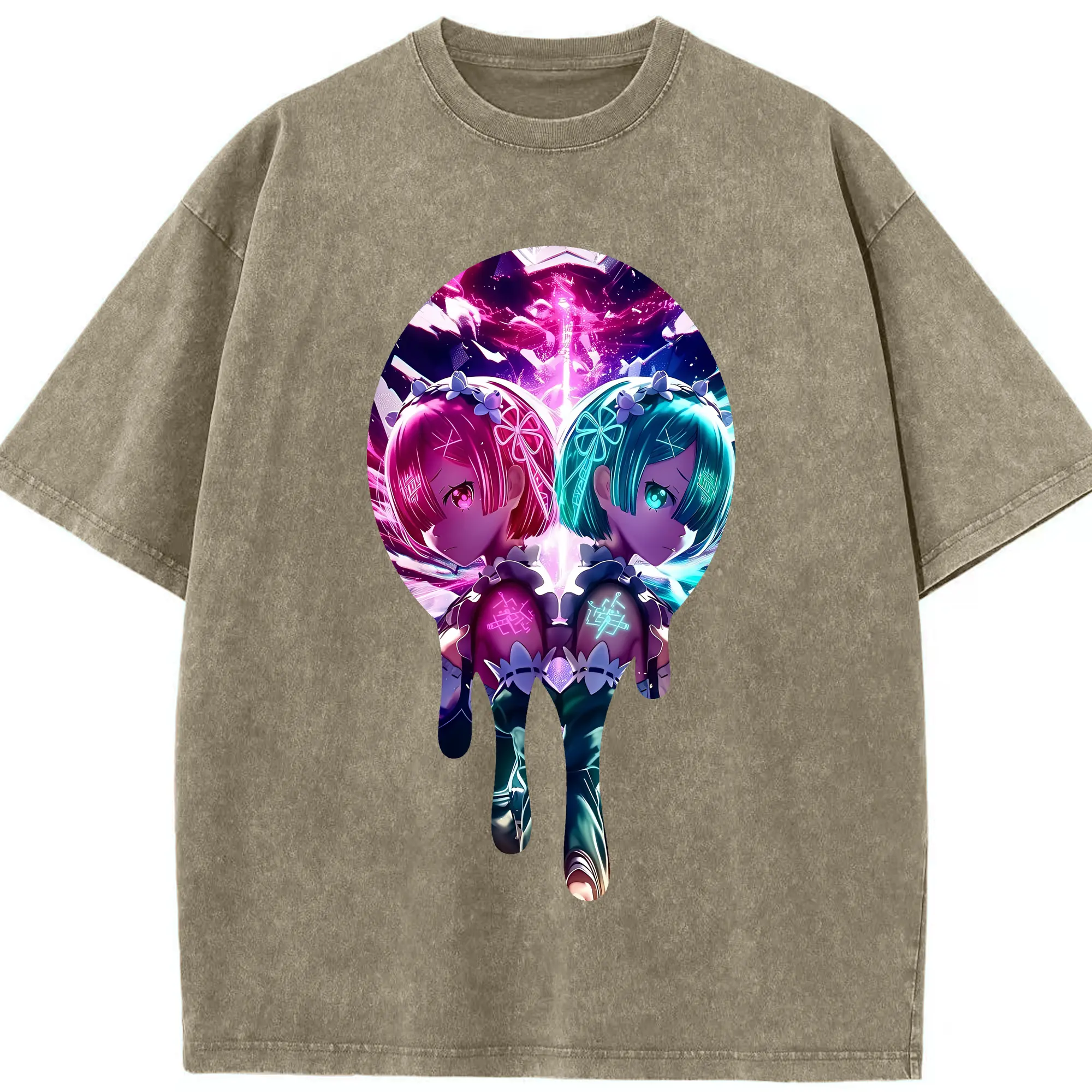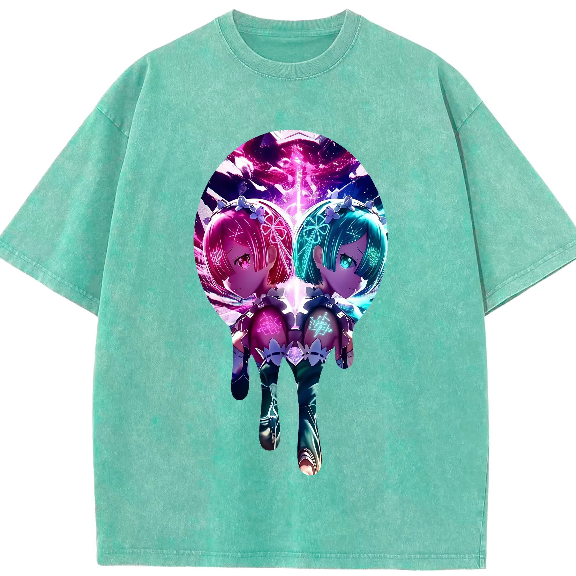 リゼロ グッズ ラム - 綿100% ヴィンテージ風 半袖Tシャツ ・ 背面プリント ・ 柔らか肌触り ・ 通気性 快適 ・ スポーツ カジュアル 外出用