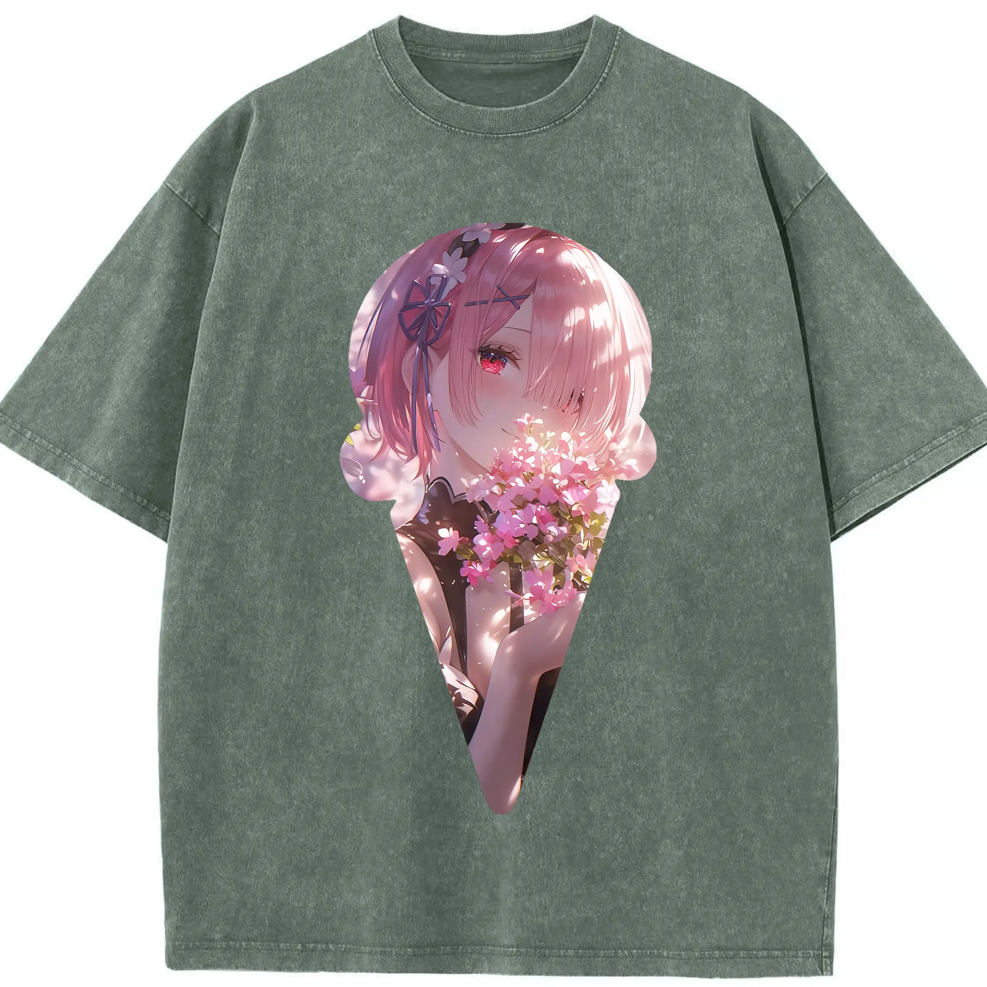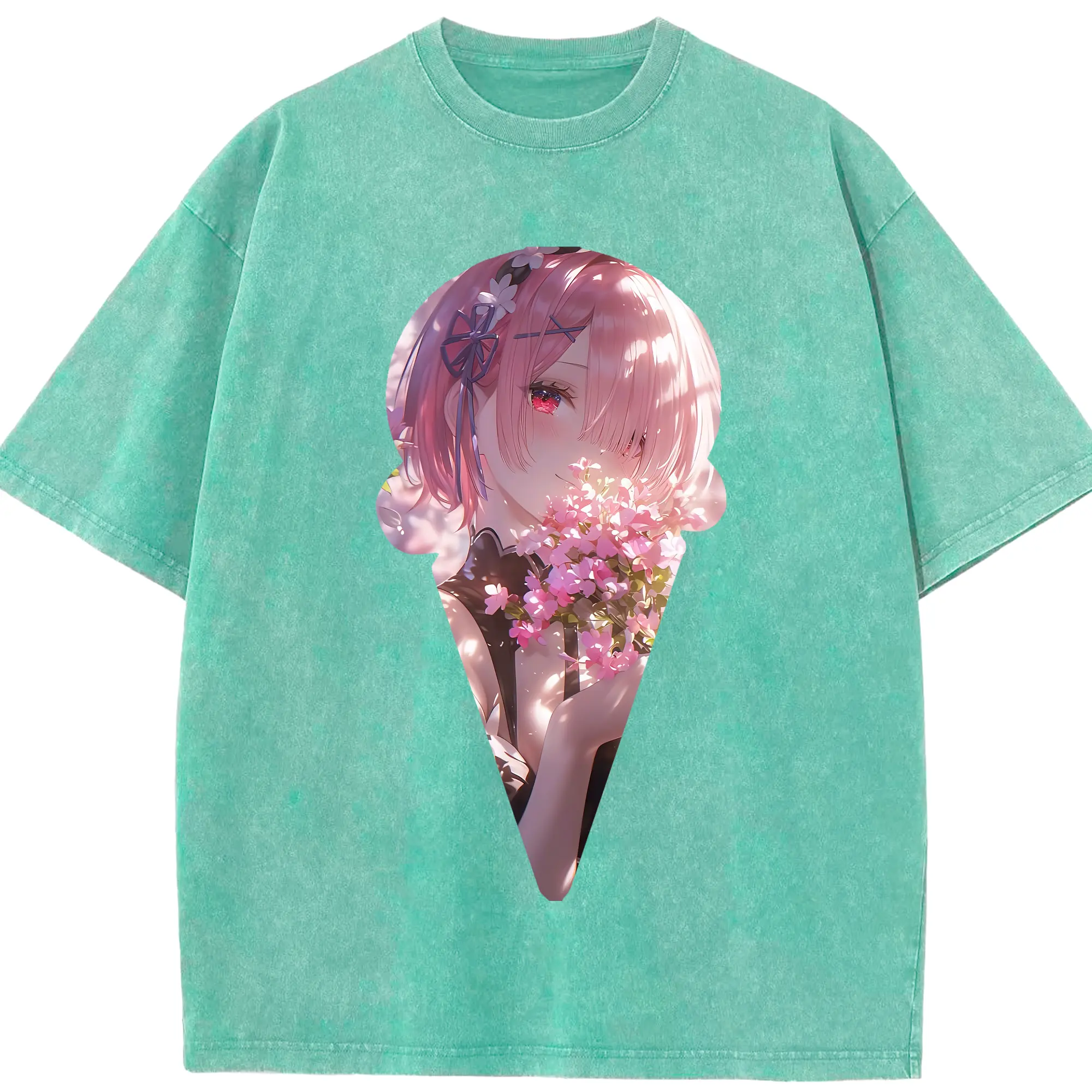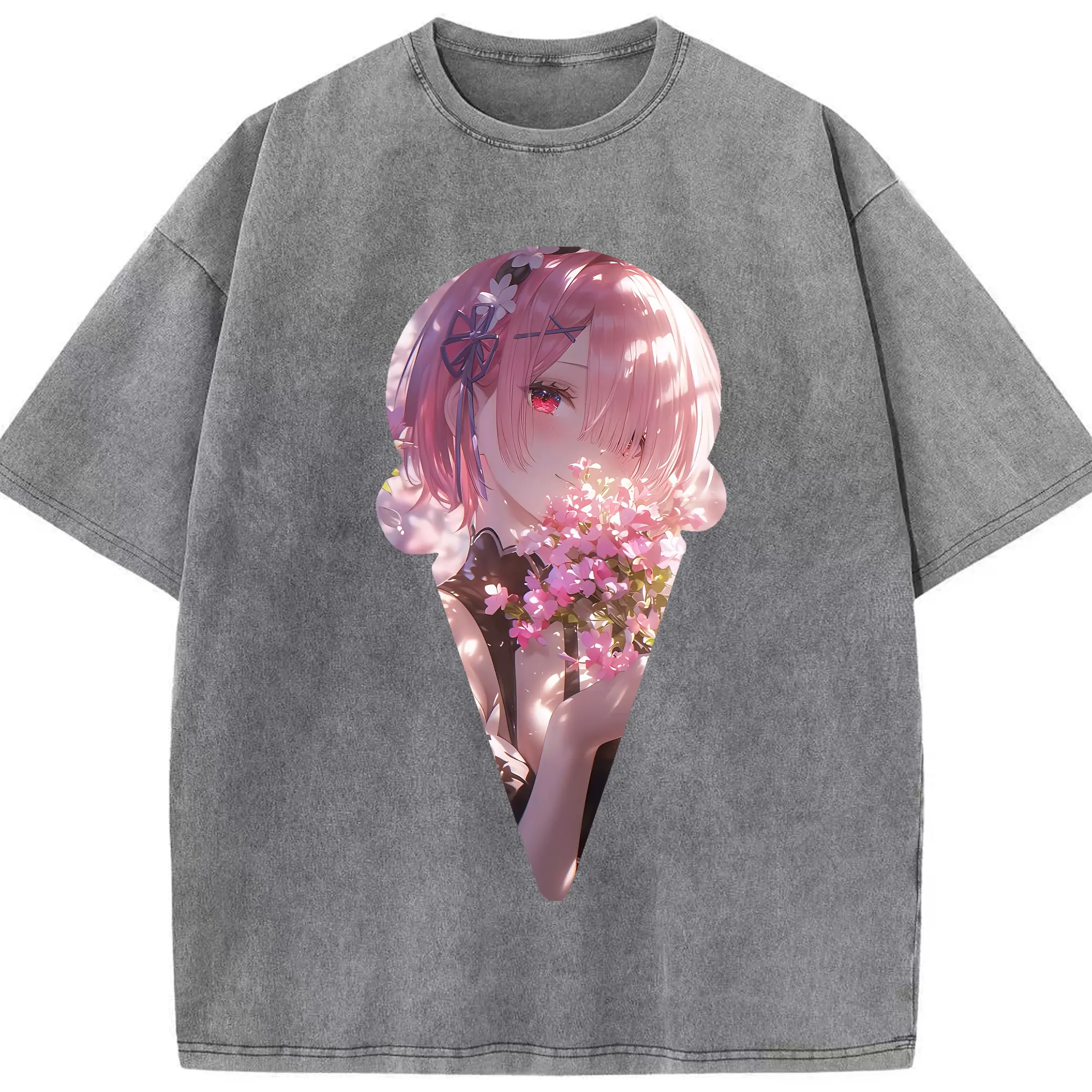 リゼロ グッズ ラム - 綿100% ヴィンテージ風 半袖Tシャツ ・ 背面プリント ・ 柔らか肌触り ・ 通気性 快適 ・ スポーツ カジュアル 外出用