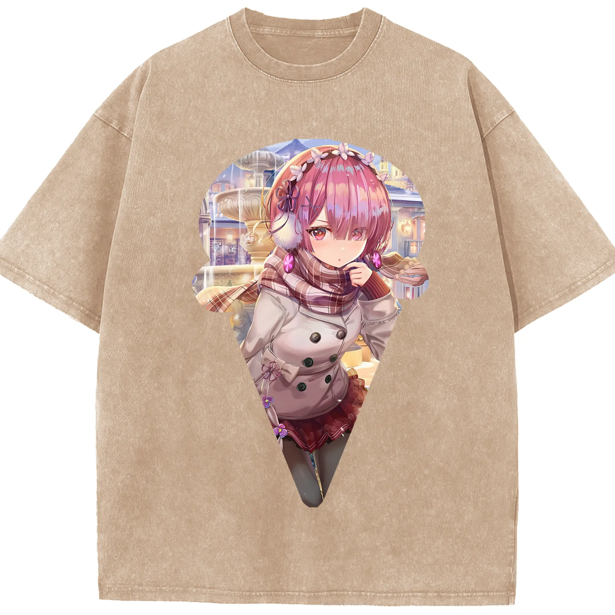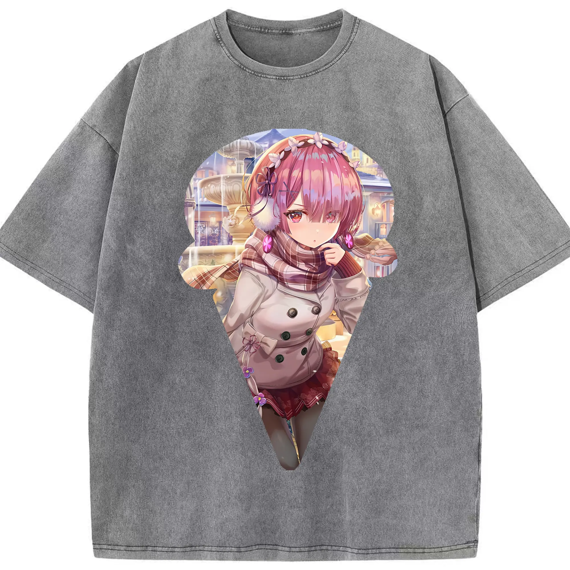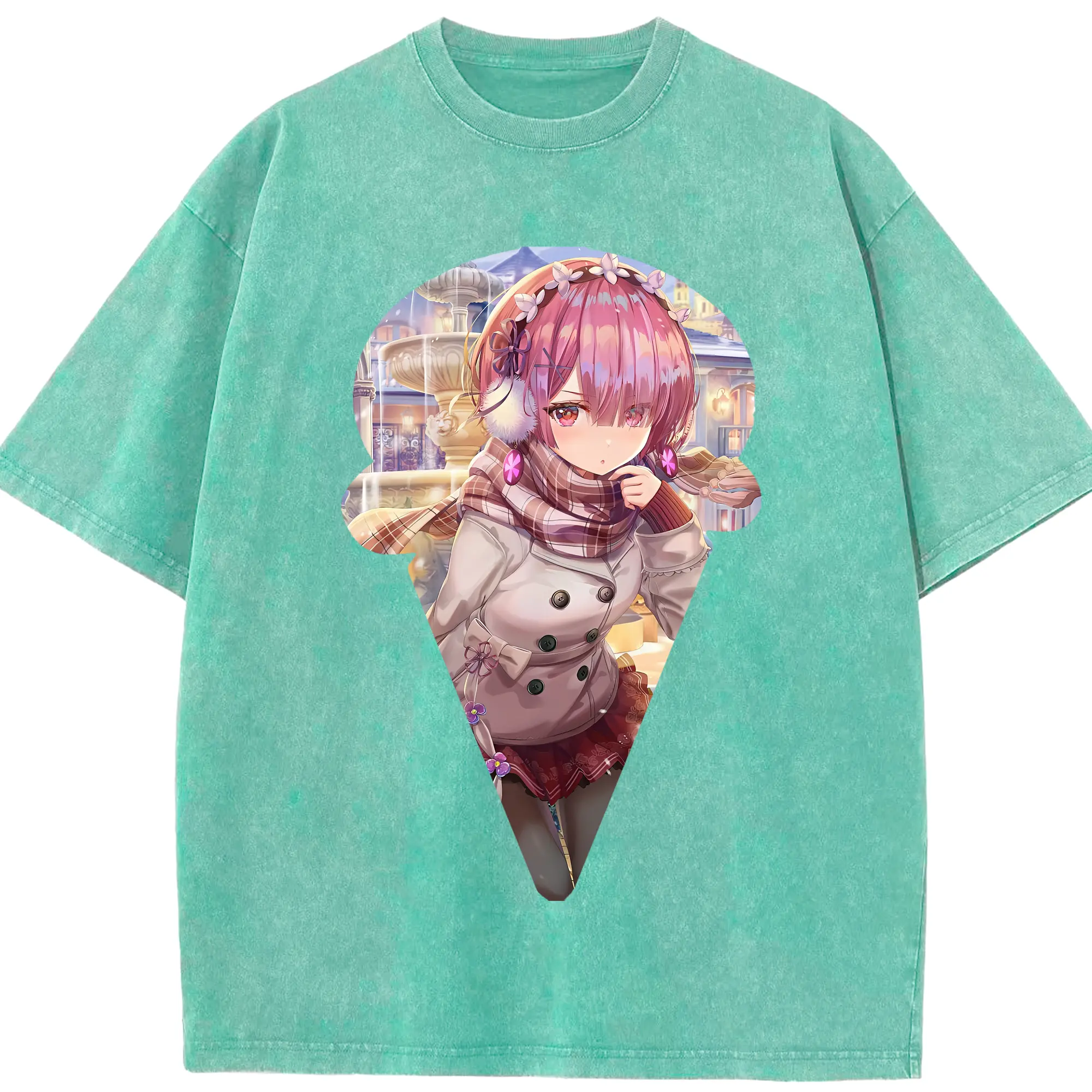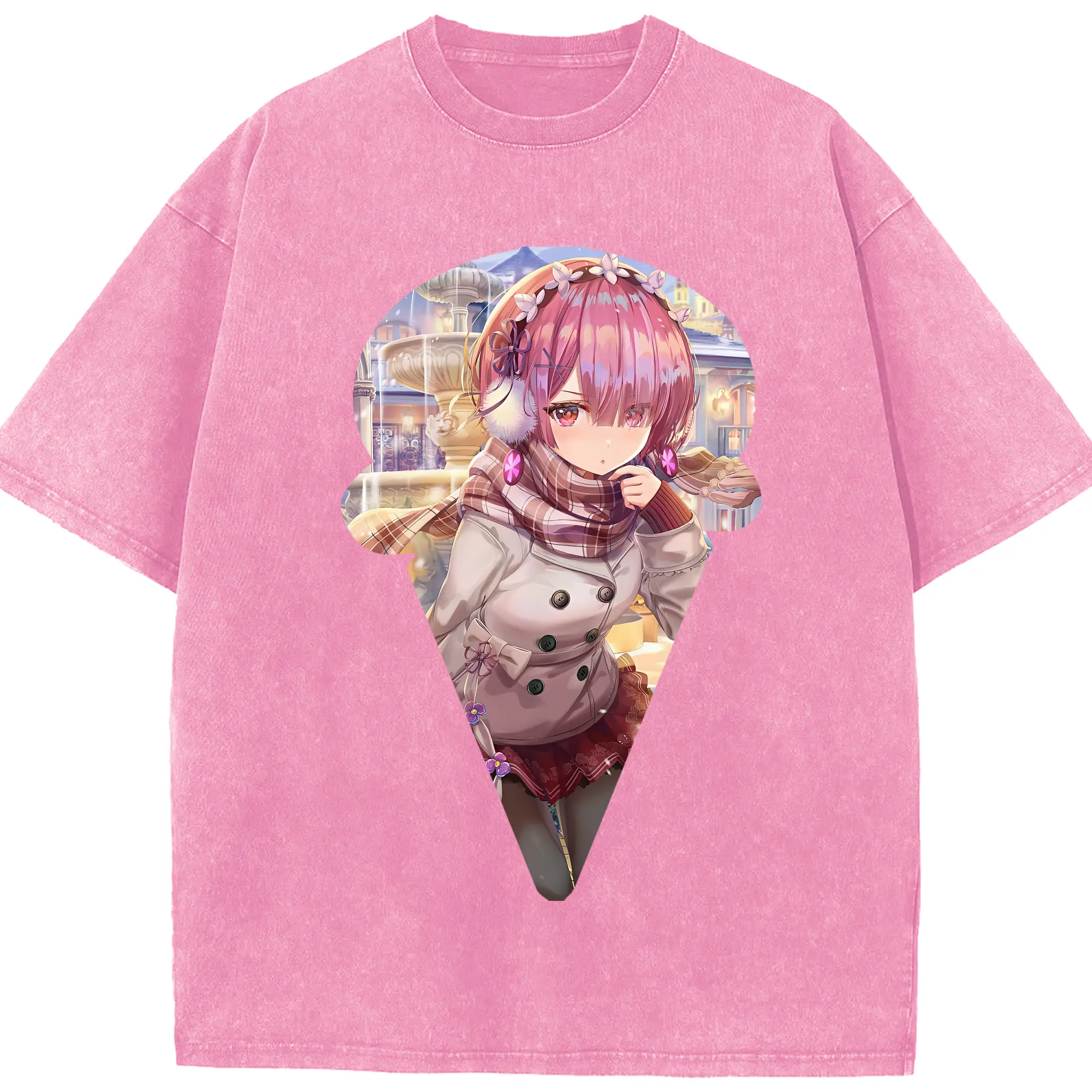 リゼロ グッズ ラム - 綿100% ヴィンテージ風 半袖Tシャツ ・ 背面プリント ・ 柔らか肌触り ・ 通気性 快適 ・ スポーツ カジュアル 外出用