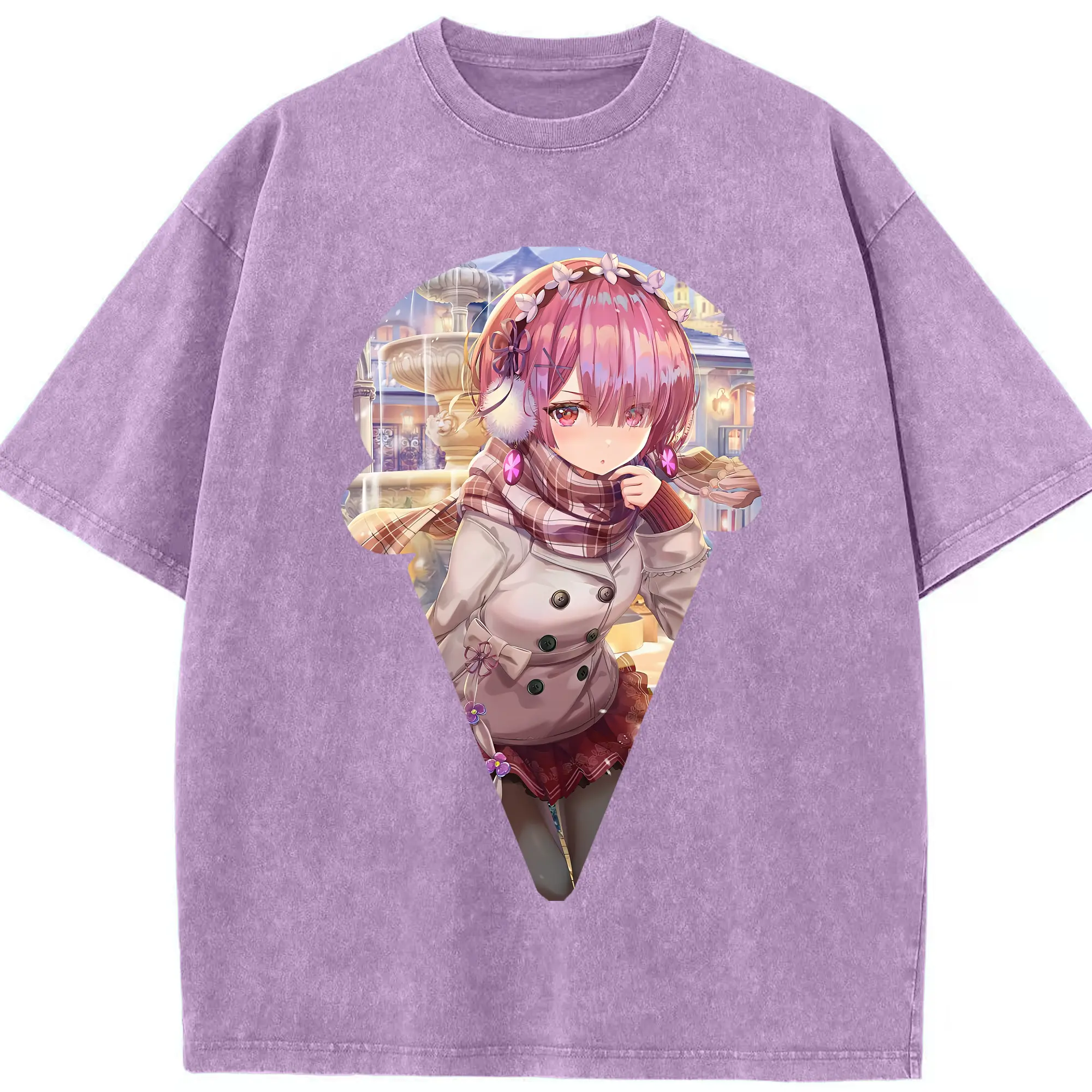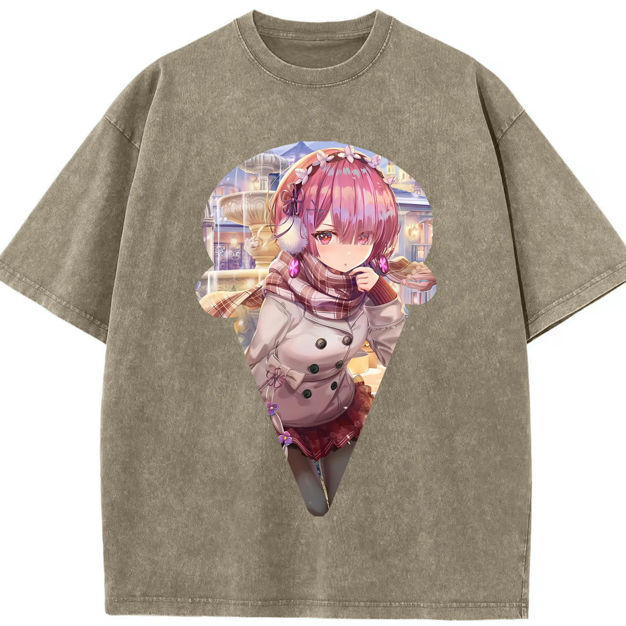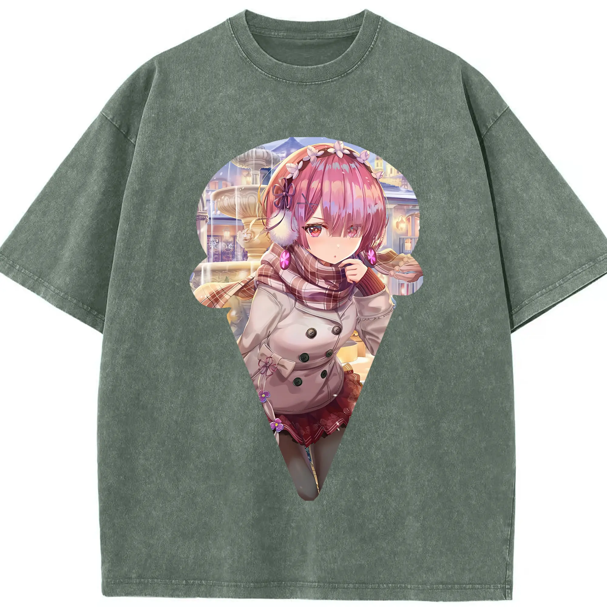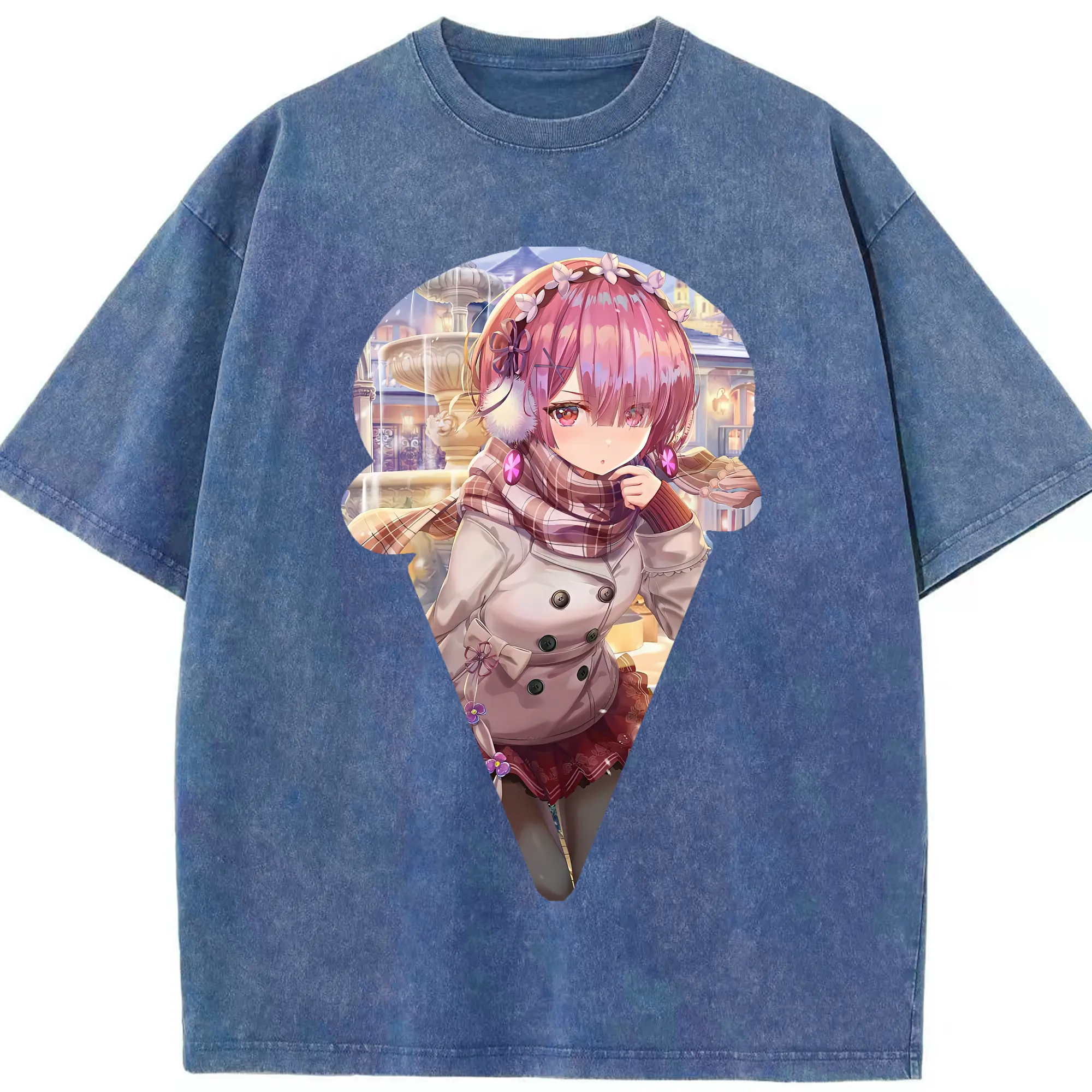 リゼロ グッズ ラム - 綿100% ヴィンテージ風 半袖Tシャツ ・ 背面プリント ・ 柔らか肌触り ・ 通気性 快適 ・ スポーツ カジュアル 外出用