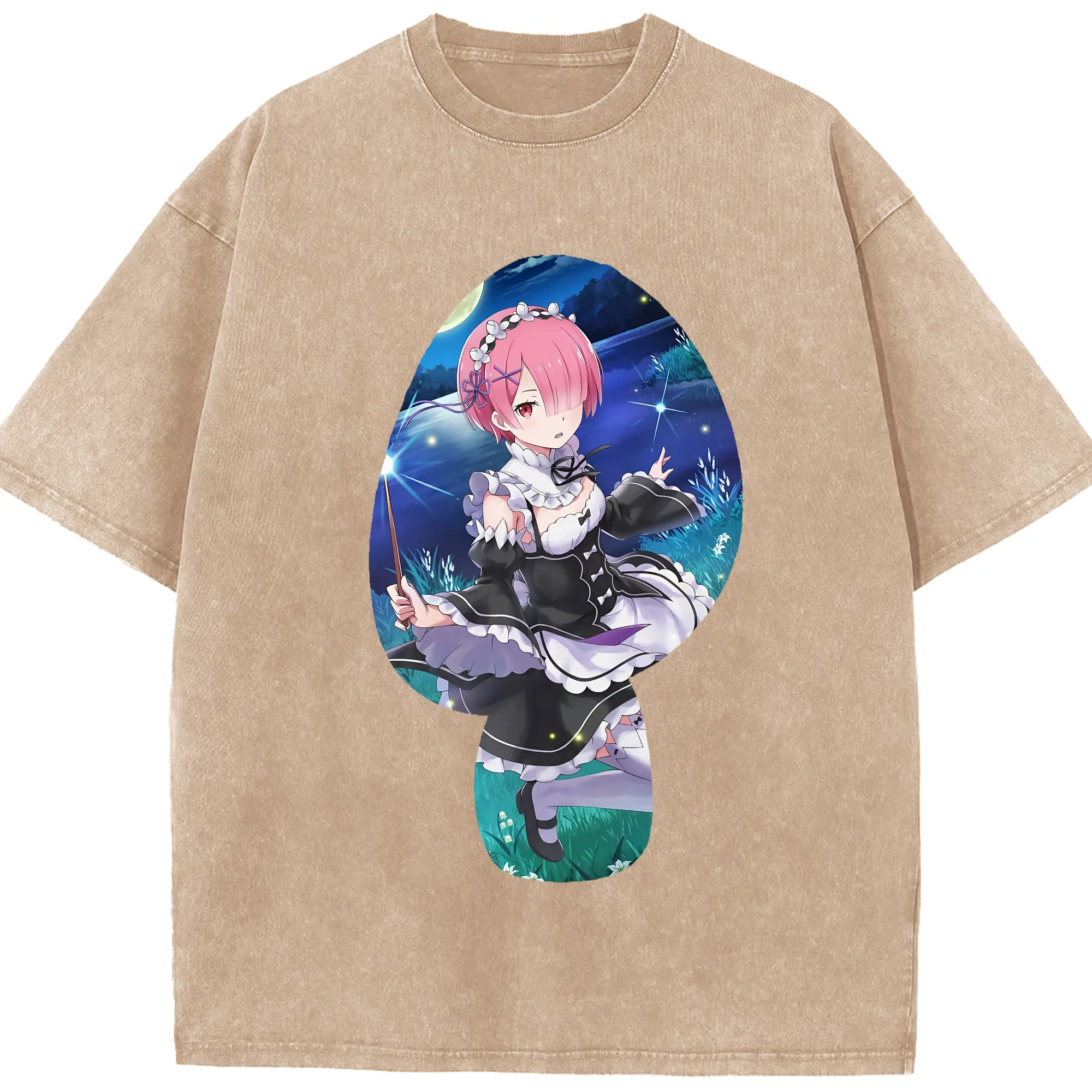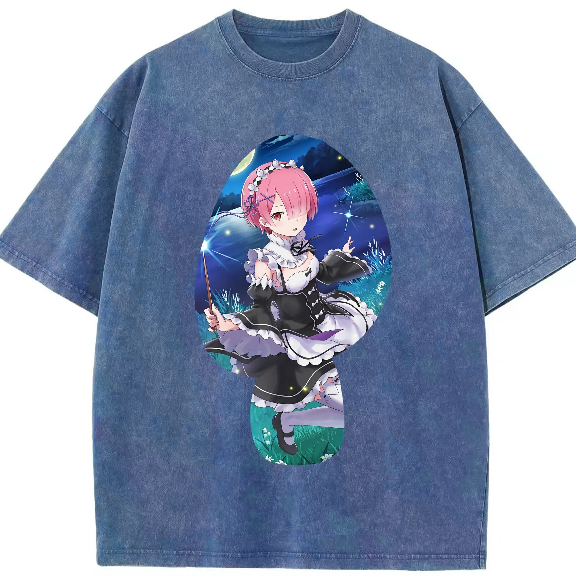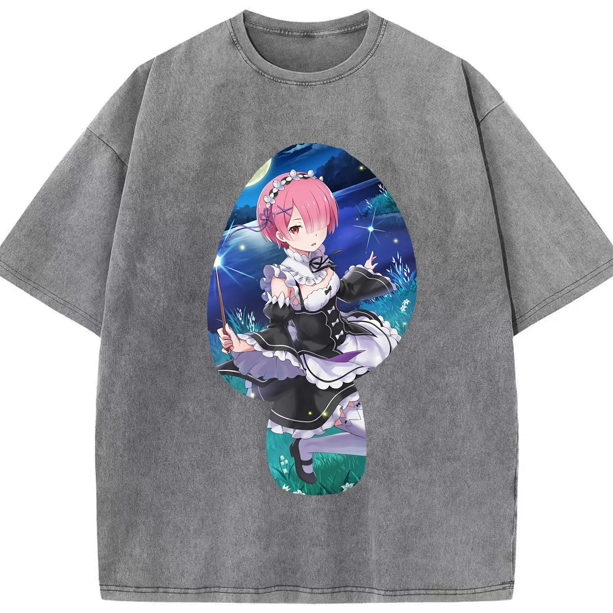 リゼロ グッズ ラム - 綿100% ヴィンテージ風 半袖Tシャツ ・ 背面プリント ・ 柔らか肌触り ・ 通気性 快適 ・ スポーツ カジュアル 外出用