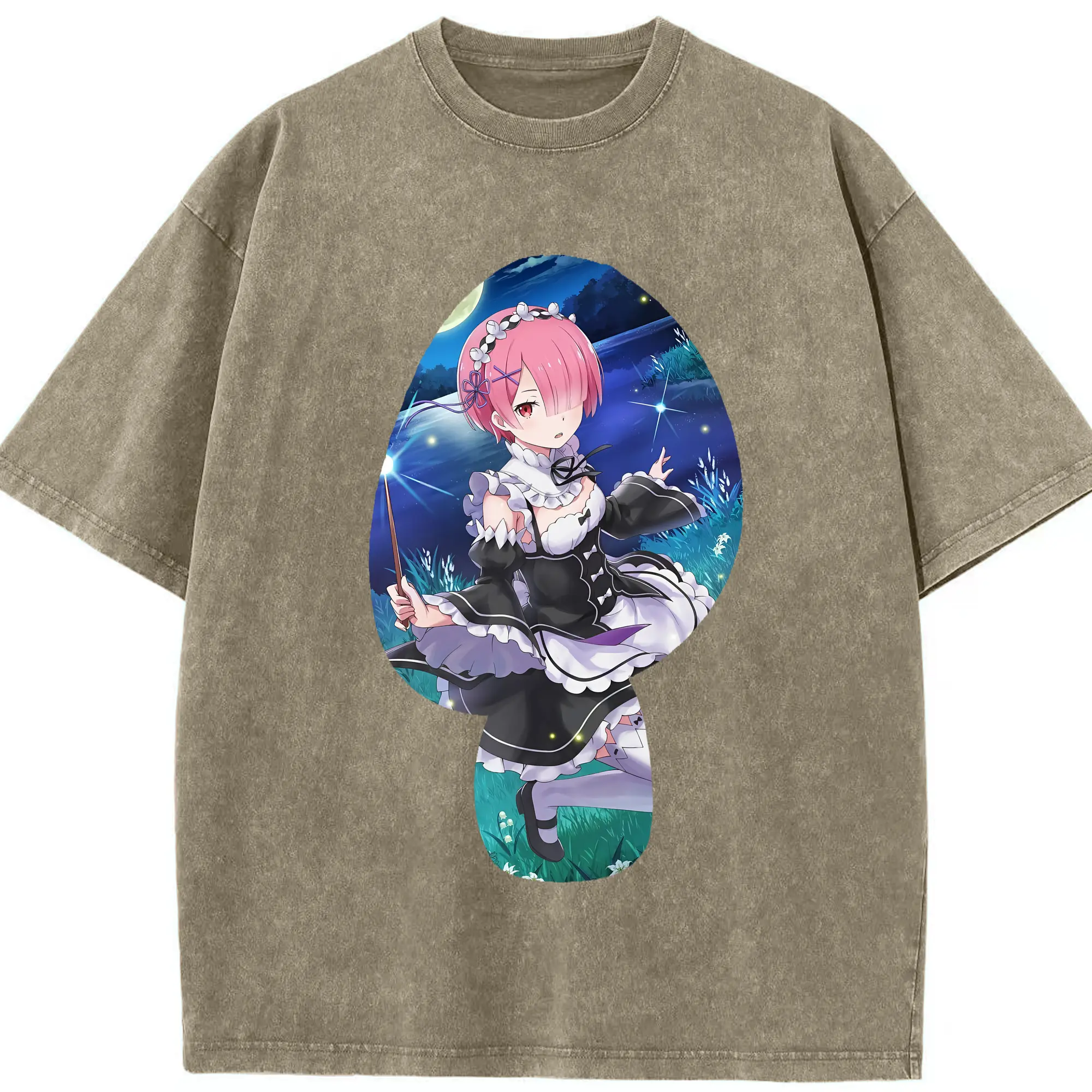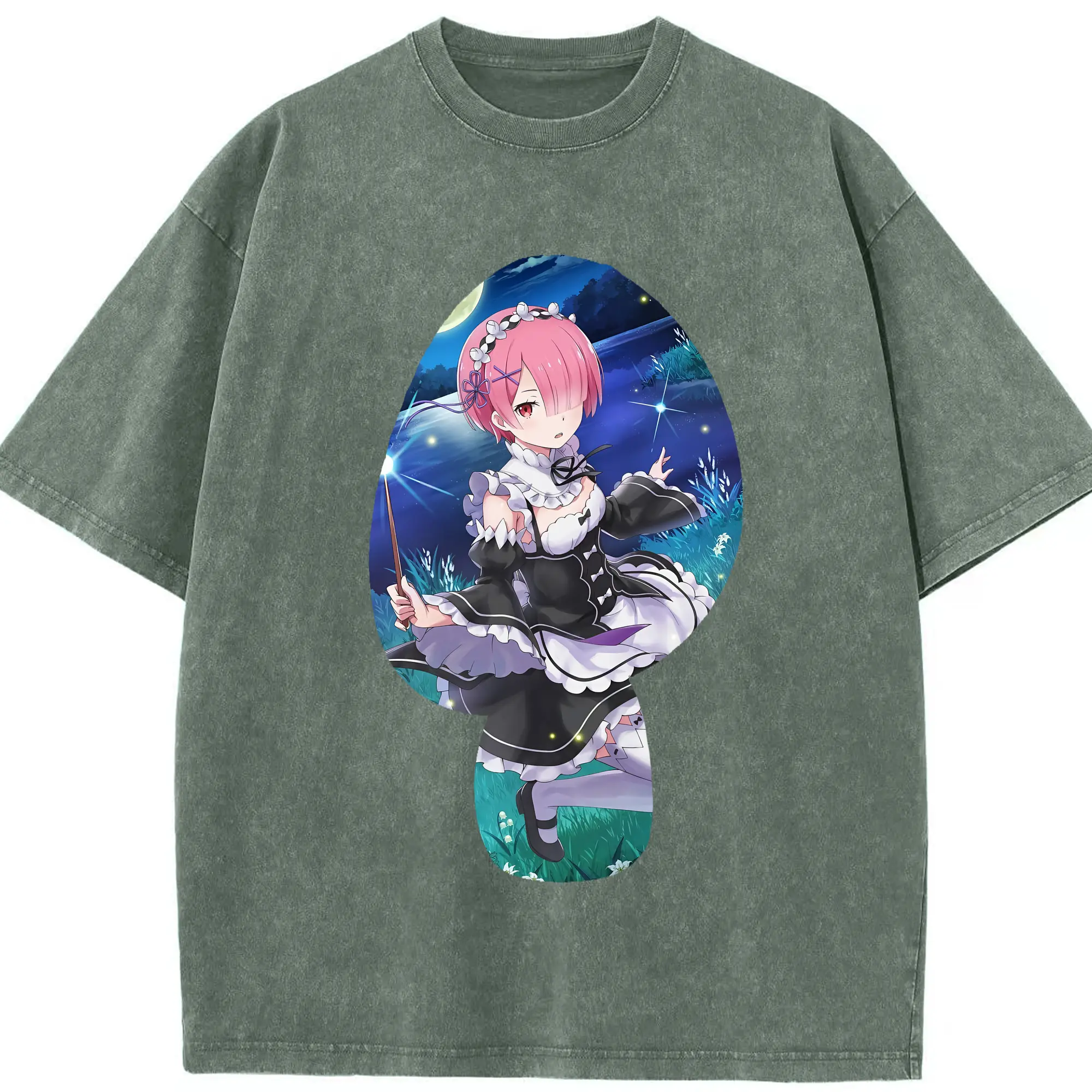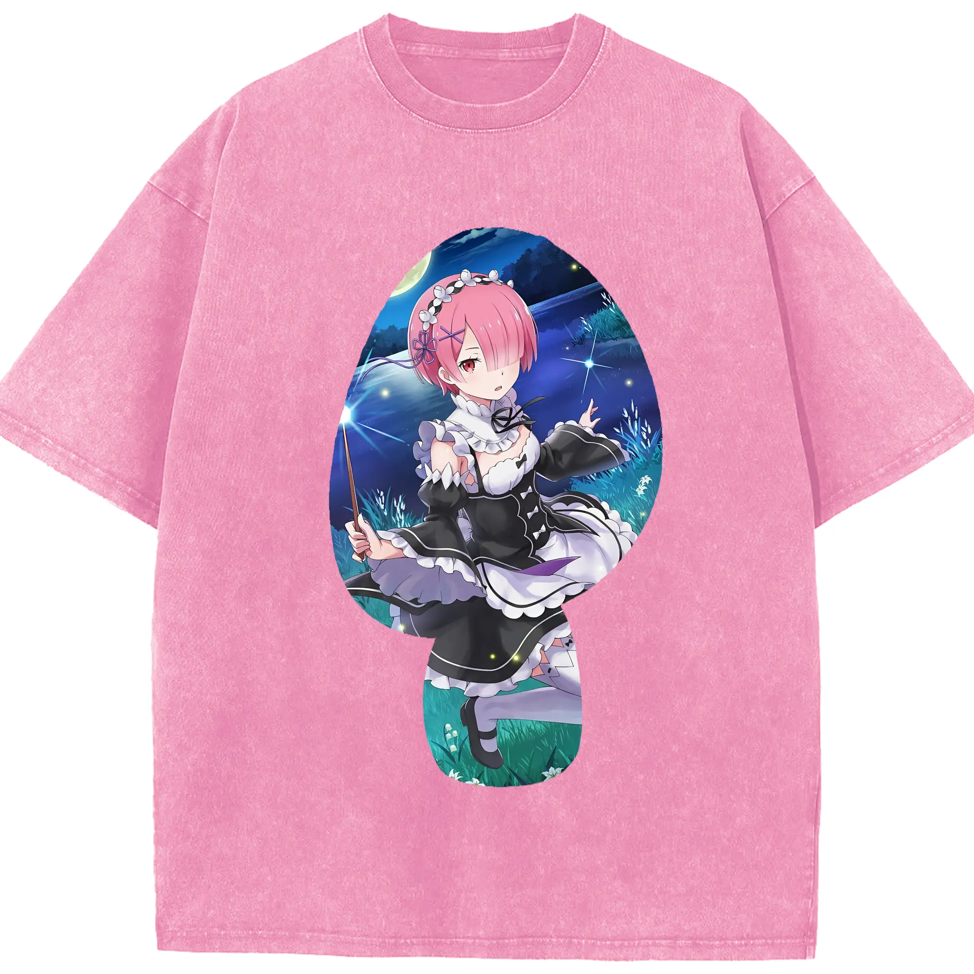 リゼロ グッズ ラム - 綿100% ヴィンテージ風 半袖Tシャツ ・ 背面プリント ・ 柔らか肌触り ・ 通気性 快適 ・ スポーツ カジュアル 外出用