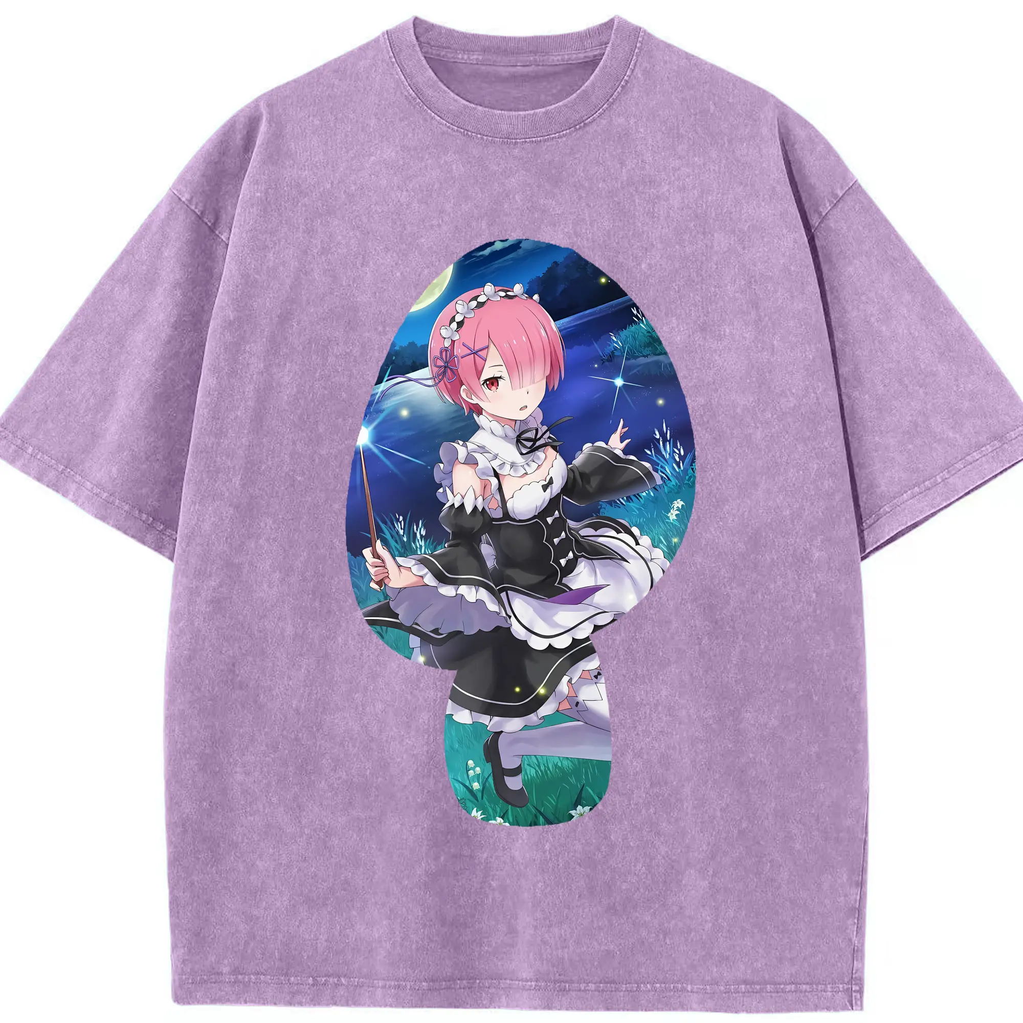 リゼロ グッズ ラム - 綿100% 半袖Tシャツ ・ フロントプリント ・ 快適 通気性 ・ 日常使い 散歩 スポーツ用