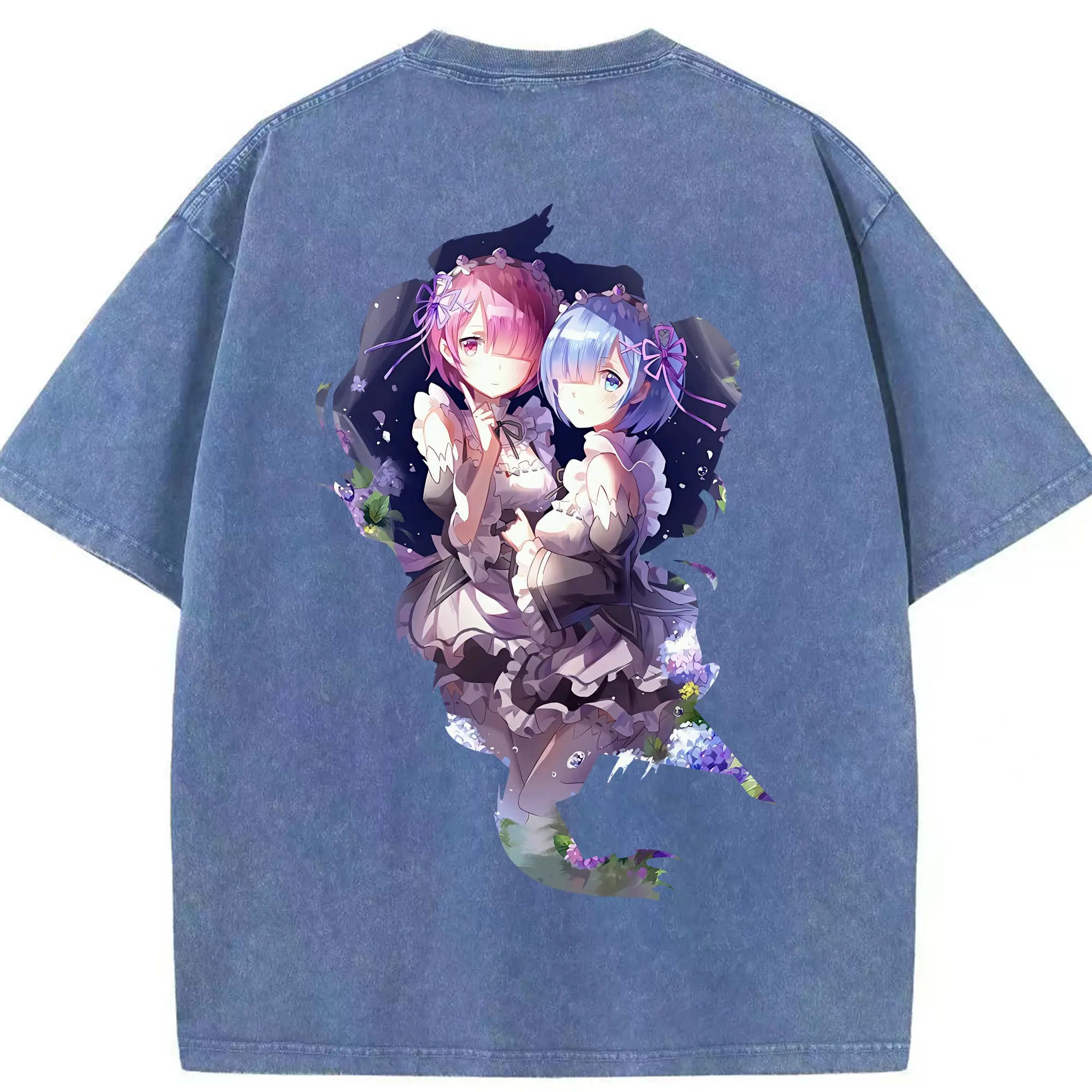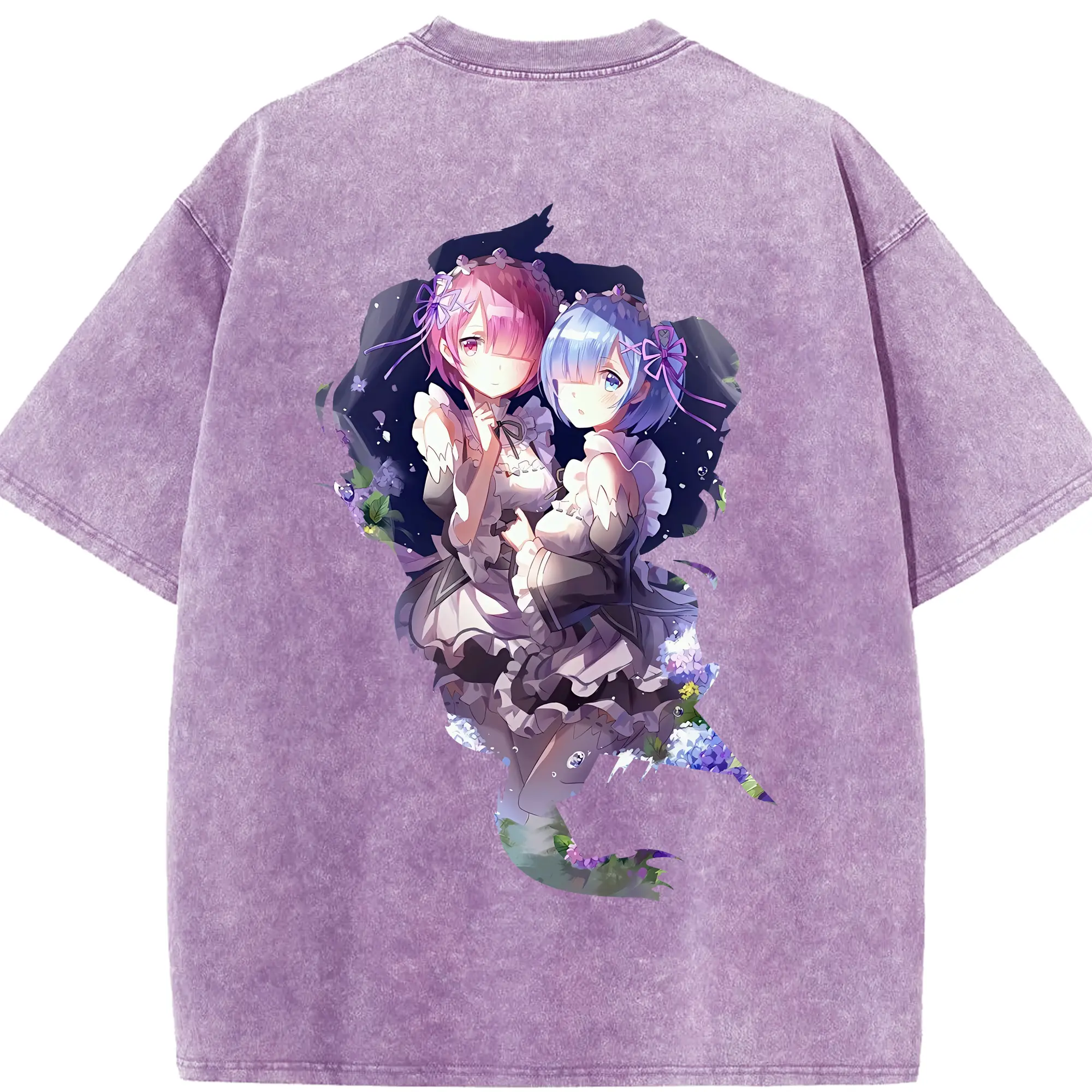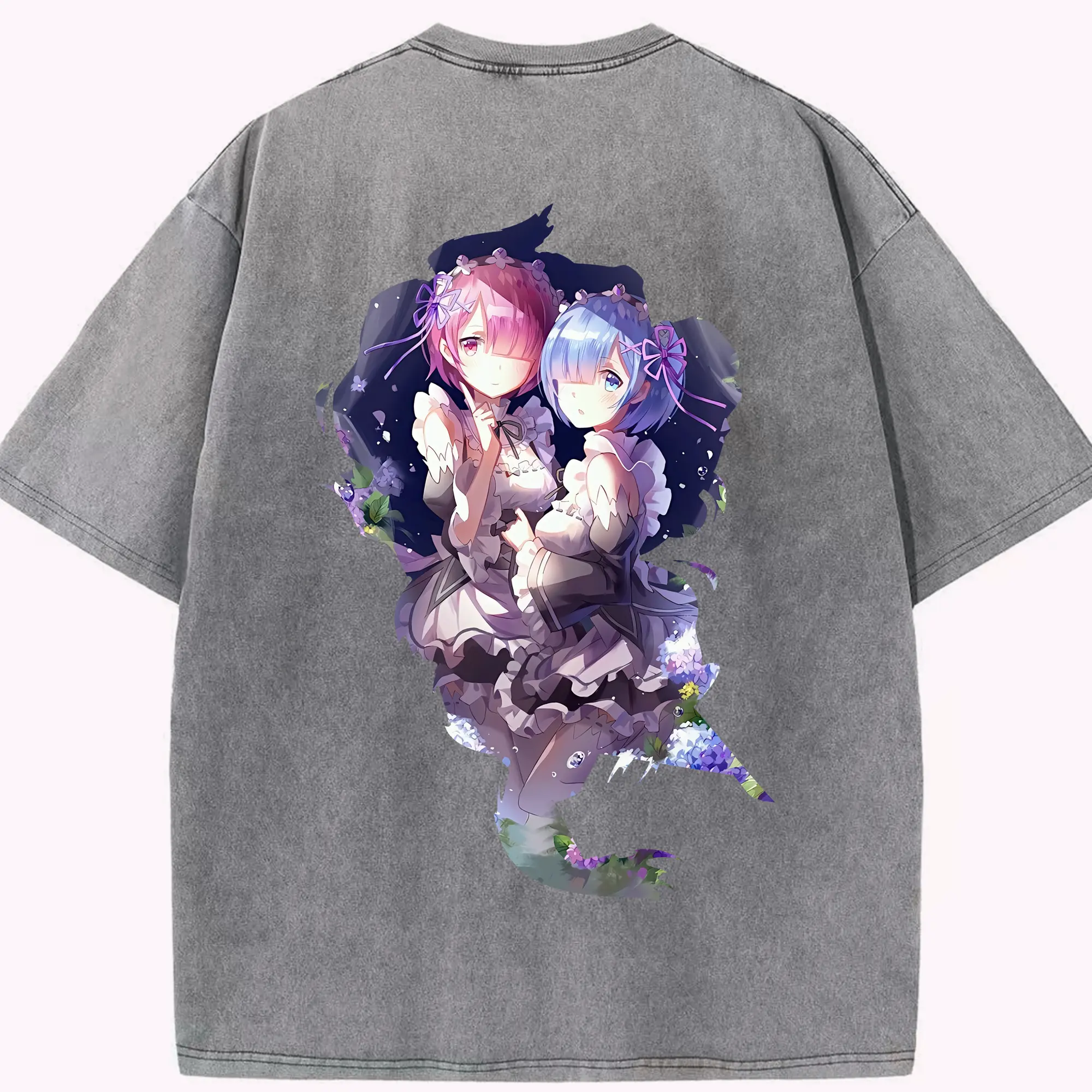 リゼロ グッズ ラム - 綿100% ヴィンテージ風 半袖Tシャツ ・ フロントプリント ・ 柔らか肌触り ・ 通気性 快適 ・ スポーツ カジュアル 外出用