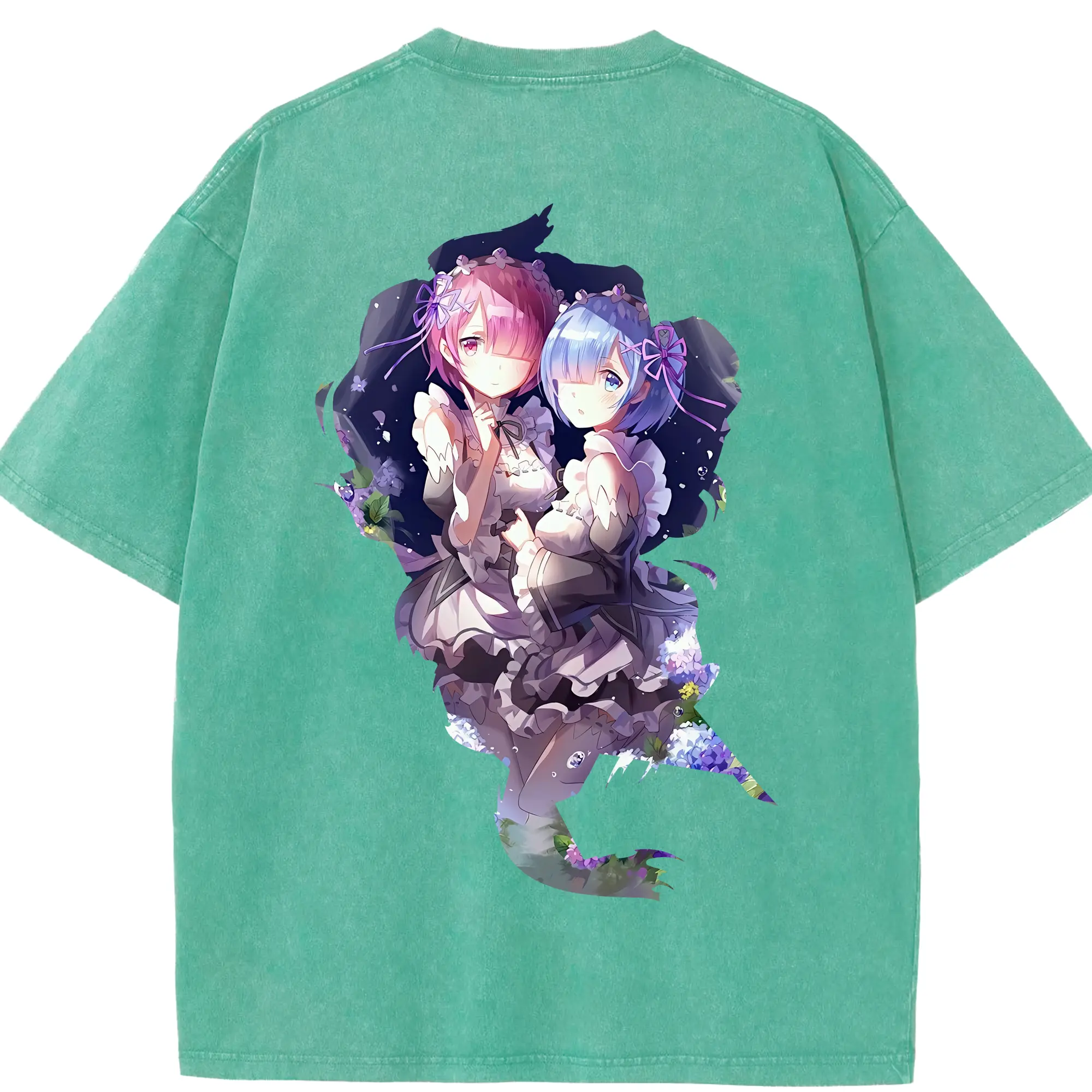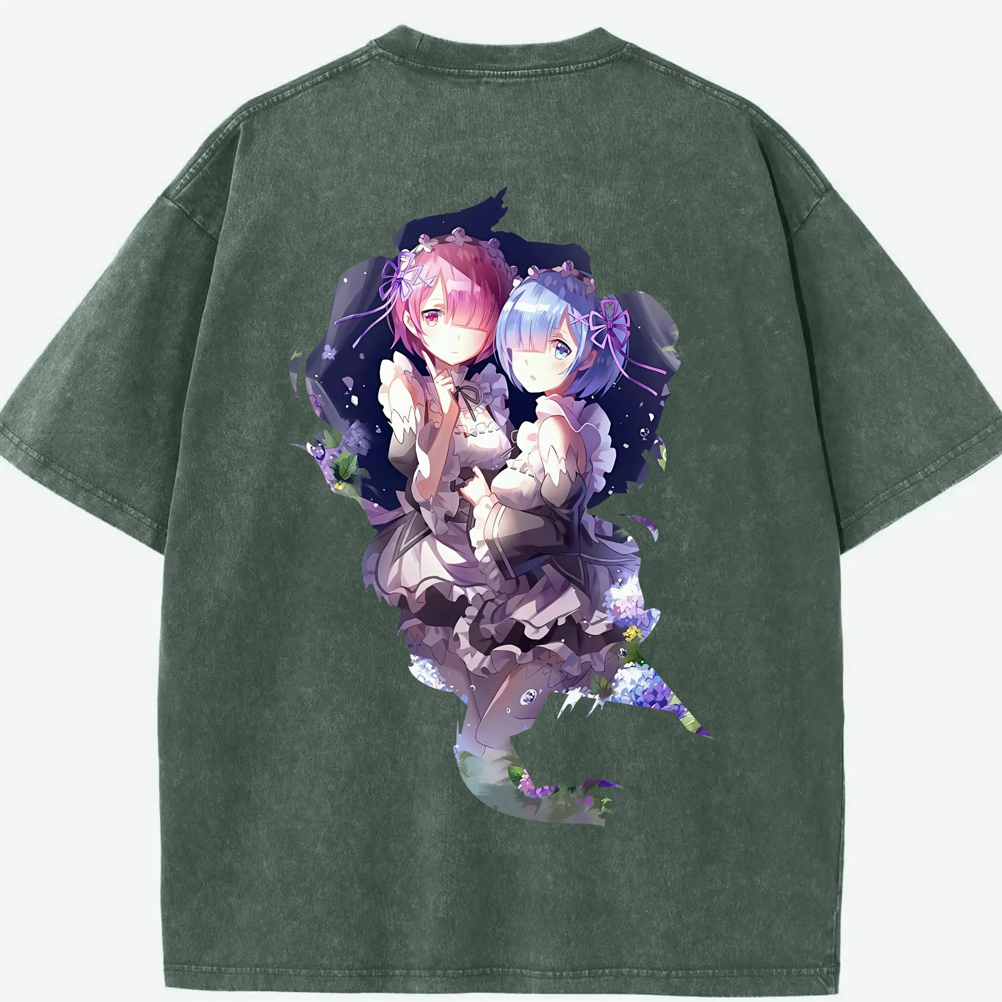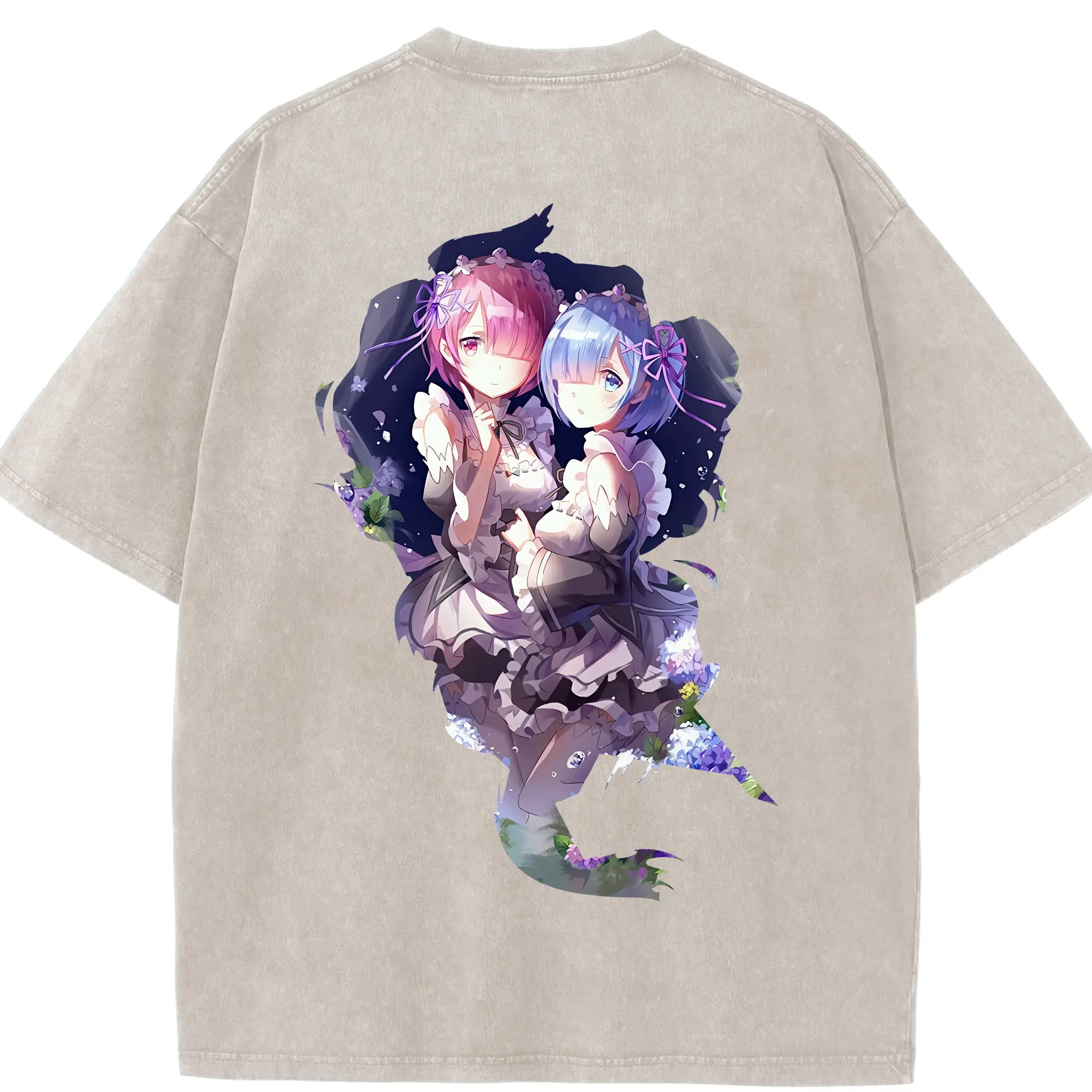 リゼロ グッズ ラム - 綿100% ヴィンテージ風 半袖Tシャツ ・ フロントプリント ・ 柔らか肌触り ・ 通気性 快適 ・ スポーツ カジュアル 外出用