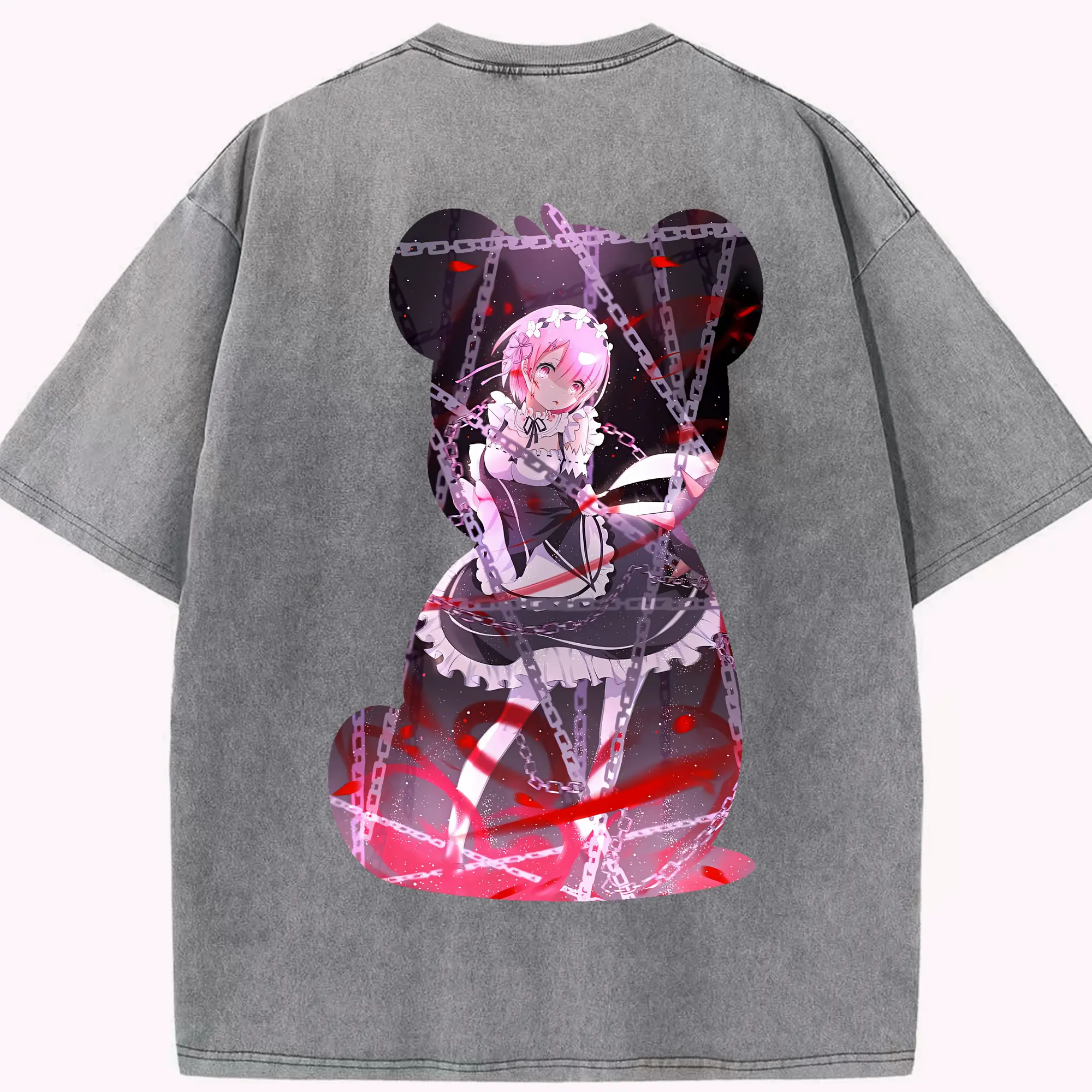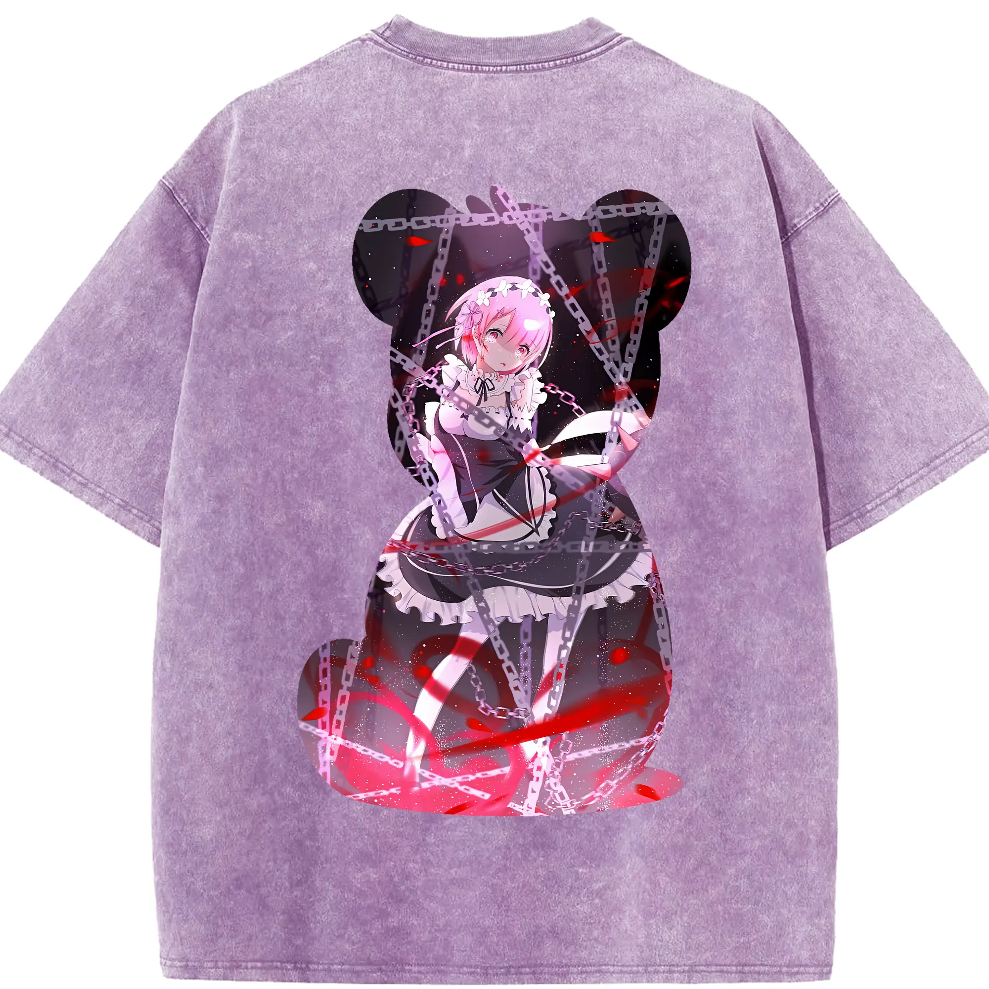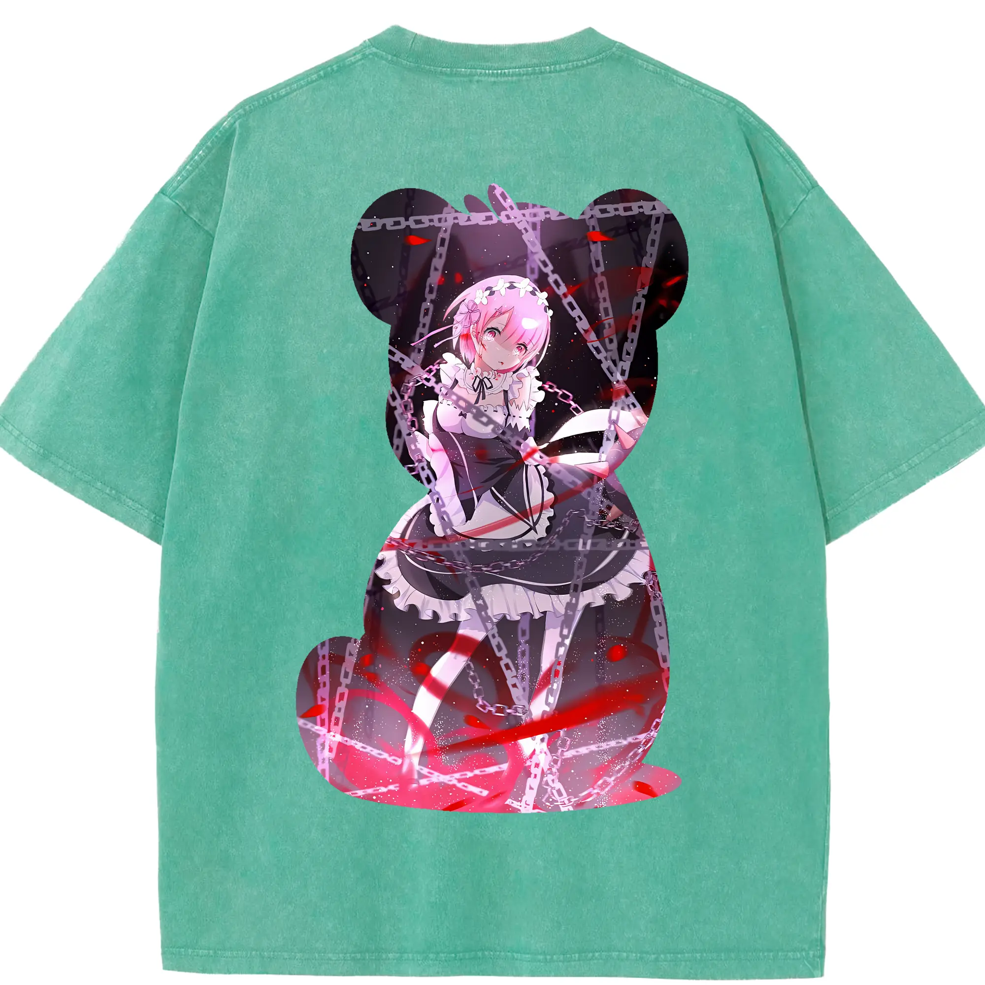 リゼロ グッズ ラム - 綿100% ヴィンテージ風 半袖Tシャツ ・ フロントプリント ・ 柔らか肌触り ・ 通気性 快適 ・ スポーツ カジュアル 外出用
