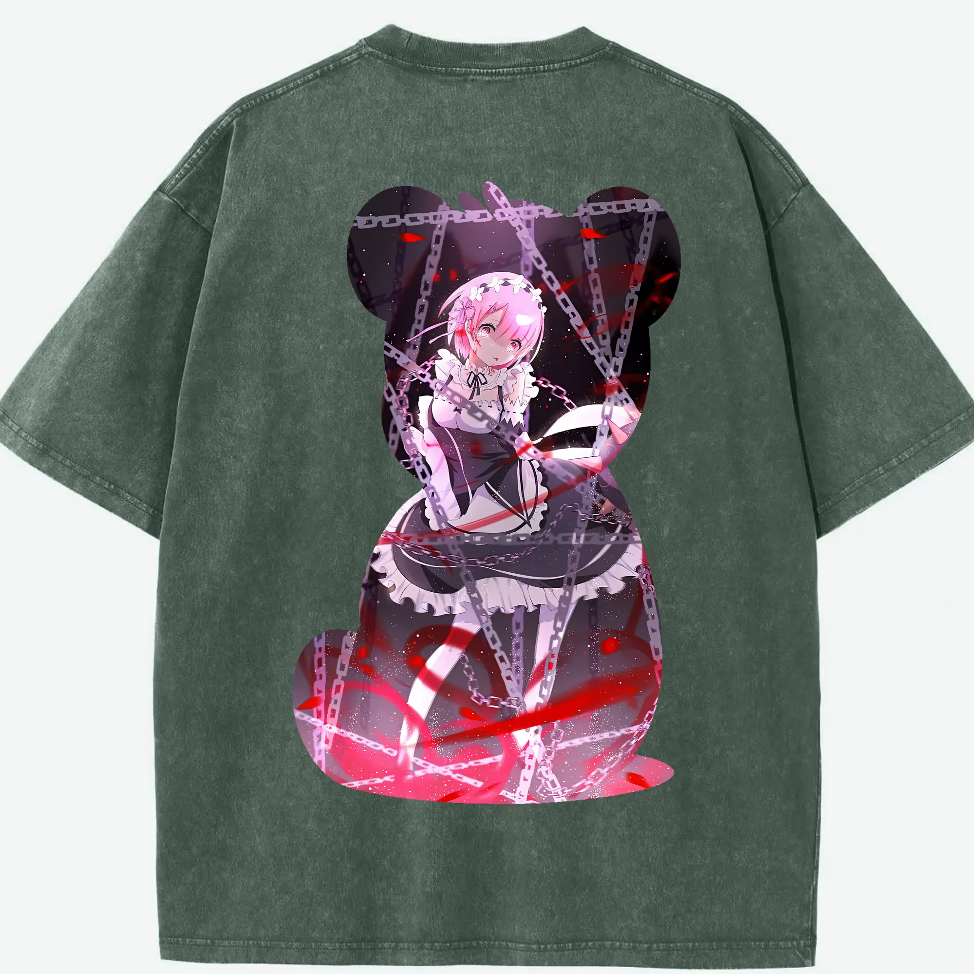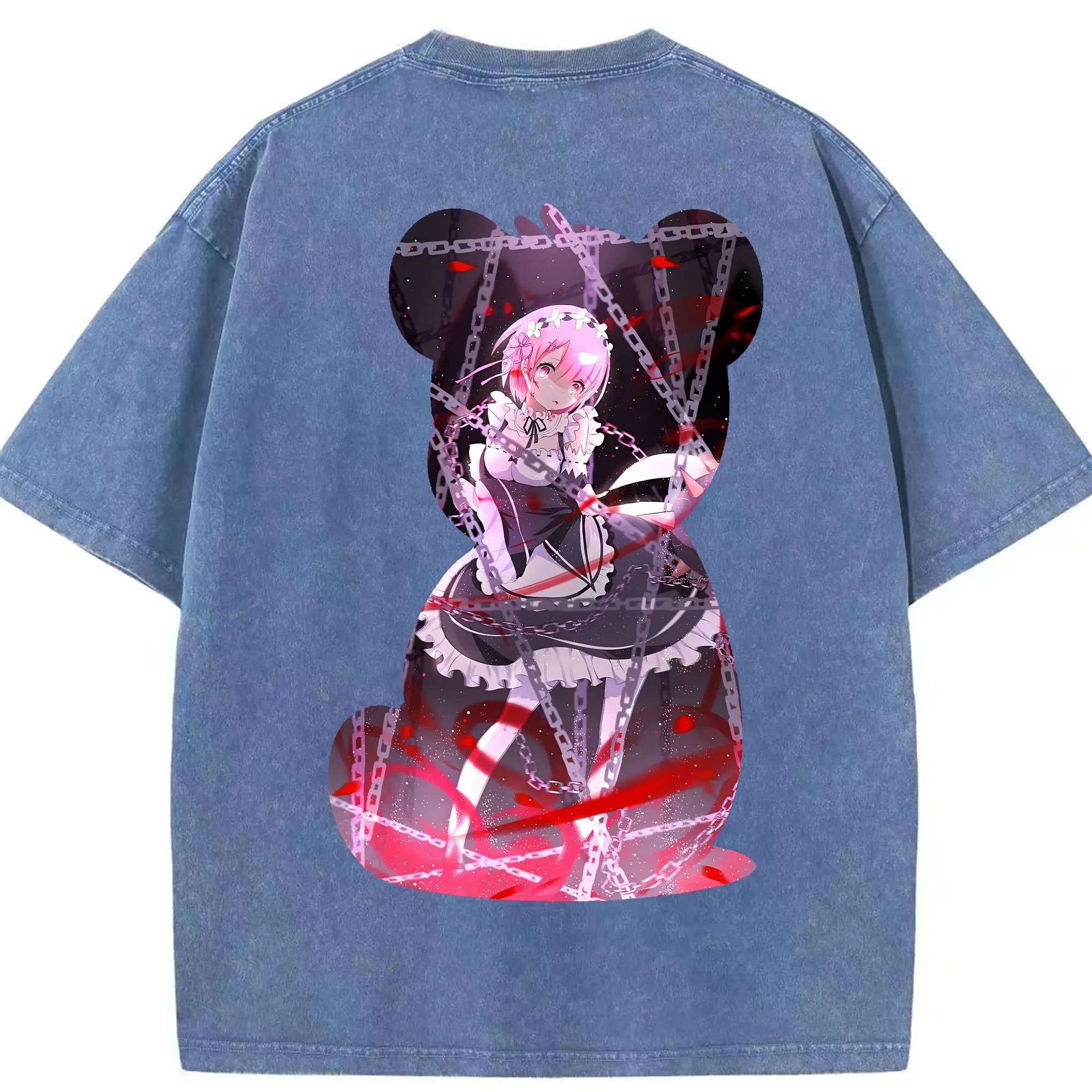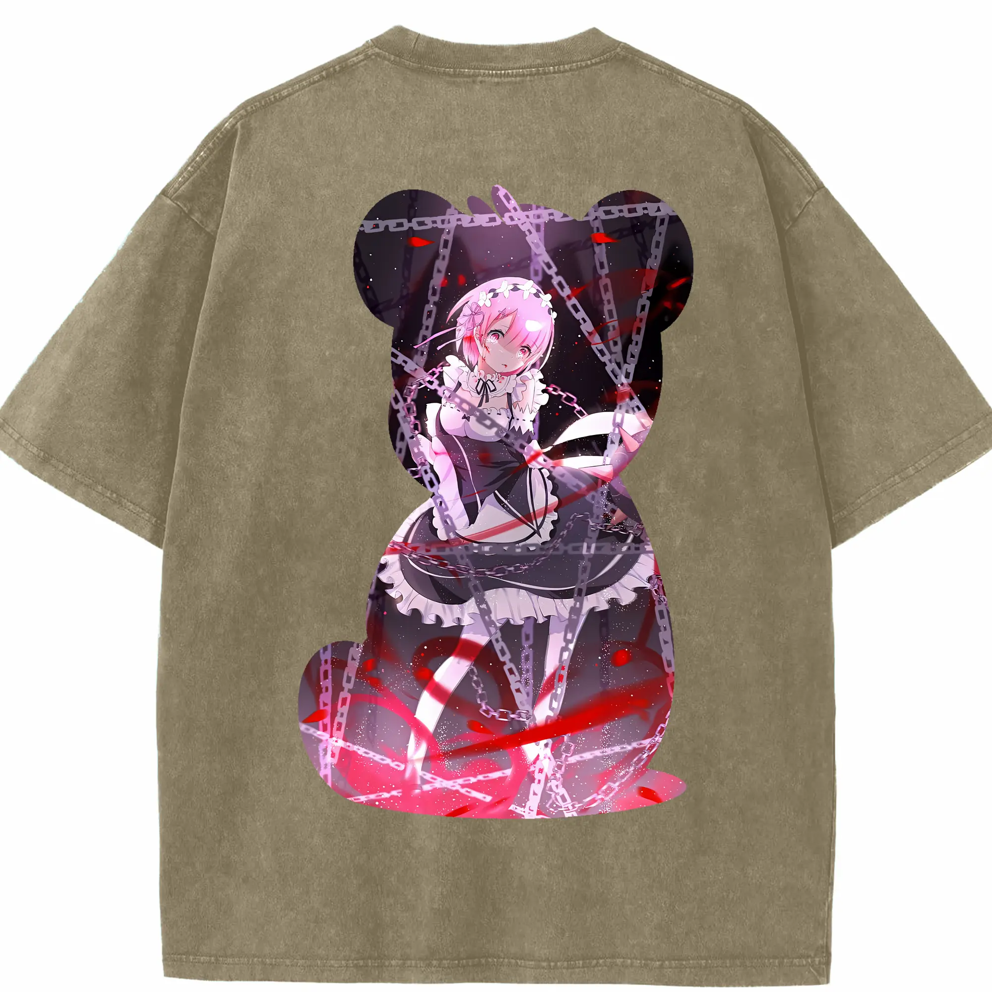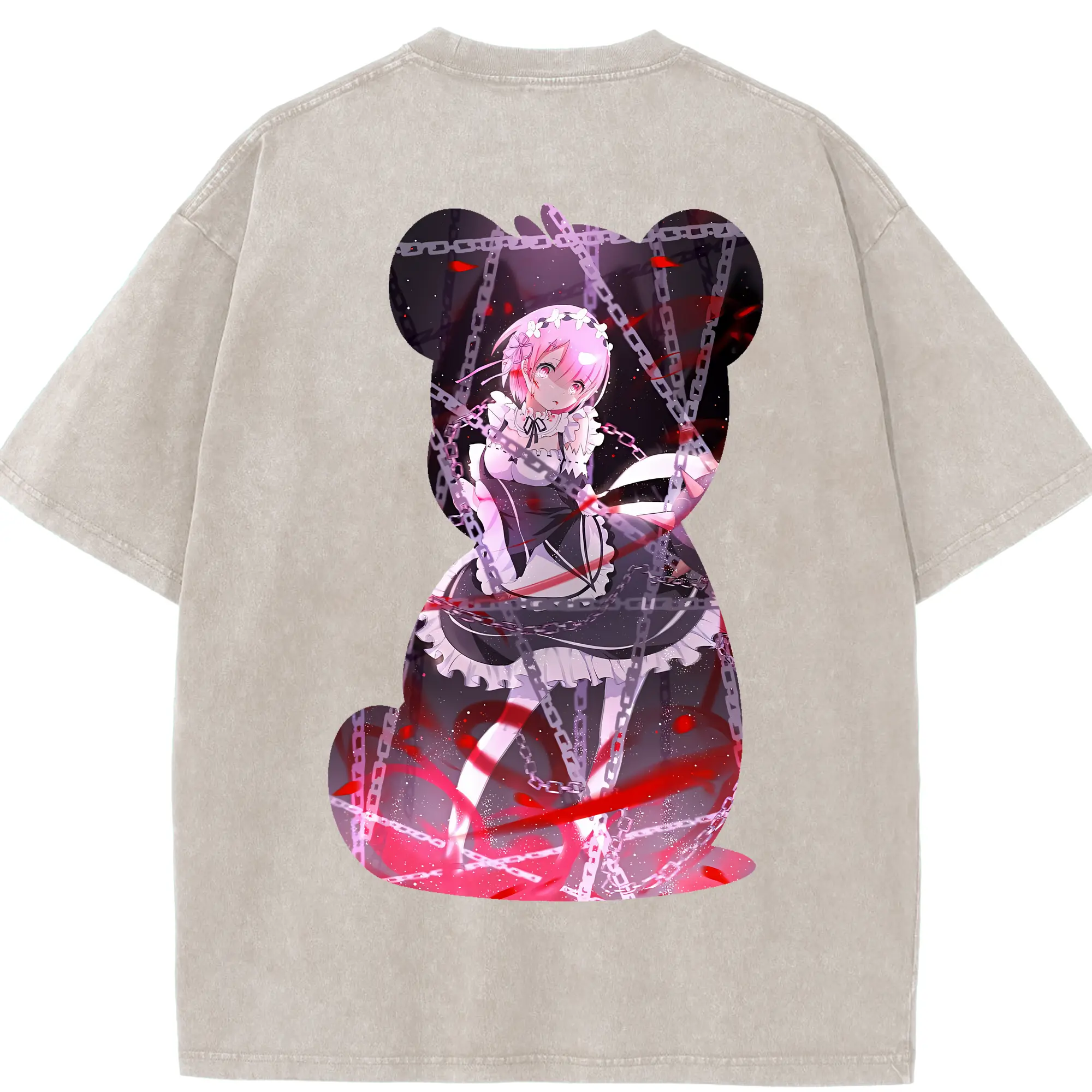 リゼロ グッズ ラム - 綿100% ヴィンテージ風 半袖Tシャツ ・ フロントプリント ・ 柔らか肌触り ・ 通気性 快適 ・ スポーツ カジュアル 外出用