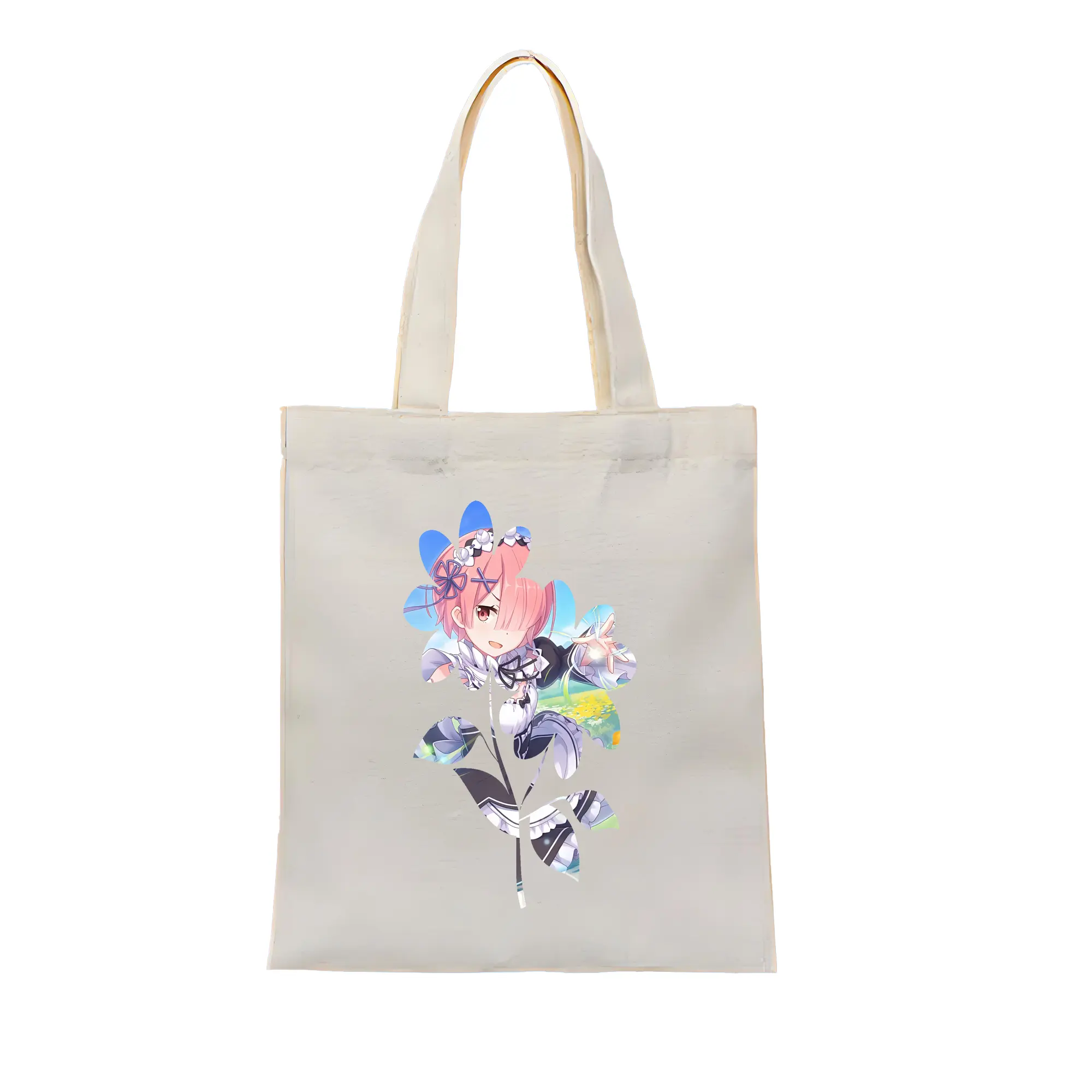 リゼロ グッズ ラム - 縦型キャンバス手提げバッグ(トートバッグ) ・ キャンバス素材 ・ ショッピング用 ・ 軽量 丈夫 お手入れ簡単