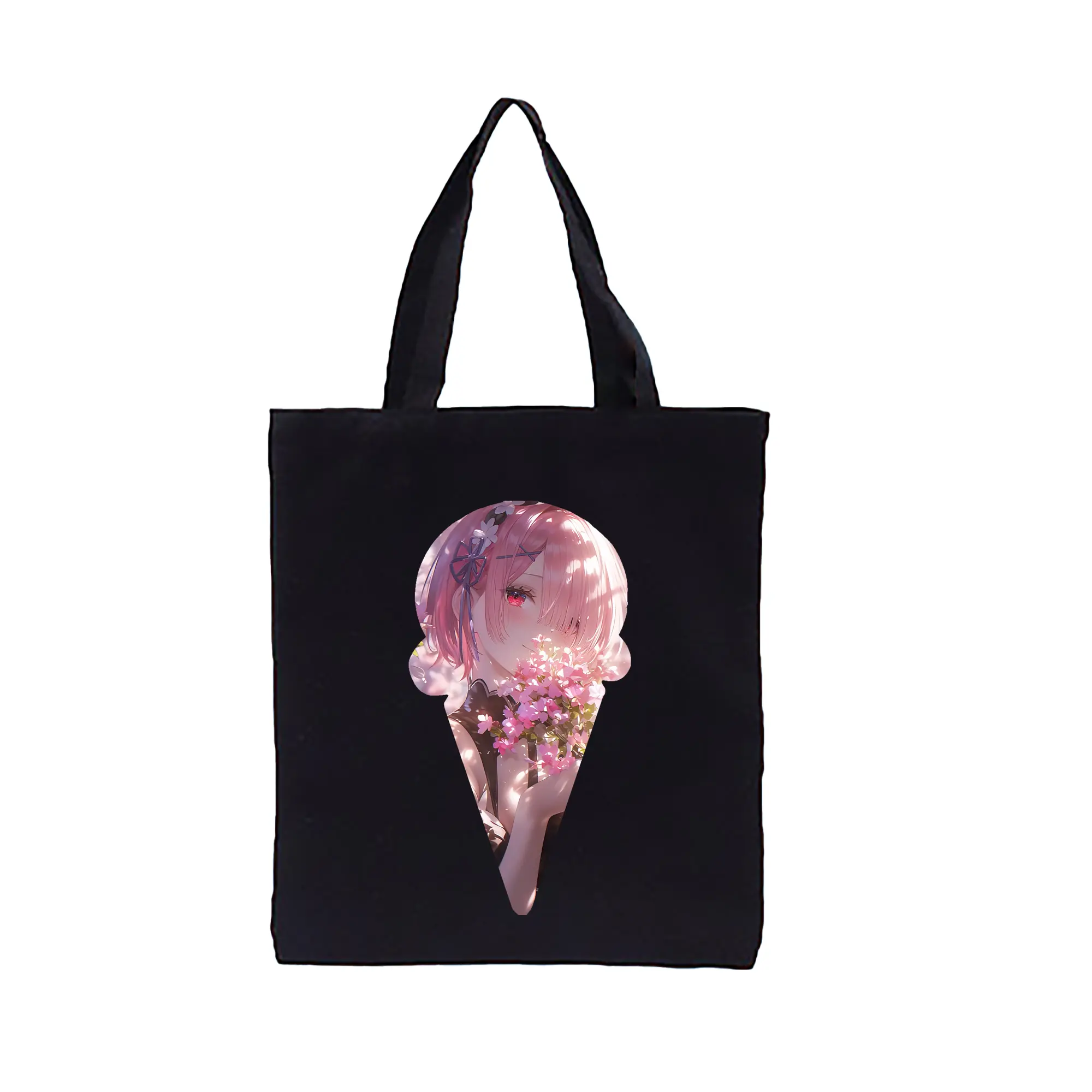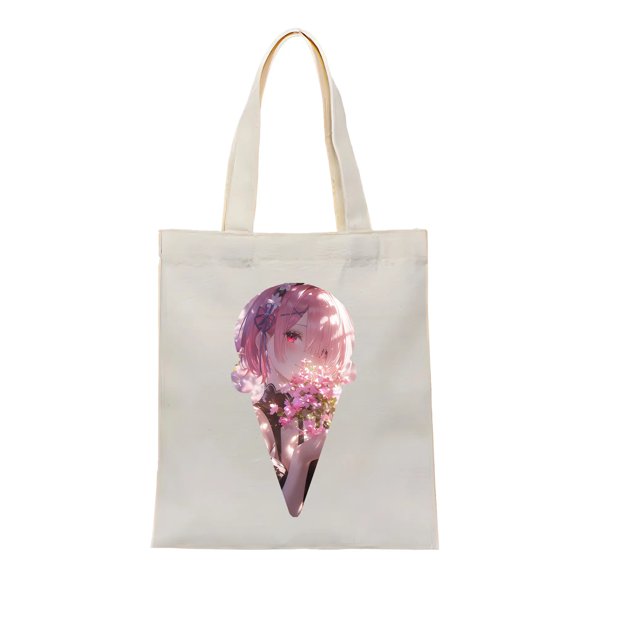 リゼロ グッズ ラム - 縦型キャンバス手提げバッグ(トートバッグ) ・ キャンバス素材 ・ ショッピング用 ・ 軽量 丈夫 お手入れ簡単