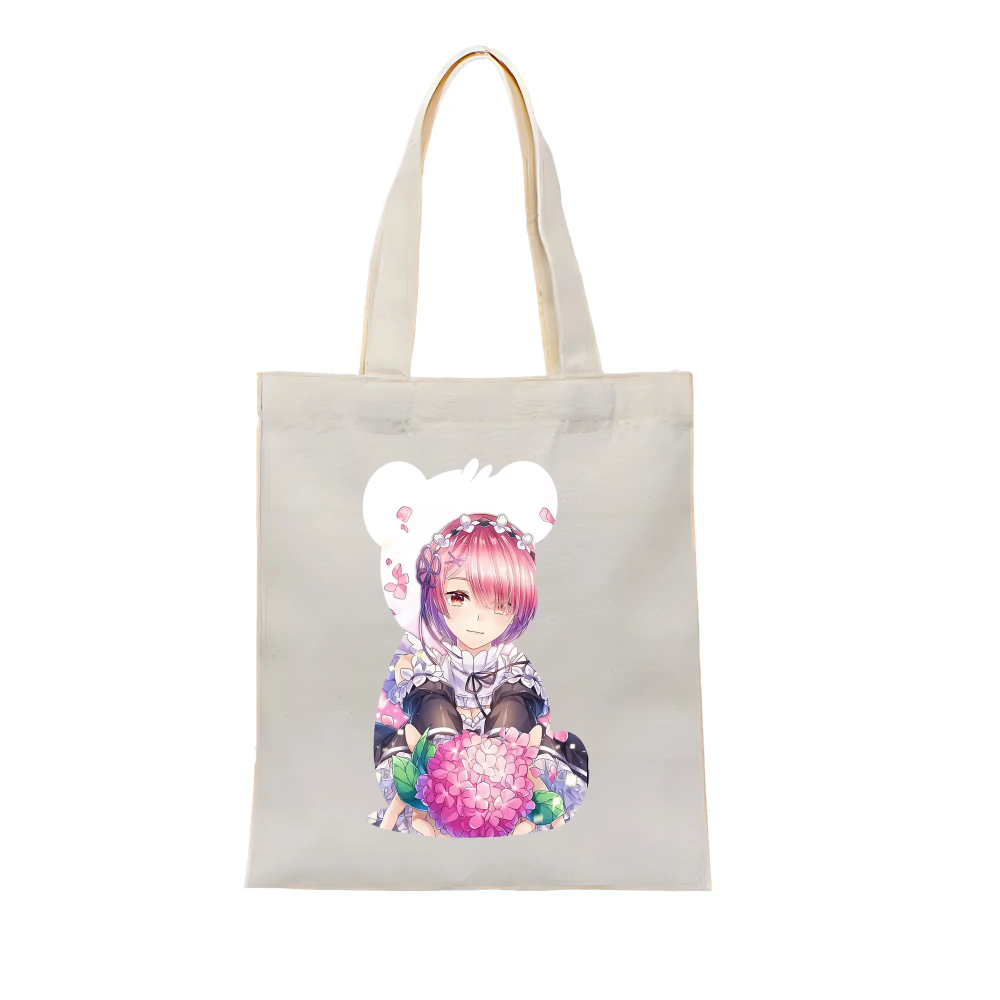 リゼロ グッズ ラム - 縦型キャンバス手提げバッグ(トートバッグ) ・ キャンバス素材 ・ ショッピング用 ・ 軽量 丈夫 お手入れ簡単