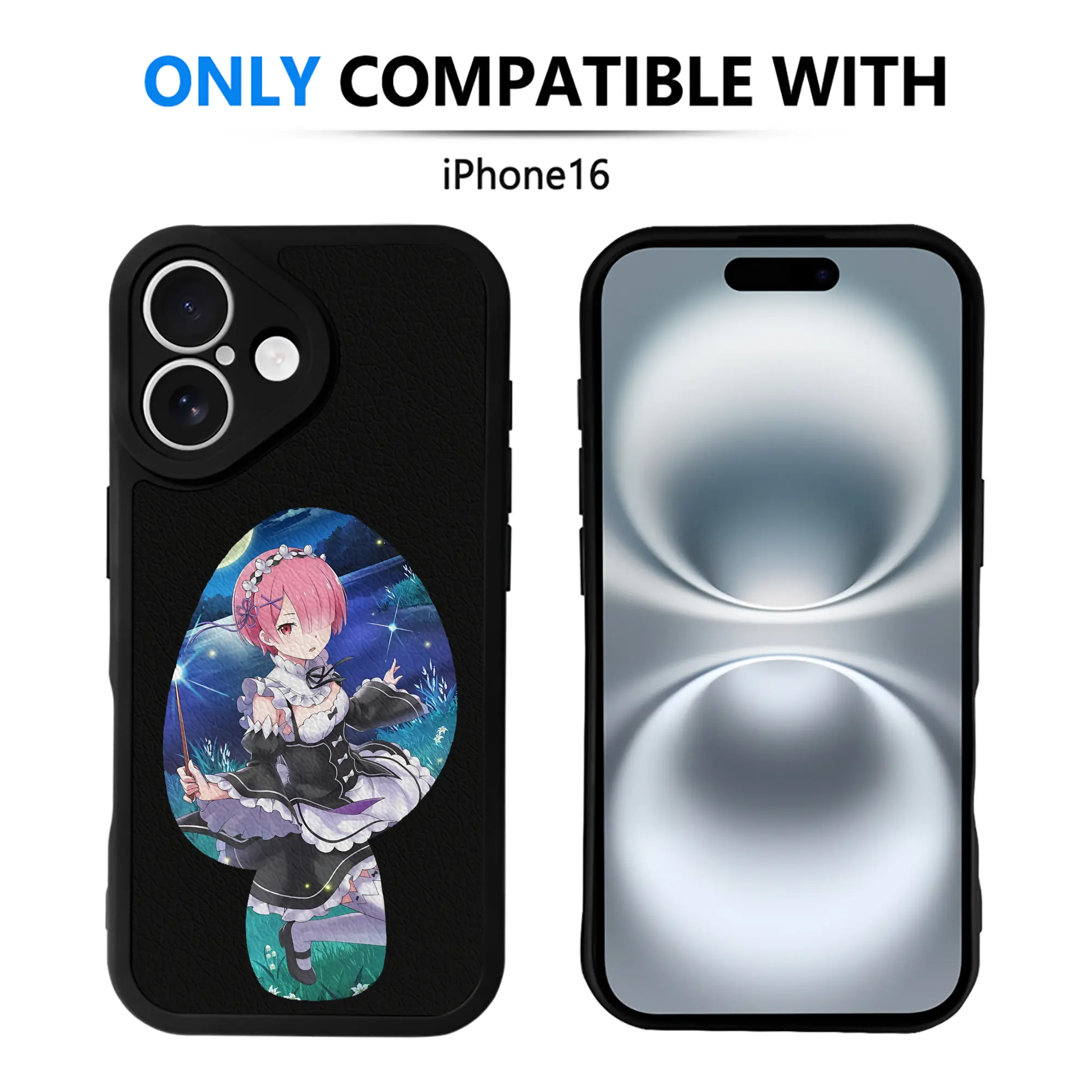 リゼロ グッズ ラム - IPhone 16シリーズ対応 ・ シリコンスマホケース ・ レザー調 ・ 高精度フィット ・ 耐衝撃 ・ ワイヤレス充電対応 ・ 精密カット