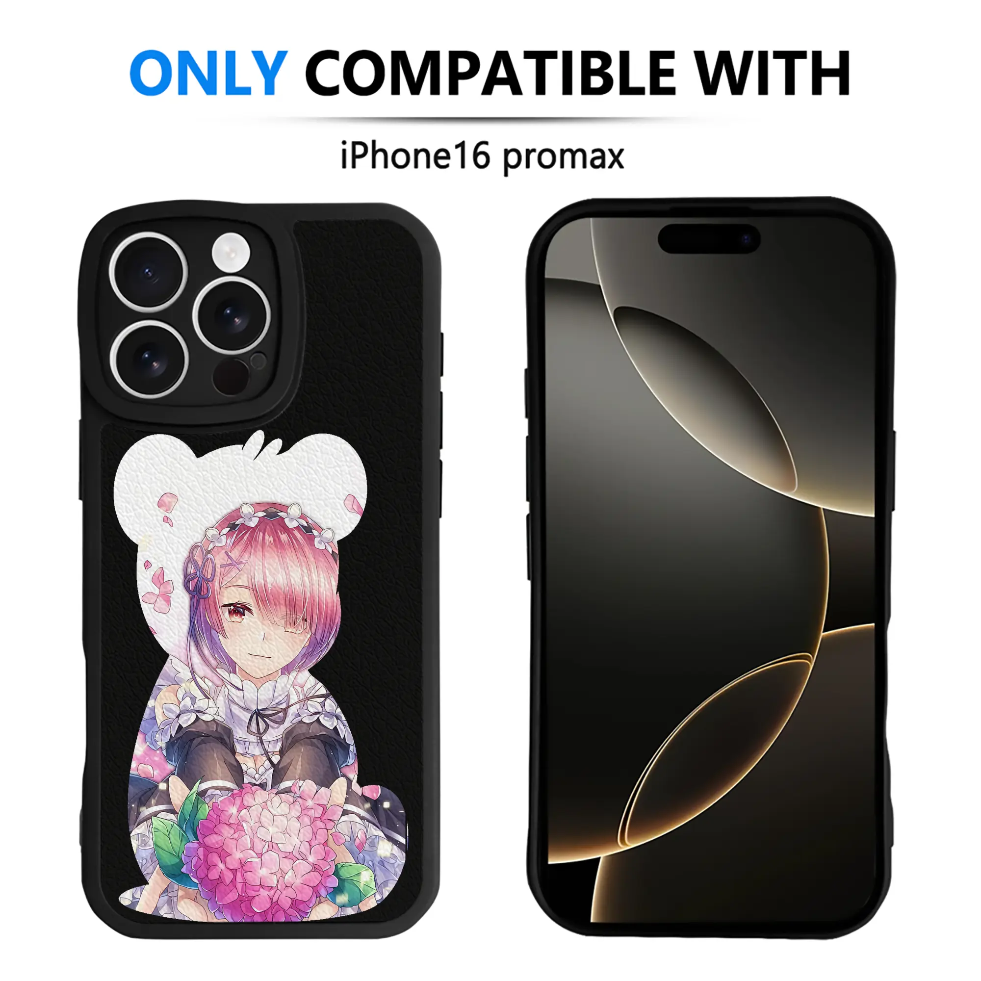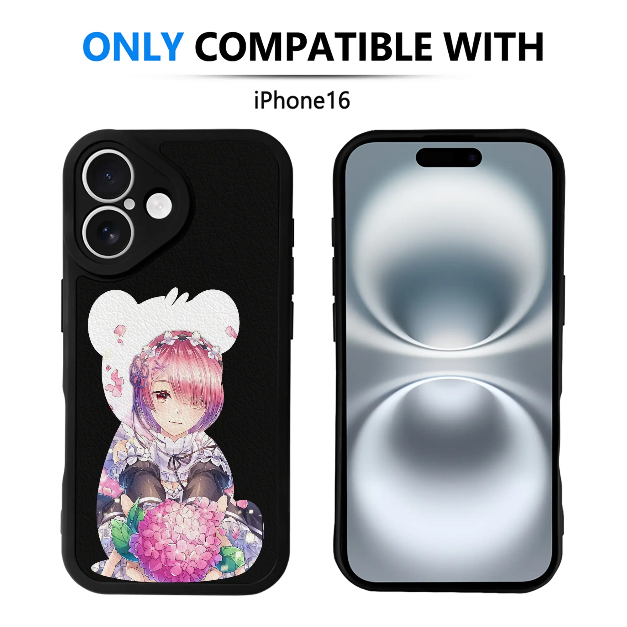 リゼロ グッズ ラム - IPhone 16シリーズ対応 ・ シリコンスマホケース ・ レザー調 ・ 高精度フィット ・ 耐衝撃 ・ ワイヤレス充電対応 ・ 精密カット