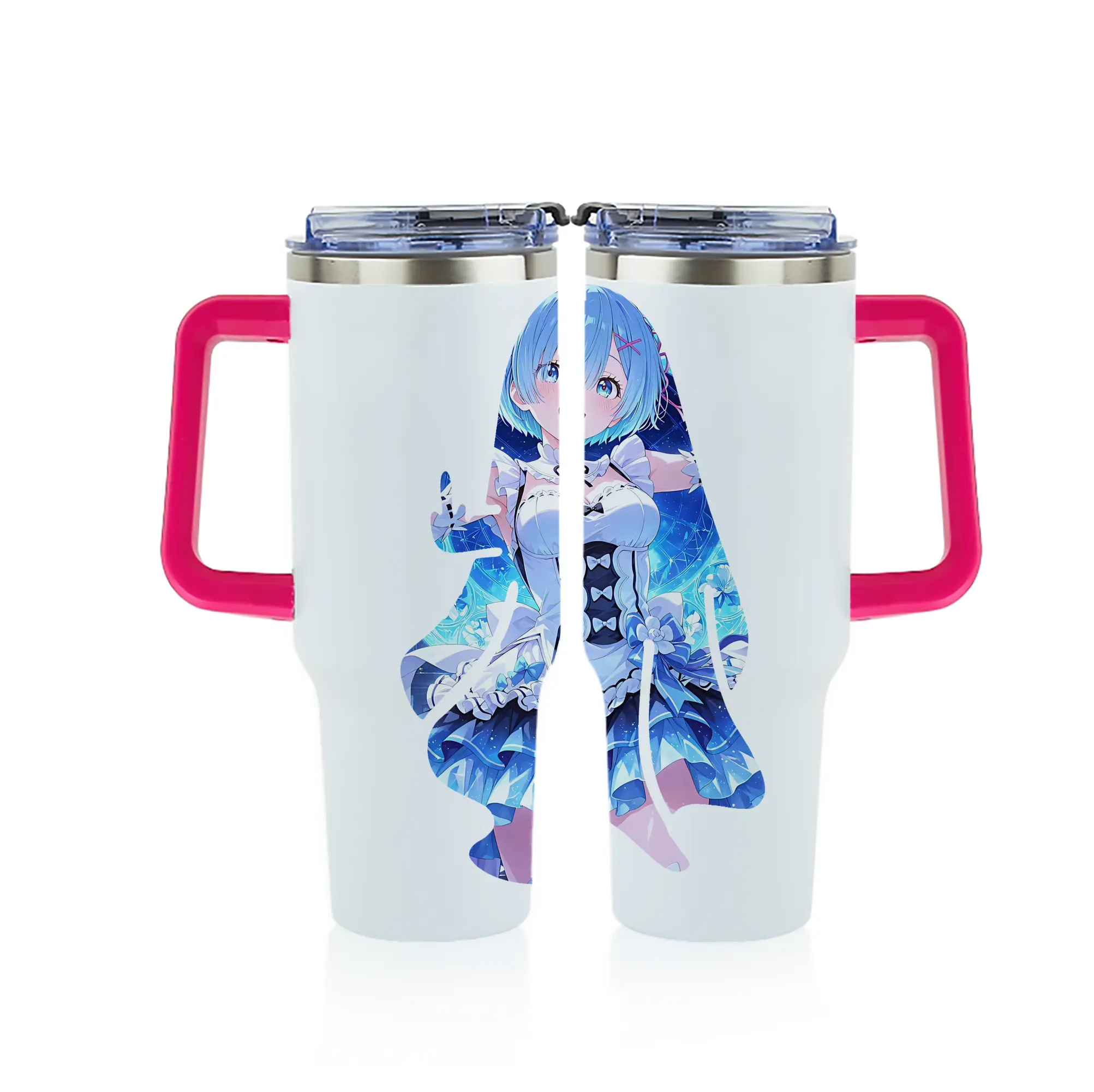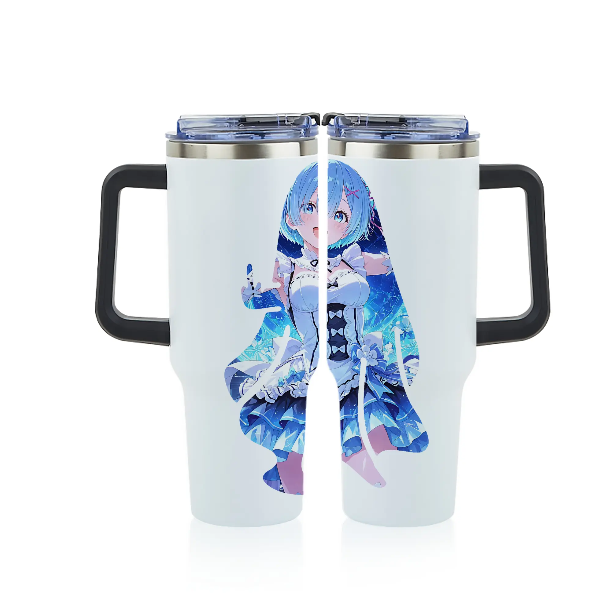 リゼロ グッズ レム - 1200mL フルプリント車用タンブラー ・ 304ステンレス 内側 ・ 201ステンレス 外側 ・ 保温 保冷 ・ 通勤 ドライブ アウトドア用