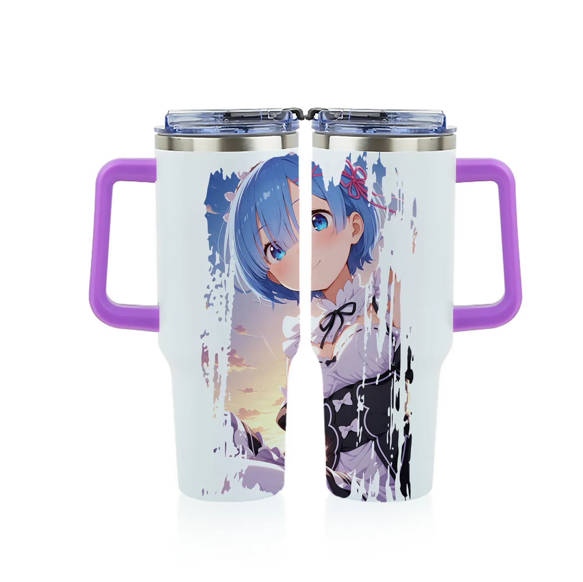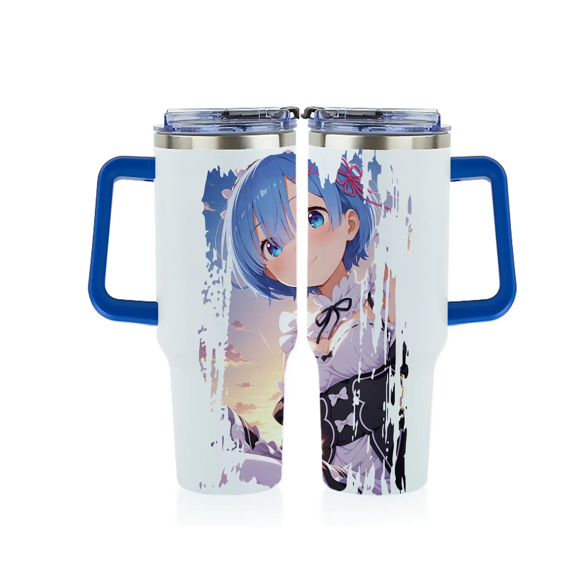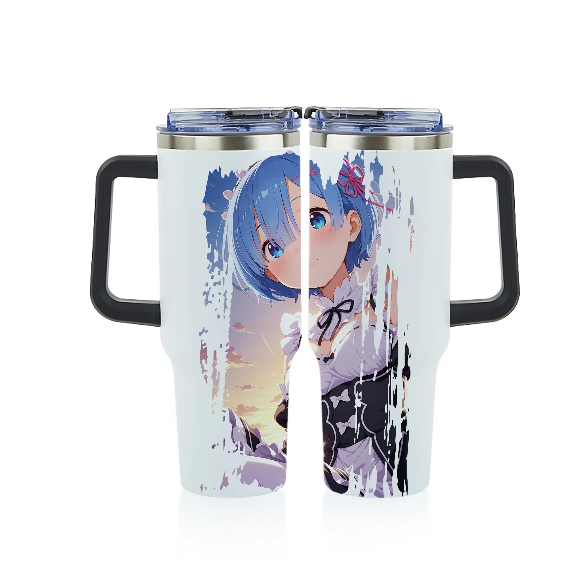 リゼロ グッズ レム - 1200mL フルプリント車用タンブラー ・ 304ステンレス 内側 ・ 201ステンレス 外側 ・ 保温 保冷 ・ 通勤 ドライブ アウトドア用