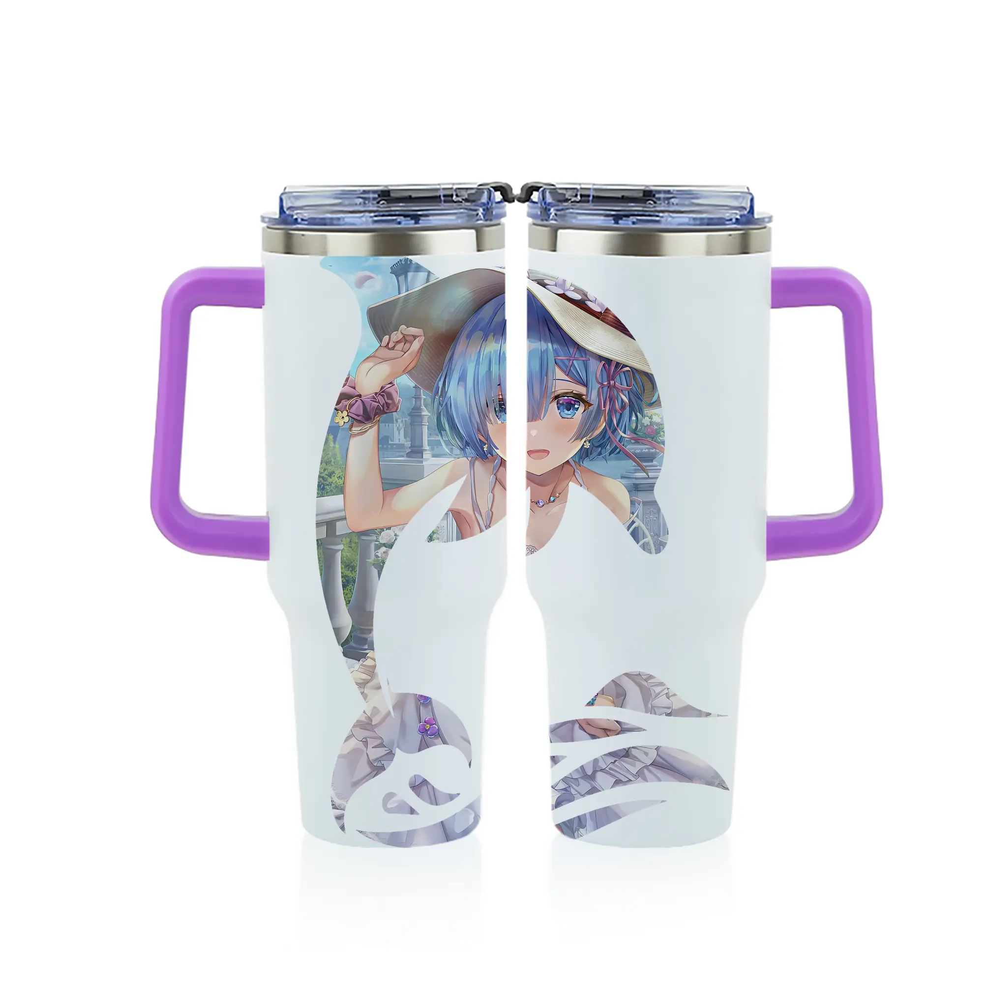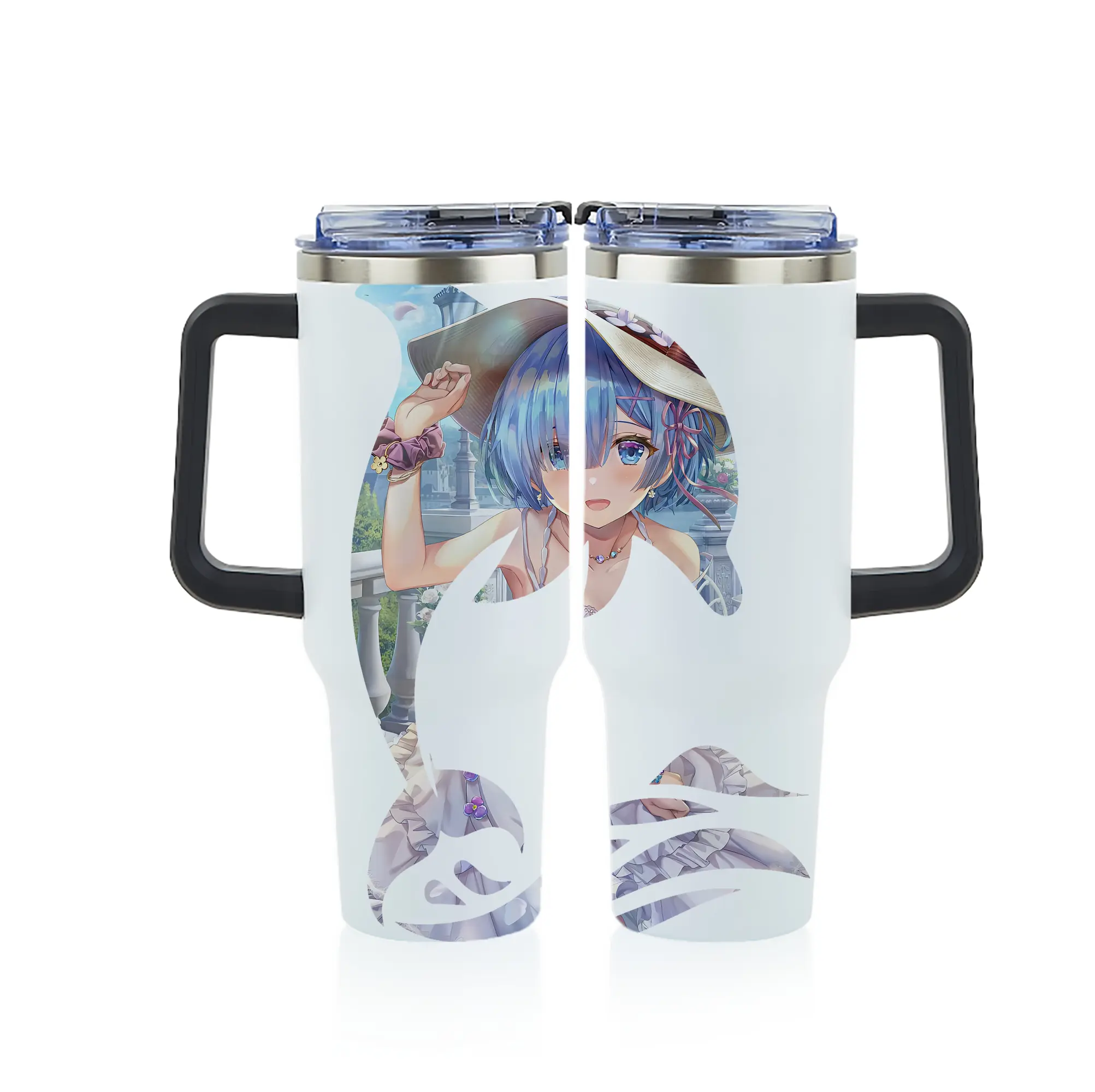 リゼロ グッズ レム - 1200mL フルプリント車用タンブラー ・ 304ステンレス 内側 ・ 201ステンレス 外側 ・ 保温 保冷 ・ 通勤 ドライブ アウトドア用