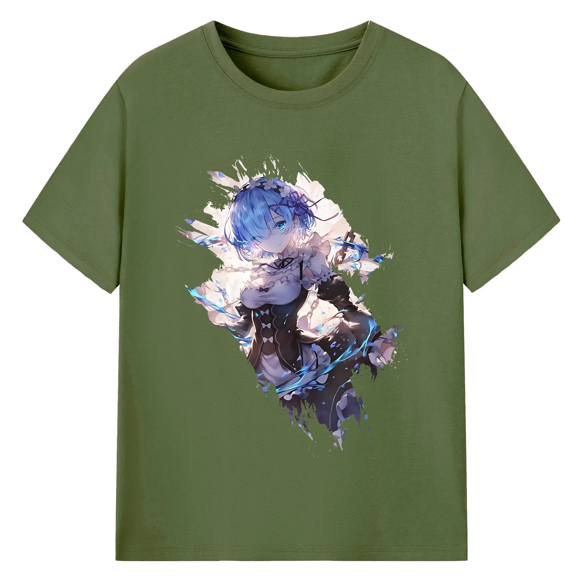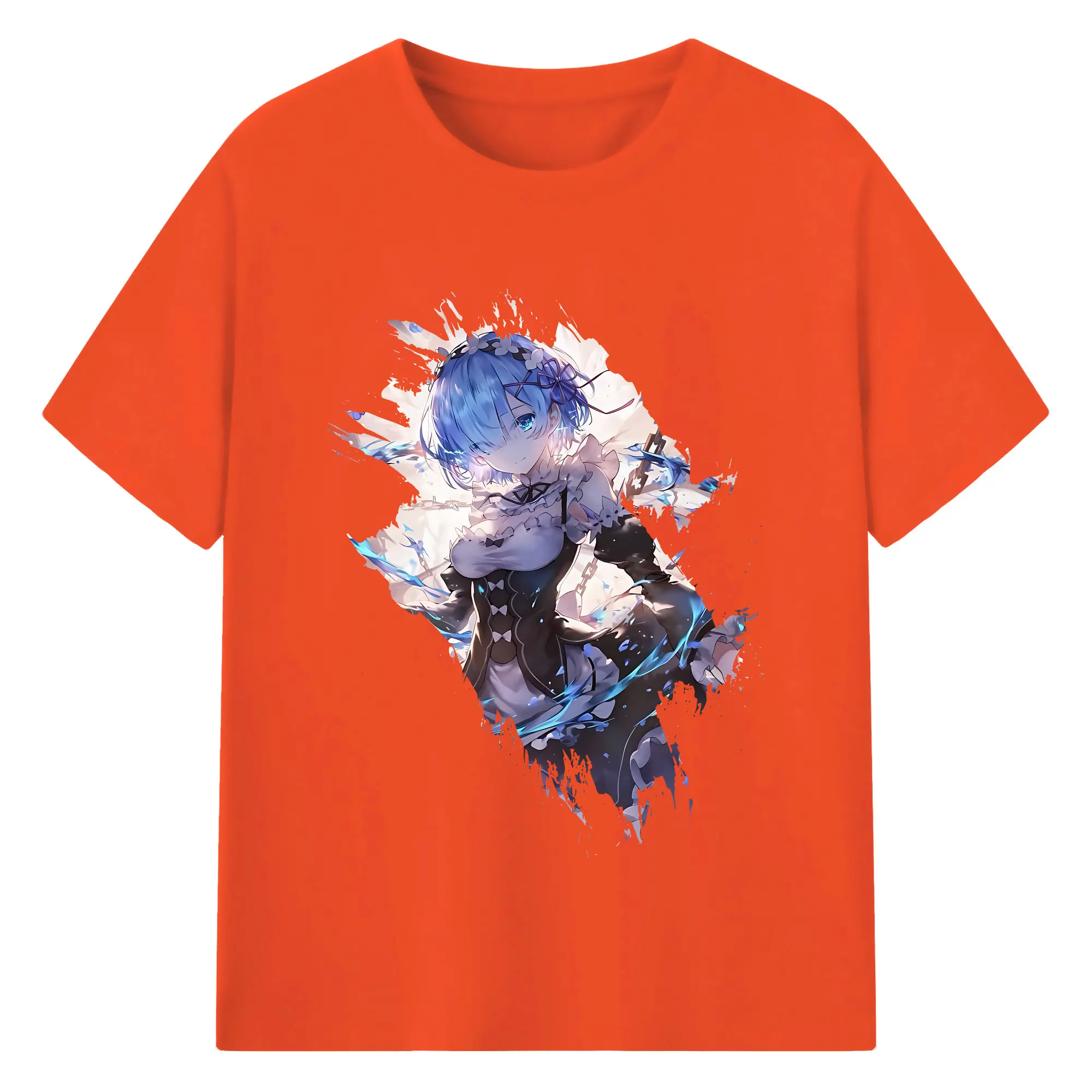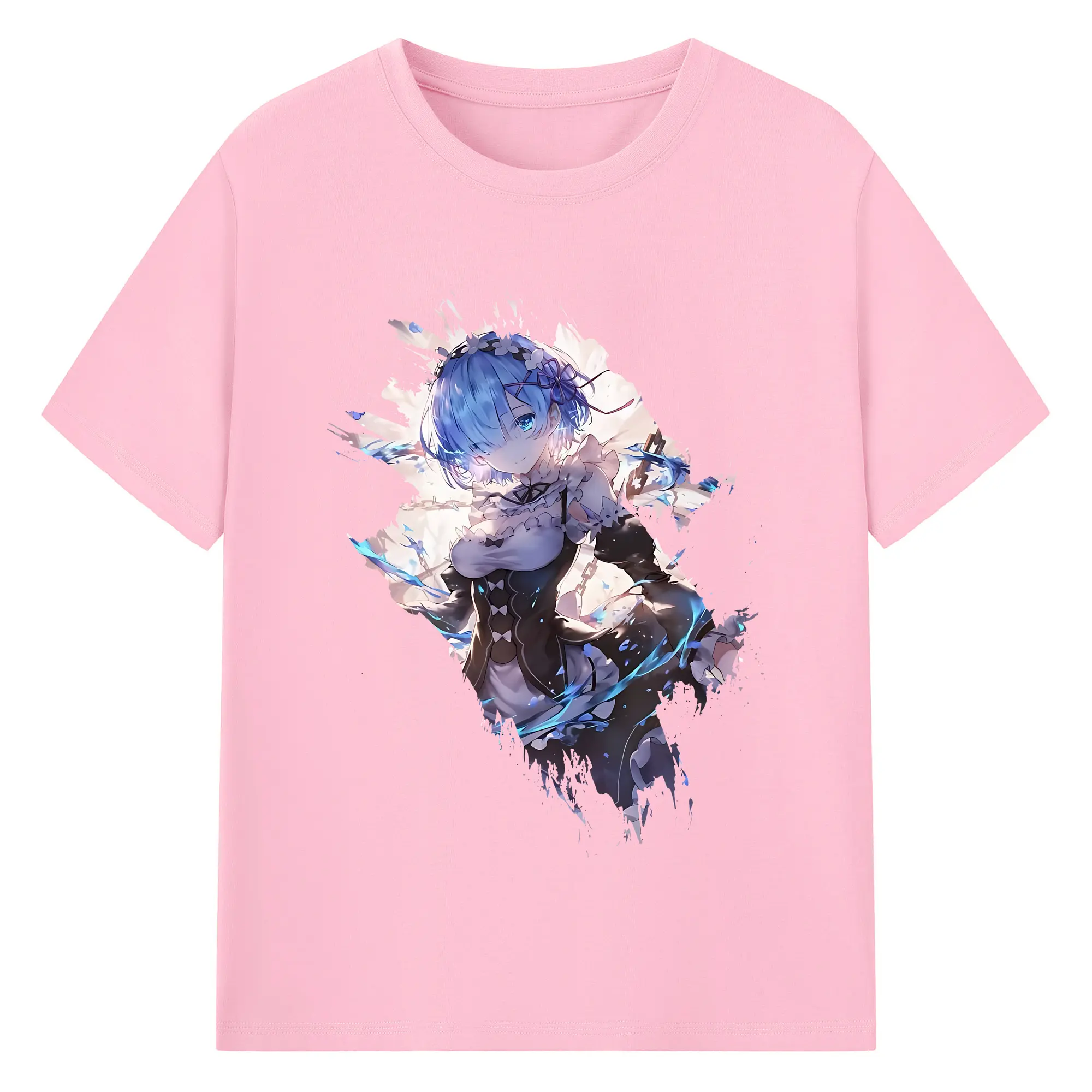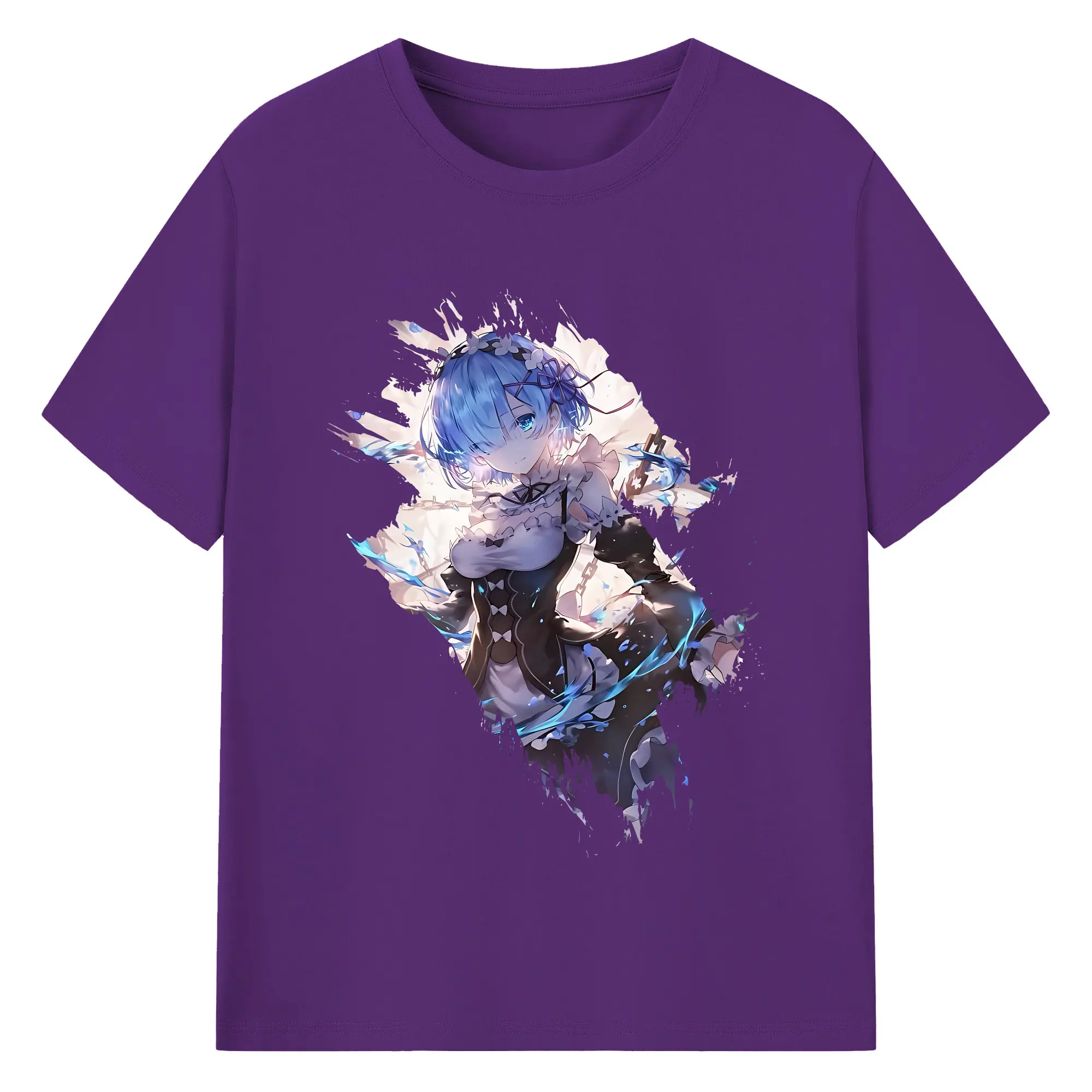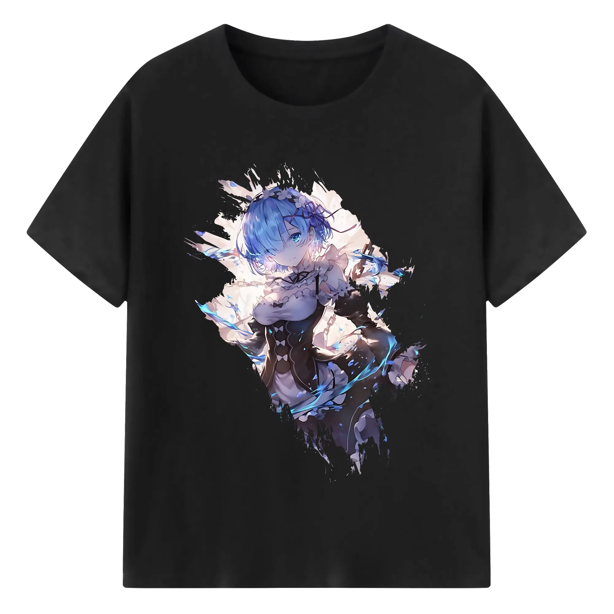 リゼロ グッズ レム - 綿100% 半袖Tシャツ ・ バックプリント ・ 快適 通気性 ・ 日常使い 散歩 スポーツ用