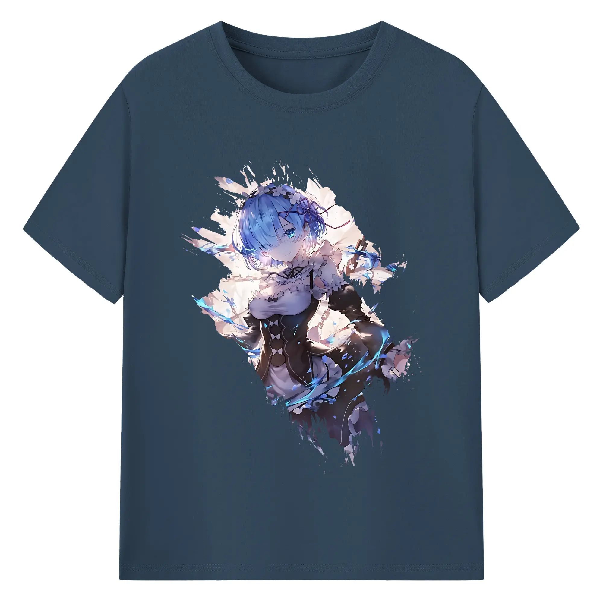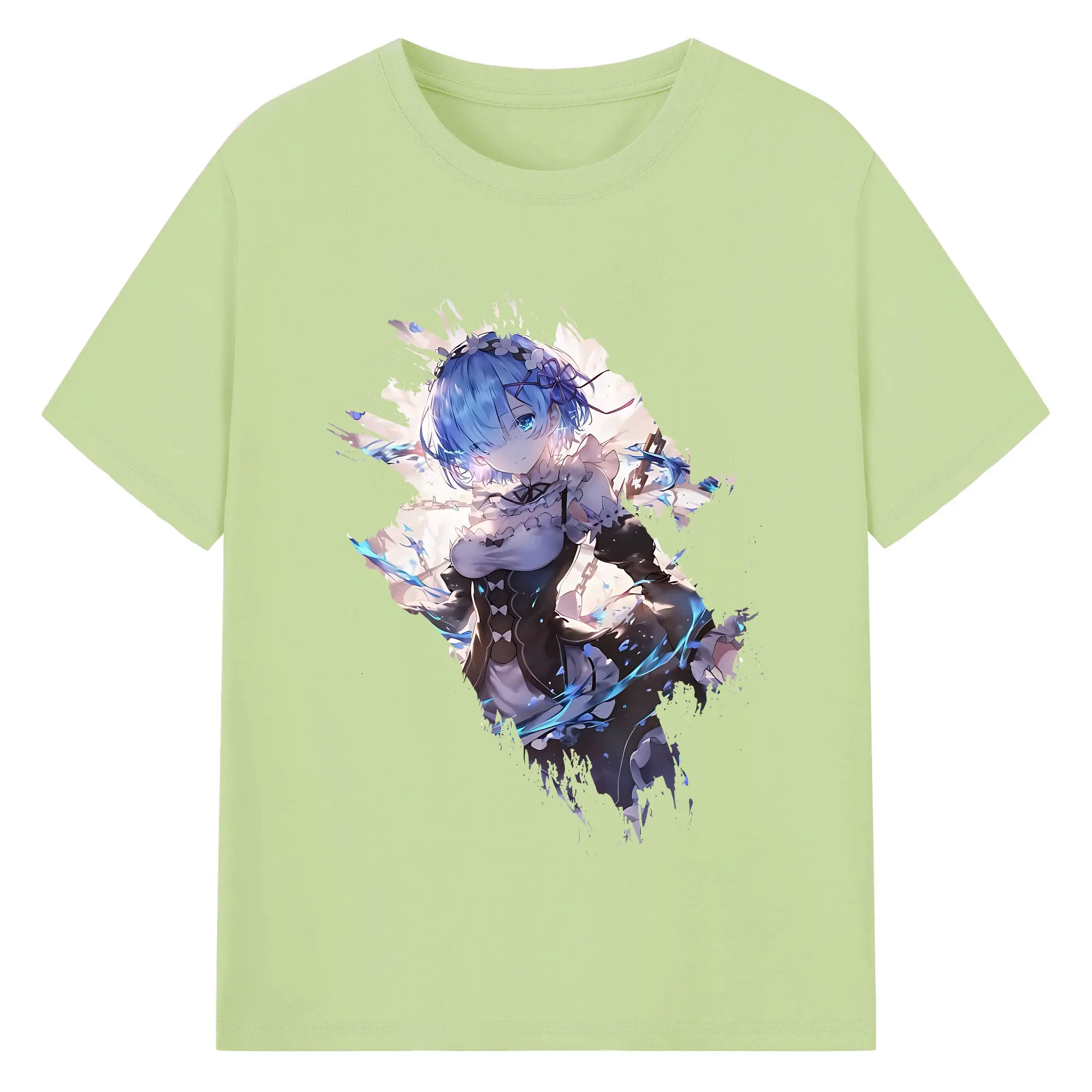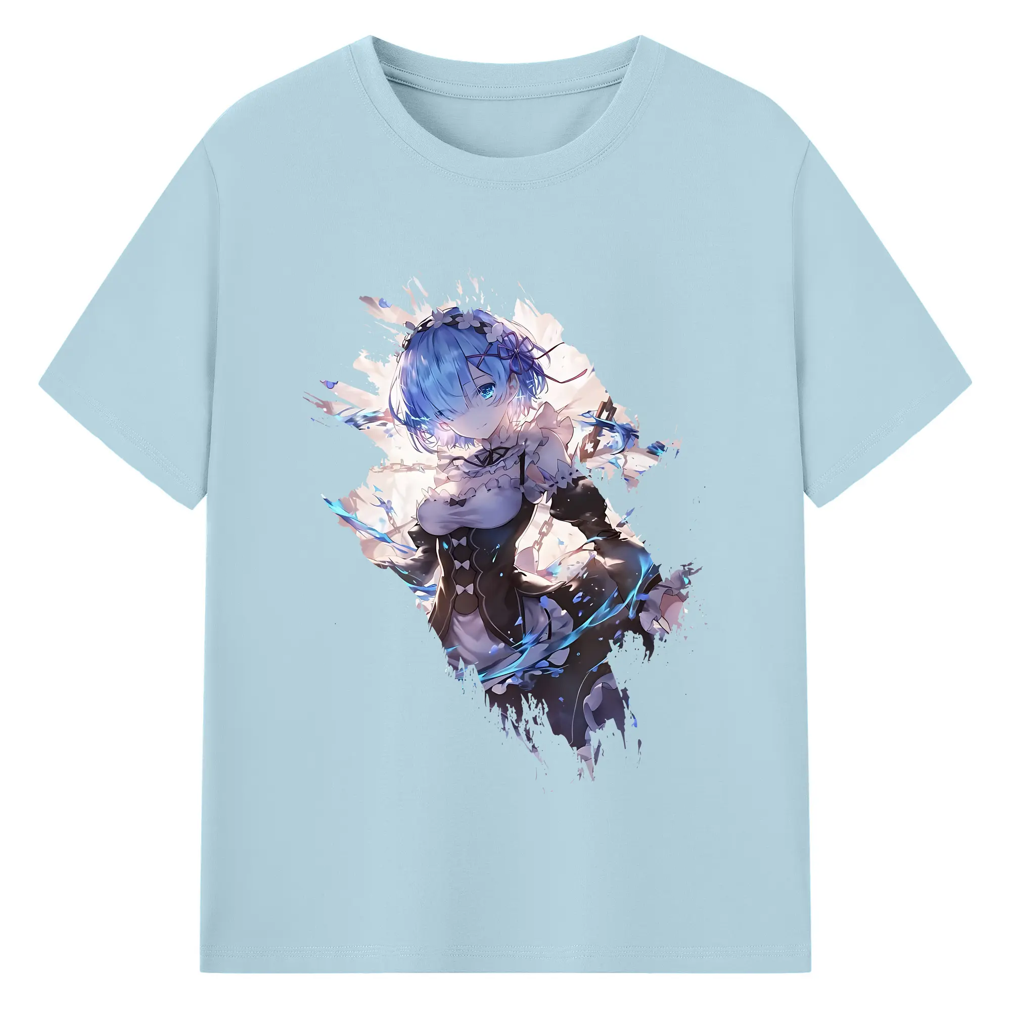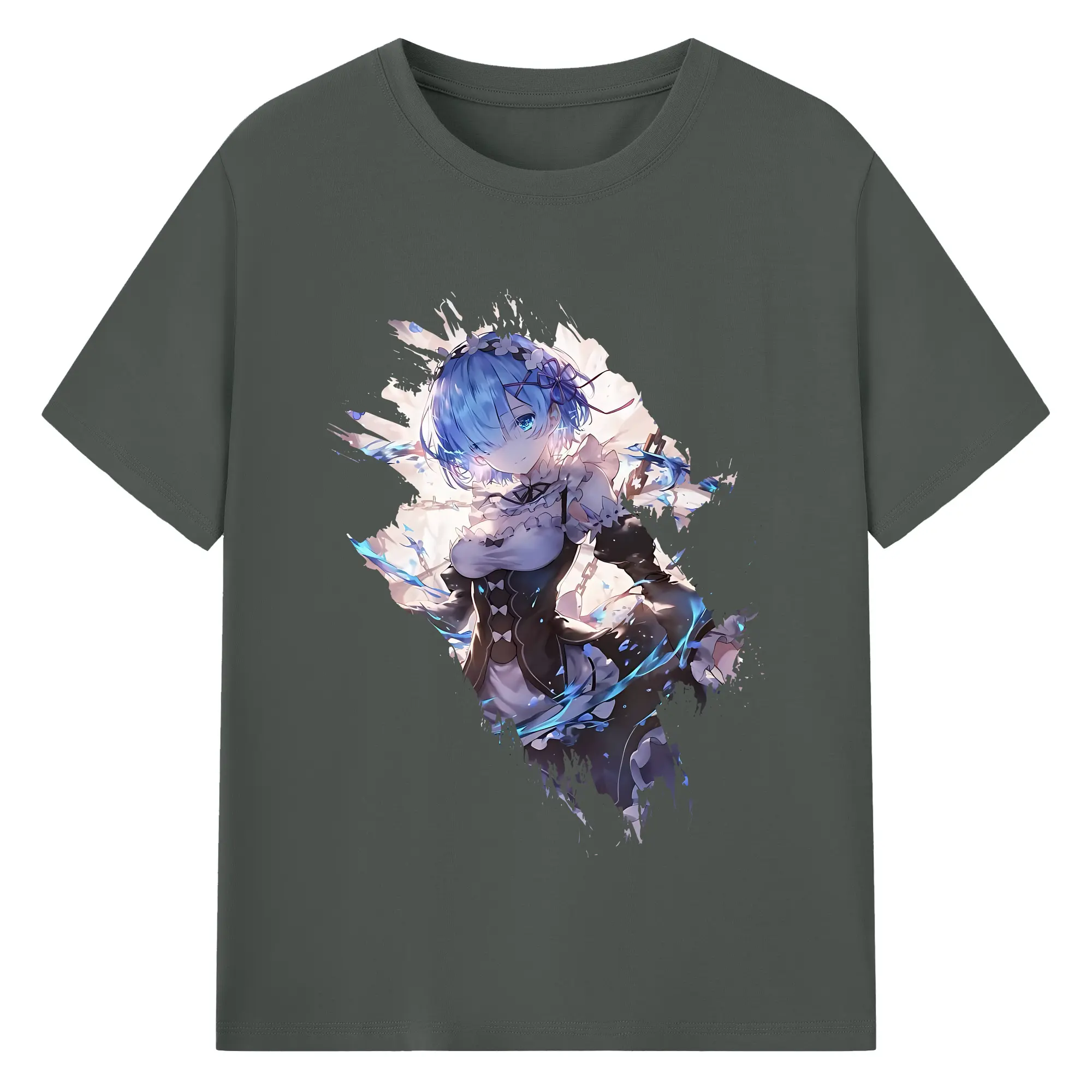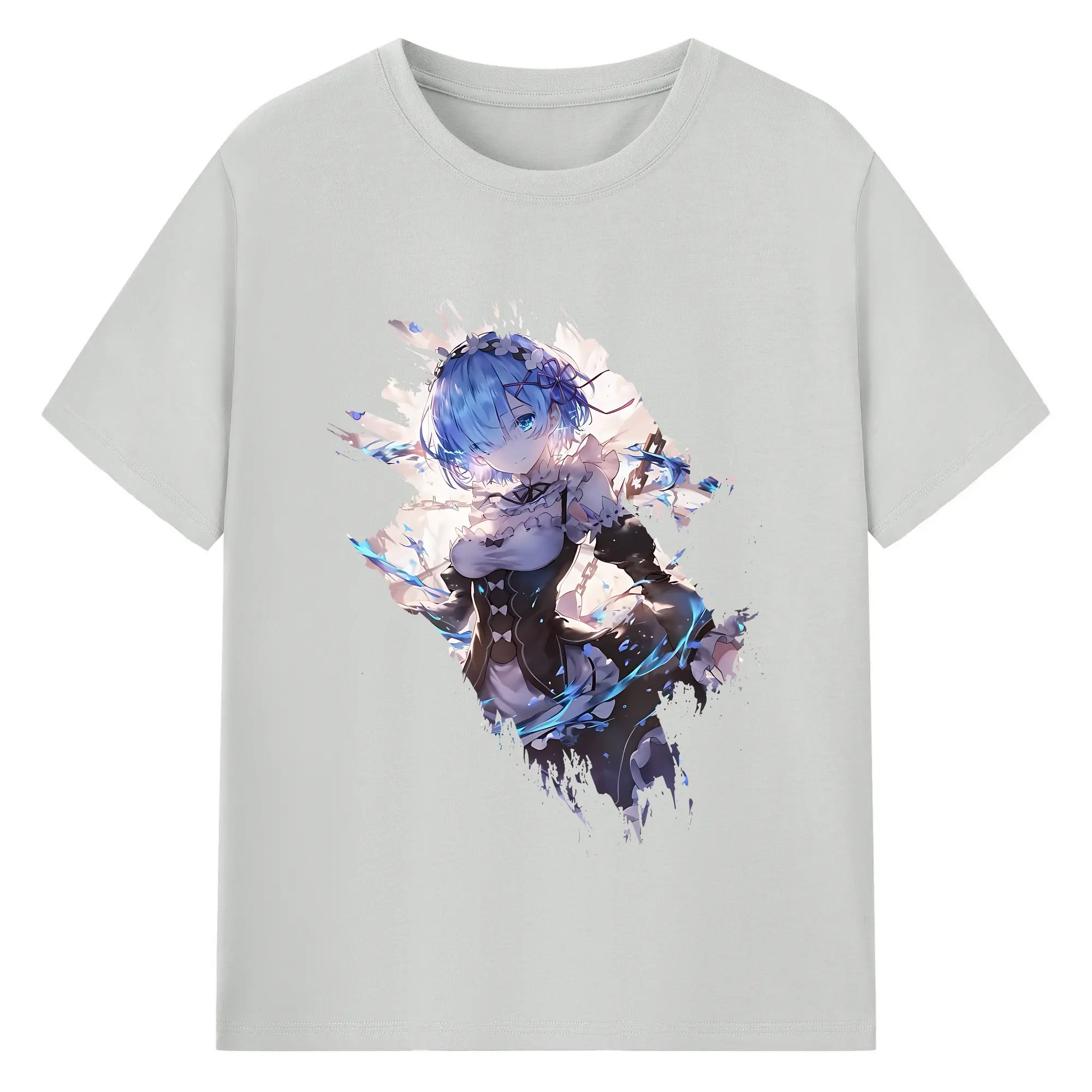 リゼロ グッズ レム - 綿100% 半袖Tシャツ ・ バックプリント ・ 快適 通気性 ・ 日常使い 散歩 スポーツ用