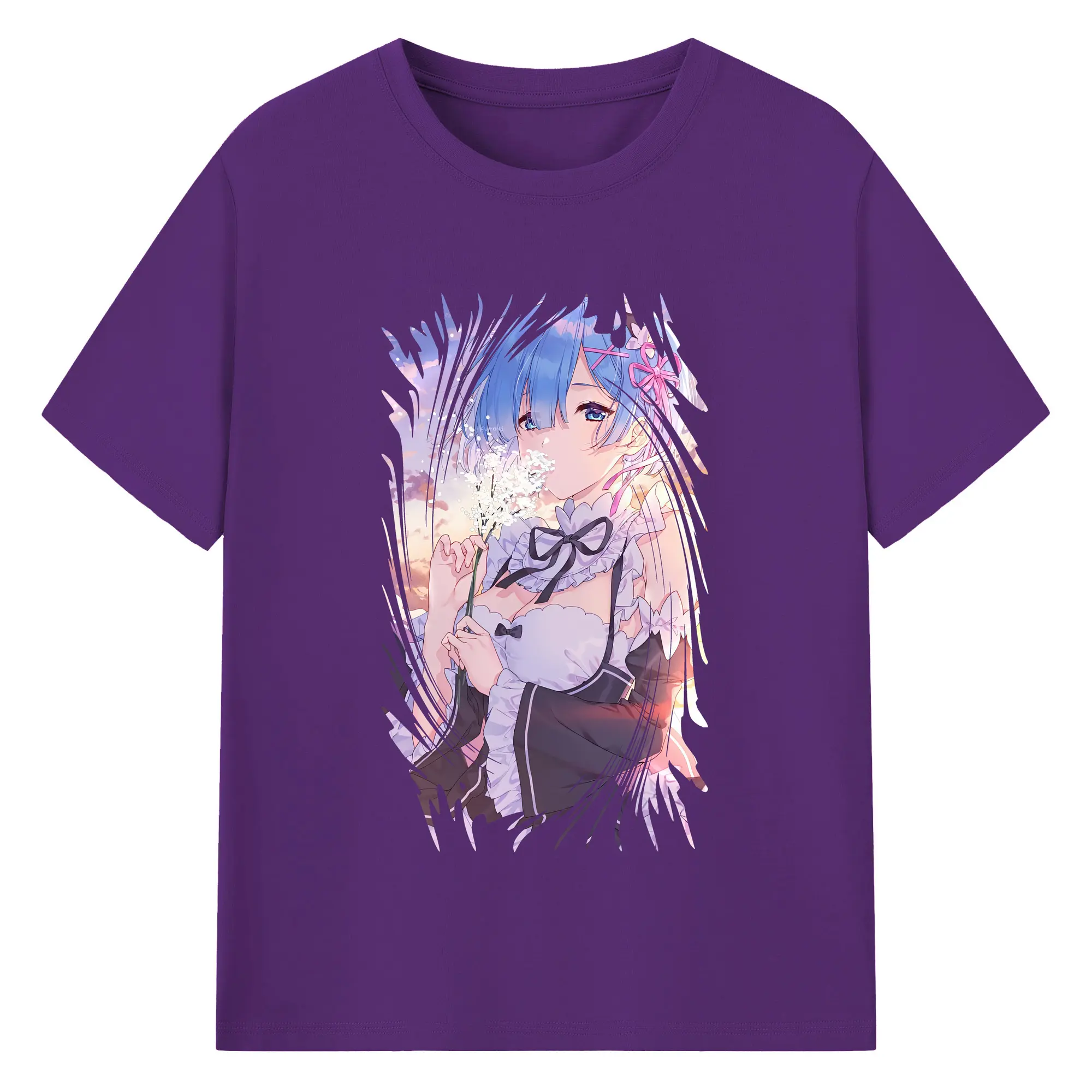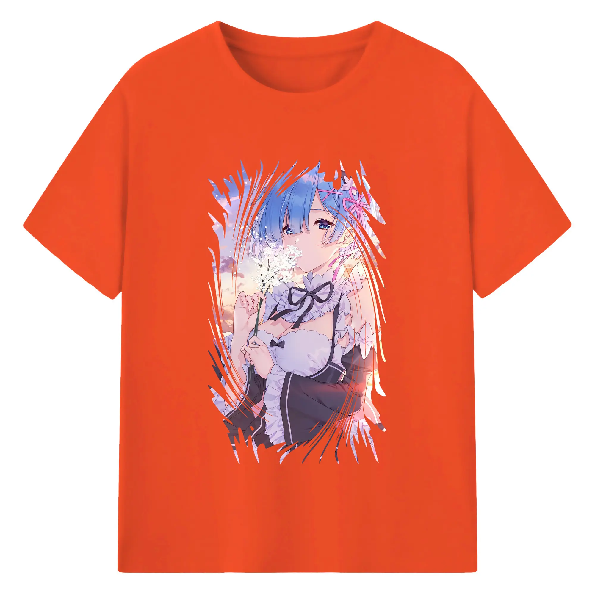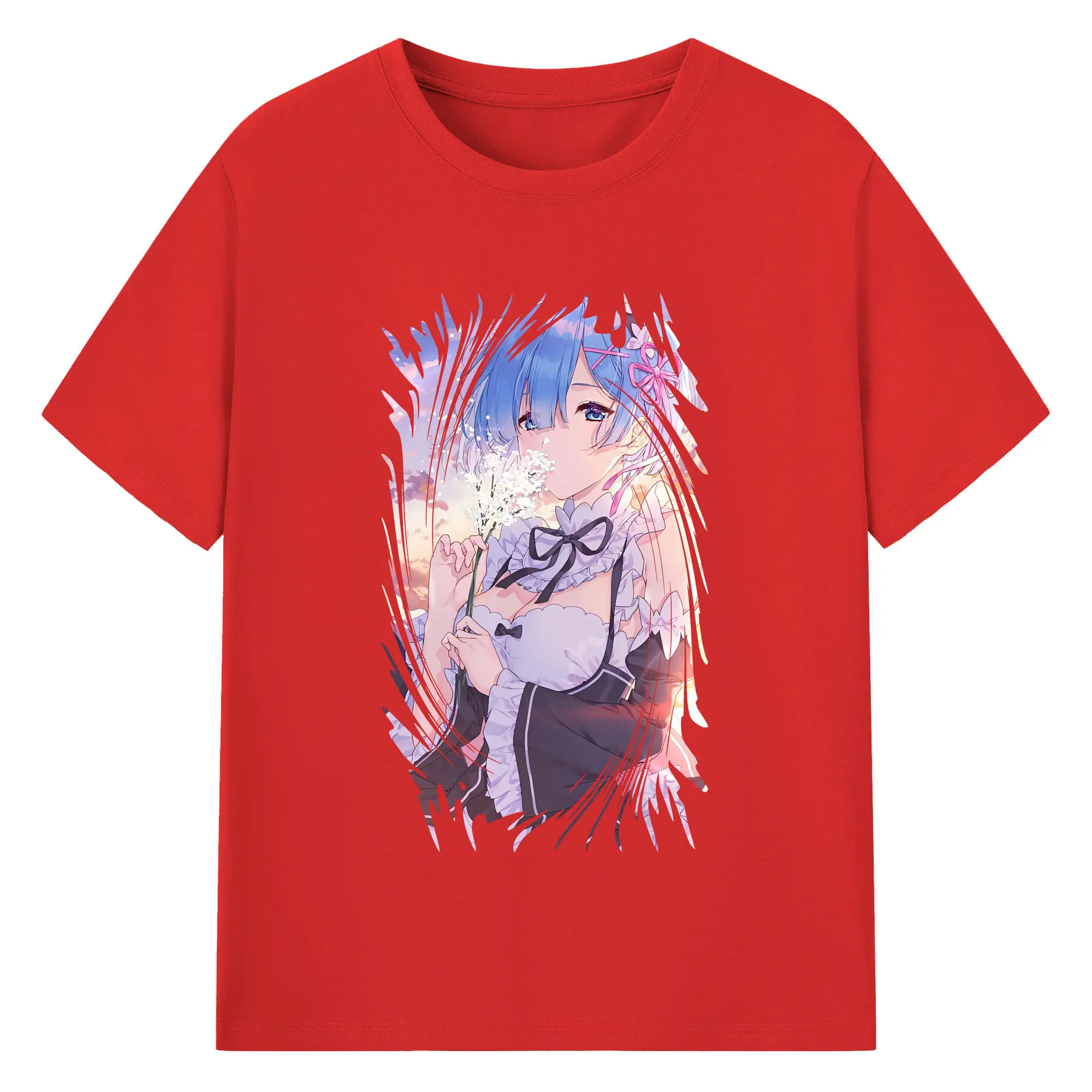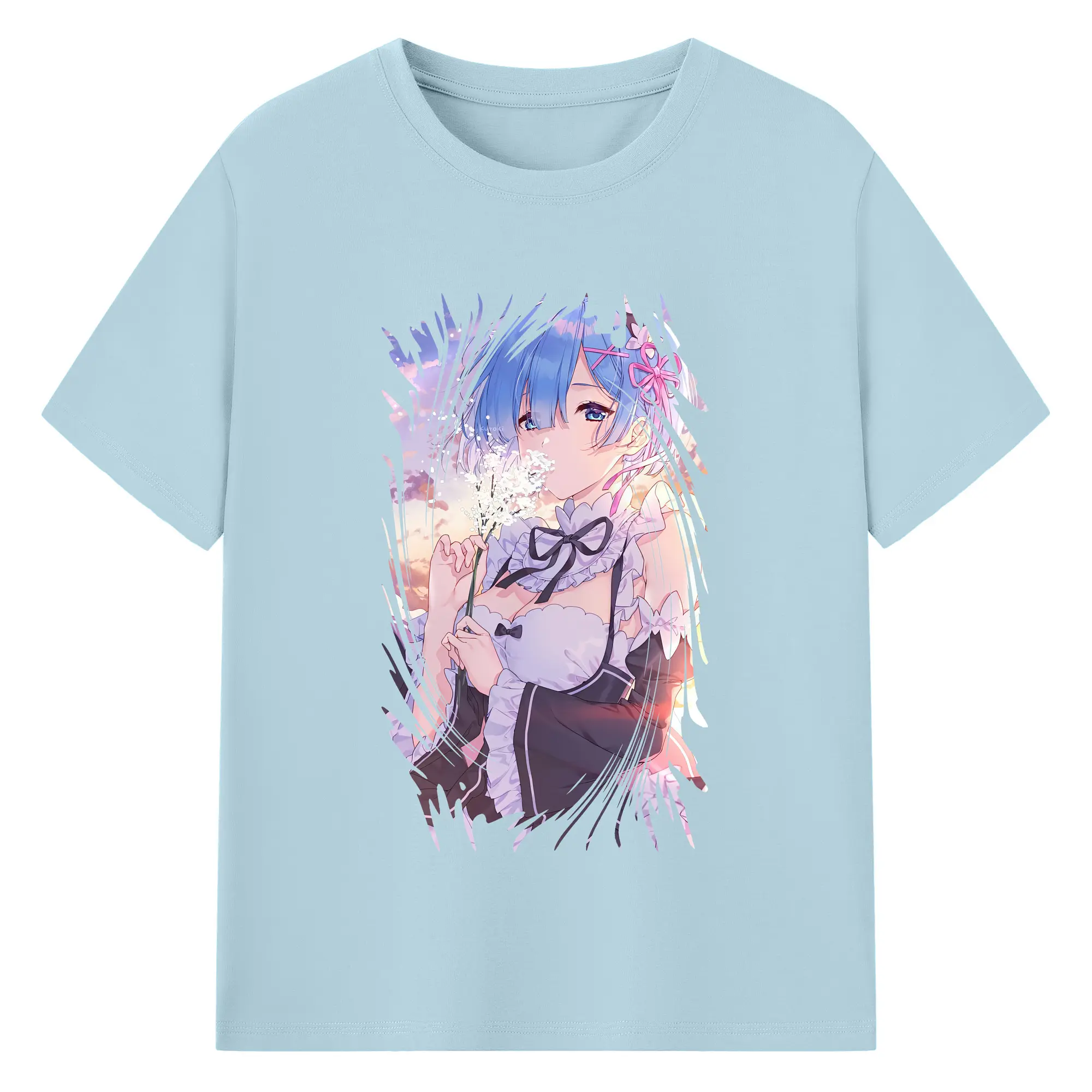 リゼロ グッズ レム - 綿100% 半袖Tシャツ ・ バックプリント ・ 快適 通気性 ・ 日常使い 散歩 スポーツ用