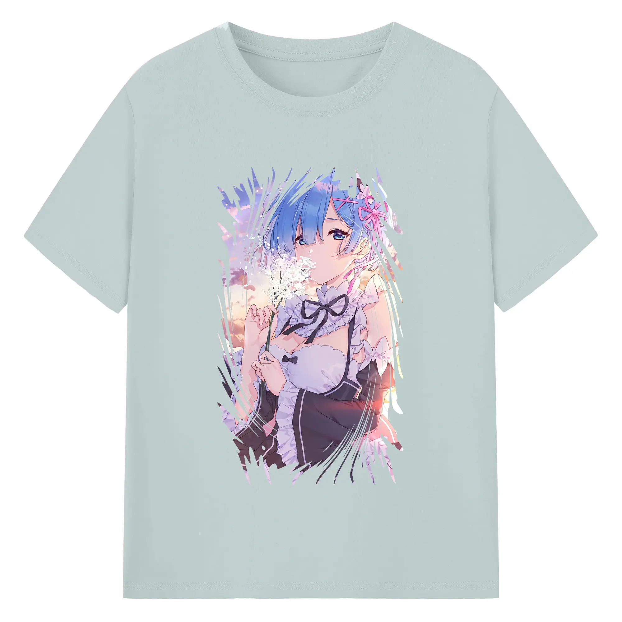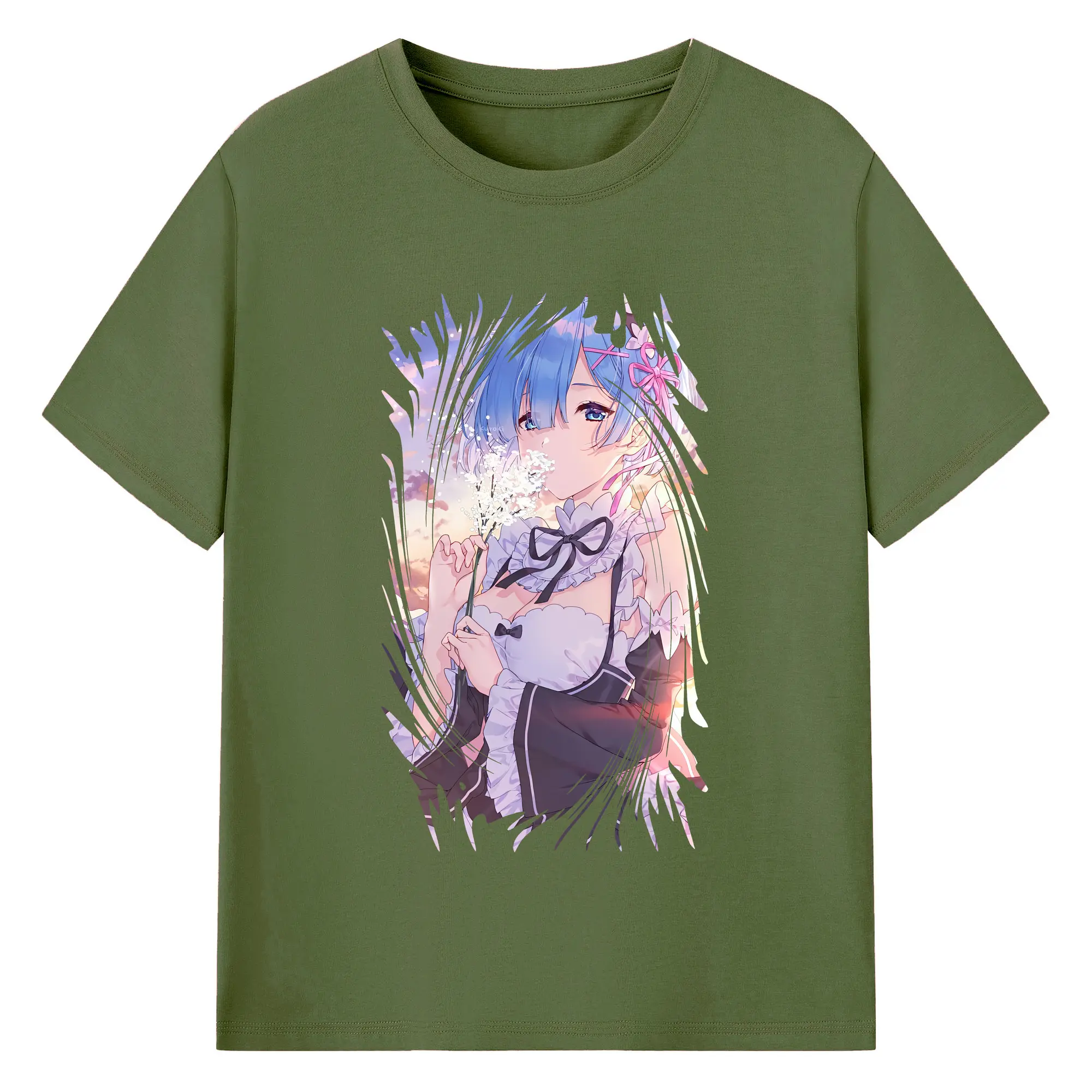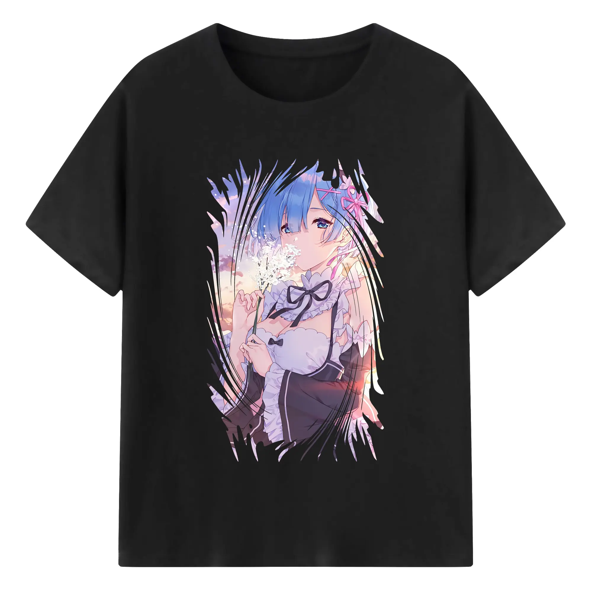 リゼロ グッズ レム - 綿100% 半袖Tシャツ ・ バックプリント ・ 快適 通気性 ・ 日常使い 散歩 スポーツ用