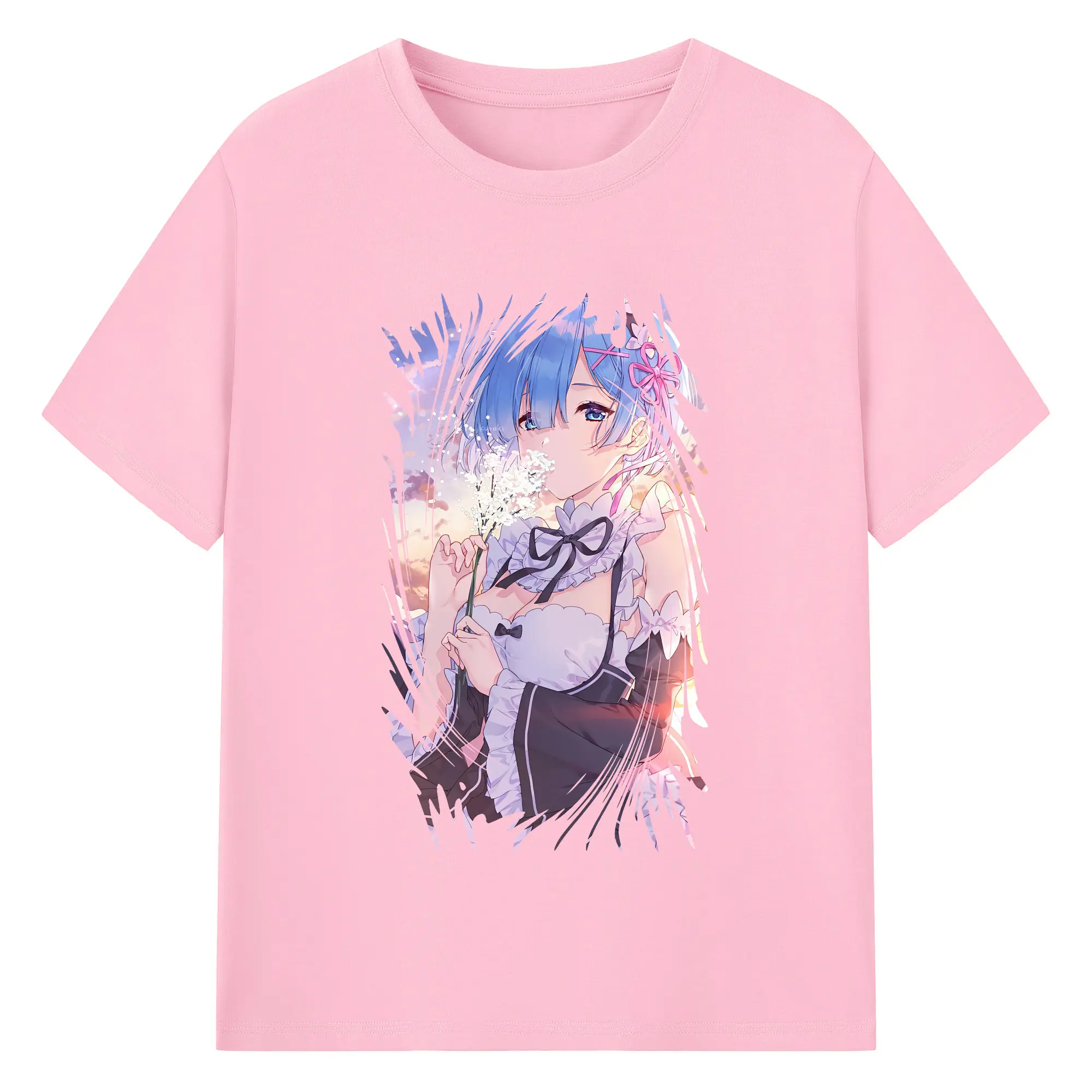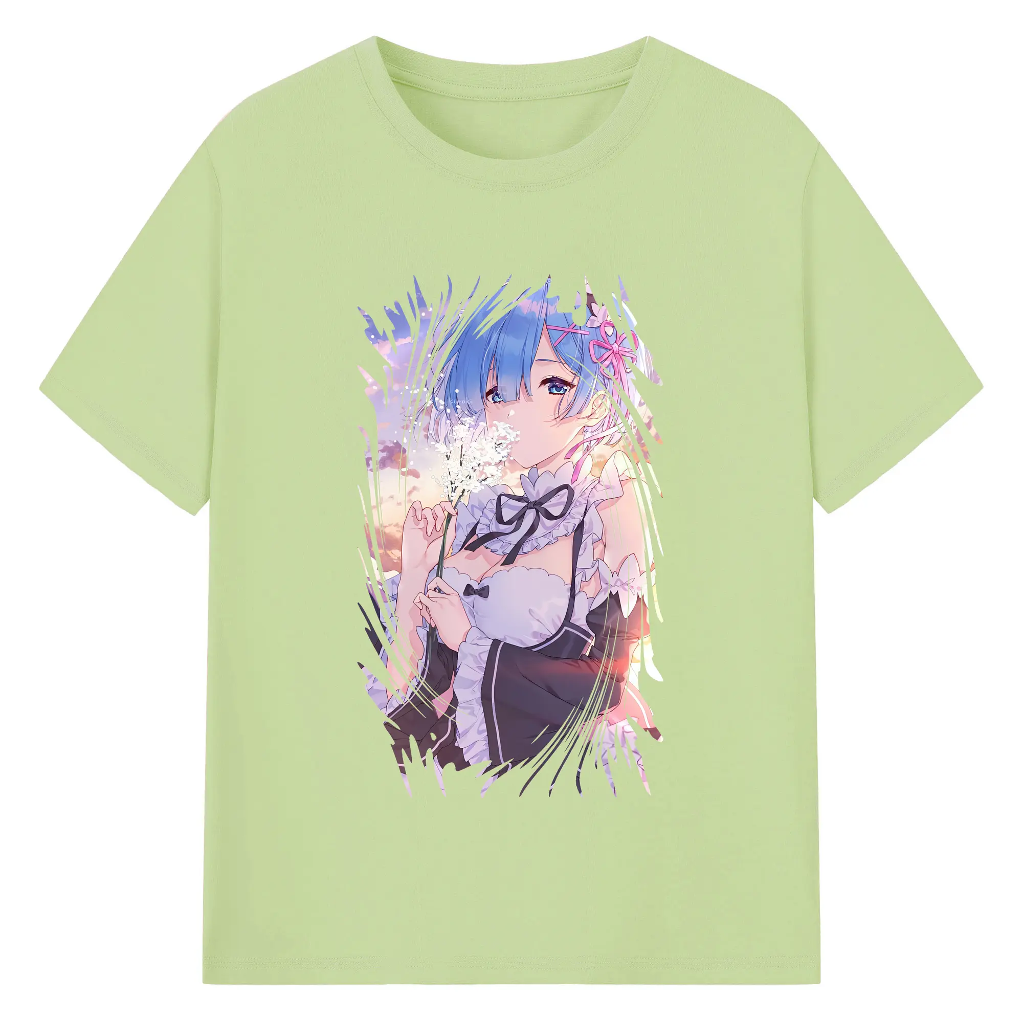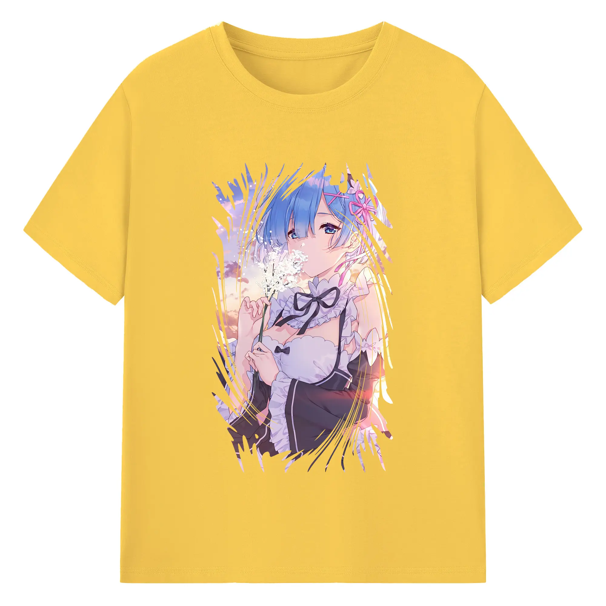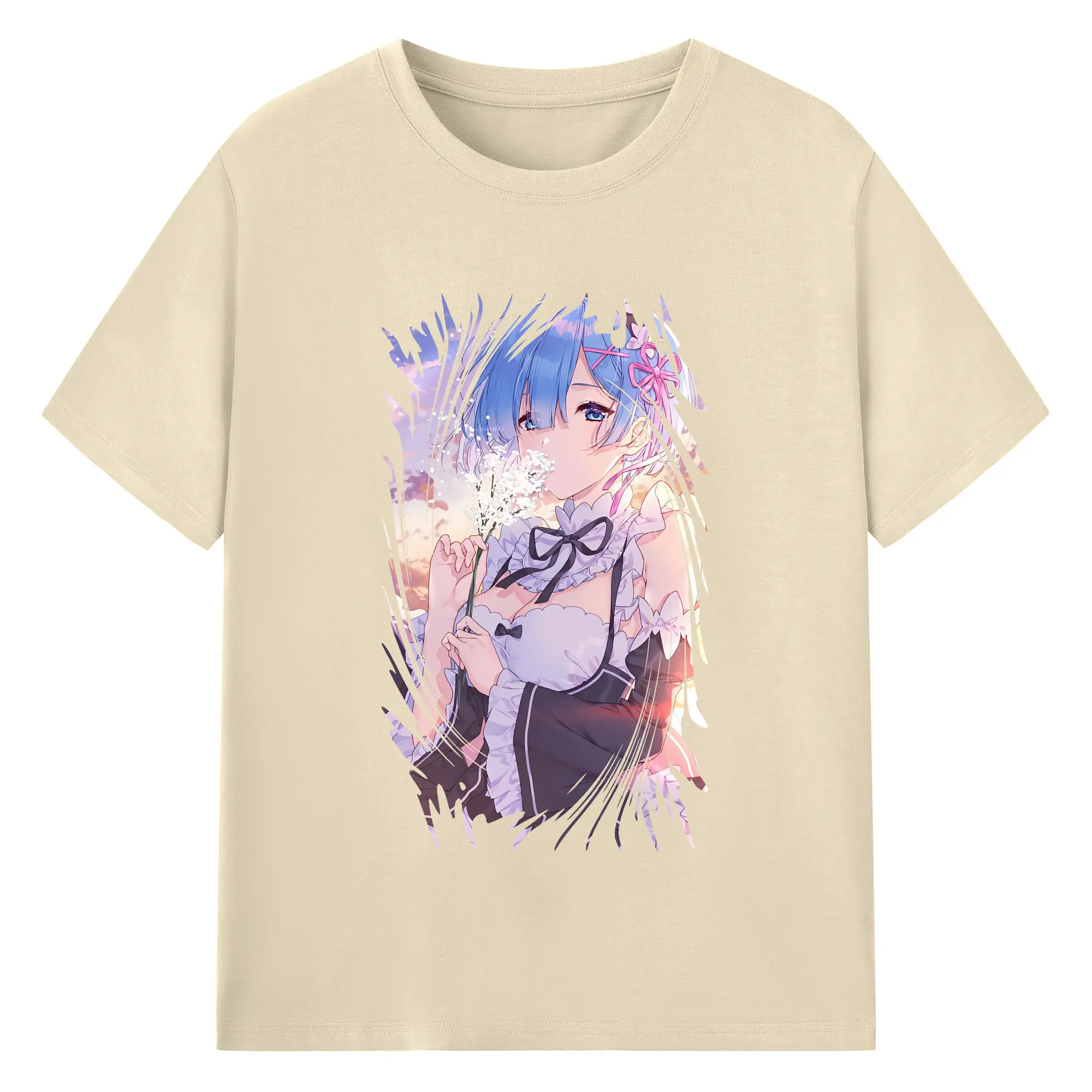リゼロ グッズ レム - 綿100% 半袖Tシャツ ・ バックプリント ・ 快適 通気性 ・ 日常使い 散歩 スポーツ用