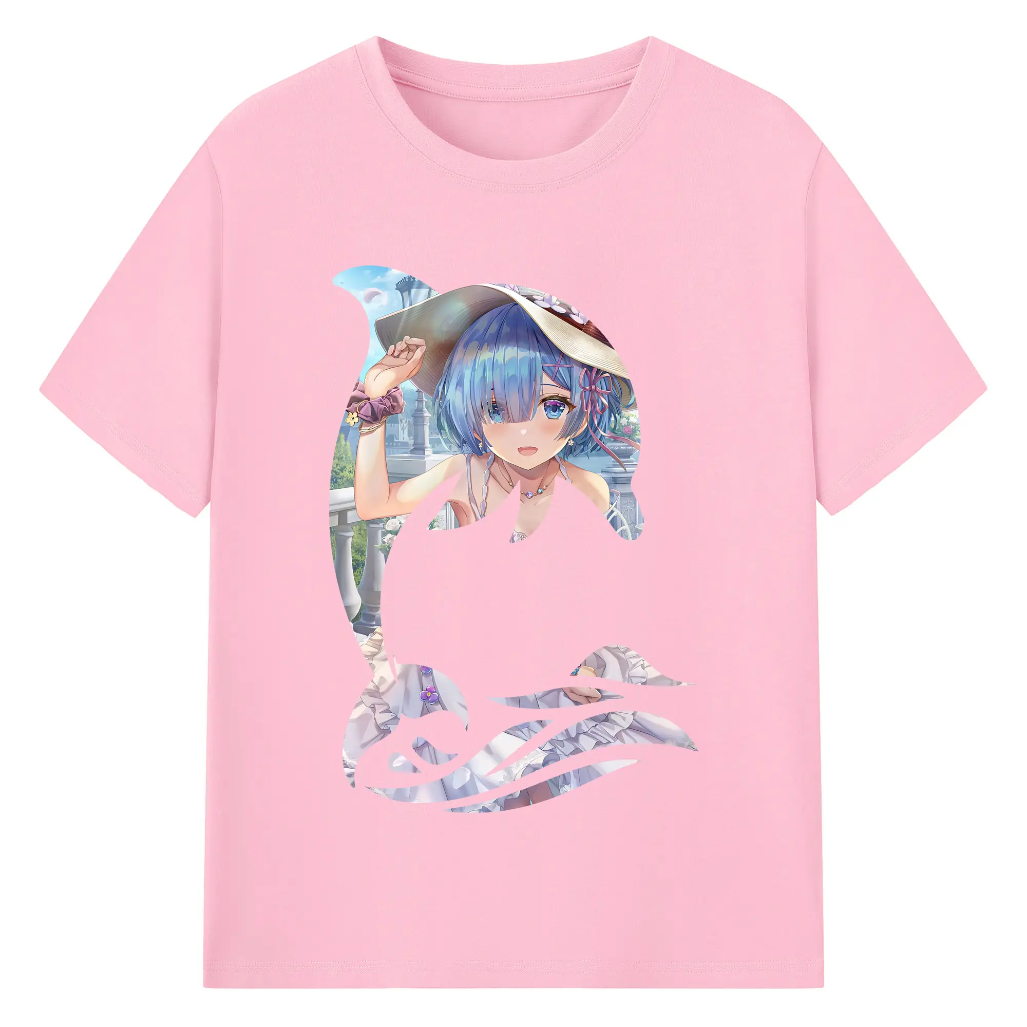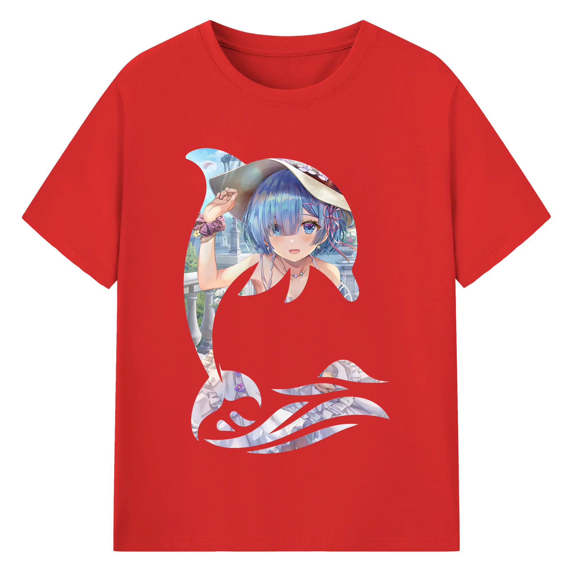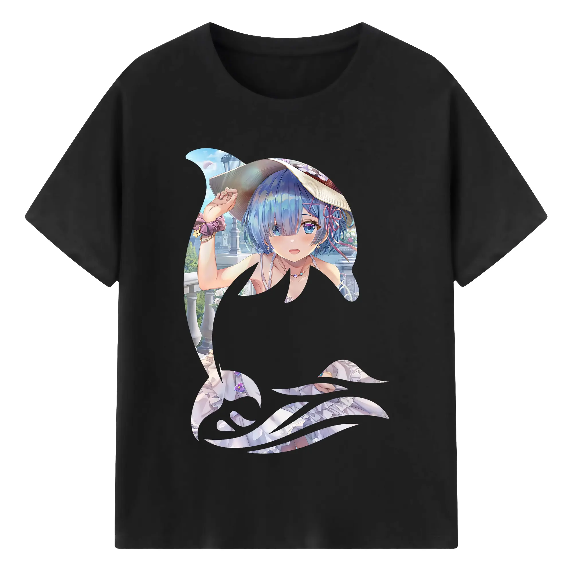 リゼロ グッズ レム - 綿100% 半袖Tシャツ ・ バックプリント ・ 快適 通気性 ・ 日常使い 散歩 スポーツ用