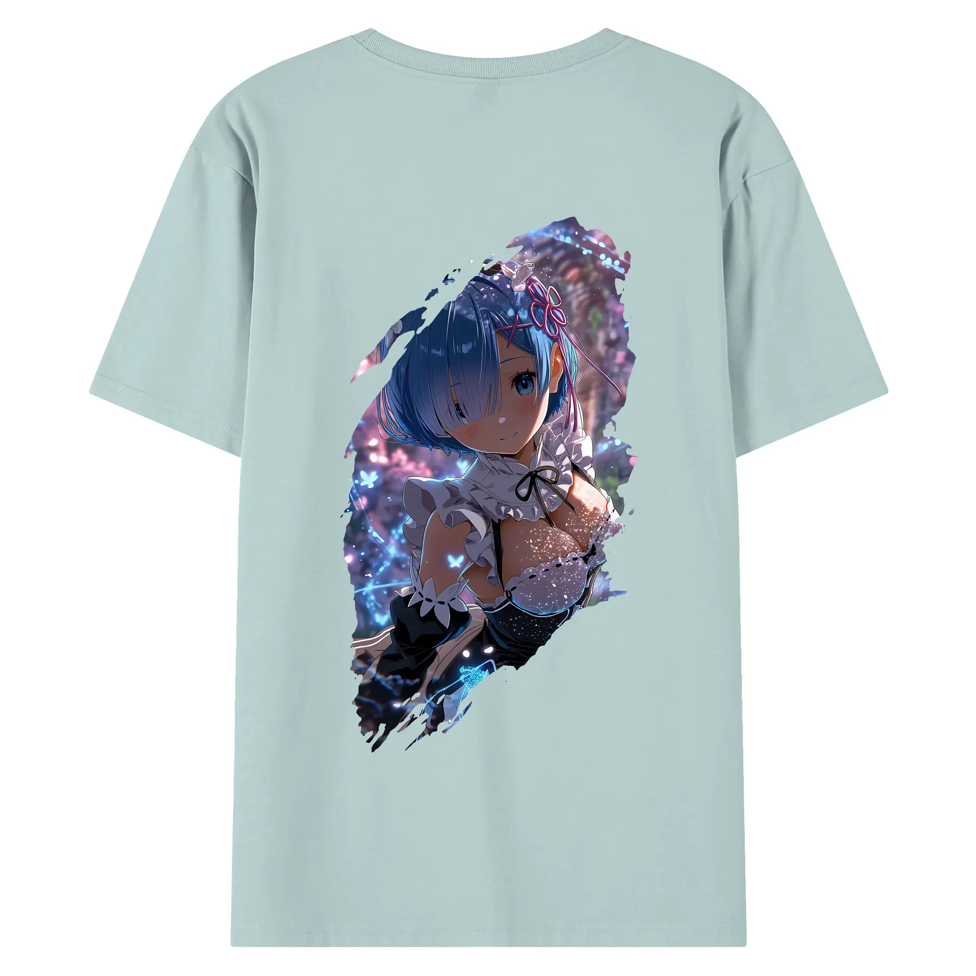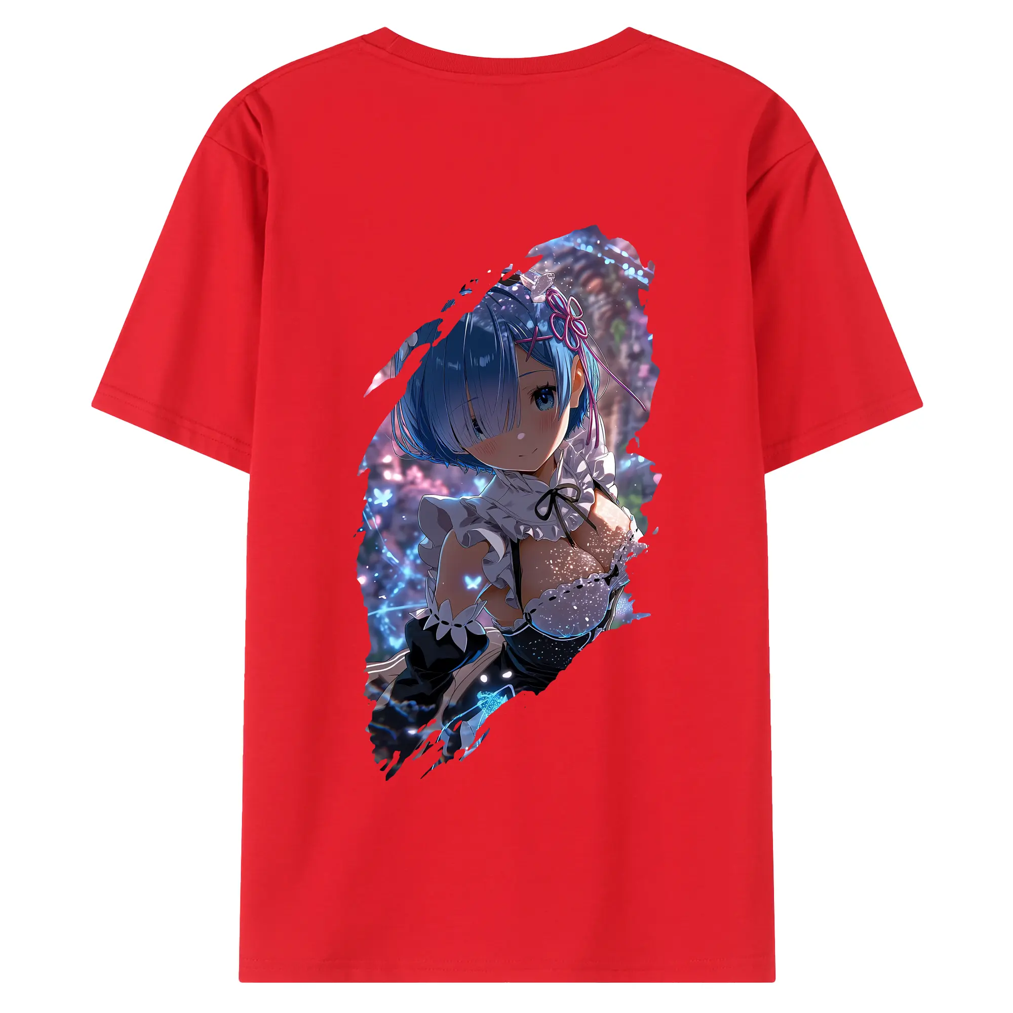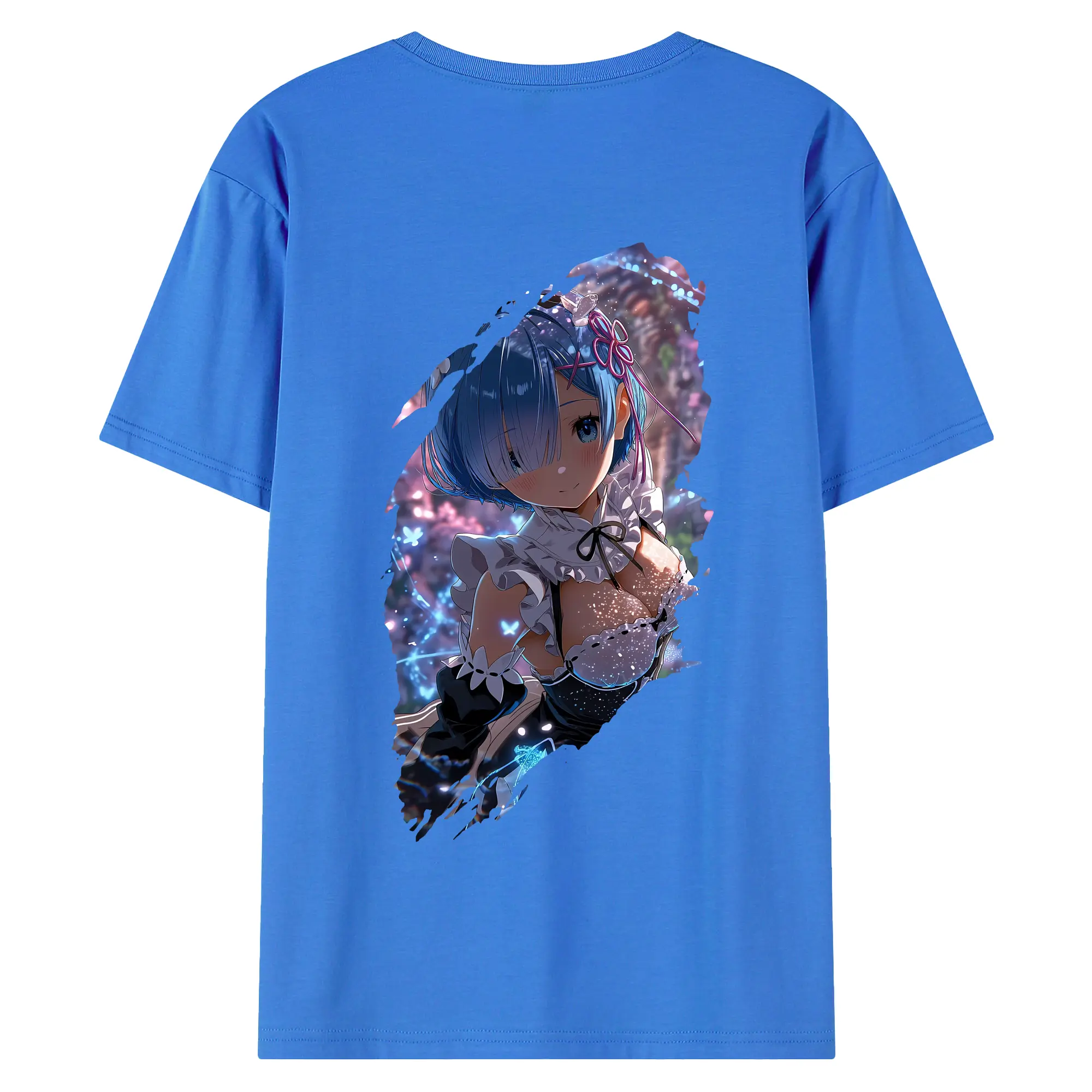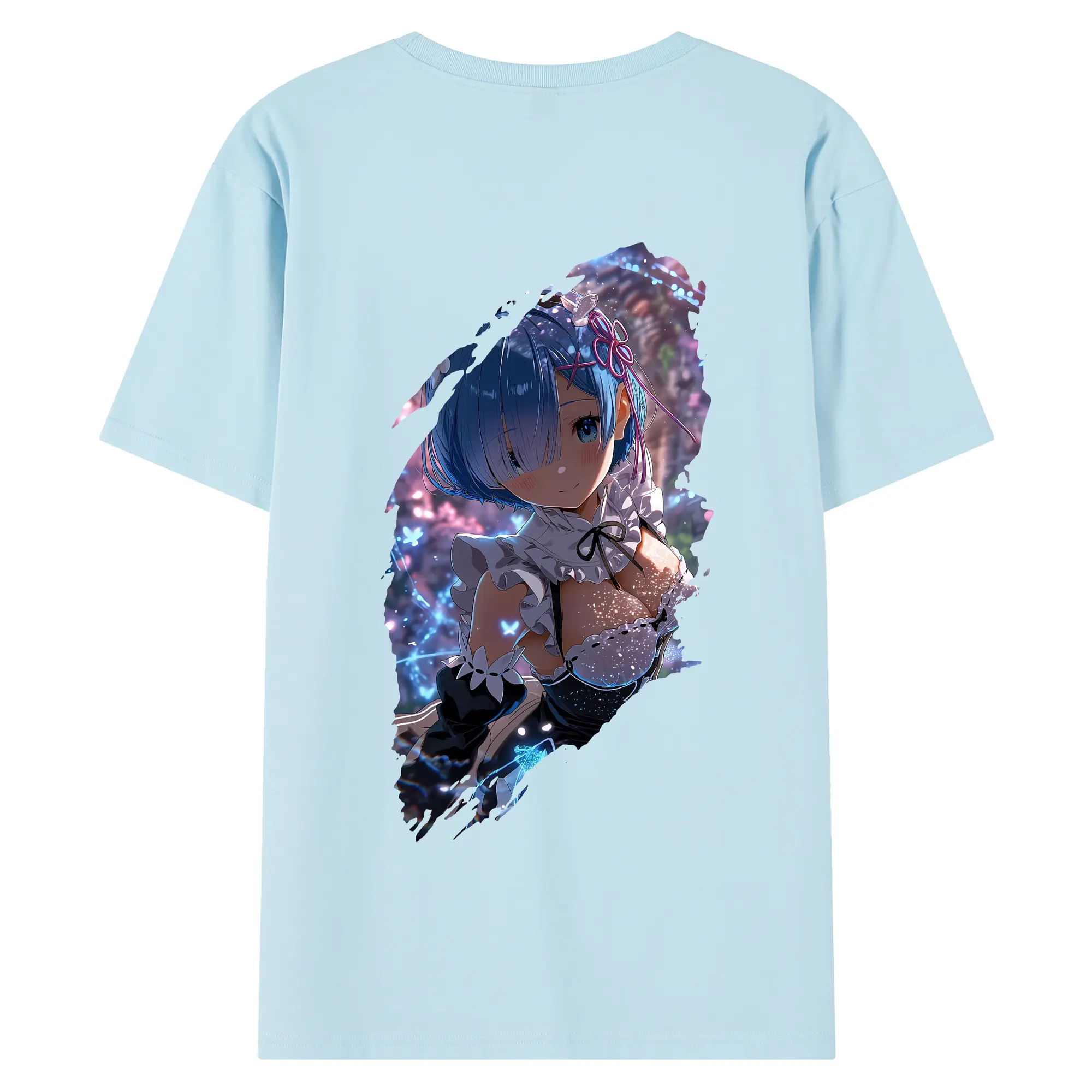 リゼロ グッズ レム - 綿100% 半袖Tシャツ ・ バックプリント ・ 快適 通気性 ・ 日常使い 散歩 スポーツ用