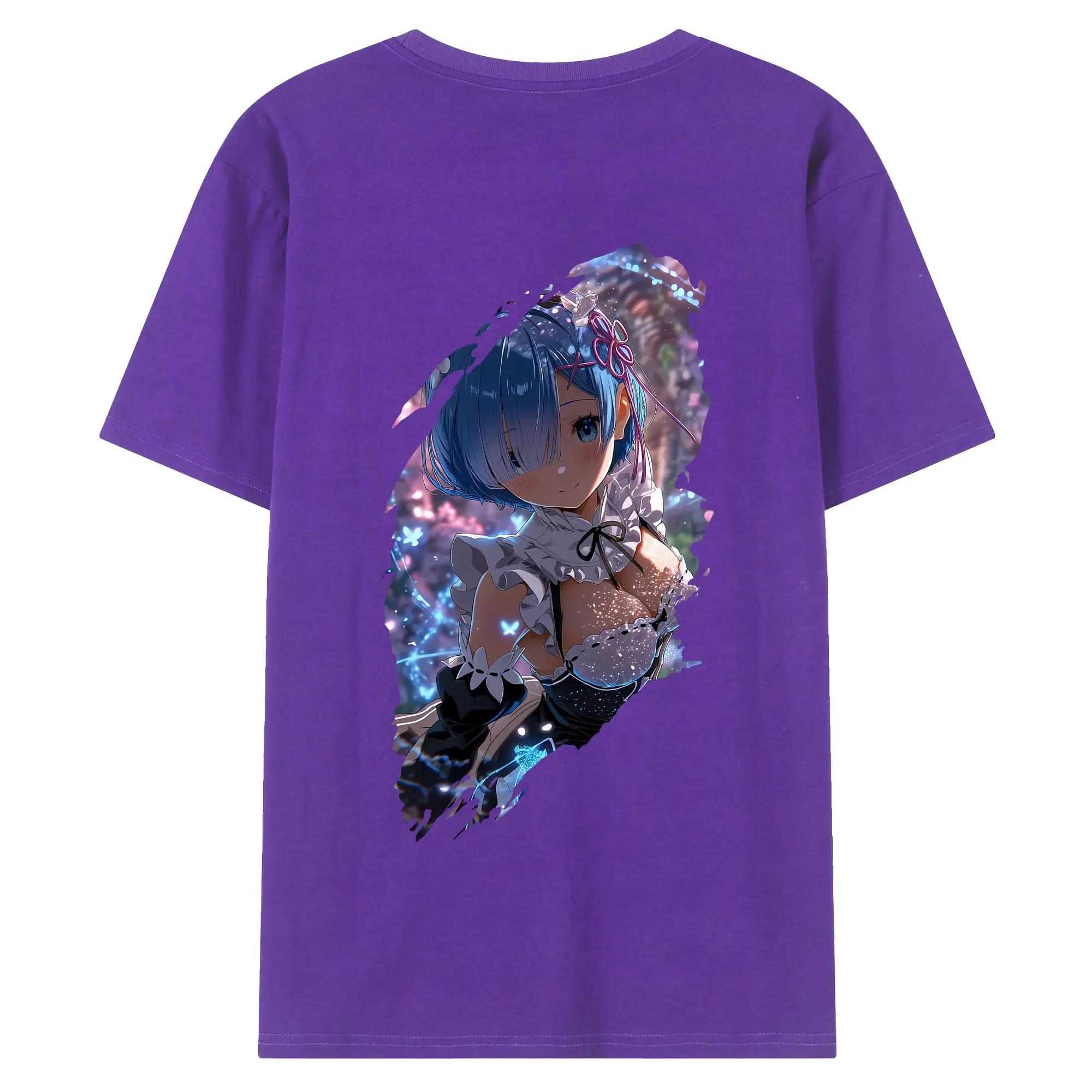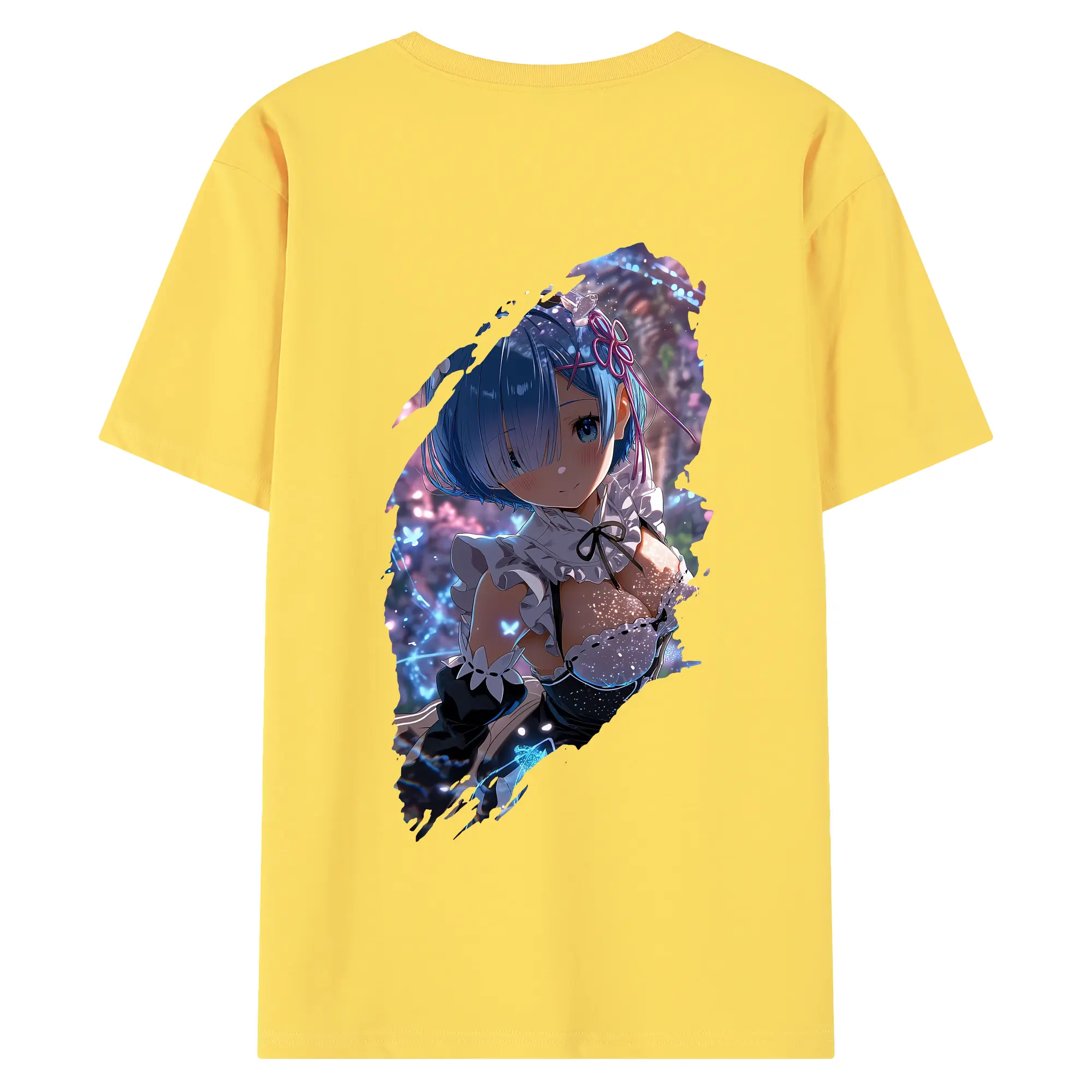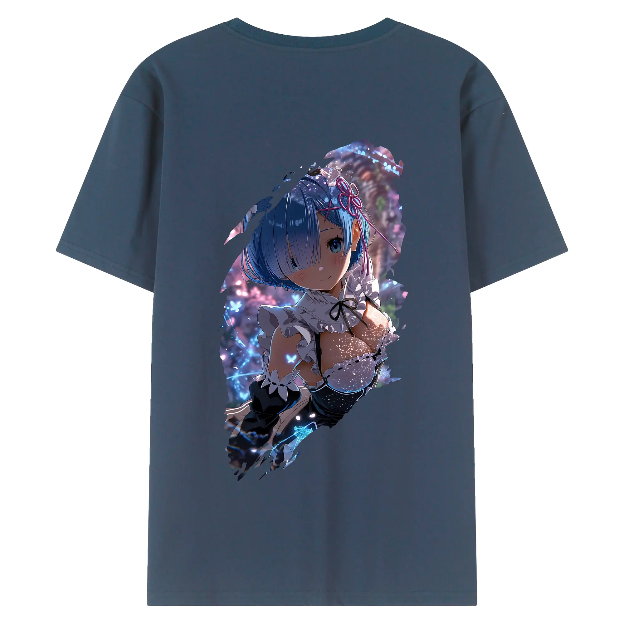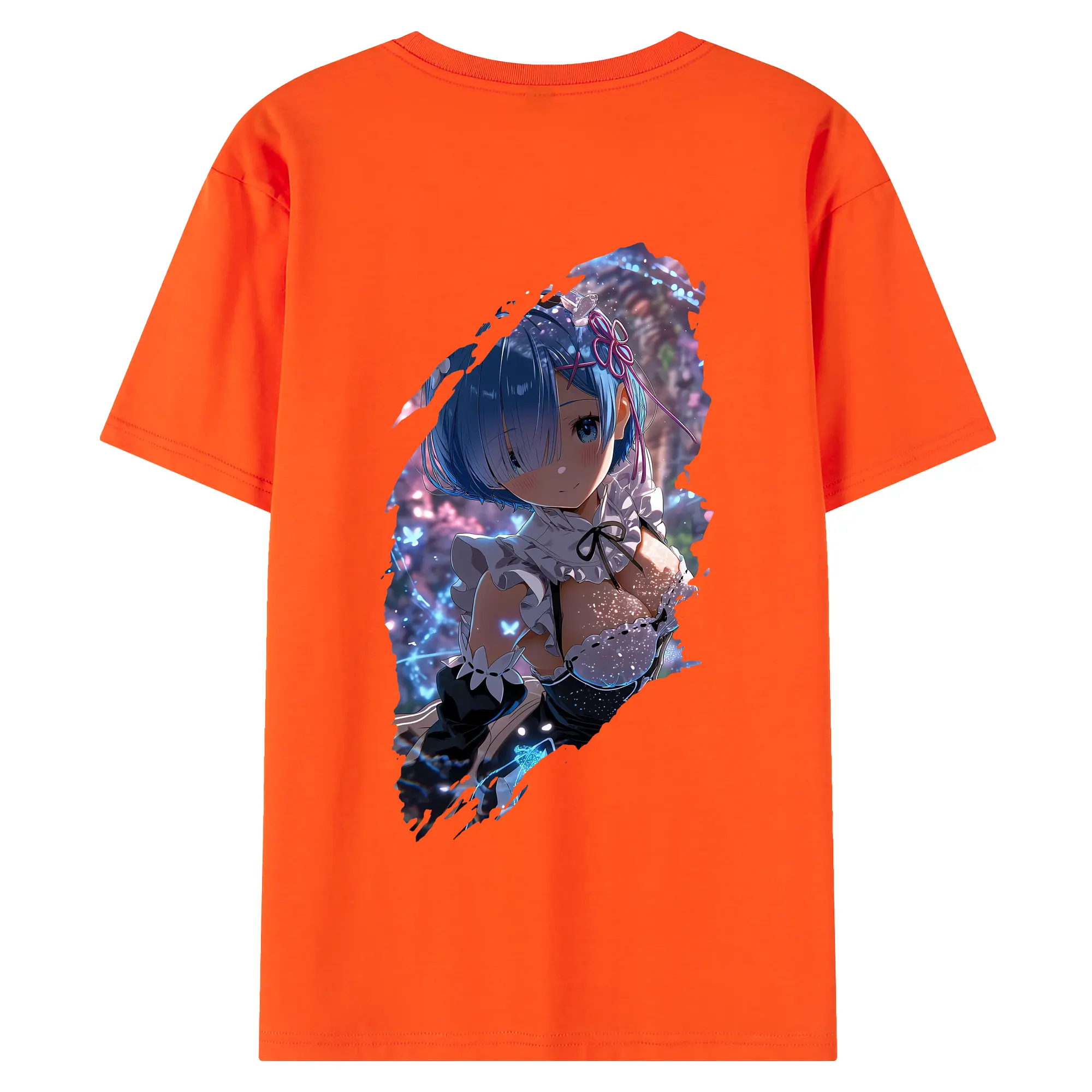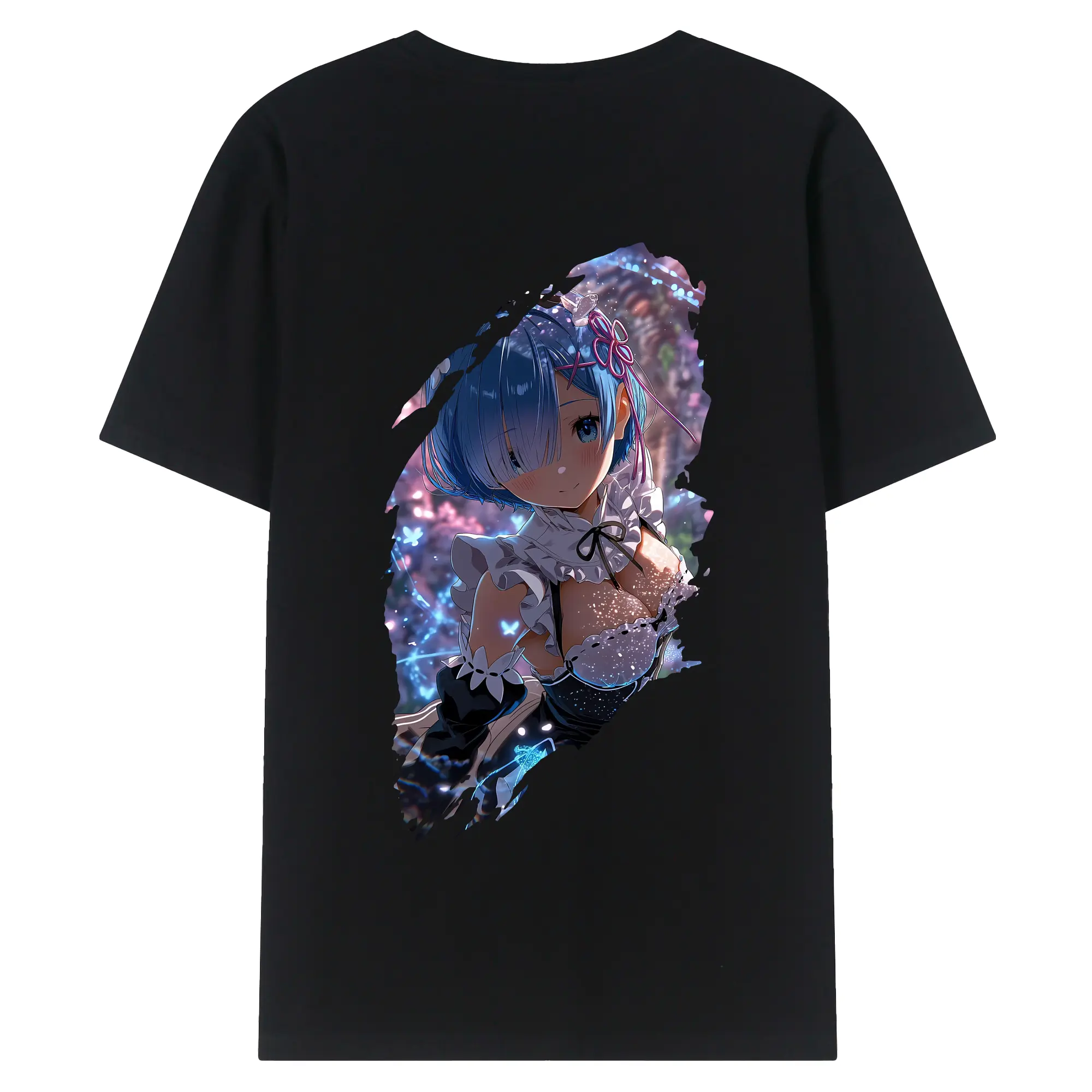 リゼロ グッズ レム - 綿100% 半袖Tシャツ ・ バックプリント ・ 快適 通気性 ・ 日常使い 散歩 スポーツ用