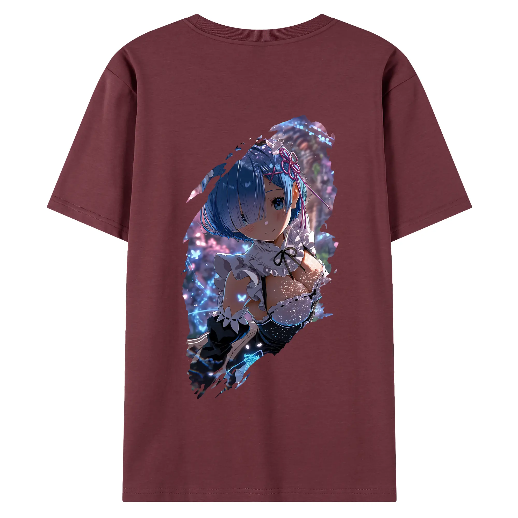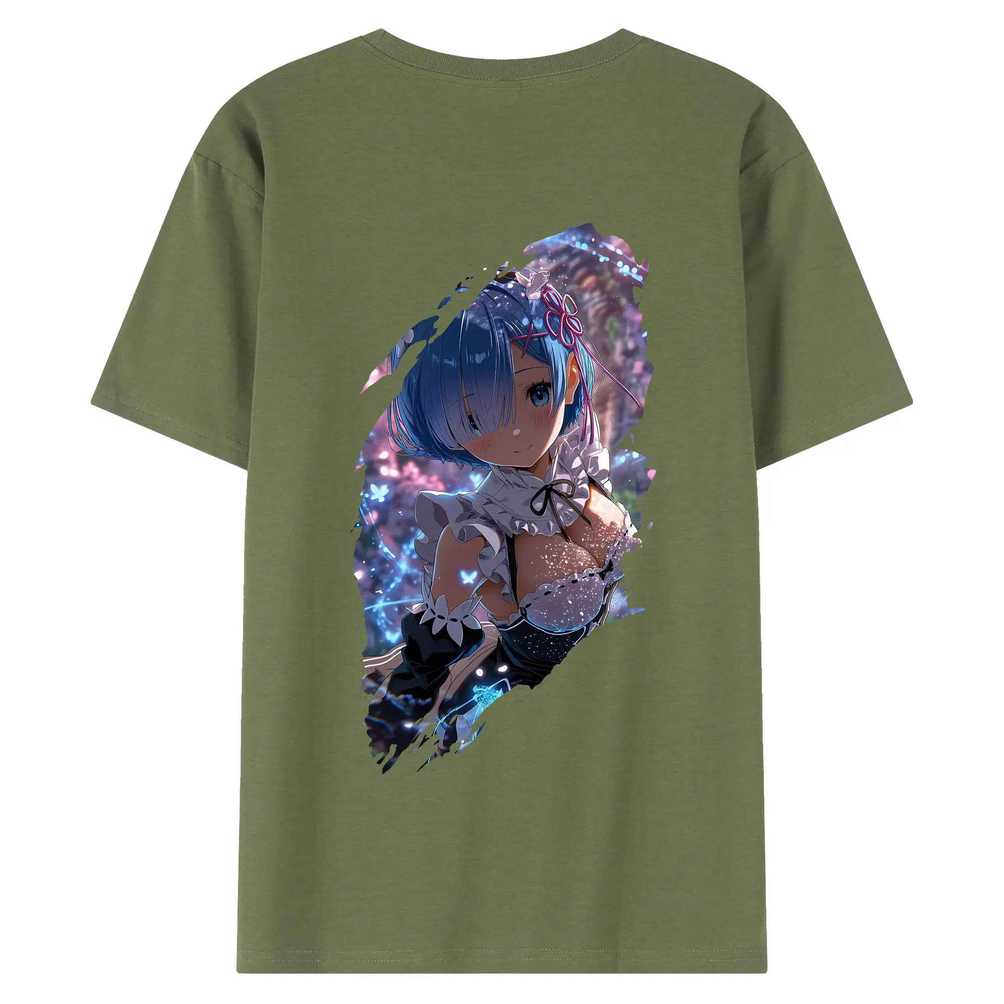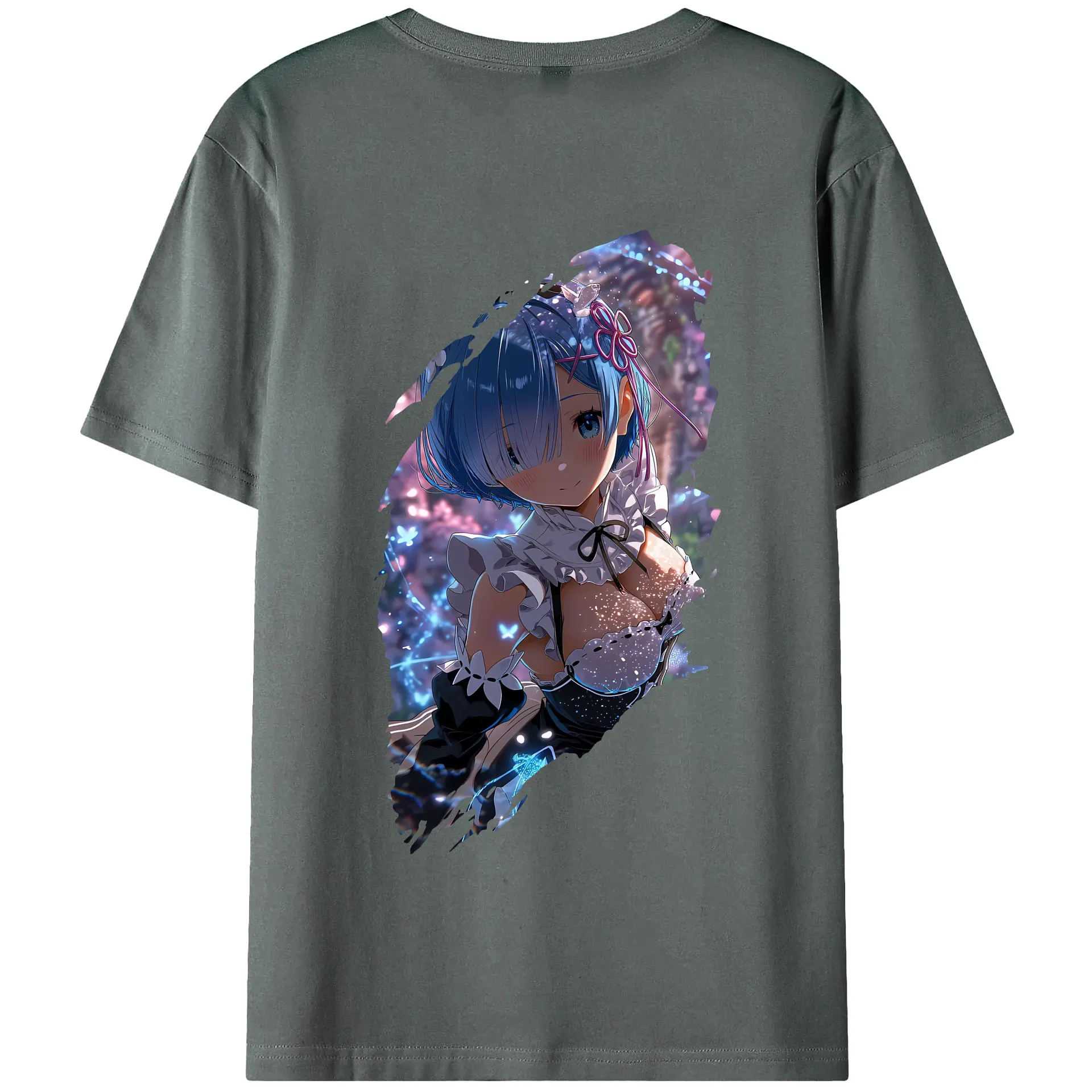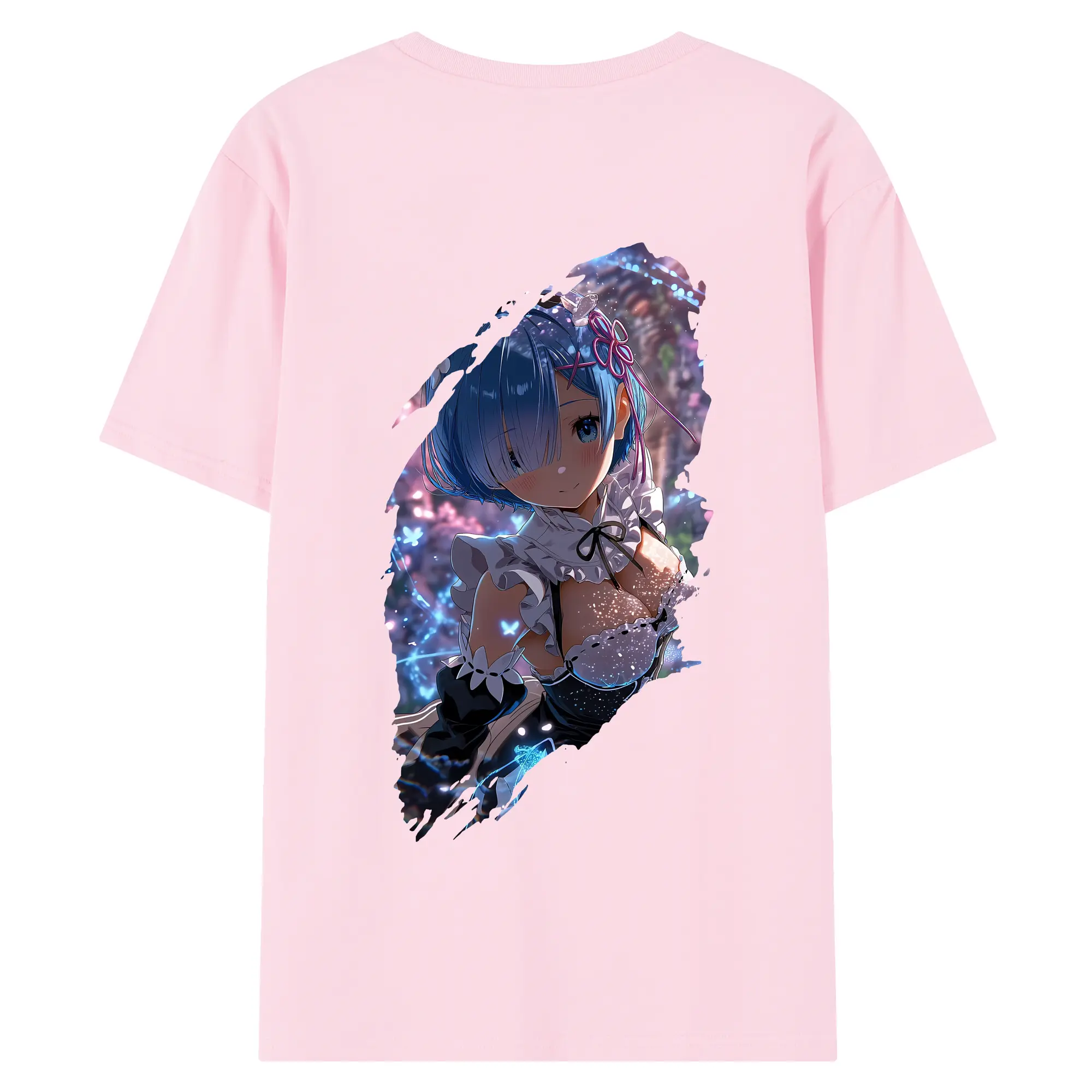 リゼロ グッズ レム - 綿100% 半袖Tシャツ ・ バックプリント ・ 快適 通気性 ・ 日常使い 散歩 スポーツ用