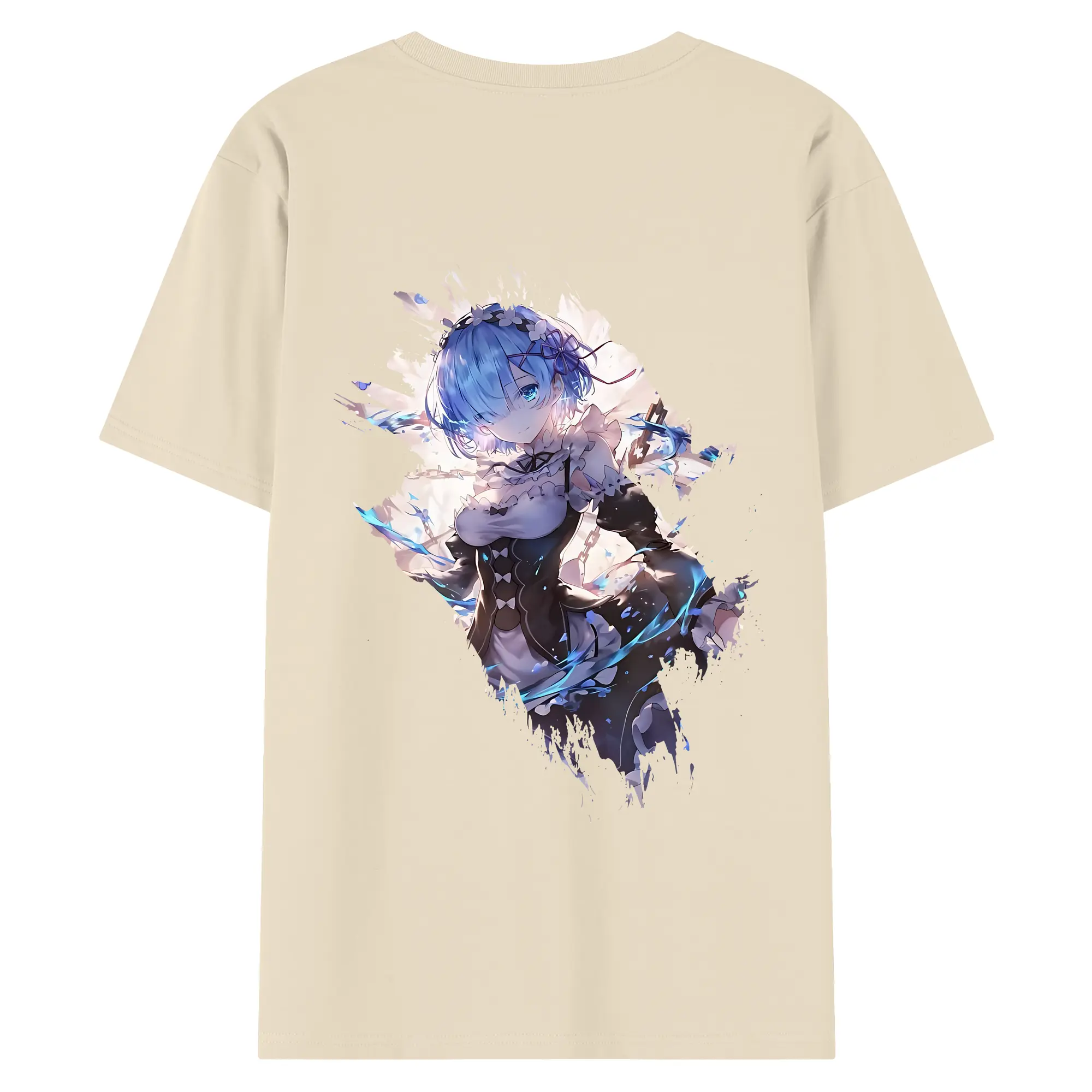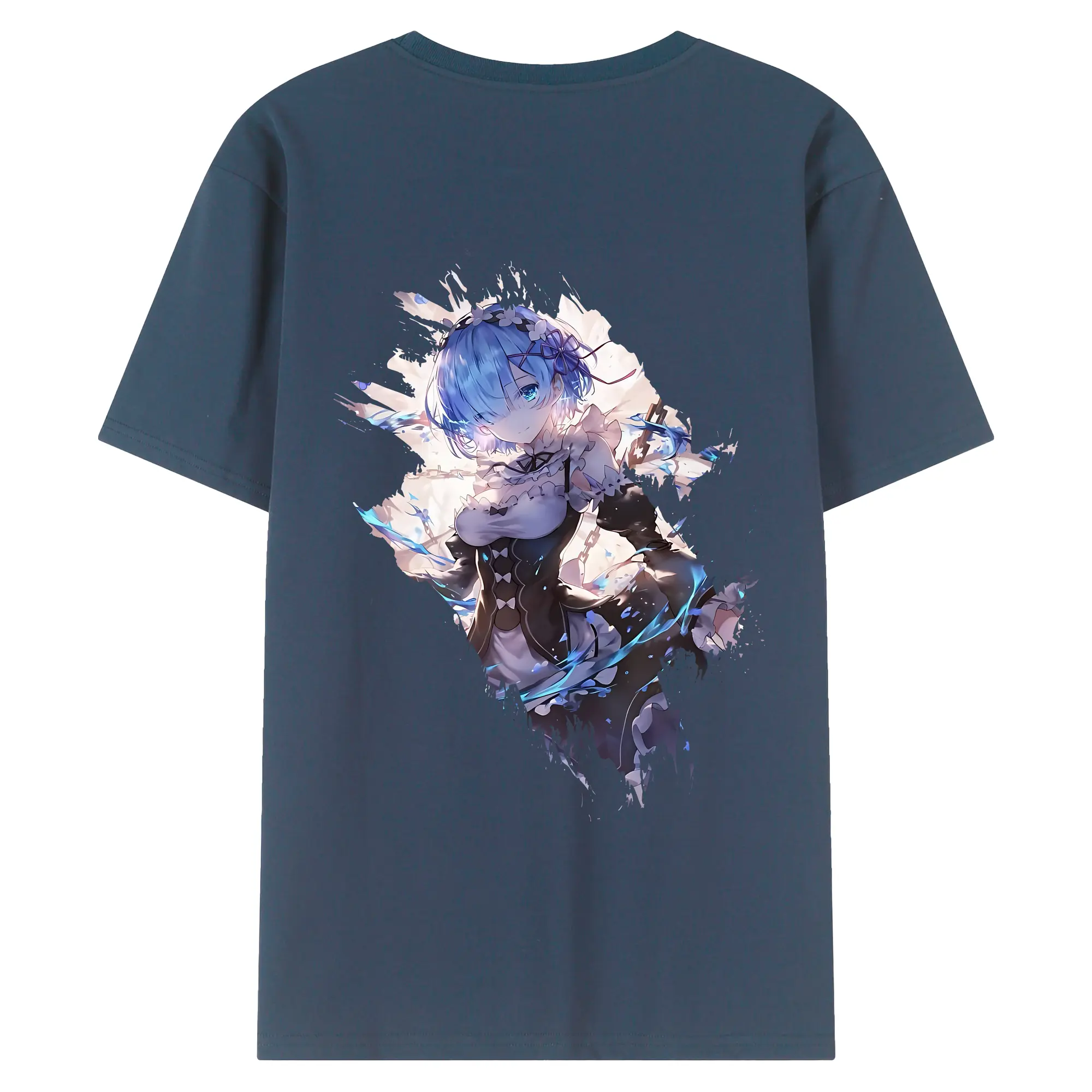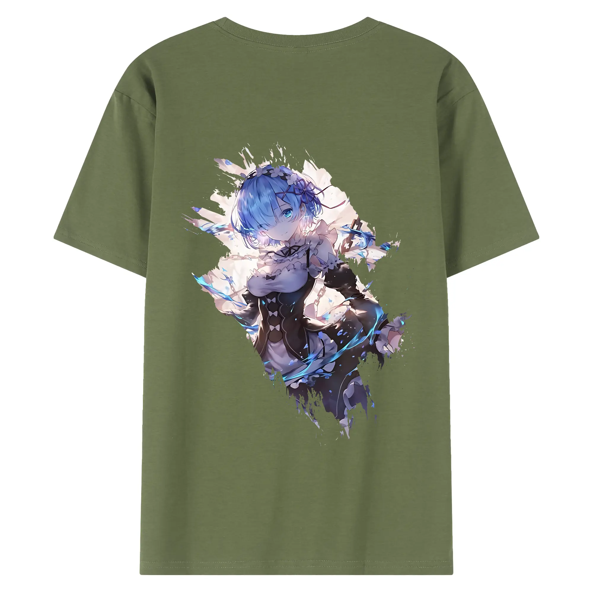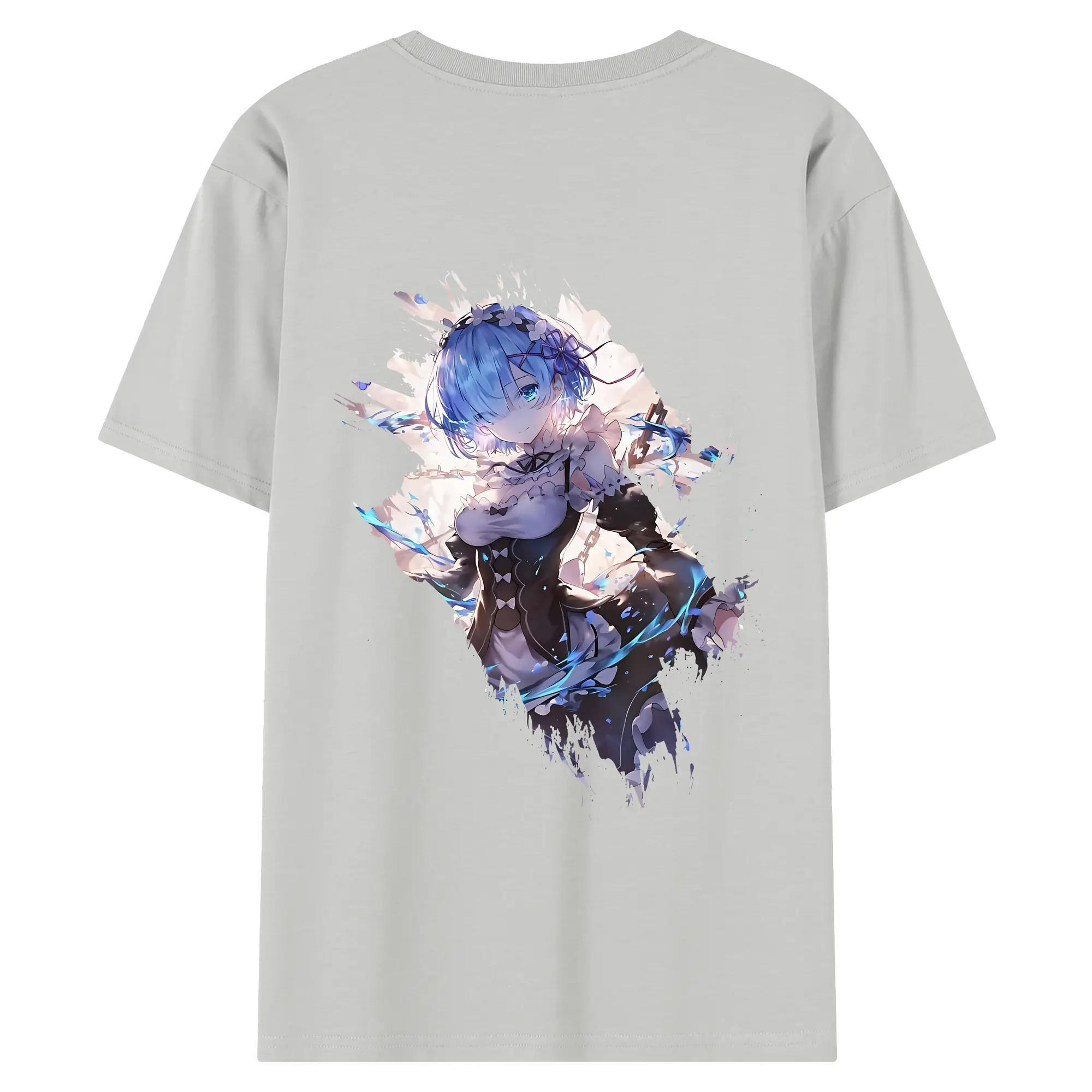 リゼロ グッズ レム - 綿100% ヴィンテージ風 半袖Tシャツ ・ 背面プリント ・ 柔らか肌触り ・ 通気性 快適 ・ スポーツ カジュアル 外出用