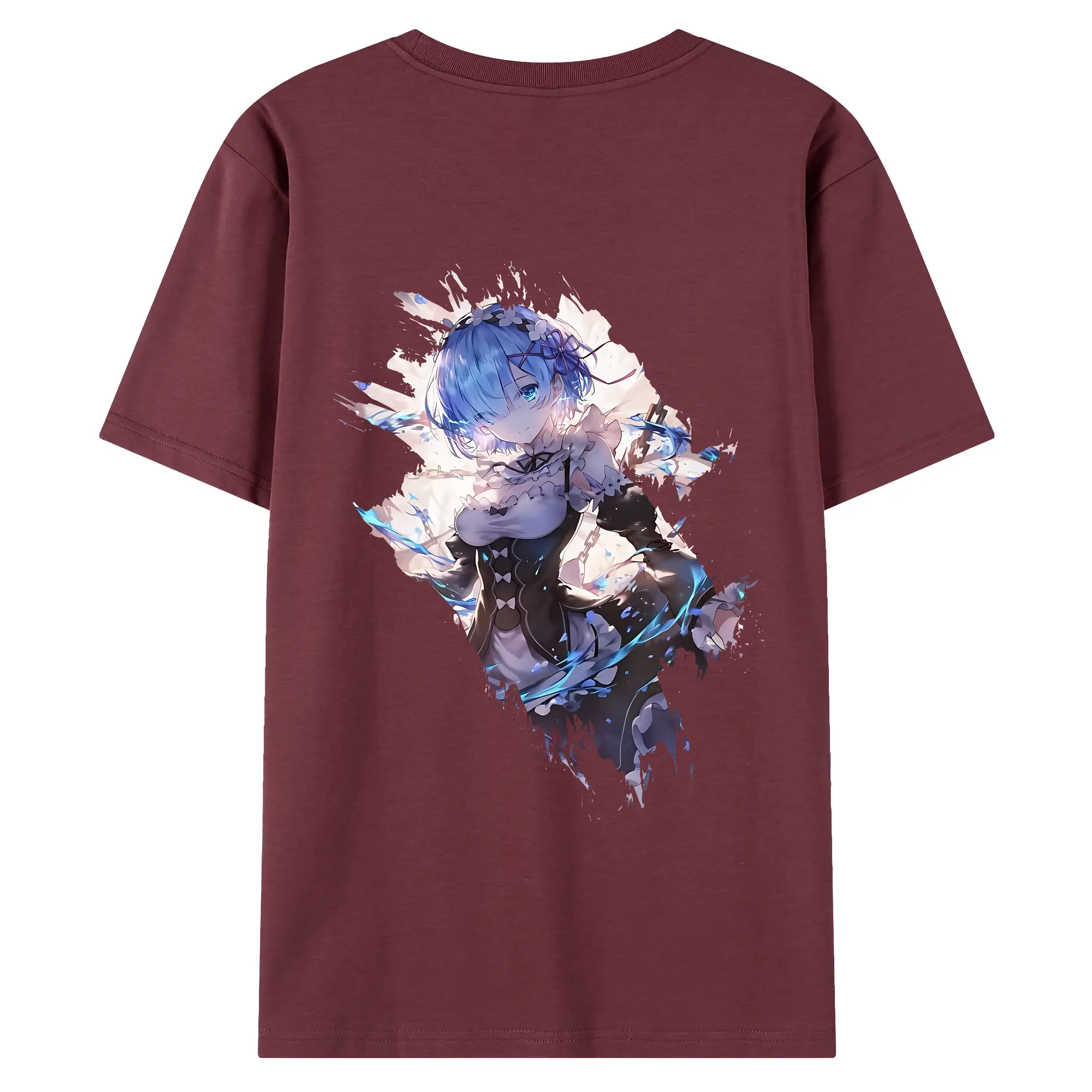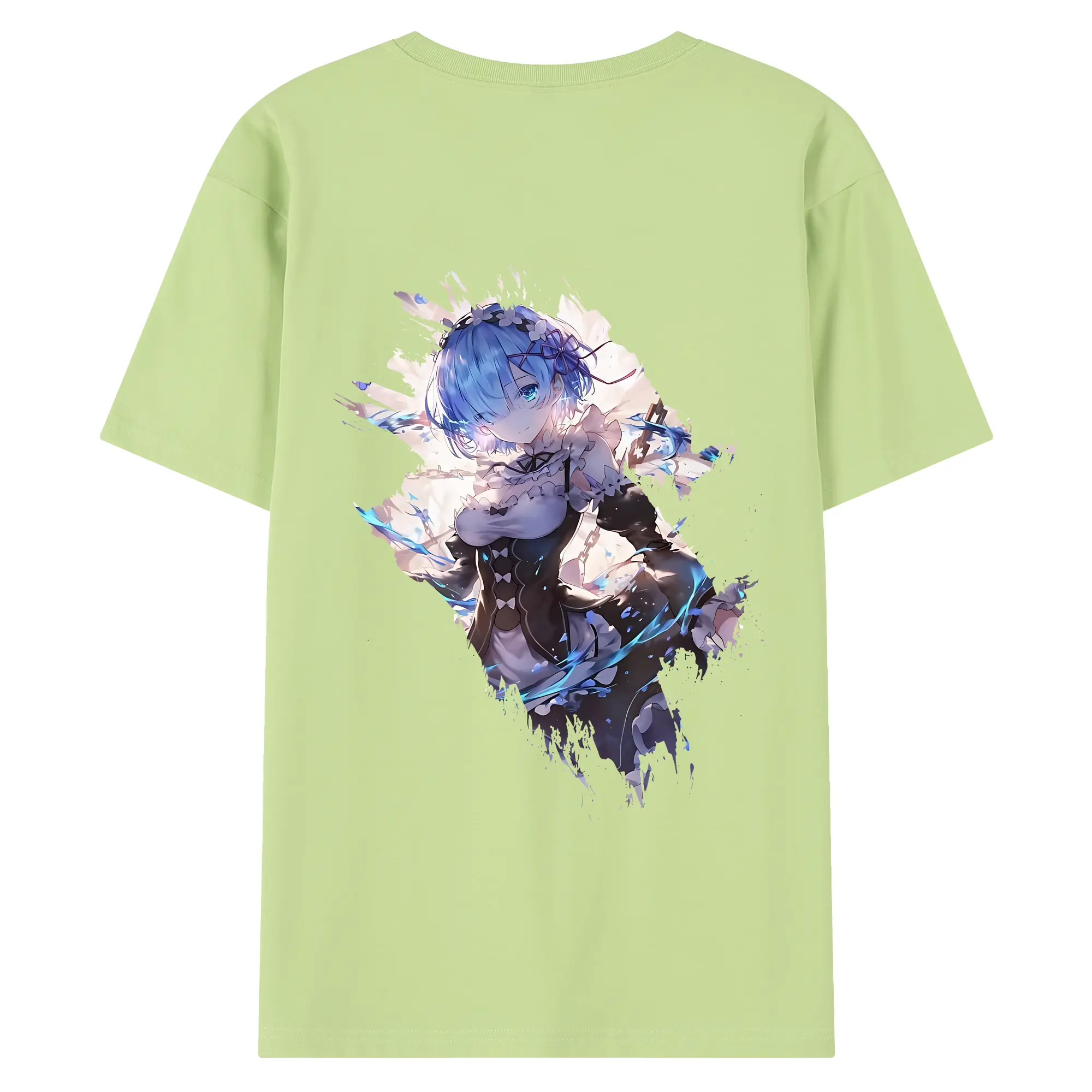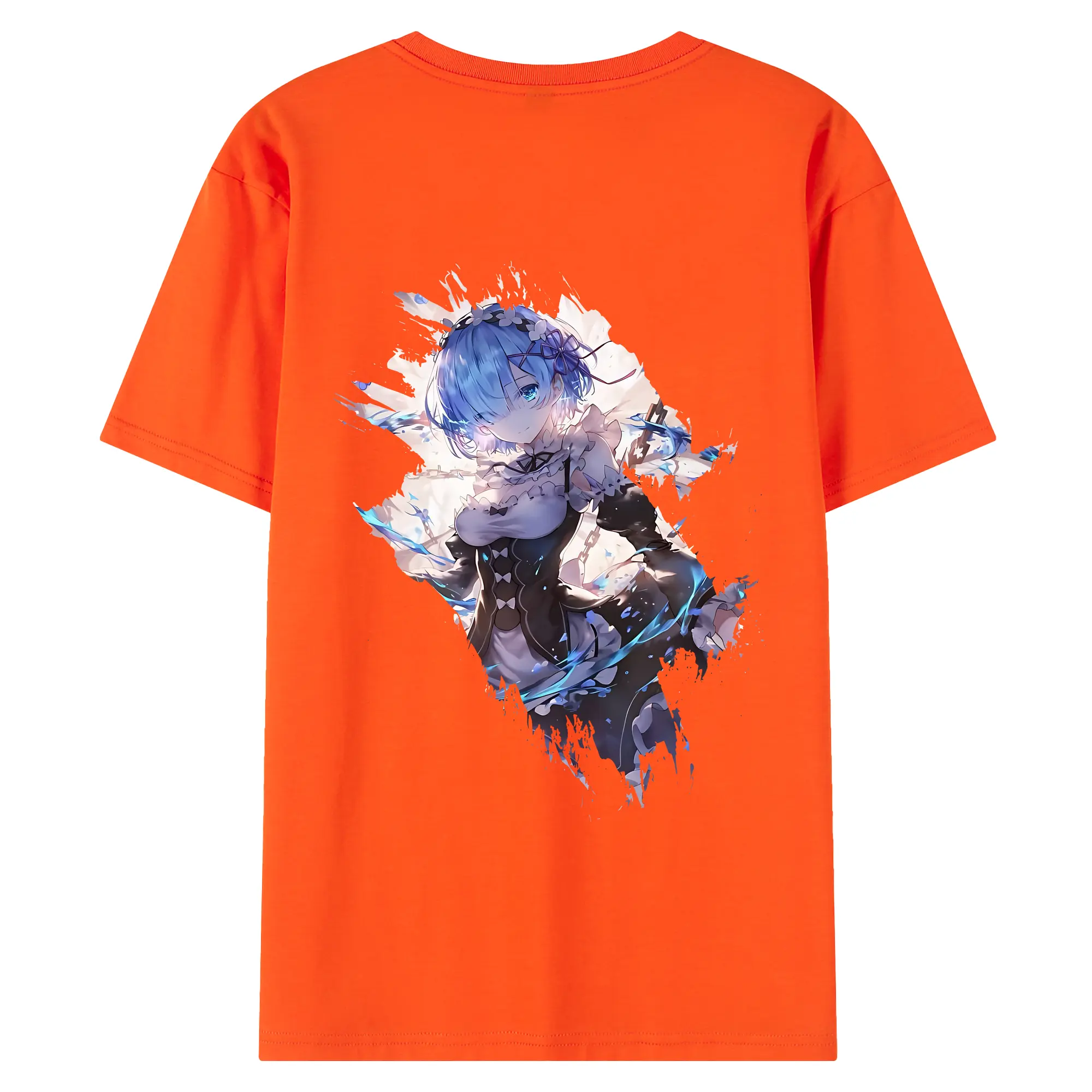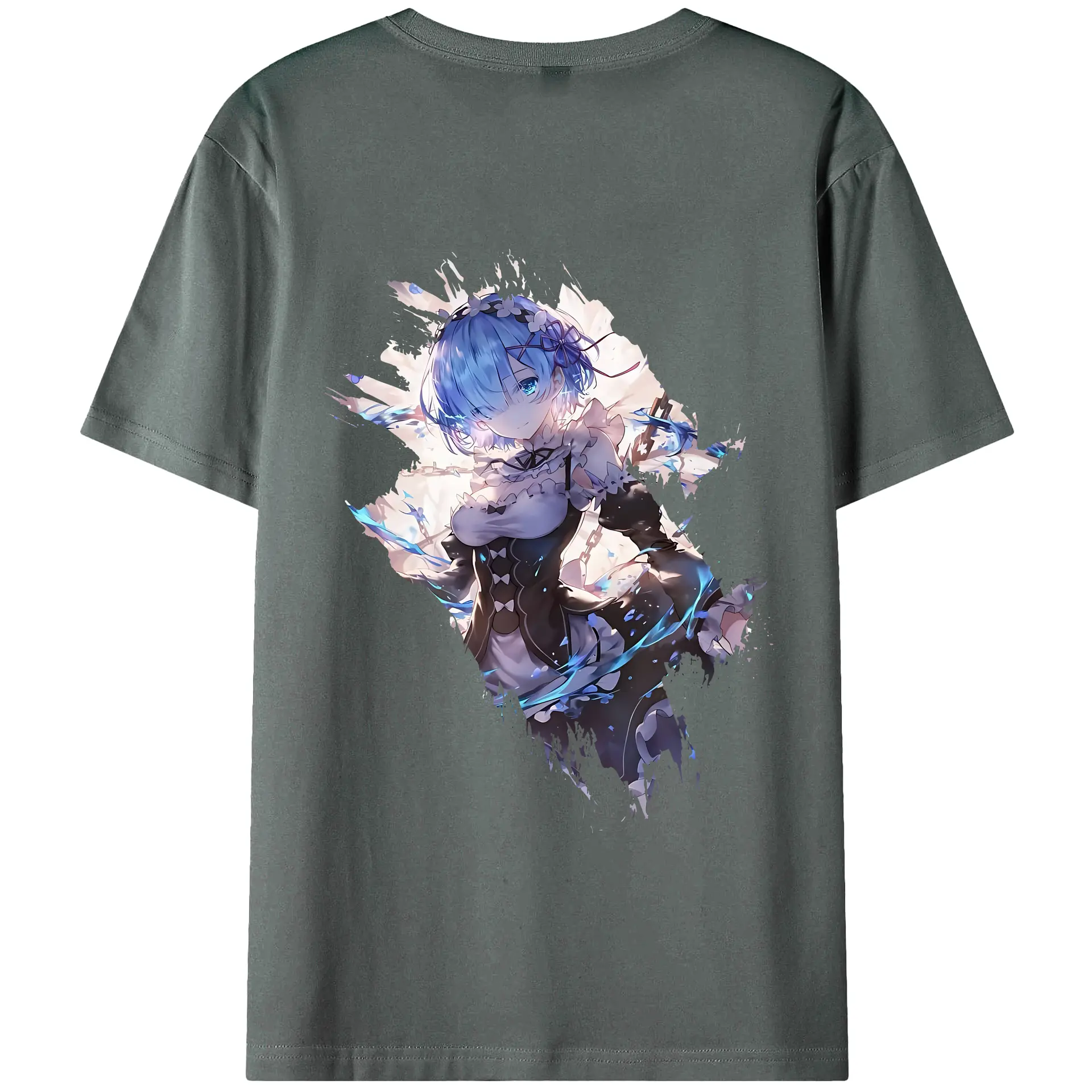 リゼロ グッズ レム - 綿100% ヴィンテージ風 半袖Tシャツ ・ 背面プリント ・ 柔らか肌触り ・ 通気性 快適 ・ スポーツ カジュアル 外出用