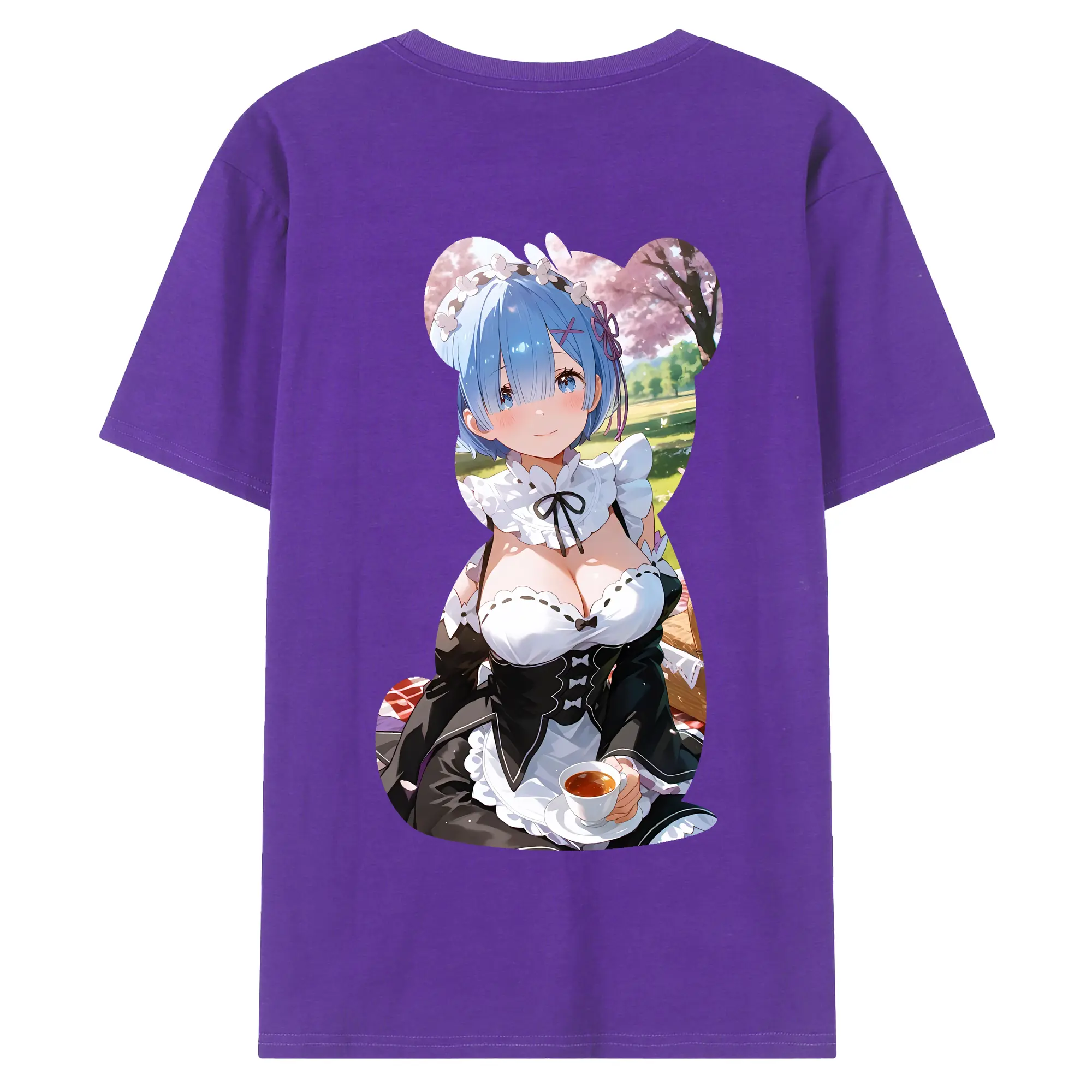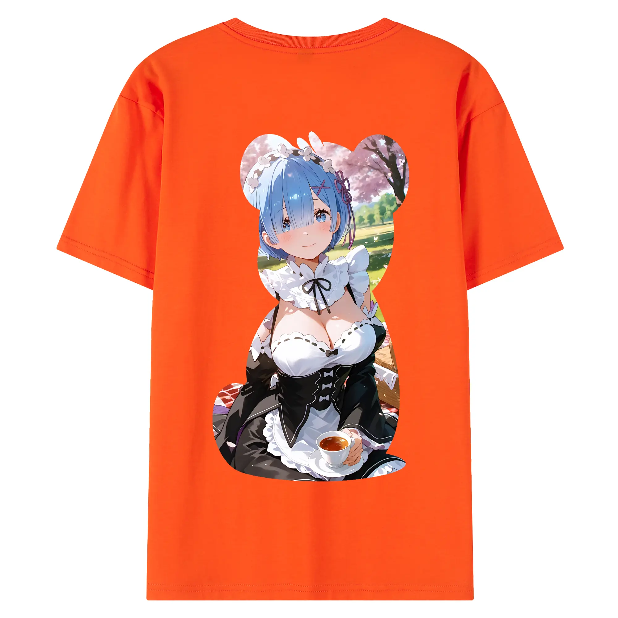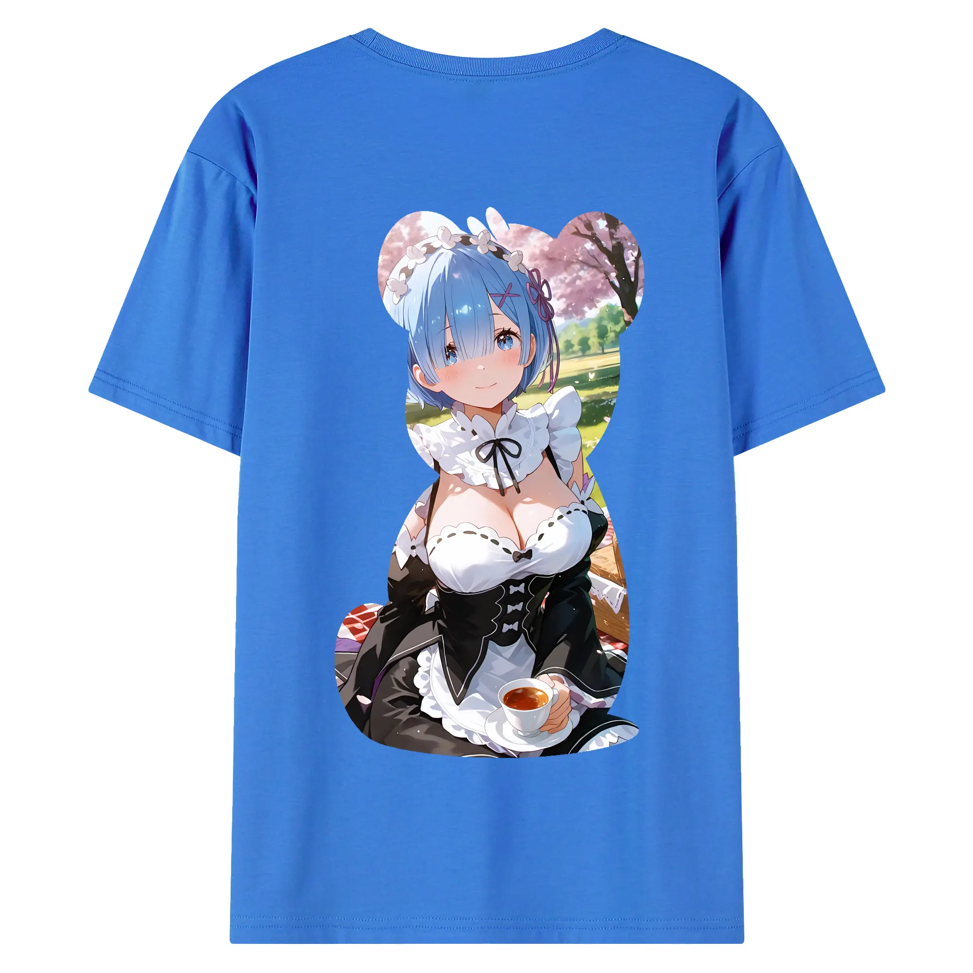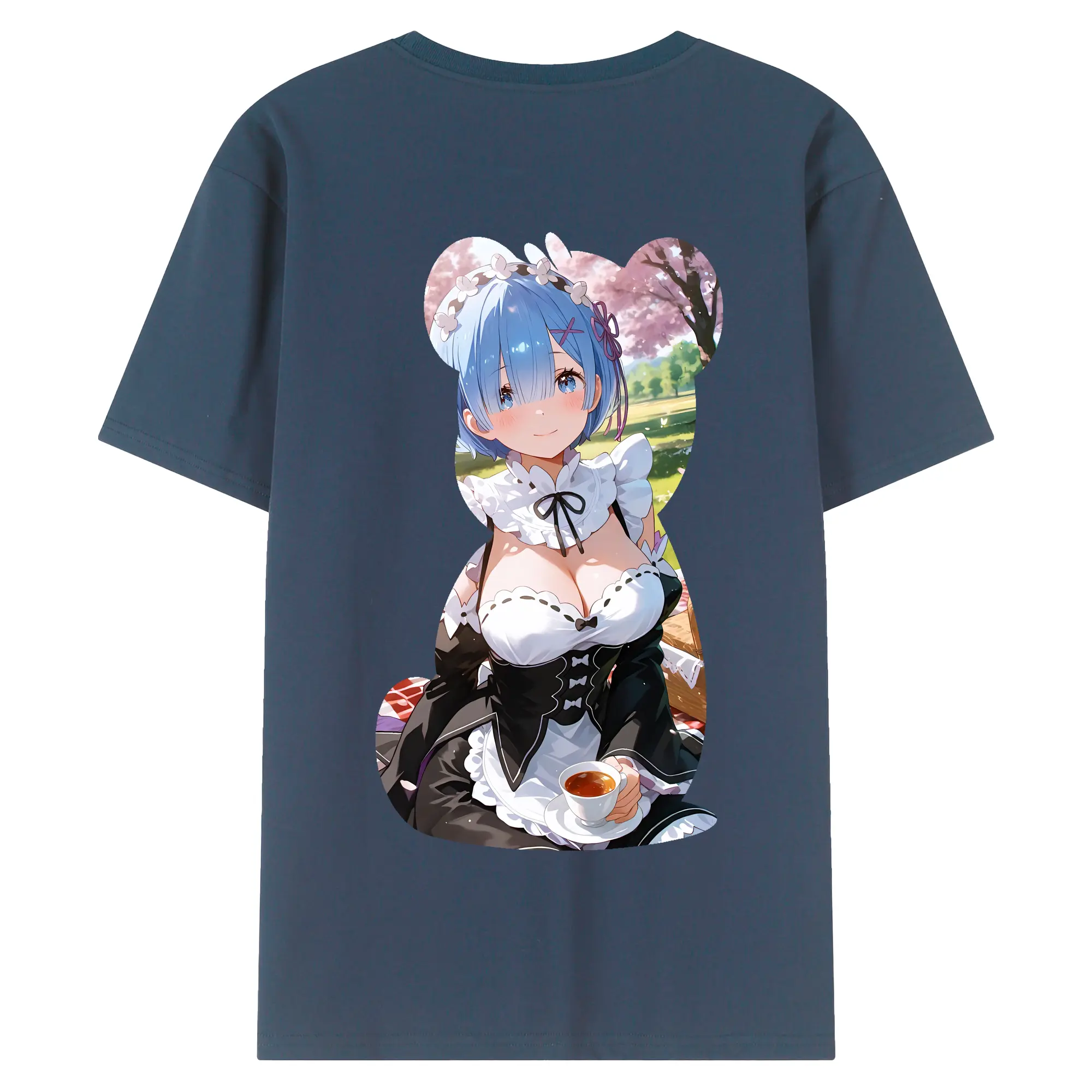 リゼロ グッズ レム - 綿100% 半袖Tシャツ ・ フロントプリント ・ 快適 通気性 ・ 日常使い 散歩 スポーツ用