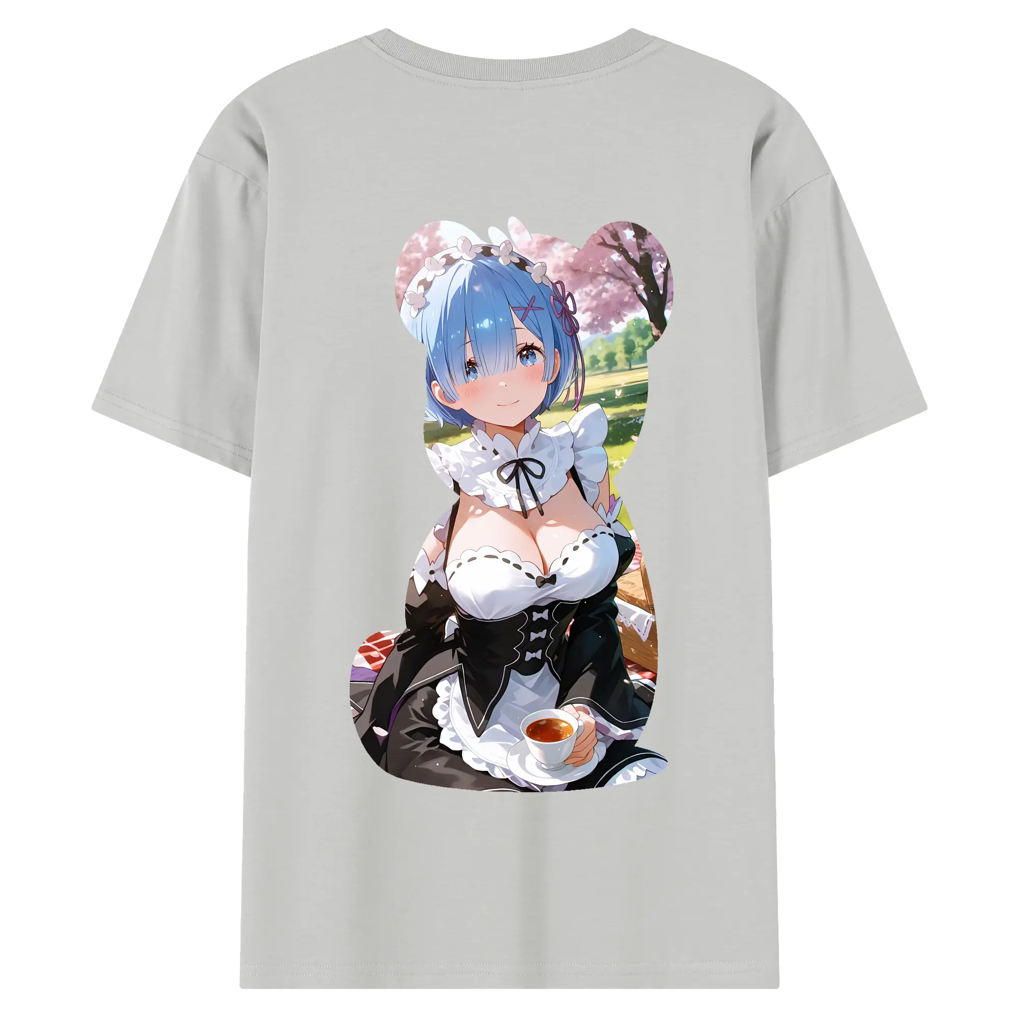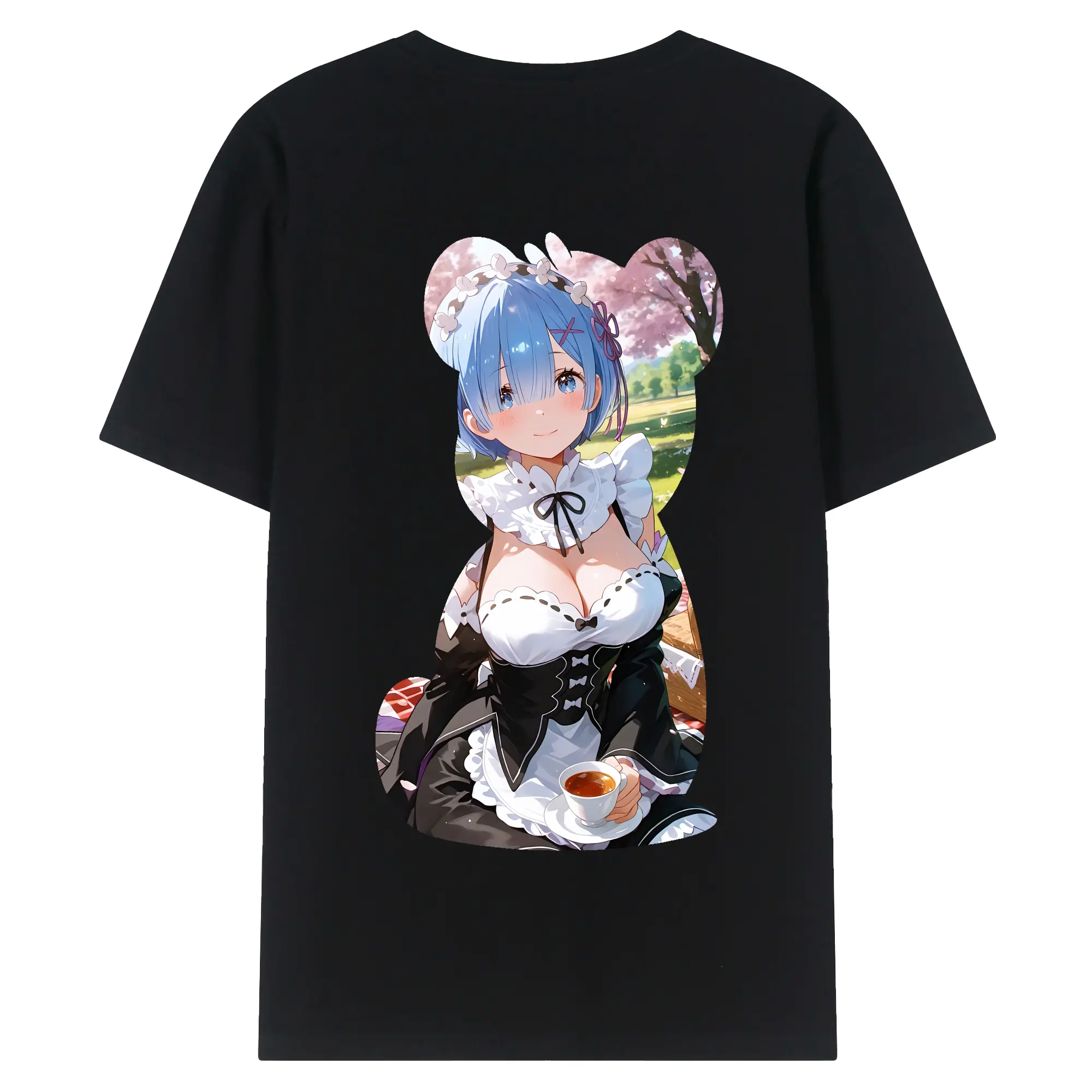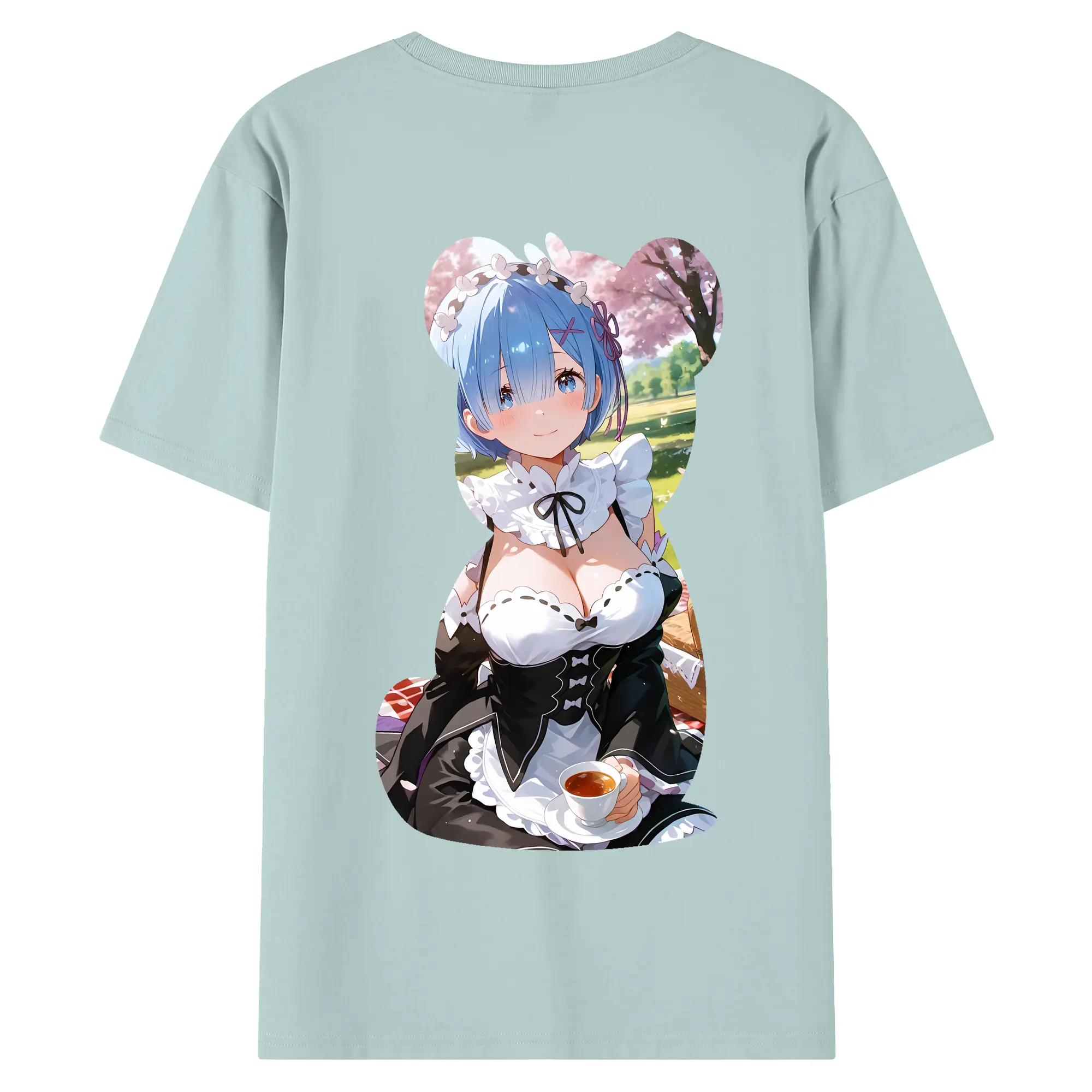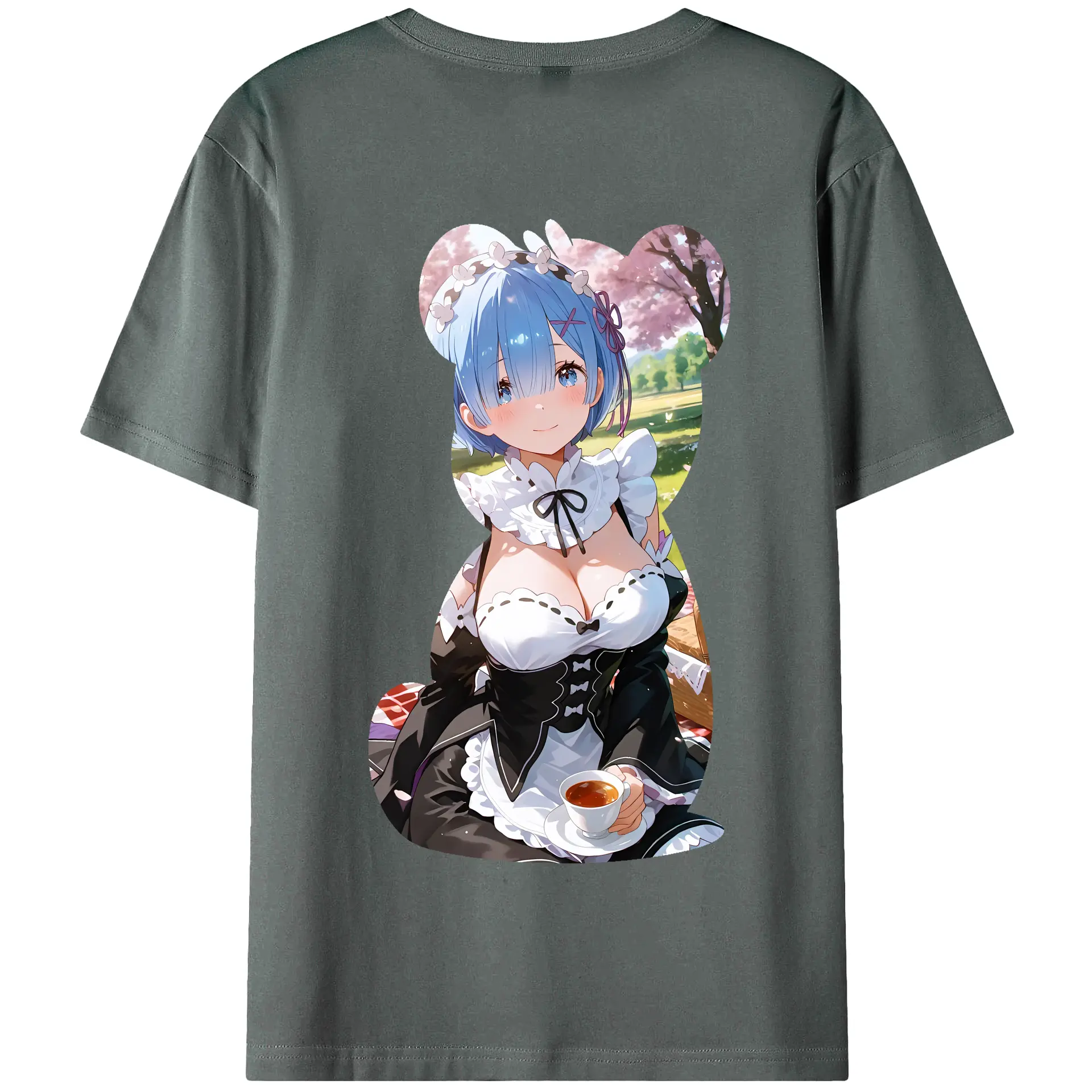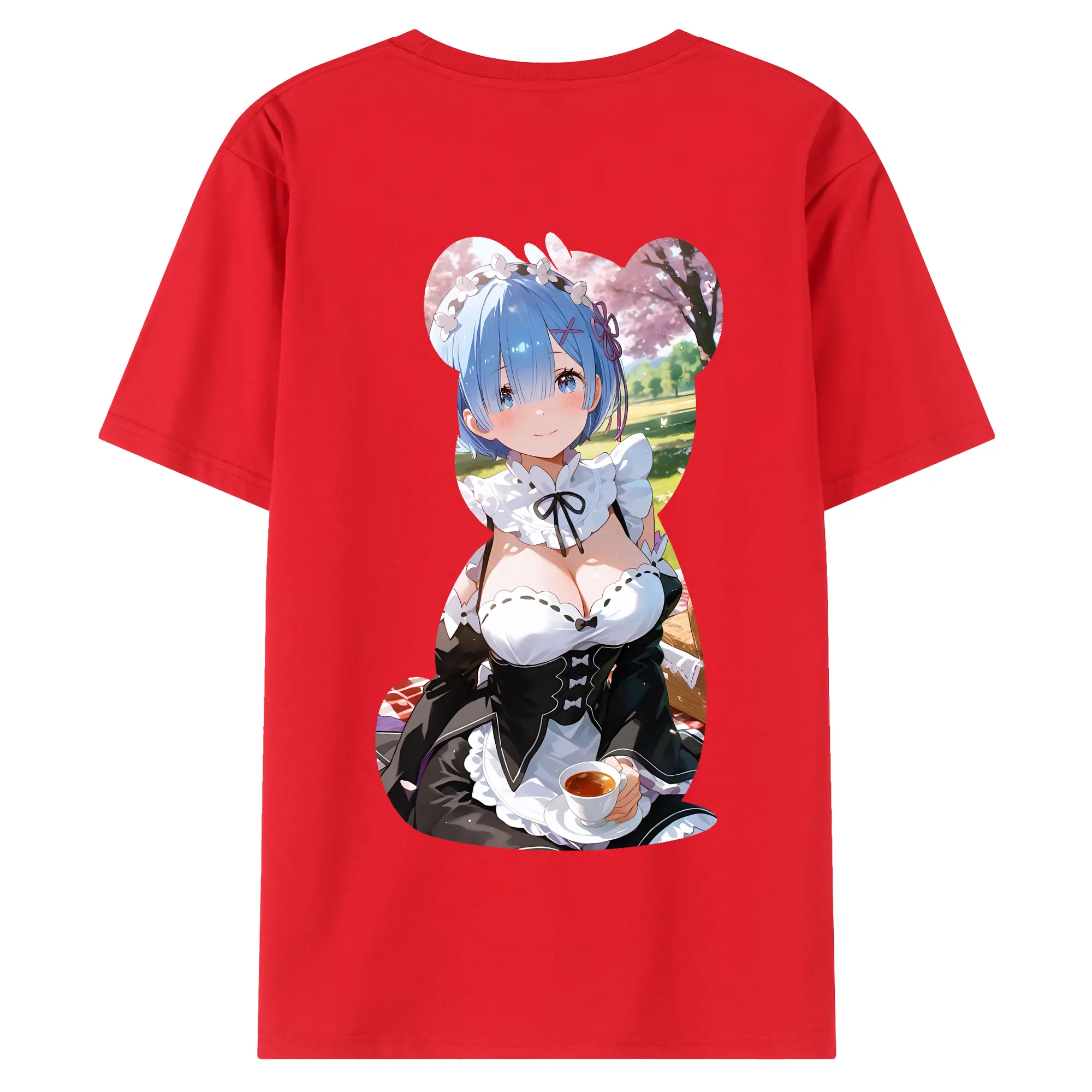 リゼロ グッズ レム - 綿100% 半袖Tシャツ ・ フロントプリント ・ 快適 通気性 ・ 日常使い 散歩 スポーツ用