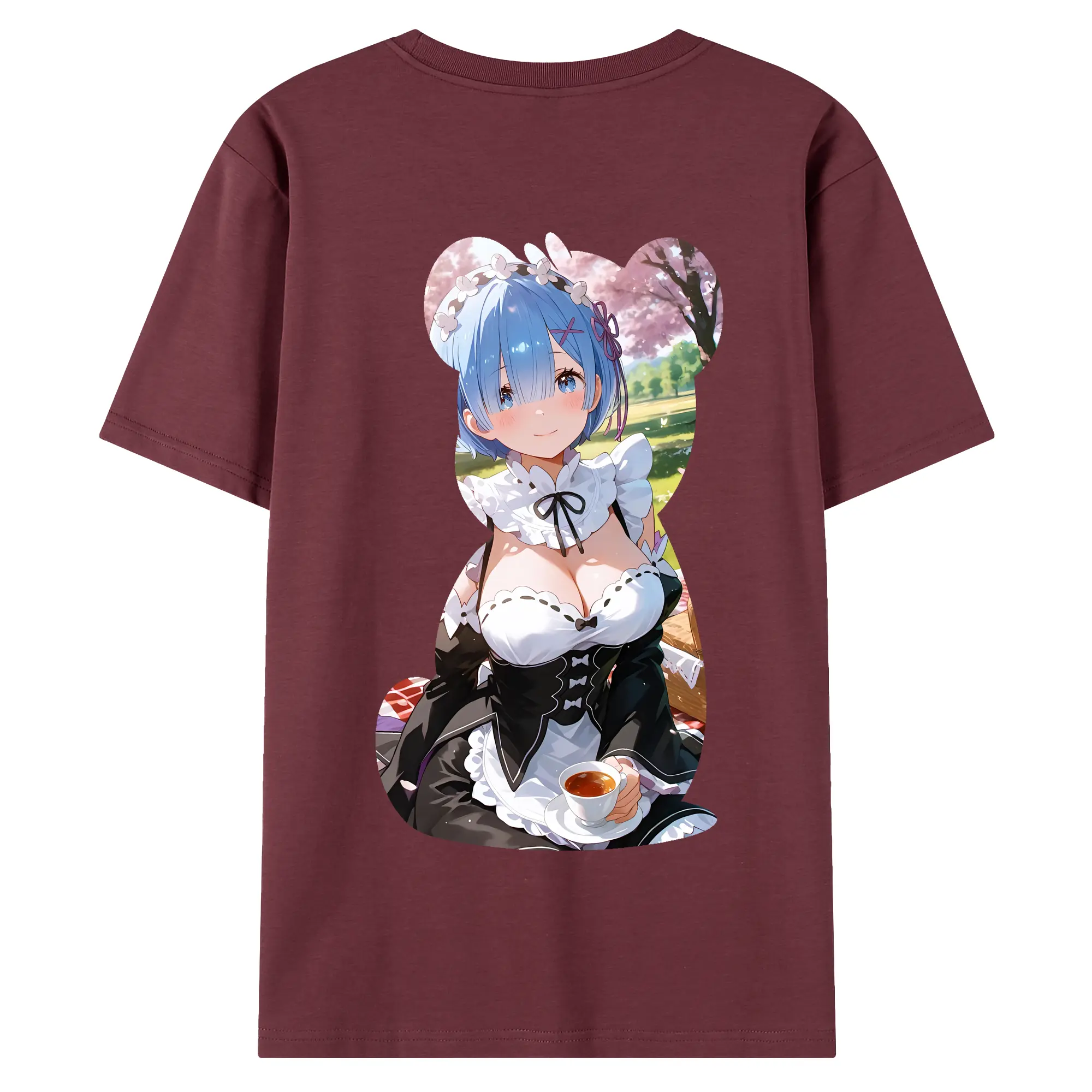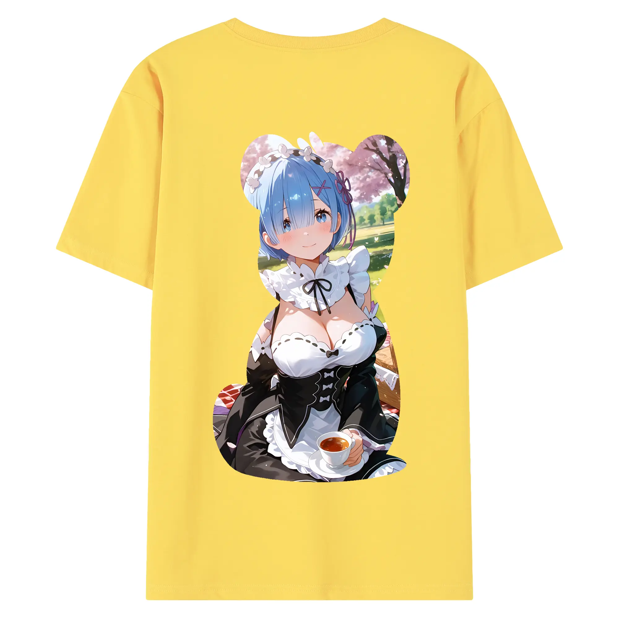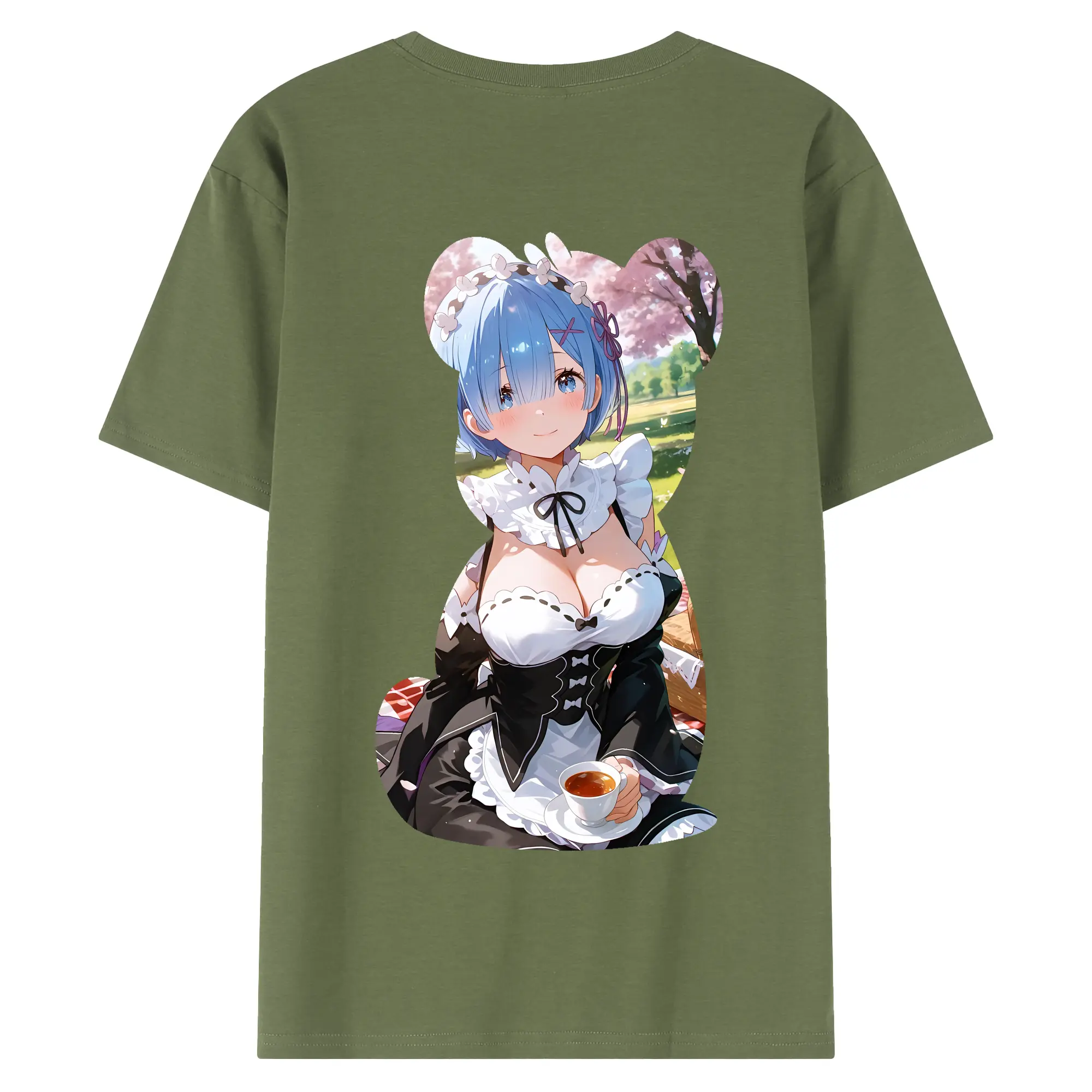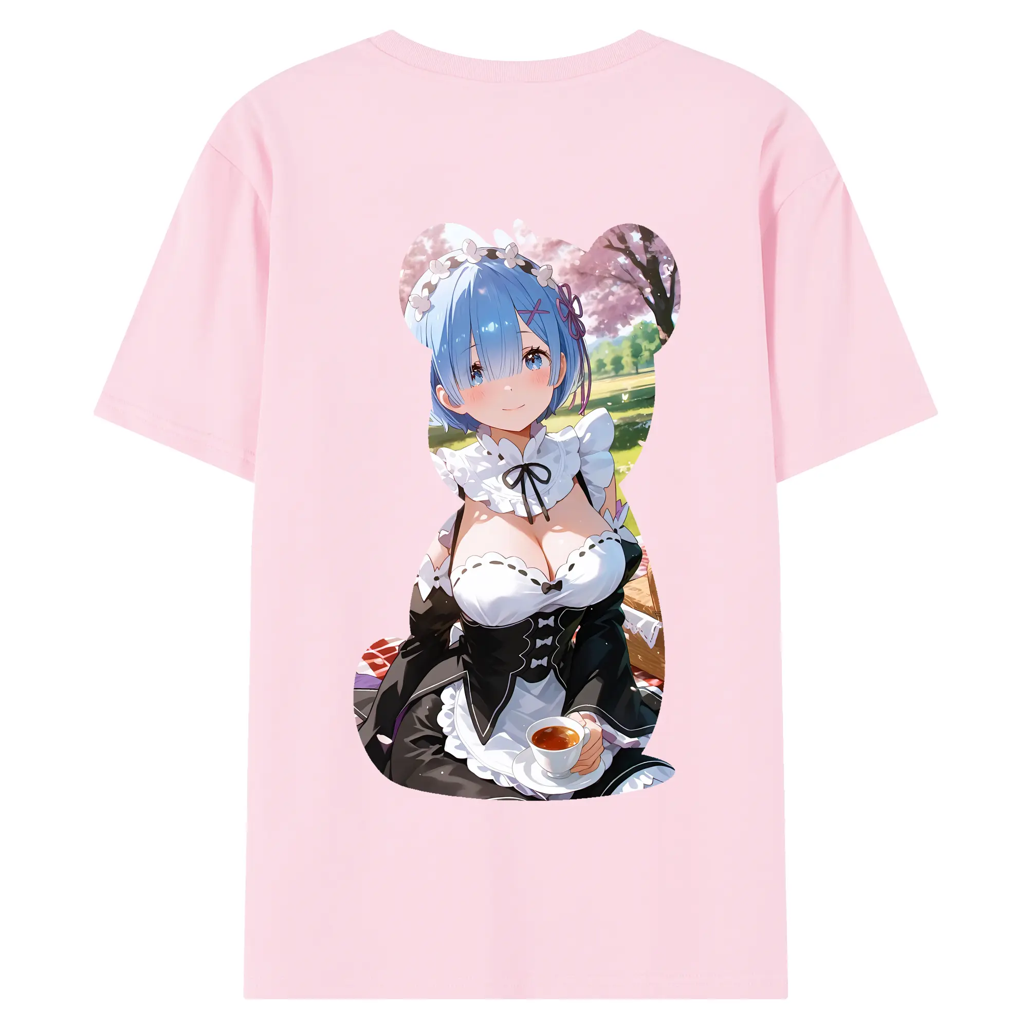 リゼロ グッズ レム - 綿100% 半袖Tシャツ ・ フロントプリント ・ 快適 通気性 ・ 日常使い 散歩 スポーツ用